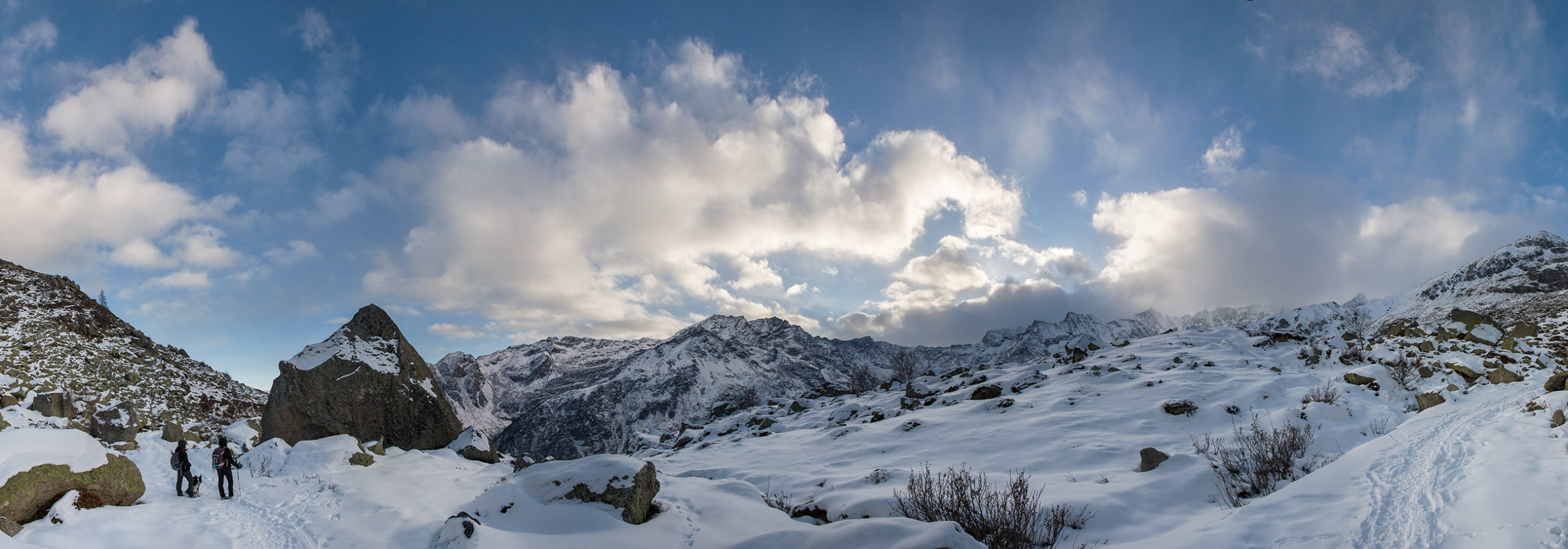 Panoramareiche Wanderung auf dem Sentiero Balcone, ein einfach zu begehender Höhenweg auf der Sonnenseite des Val Grande. Einer der Klassiker der Valli di Lanzo, an Schönwetterwochenenden auch bei den Italienern ein beliebtes und dementsprechend frequentiertes Ausflugsziel, ohne jedoch überlaufen zu sein. Unter der Woche trifft man selbst im Sommer (bis auf den Ferienmonat August) unterwegs kaum eine Menschenseele. Die Tour kann man sich nach eigenem Belieben flexibel gestalten, entweder als Streckenwanderung von Rivotti nach Forno Alpi Graie, oder man beschränkt sich nur auf einzelne Abschnitte und kehrt auf dem Aufstiegsweg zum Ausgangspunkt zurück. Hierzu habe ich einige Vorschläge aufgelistet (> siehe unten). Bei normalen Schneeverhältnissen ist der Sentiero Balcone auch in den Wintermonaten problemlos und unschwierig zu begehen.