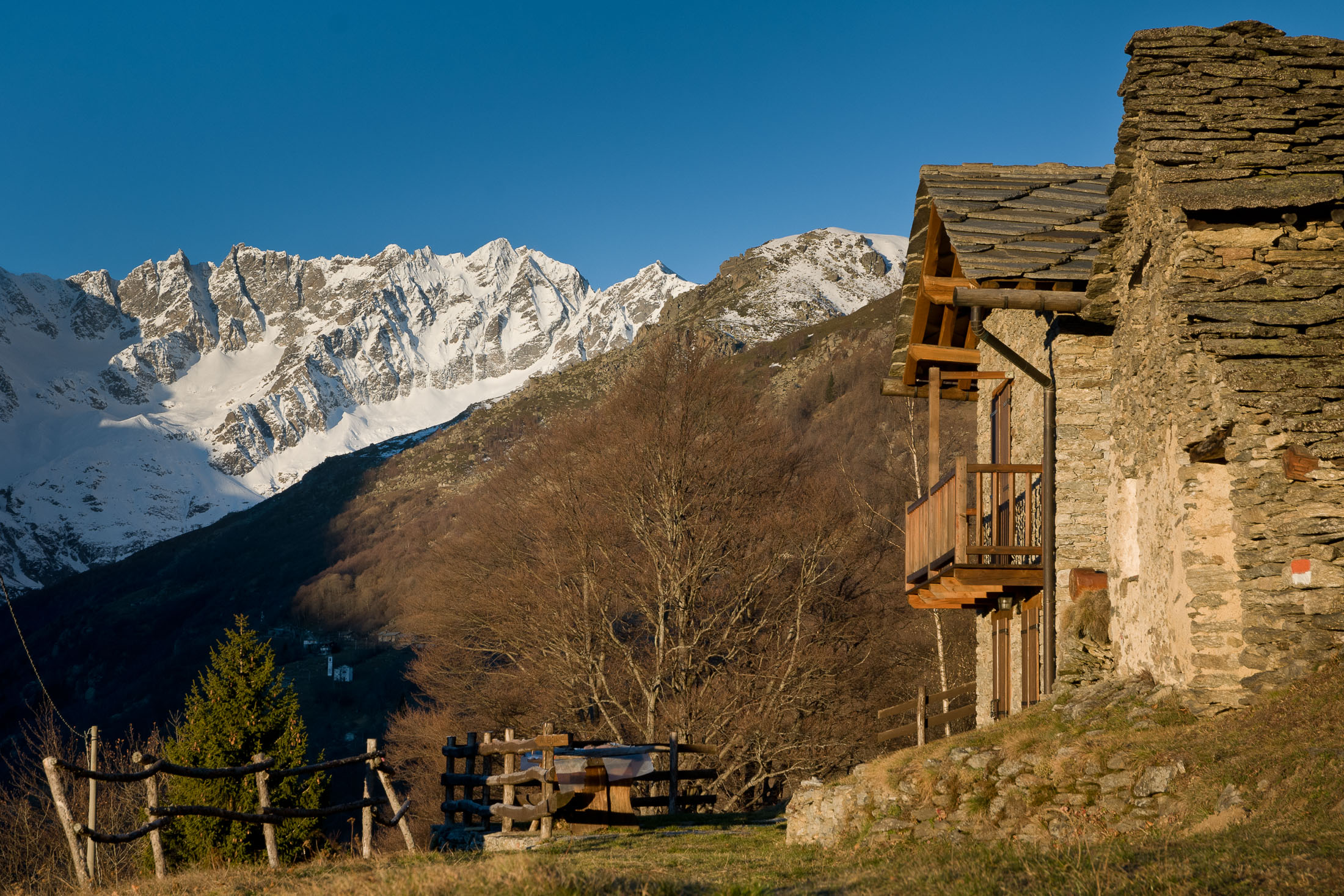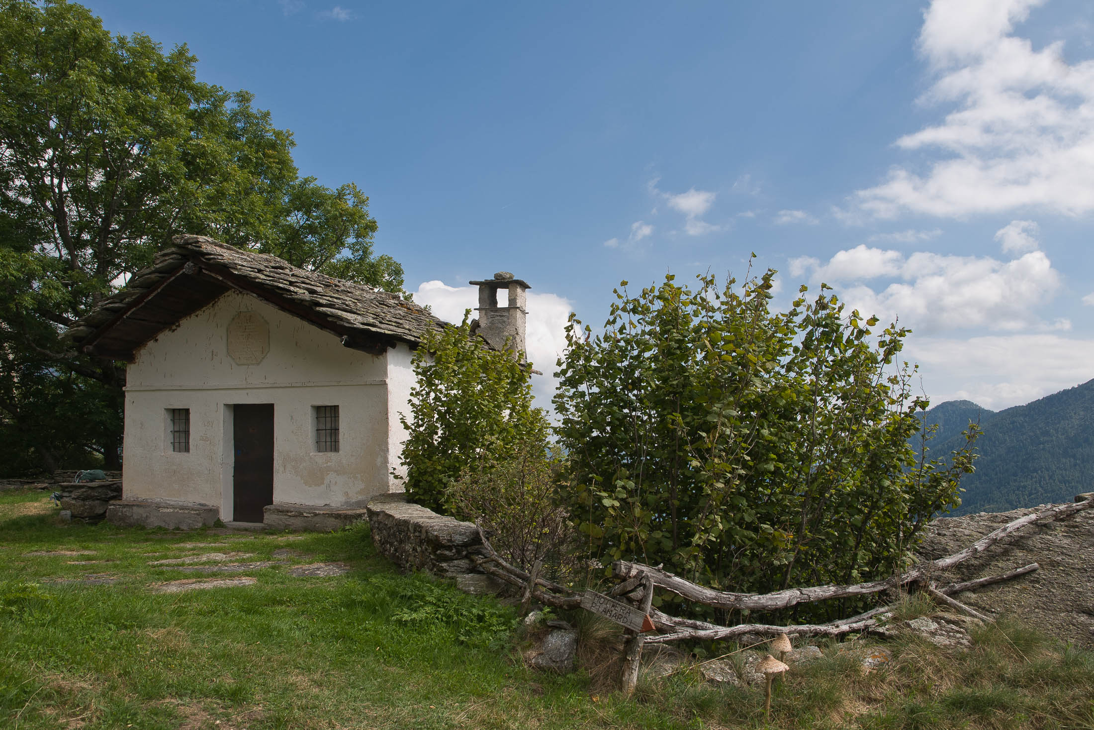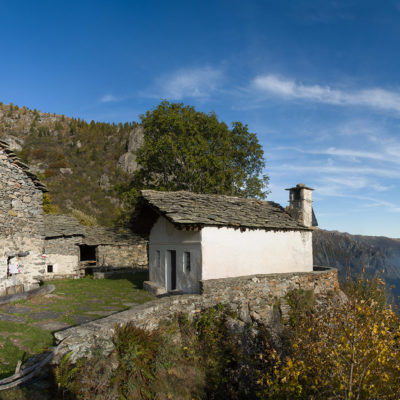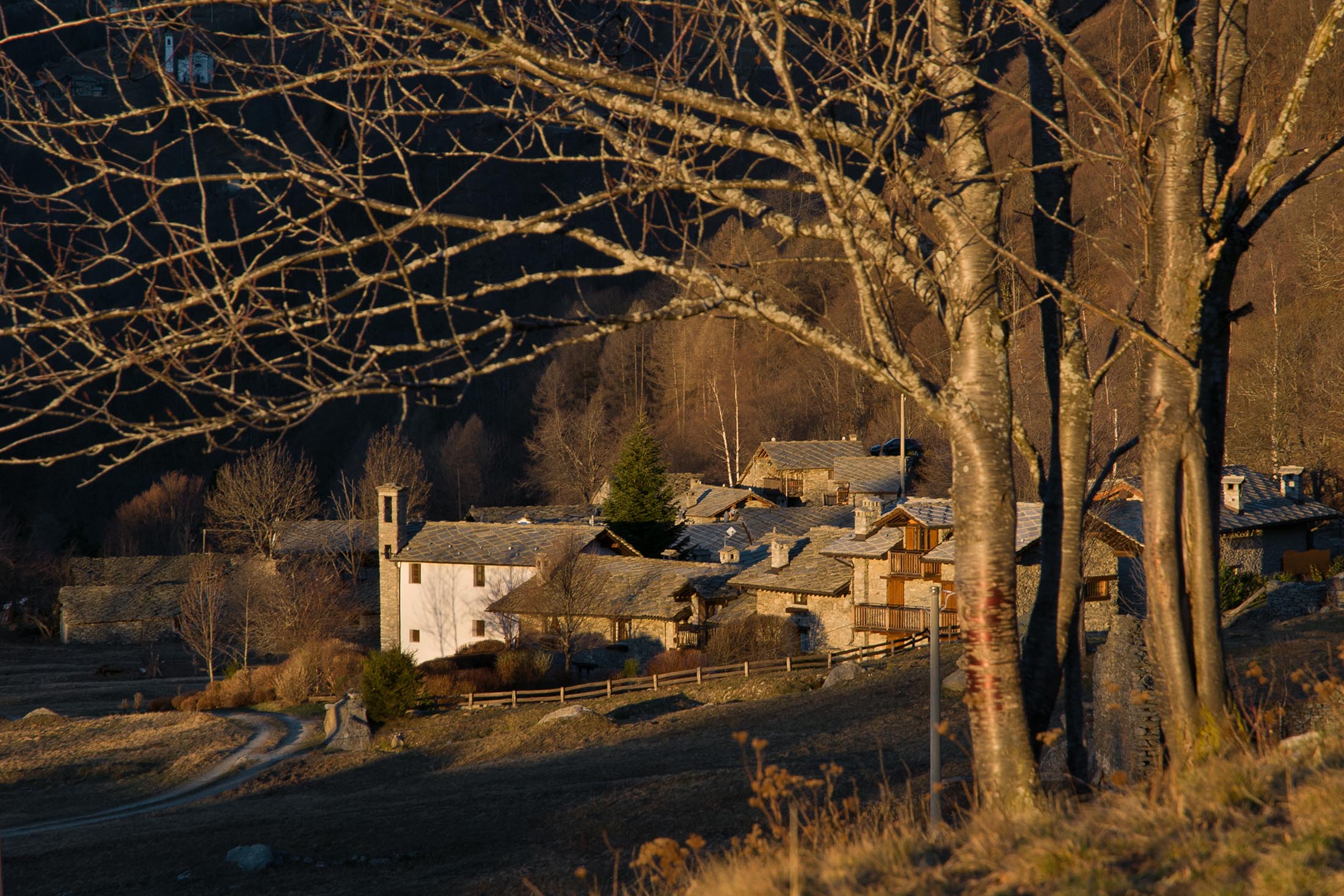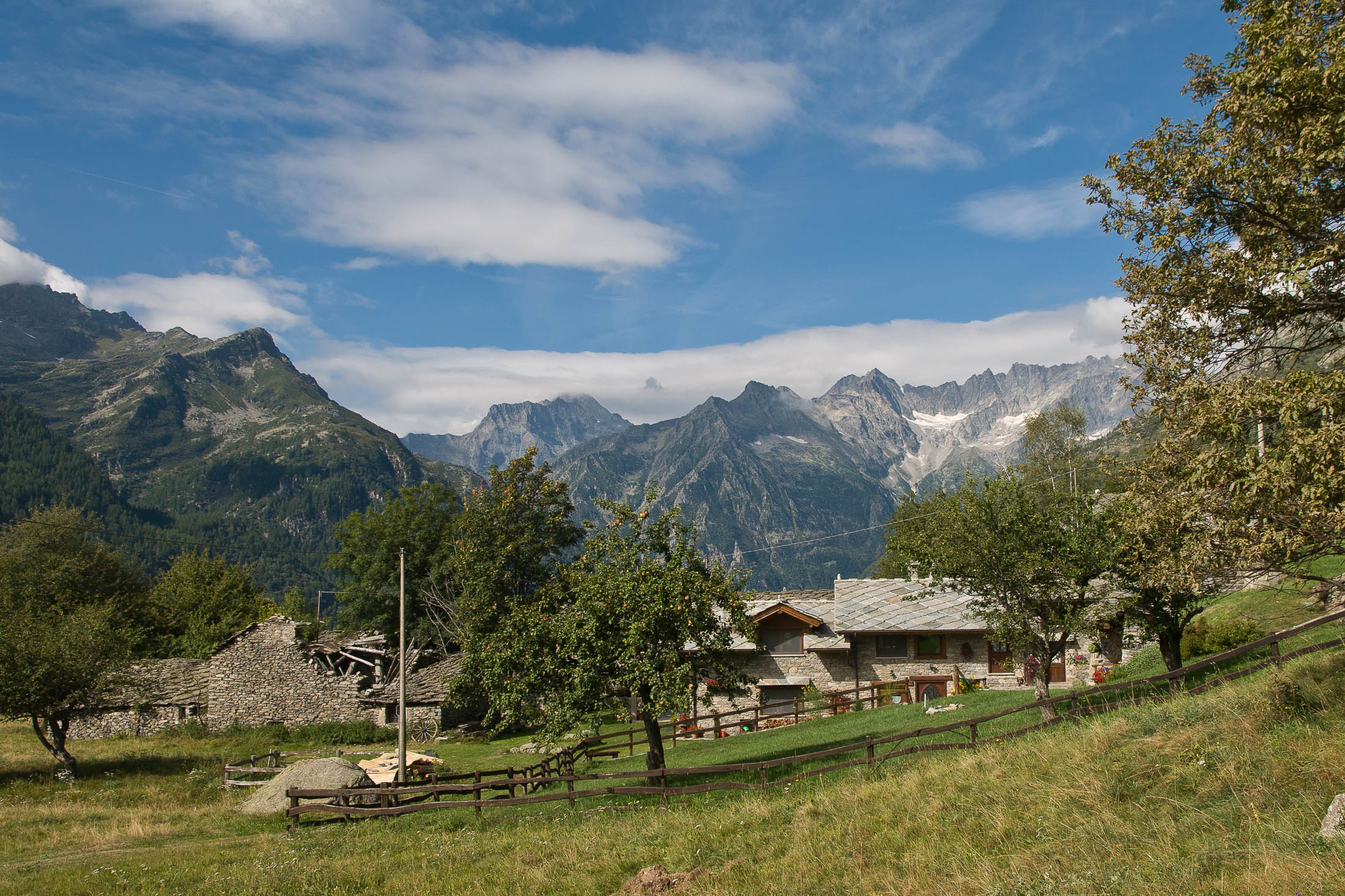 Vor dem Aufbruch lohnt zunächst ein Spaziergang über die Hochebene von Alboni mit seinen zahlreichen hübsch renovierten alten Bauernhäusern und der sehenswerten Cappella di San Grato. Alboni ist eine aus mehreren Häusergruppen bestehende Siedlung auf einer aussichtsreichen Hochfläche auf der Sonnenseite des Val Grande di Lanzo. Eine einzelne Häusergruppe nennt man hier Borgata, eine in Norditalien lokal übliche Bezeichnung für einen kleinen Ortsteil oder Weiler. Auf der Hochebene befinden sich die Weiler Grand‘Albone, Albone di mezzo mit dem Kirchlein Cappella di San Grato und Campo della Losa di sotto, ein wenig abseits am Waldrand die Häuser von Crest, wenige Gehminuten weiter oberhalb die Gebäudegruppen von Campo della Losa di mezzo, Campo della Losa di sopra und Castello. Zusammengefasst sind es „gli Alboni“, frei ins Deutsche übersetzt „die Alboni“ (Alboni ist im Italienischen der Plural von Albone). Alboni war einst ganzjährig bewohnt, in jedem Haus lebte eine Familie mit zwei oder drei Generationen unter einem Dach.