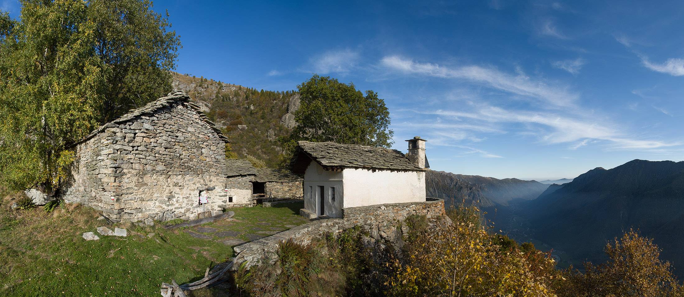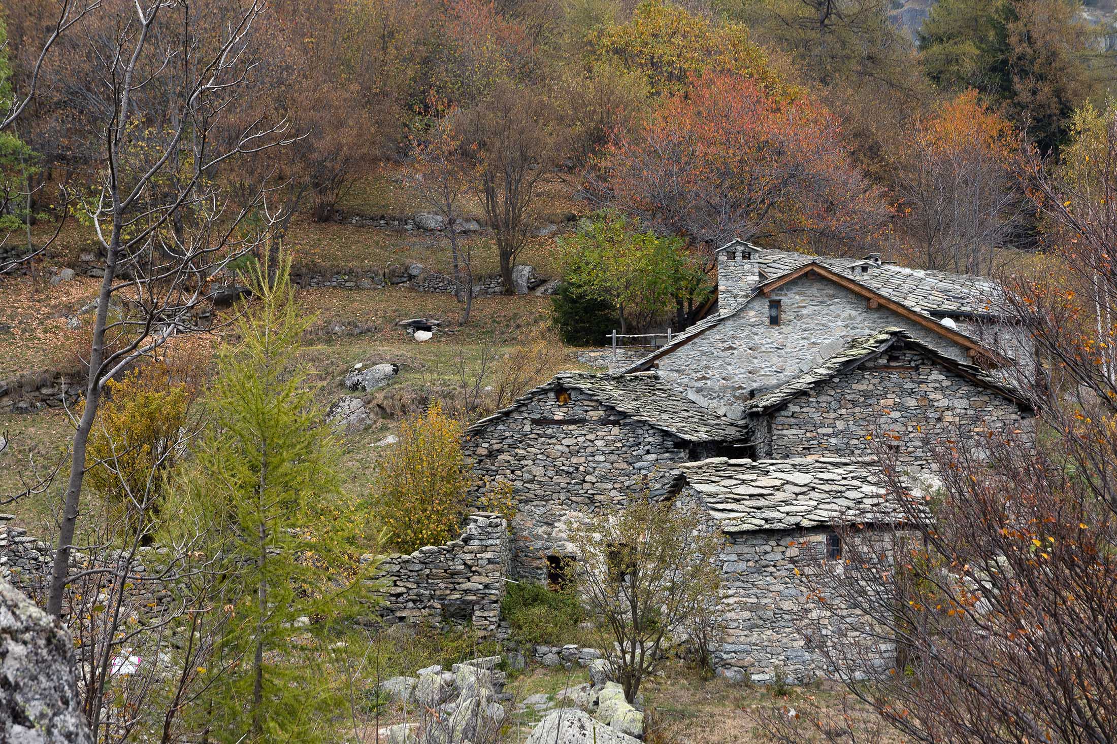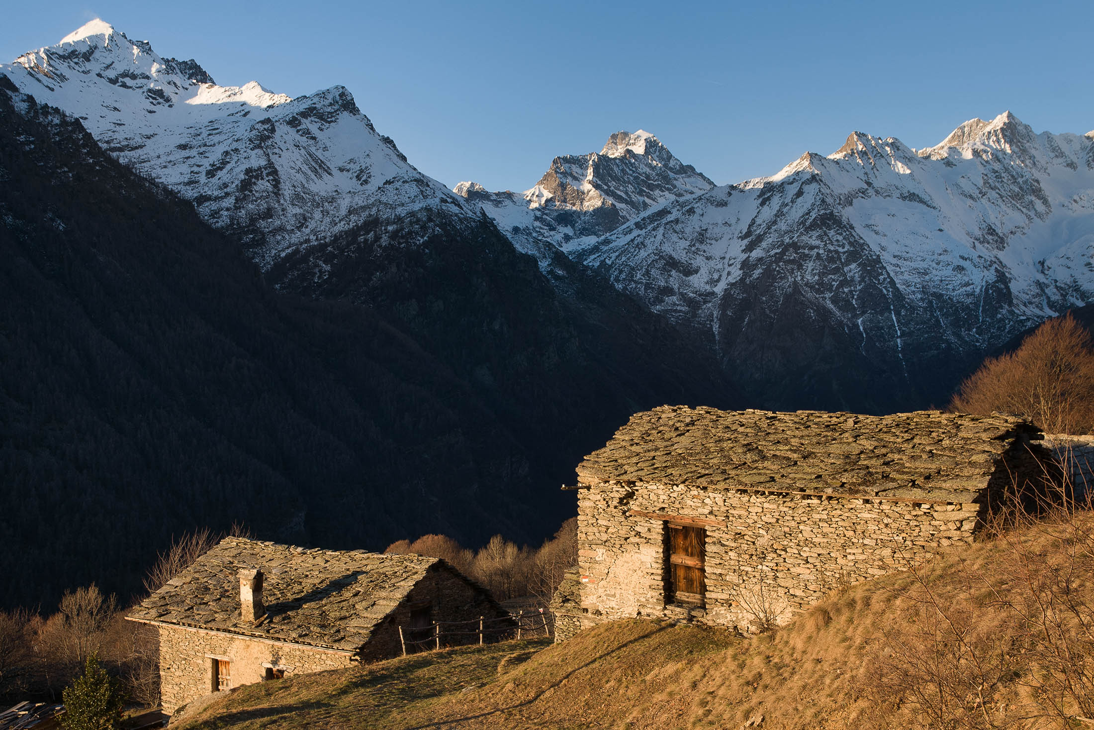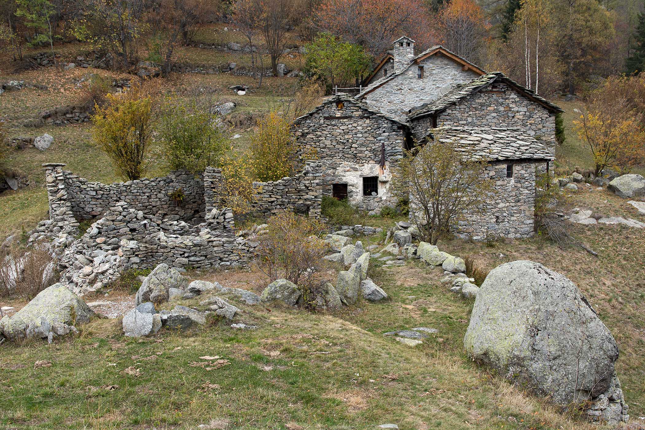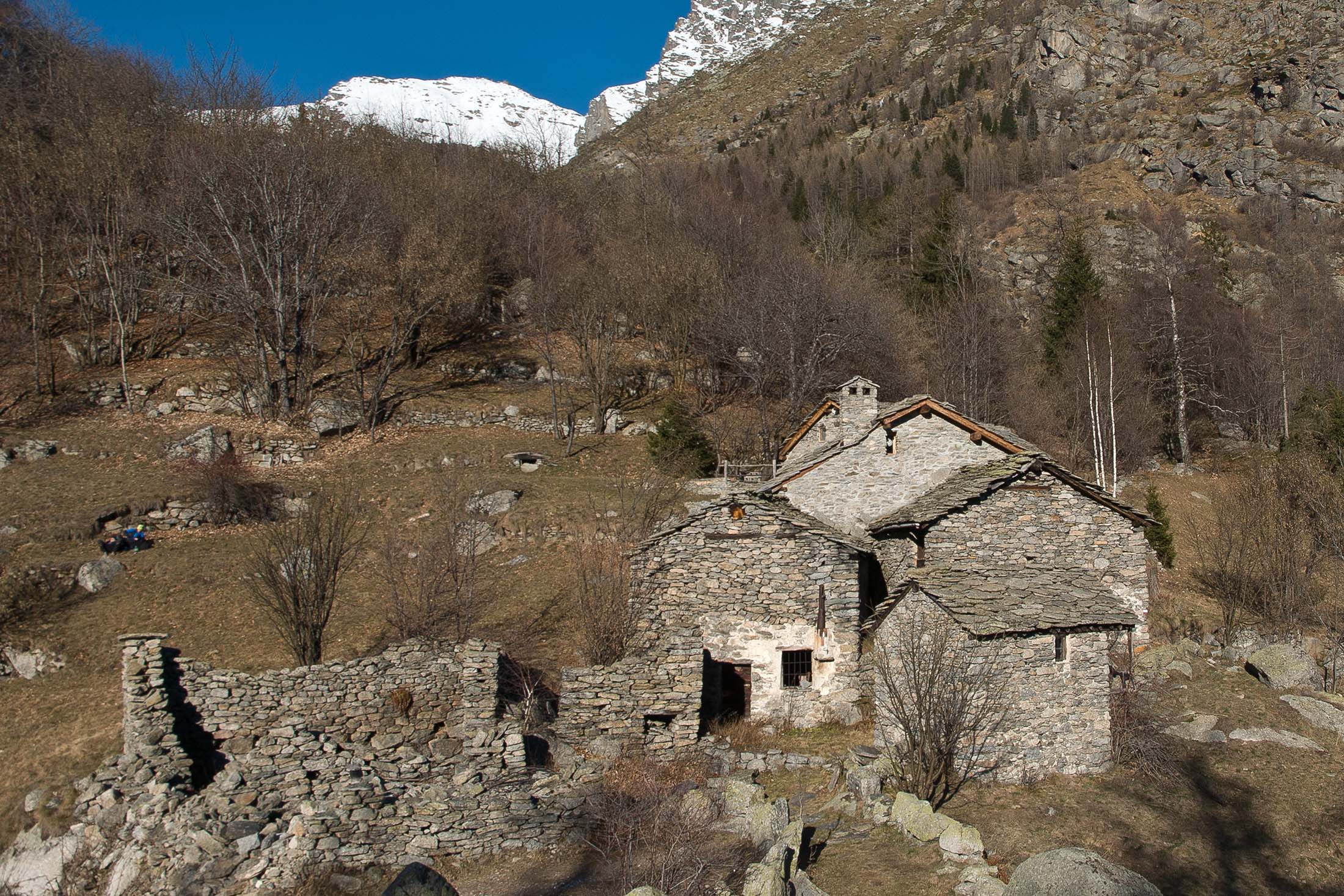 Vor dem Aufbruch lohnt zunächst ein Spaziergang über die Hochebene von Alboni mit seinen zahlreichen hübsch renovierten alten Bauernhäusern und der sehenswerten Cappella di San Grato. Alboni ist eine aus mehreren Häusergruppen bestehende Siedlung auf einer aussichtsreichen Hochfläche auf der Sonnenseite des Val Grande di Lanzo. Eine einzelne Häusergruppe nennt man hier Borgata, eine in Norditalien lokal übliche Bezeichnung für einen kleinen Ortsteil oder Weiler. Auf der Hochebene befinden sich die Weiler Grand‘Albone, Albone di mezzo mit dem Kirchlein Cappella di San Grato und Campo della Losa di sotto, ein wenig abseits am Waldrand die Häuser von Crest, wenige Gehminuten weiter oberhalb die Gebäudegruppen von Campo della Losa di mezzo, Campo della Losa di sopra und Castello. Zusammengefasst sind es „gli Alboni“, frei ins Deutsche übersetzt „die Alboni“ (Alboni ist im Italienischen der Plural von Albone). Alboni war einst ganzjährig bewohnt, in jedem Haus lebte eine Familie mit zwei oder drei Generationen unter einem Dach.