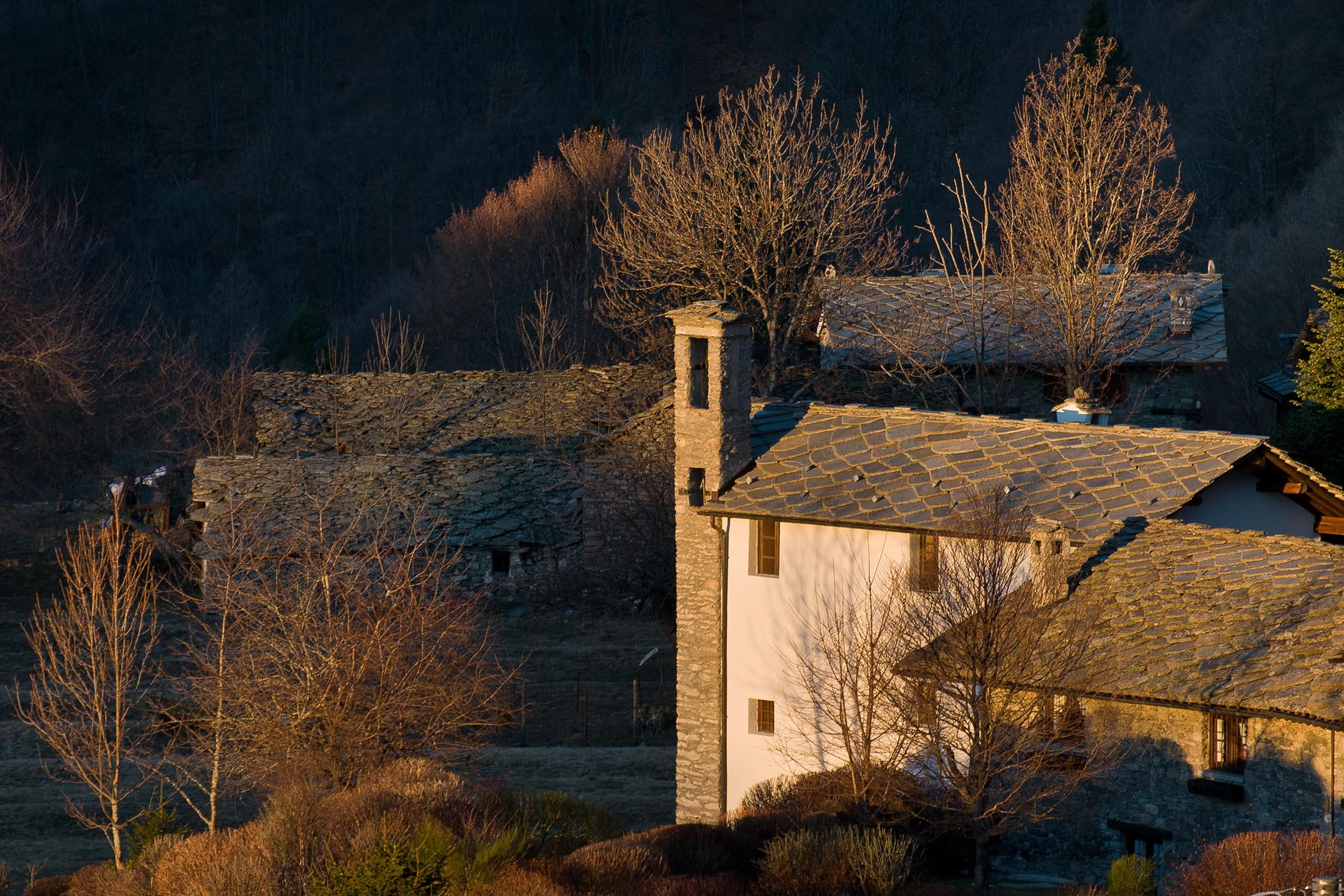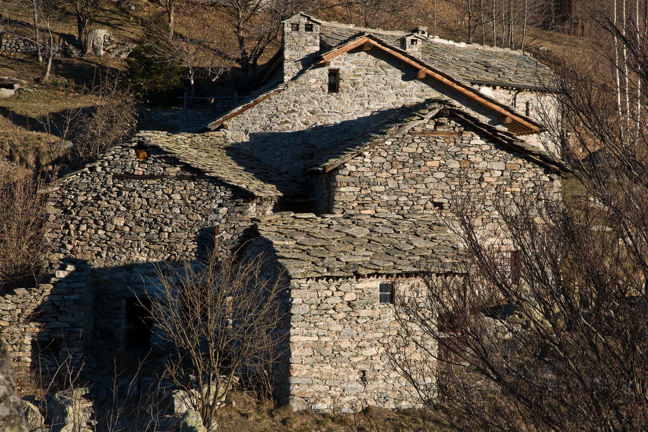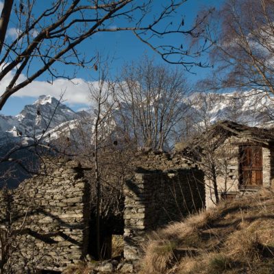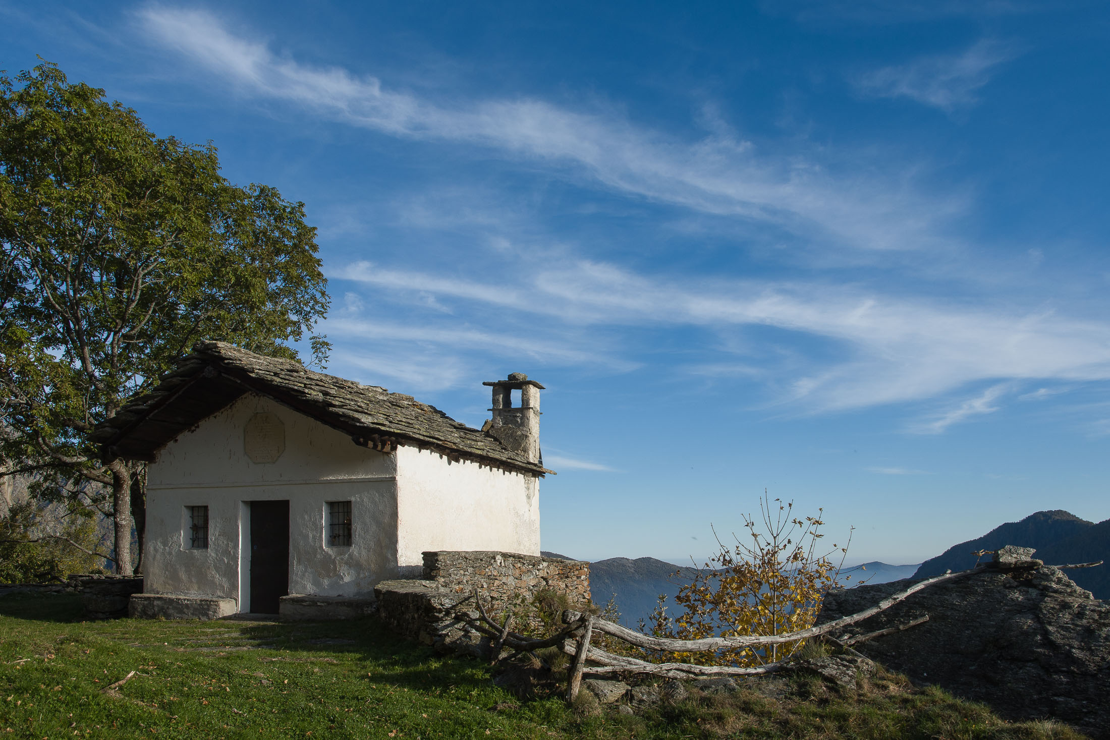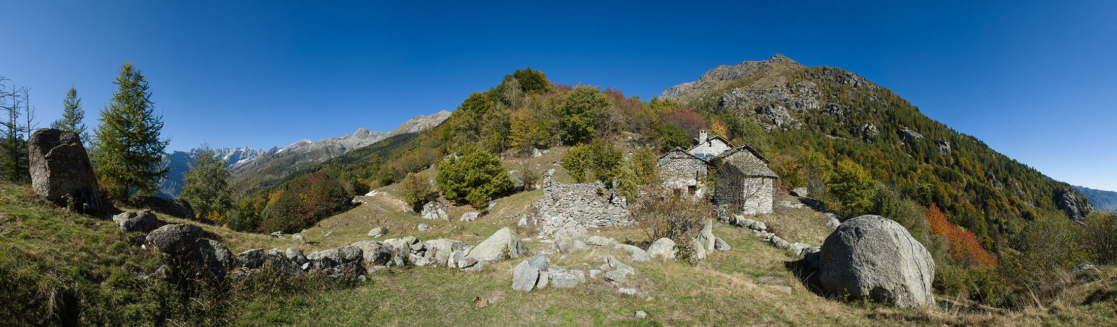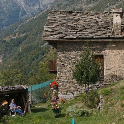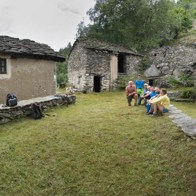 Vor dem Aufbruch lohnt zunächst ein Spaziergang über die Hochebene von Alboni mit seinen zahlreichen hübsch renovierten alten Bauernhäusern und der sehenswerten Cappella di San Grato. Alboni ist eine aus mehreren Häusergruppen bestehende Siedlung auf einer aussichtsreichen Hochfläche auf der Sonnenseite des Val Grande di Lanzo. Eine einzelne Häusergruppe nennt man hier Borgata, eine in Norditalien lokal übliche Bezeichnung für einen kleinen Ortsteil oder Weiler. Auf der Hochebene befinden sich die Weiler Grand‘Albone, Albone di mezzo mit dem Kirchlein Cappella di San Grato und Campo della Losa di sotto, ein wenig abseits am Waldrand die Häuser von Crest, wenige Gehminuten weiter oberhalb die Gebäudegruppen von Campo della Losa di mezzo, Campo della Losa di sopra und Castello. Zusammengefasst sind es „gli Alboni“, frei ins Deutsche übersetzt „die Alboni“ (Alboni ist im Italienischen der Plural von Albone). Alboni war einst ganzjährig bewohnt, in jedem Haus lebte eine Familie mit zwei oder drei Generationen unter einem Dach.