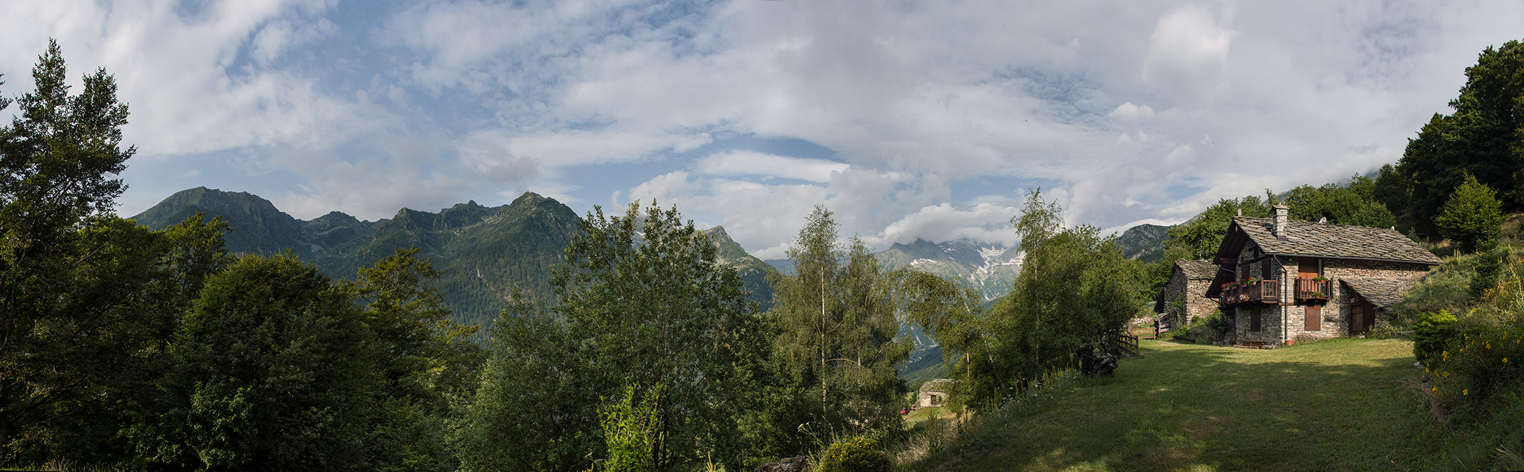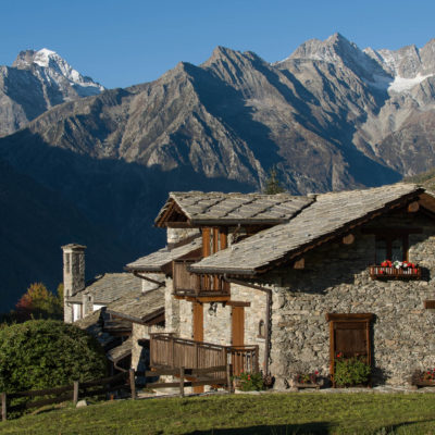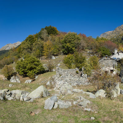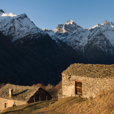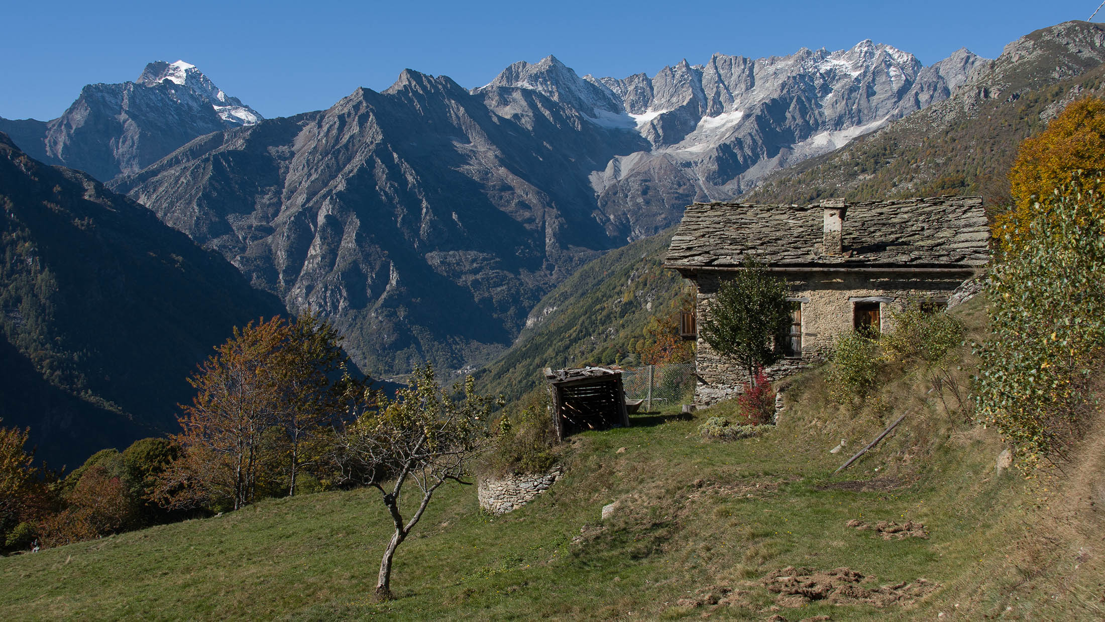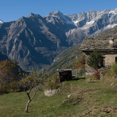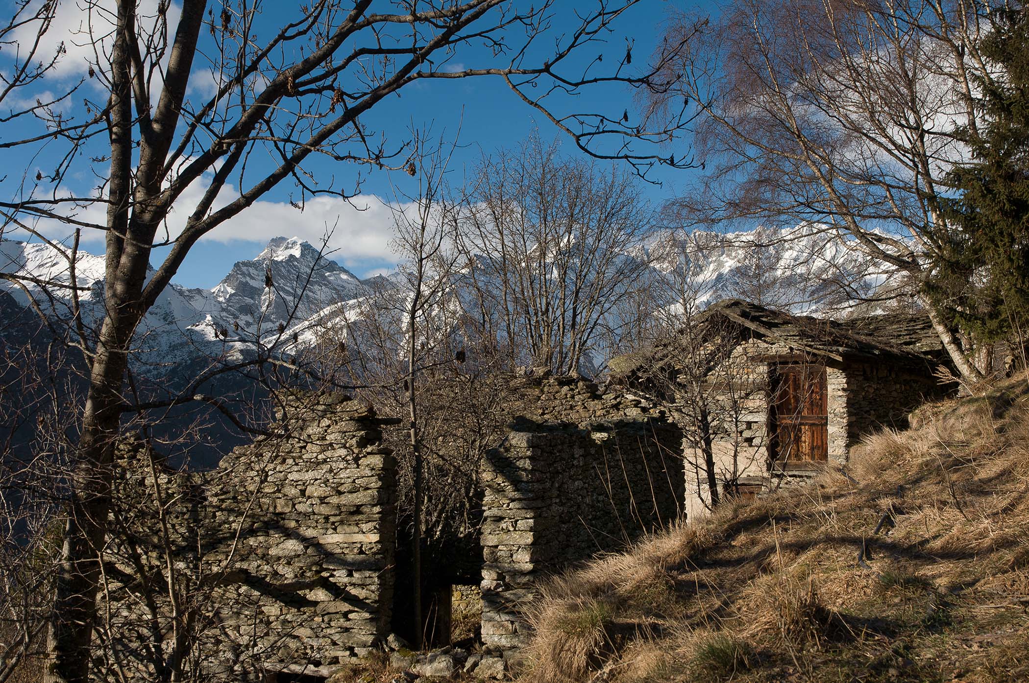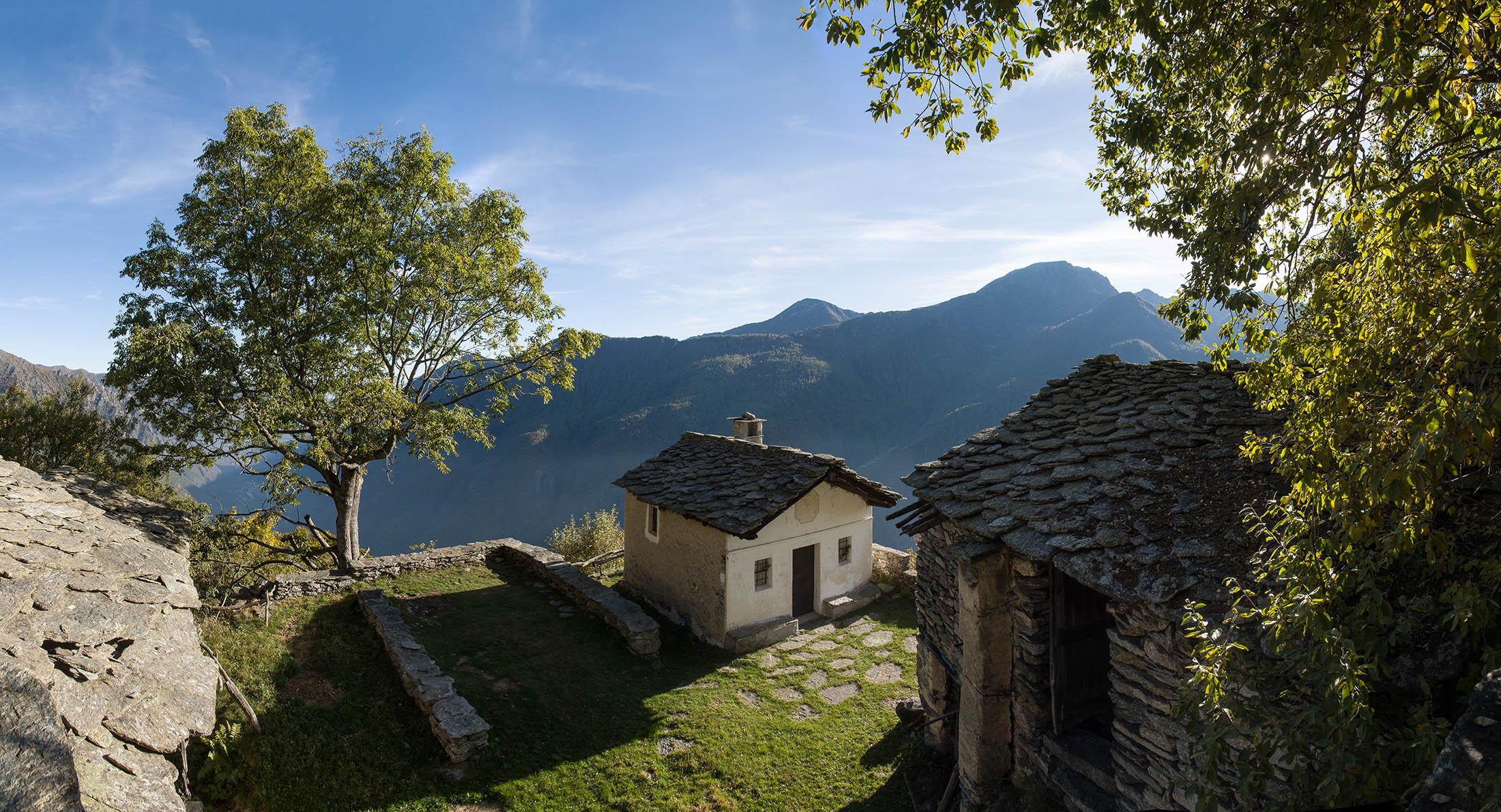 Vor dem Aufbruch lohnt zunächst ein Spaziergang über die Hochebene von Alboni mit seinen zahlreichen hübsch renovierten alten Bauernhäusern und der sehenswerten Cappella di San Grato. Alboni ist eine aus mehreren Häusergruppen bestehende Siedlung auf einer aussichtsreichen Hochfläche auf der Sonnenseite des Val Grande di Lanzo. Eine einzelne Häusergruppe nennt man hier Borgata, eine in Norditalien lokal übliche Bezeichnung für einen kleinen Ortsteil oder Weiler. Auf der Hochebene befinden sich die Weiler Grand‘Albone, Albone di mezzo mit dem Kirchlein Cappella di San Grato und Campo della Losa di sotto, ein wenig abseits am Waldrand die Häuser von Crest, wenige Gehminuten weiter oberhalb die Gebäudegruppen von Campo della Losa di mezzo, Campo della Losa di sopra und Castello. Zusammengefasst sind es „gli Alboni“, frei ins Deutsche übersetzt „die Alboni“ (Alboni ist im Italienischen der Plural von Albone). Alboni war einst ganzjährig bewohnt, in jedem Haus lebte eine Familie mit zwei oder drei Generationen unter einem Dach.