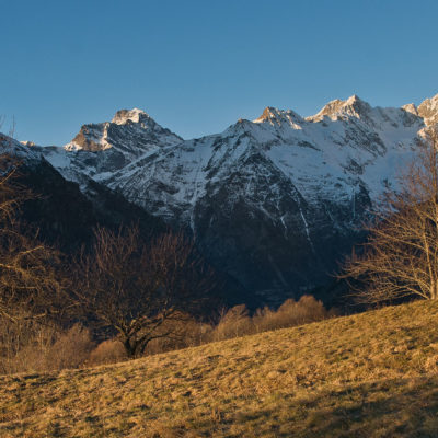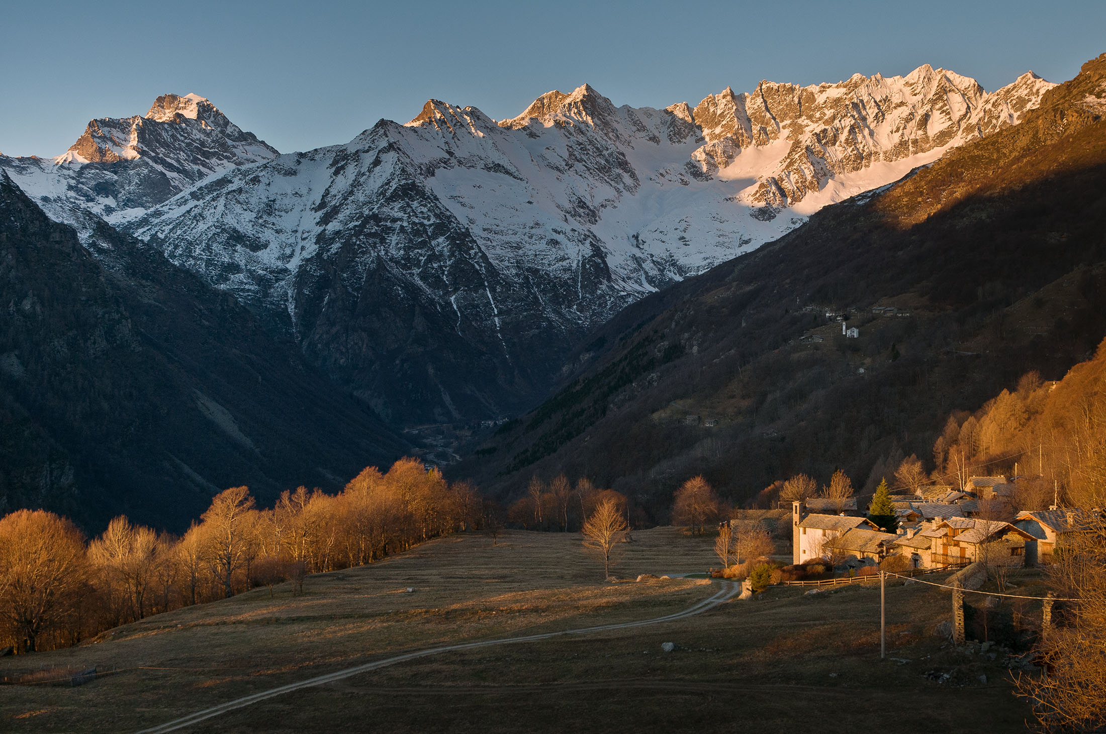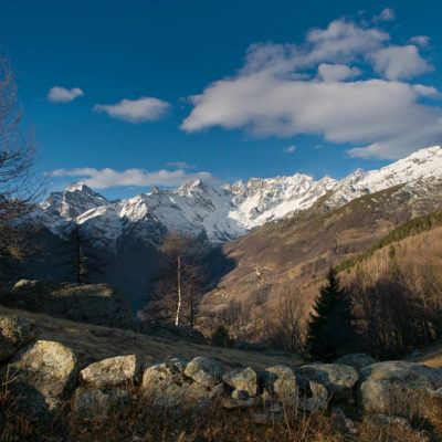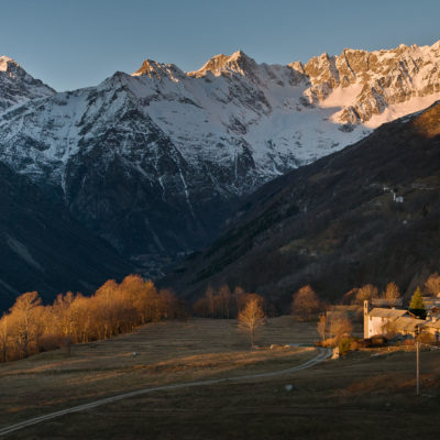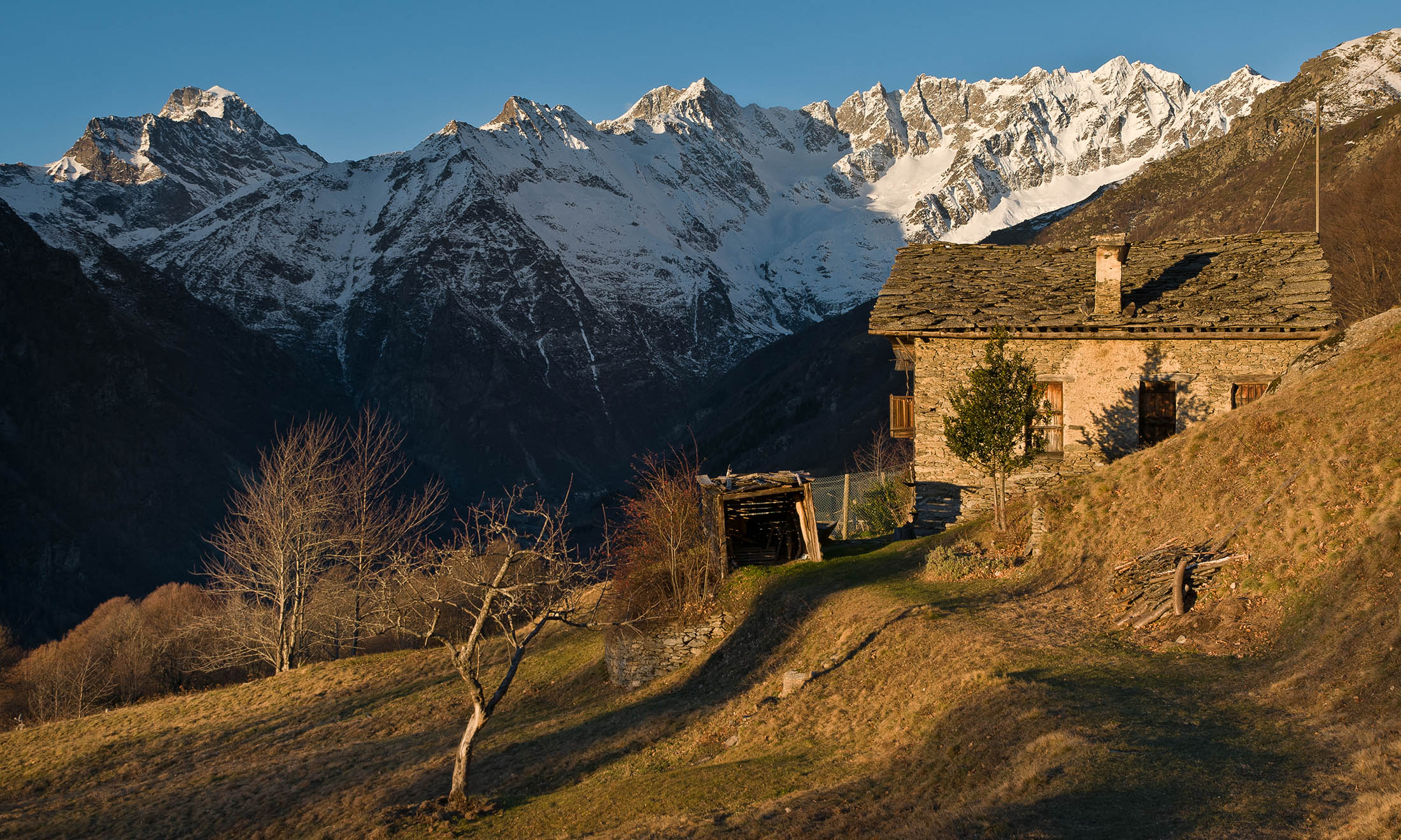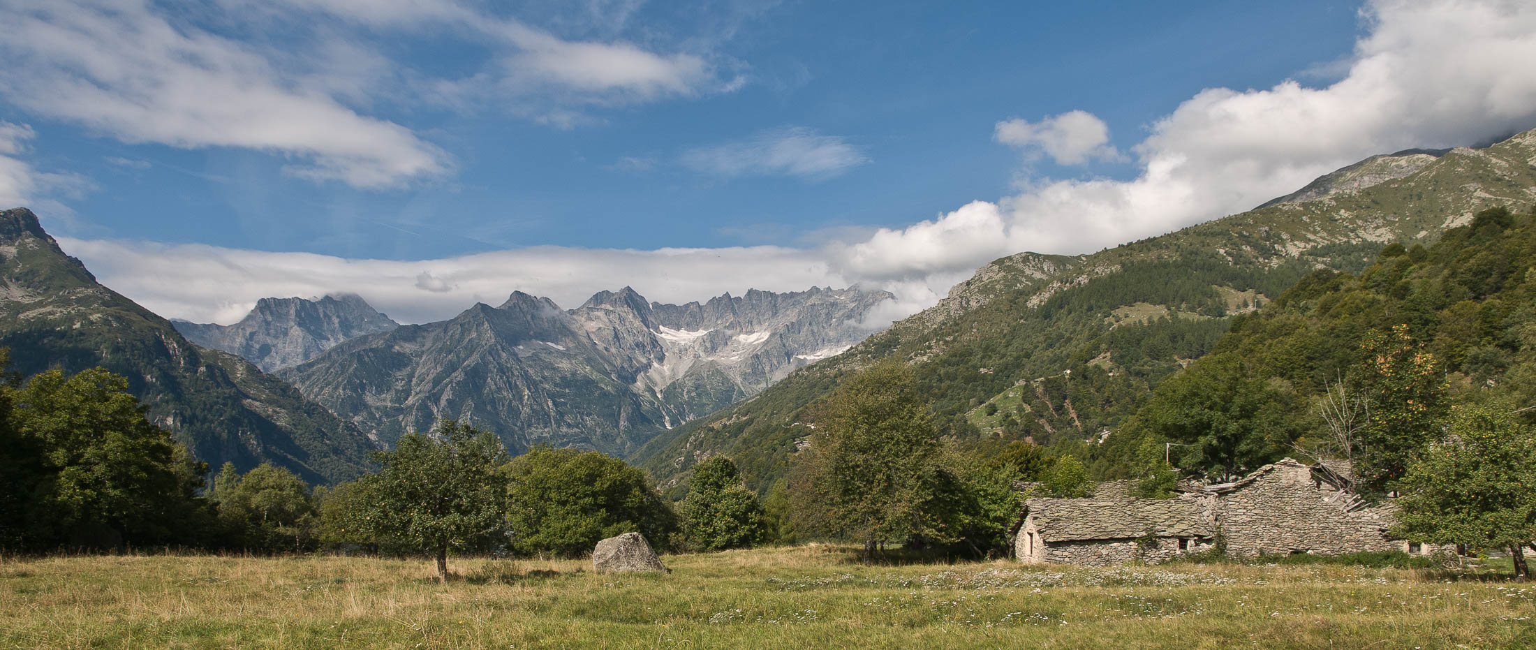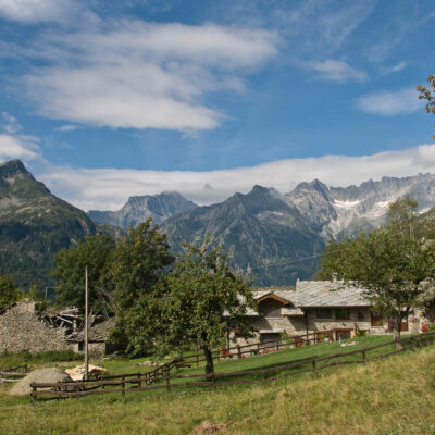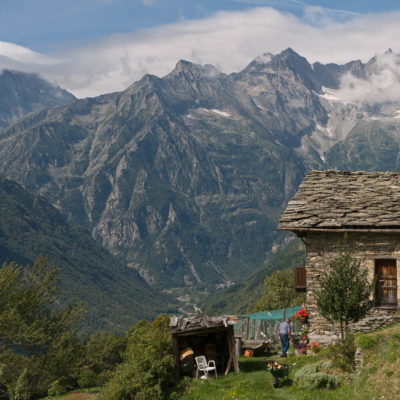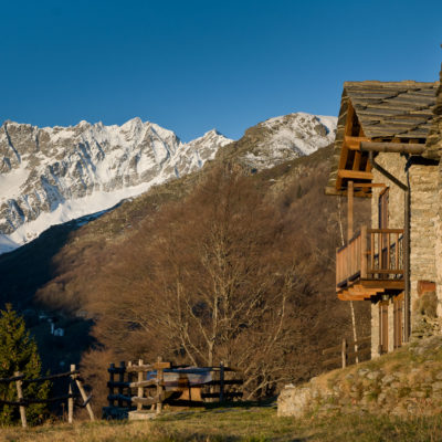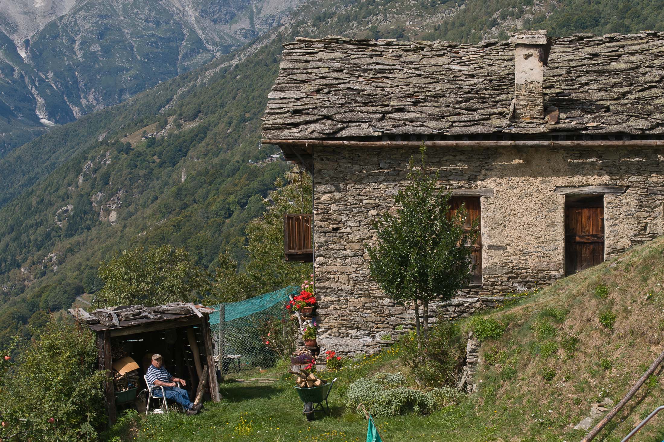 Vor dem Aufbruch lohnt zunächst ein Spaziergang über die Hochebene von Alboni mit seinen zahlreichen hübsch renovierten alten Bauernhäusern und der sehenswerten Cappella di San Grato. Alboni ist eine aus mehreren Häusergruppen bestehende Siedlung auf einer aussichtsreichen Hochfläche auf der Sonnenseite des Val Grande di Lanzo. Eine einzelne Häusergruppe nennt man hier Borgata, eine in Norditalien lokal übliche Bezeichnung für einen kleinen Ortsteil oder Weiler. Auf der Hochebene befinden sich die Weiler Grand‘Albone, Albone di mezzo mit dem Kirchlein Cappella di San Grato und Campo della Losa di sotto, ein wenig abseits am Waldrand die Häuser von Crest, wenige Gehminuten weiter oberhalb die Gebäudegruppen von Campo della Losa di mezzo, Campo della Losa di sopra und Castello. Zusammengefasst sind es „gli Alboni“, frei ins Deutsche übersetzt „die Alboni“ (Alboni ist im Italienischen der Plural von Albone). Alboni war einst ganzjährig bewohnt, in jedem Haus lebte eine Familie mit zwei oder drei Generationen unter einem Dach.
