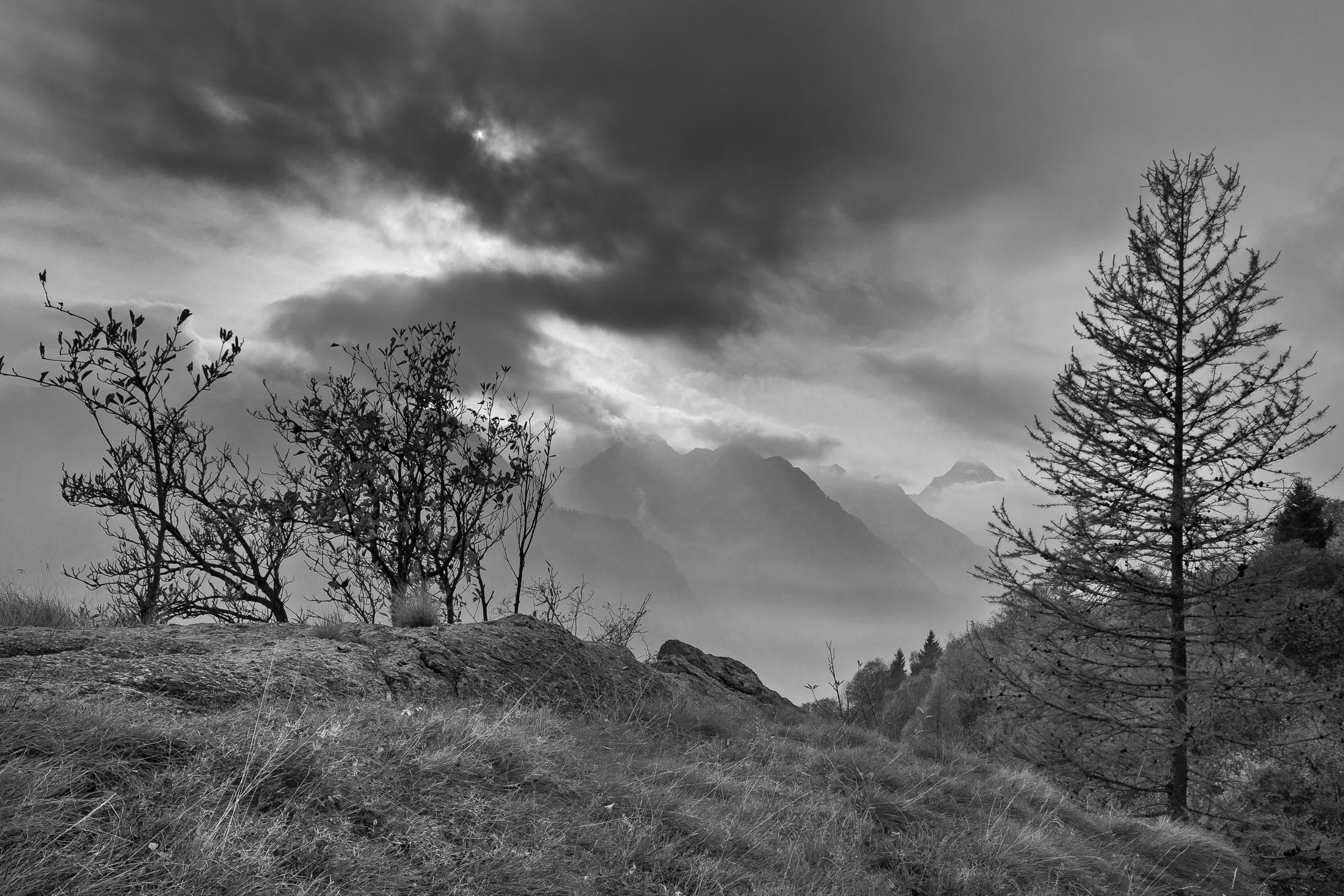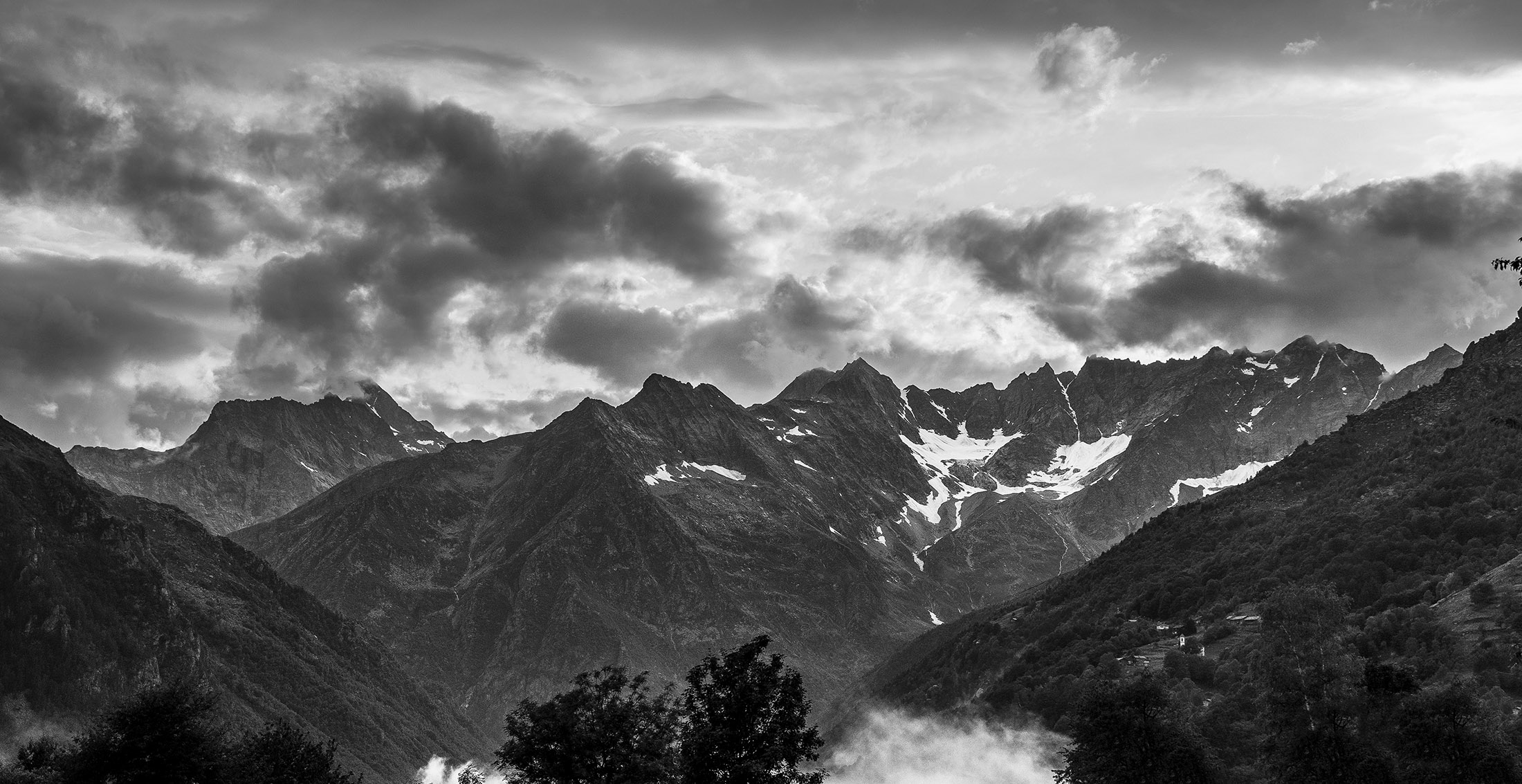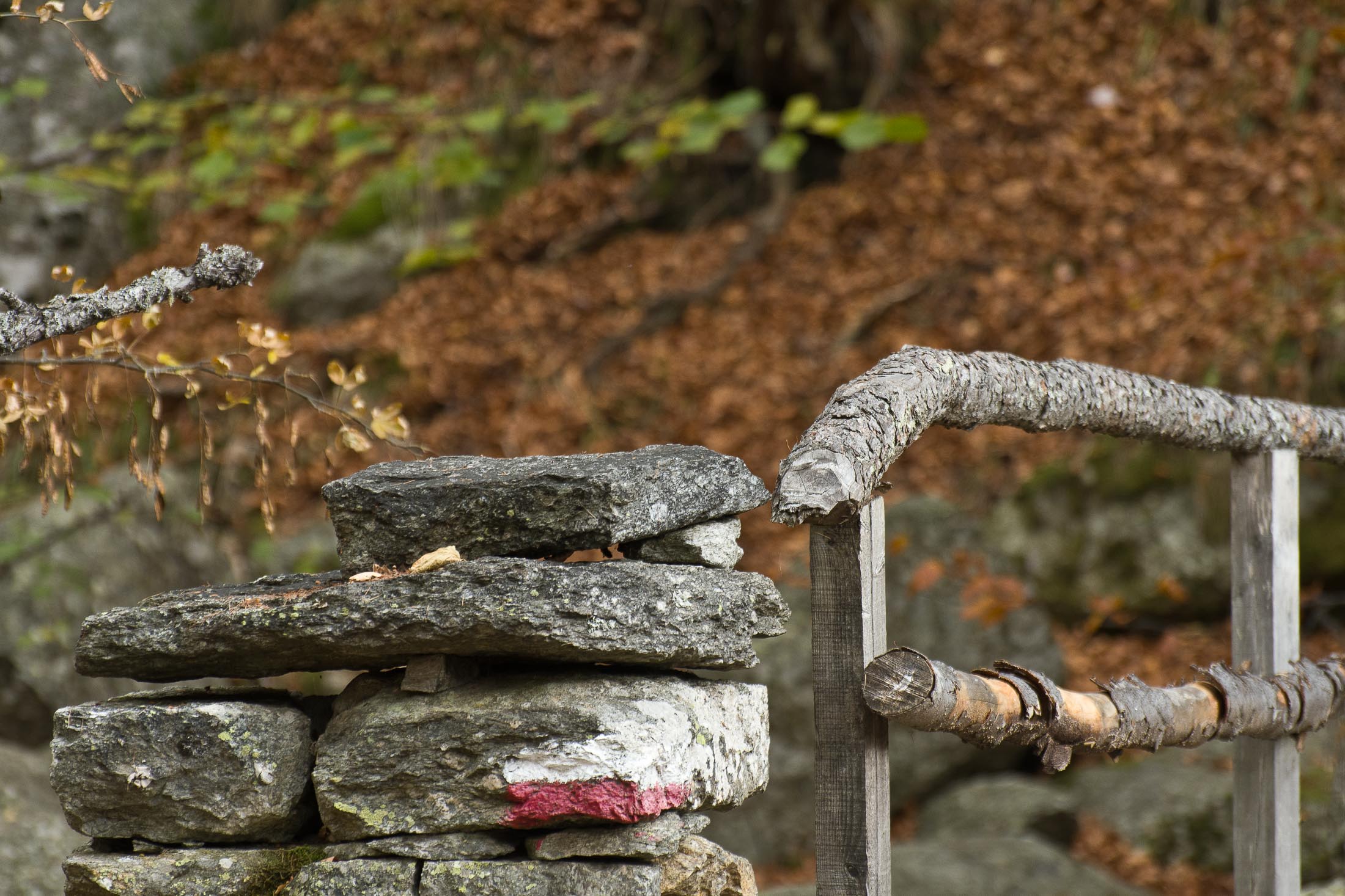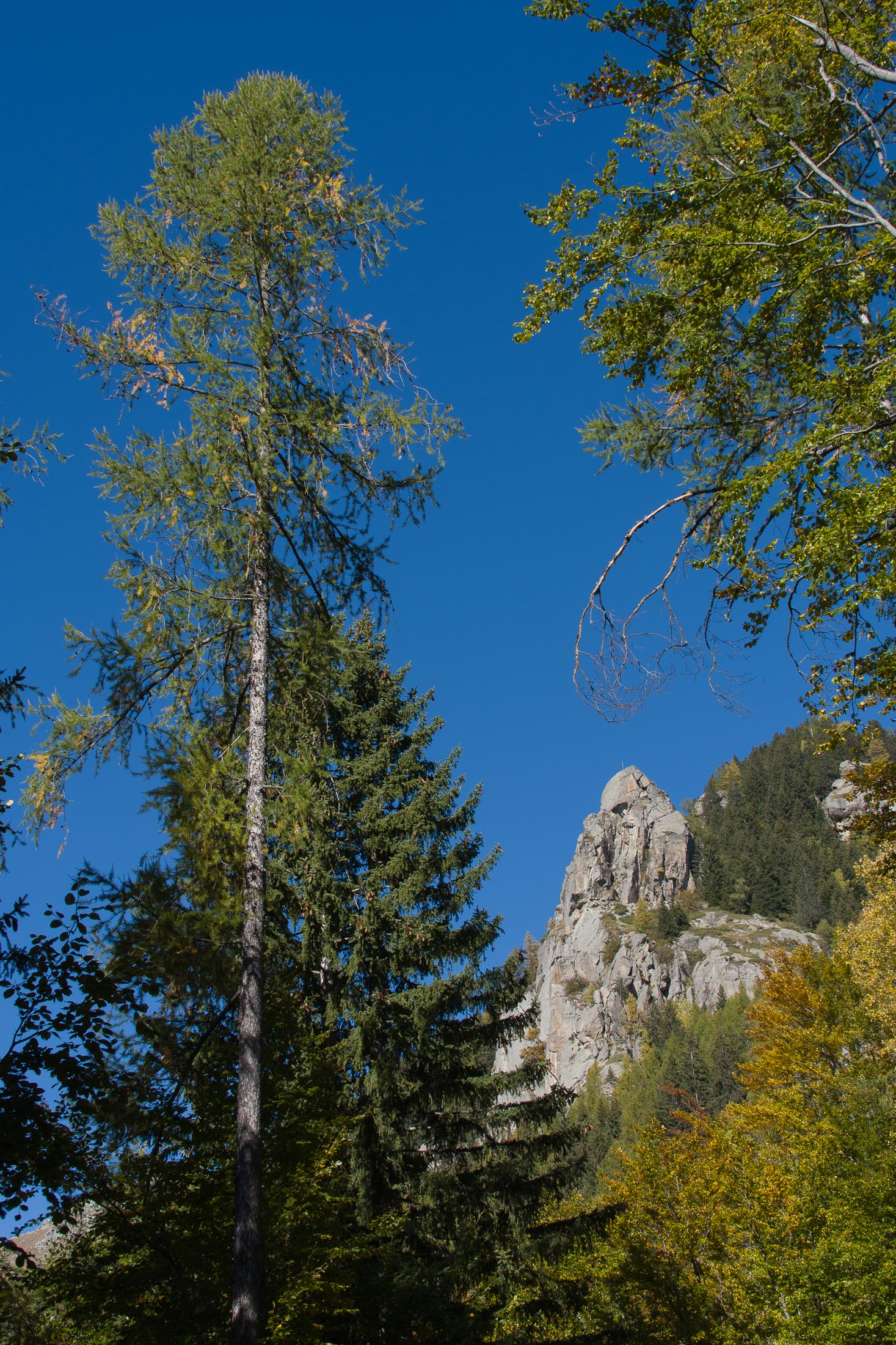Von Mea geht es wenige Höhenmeter abwärts bis zu einer hölzernen Brücke, die über den Rio Unghiasse führt. Schäumendes Gewässer und viel Getöse, ringsherum riesige Felsbrocken. Etwas unterhalb des Wasserfalls, unweit der Hütten von Mansonetta, befinden sich einige herrliche Badegumpen, die zu einer eiskalten Erfrischung einladen. Jenseits des Bergbaches steigt der Weg nun im Buchenwald an, am Wegesrand die beiden Alpgebäude von La Foggi (1541 m), im Gelände und in den einschlägigen Karten fälschlicherweise als Mansonetta bezeichnet. Weiter hinauf nach Biollè (1598 m), eine heute aufgegebene kleine Temporärsiedlung auf einer grossen Lichtung. Einige der verstreuten Hütten und Ställe liegen bereits in Ruinen, das umliegende Kulturland liegt brach und verbuscht im Laufe der Jahre infolge der Nichtnutzung. Eine vergessene Welt. Man blickt auf morsches Gebälk, was eines Tages unter der Last der schweren Dachplatten zusammenbricht. Die Stille ist wohltuend und macht zugleich nachdenklich.