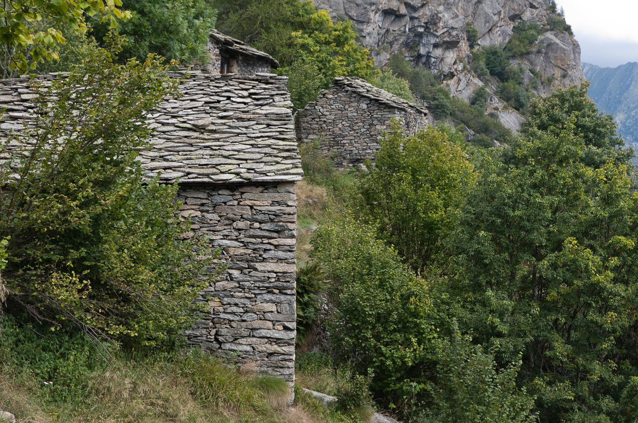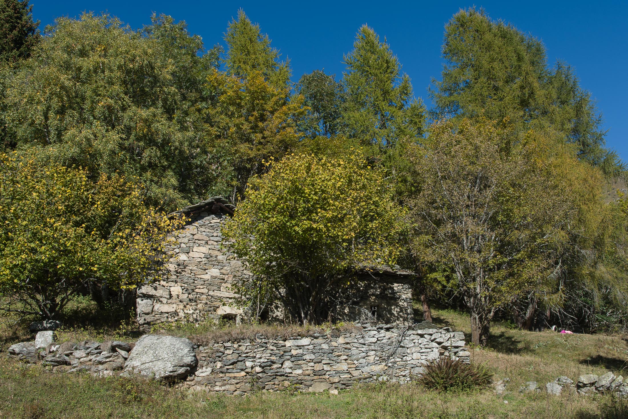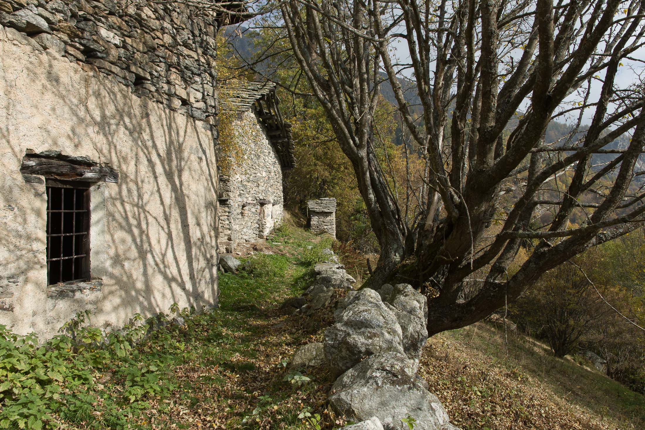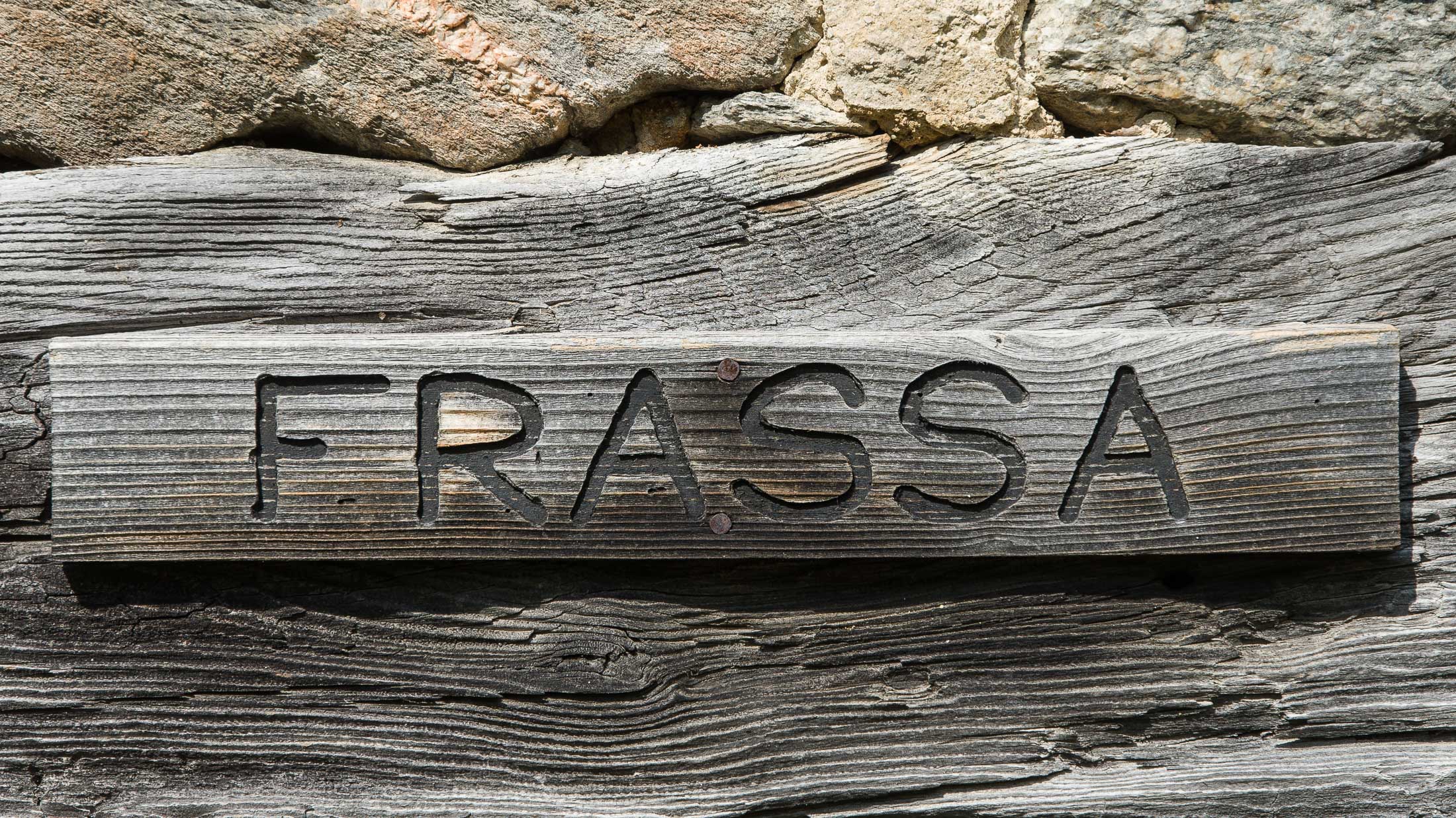Der Weiterweg verschwindet zunächst wieder im Wald. Nach einer felsigen Geländestufe, die auf einer Treppe überwunden wird, überquert man einen kleinen Seitenbach. In einigem Auf und Ab erreicht man schliesslich den heute verlassenen Ort La Frassa (1601 m) mit seiner kleinen Kirchenkapelle, die auf einem Felsvorsprung unmittelbar am Abgrund steht. Vor hundert Jahren blühte hier das Leben. Auch La Frassa ist eine sogenannte Temporärsiedlung und war bis vom Frühjahr bis zum Herbst von zahlreichen Familien dauerhaft bewohnt, die von der Berglandwirtschaft lebten. Heute steht man in einem Geisterdorf, was von der immer näher rückenden üppigen Vegetation bedrängt wird. Die meisten der Häuser und Ställe sind dem Verfall preisgegeben. Die in der Nähe befindlichen einst mühsam kultivierten Ackerbauterrassen sind völlig verwildert, die umliegenden Viehweiden sind bereits von Gestrüpp und vielen Birken überwuchert und werden eines Tages völlig im Wald verschwunden sein.
