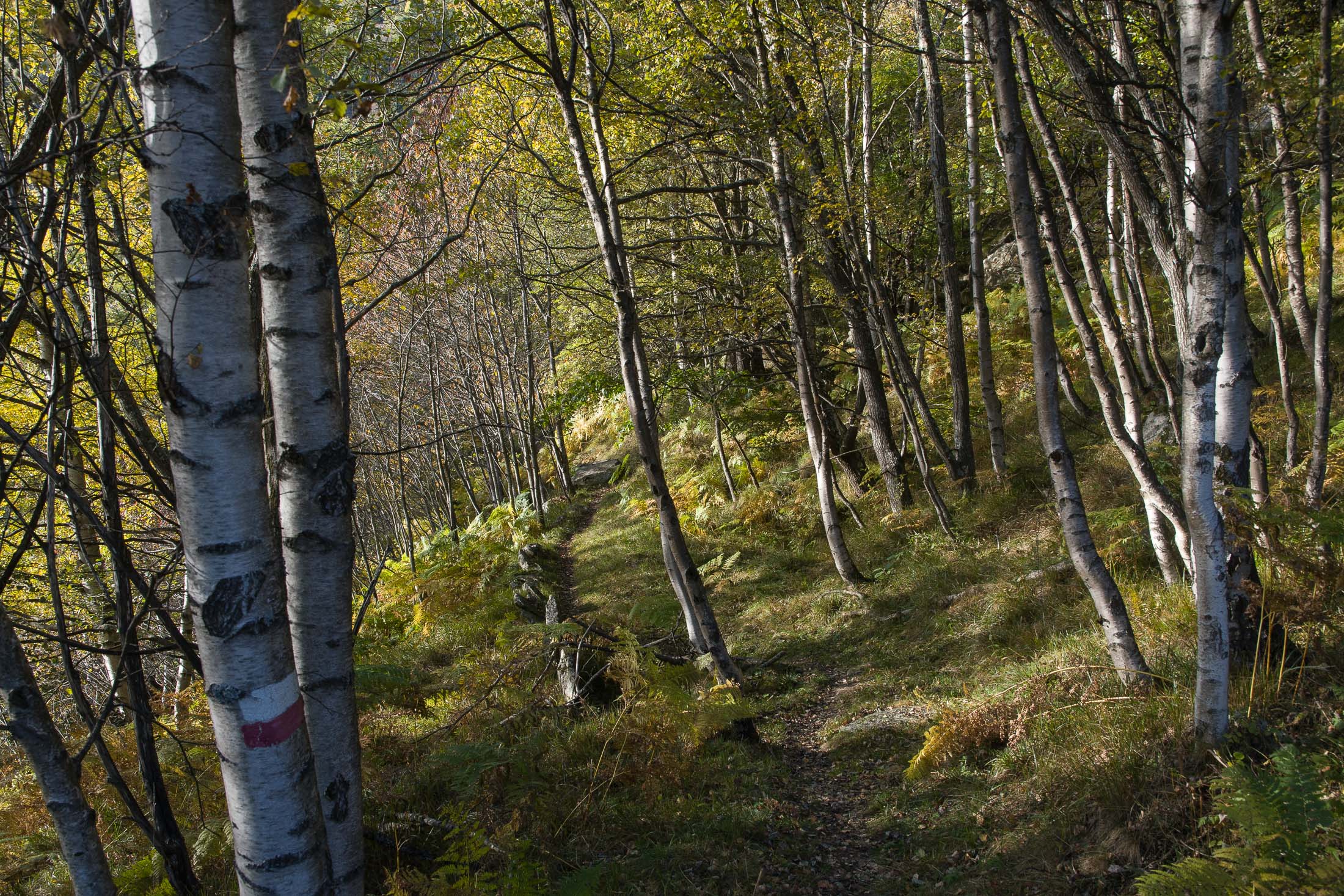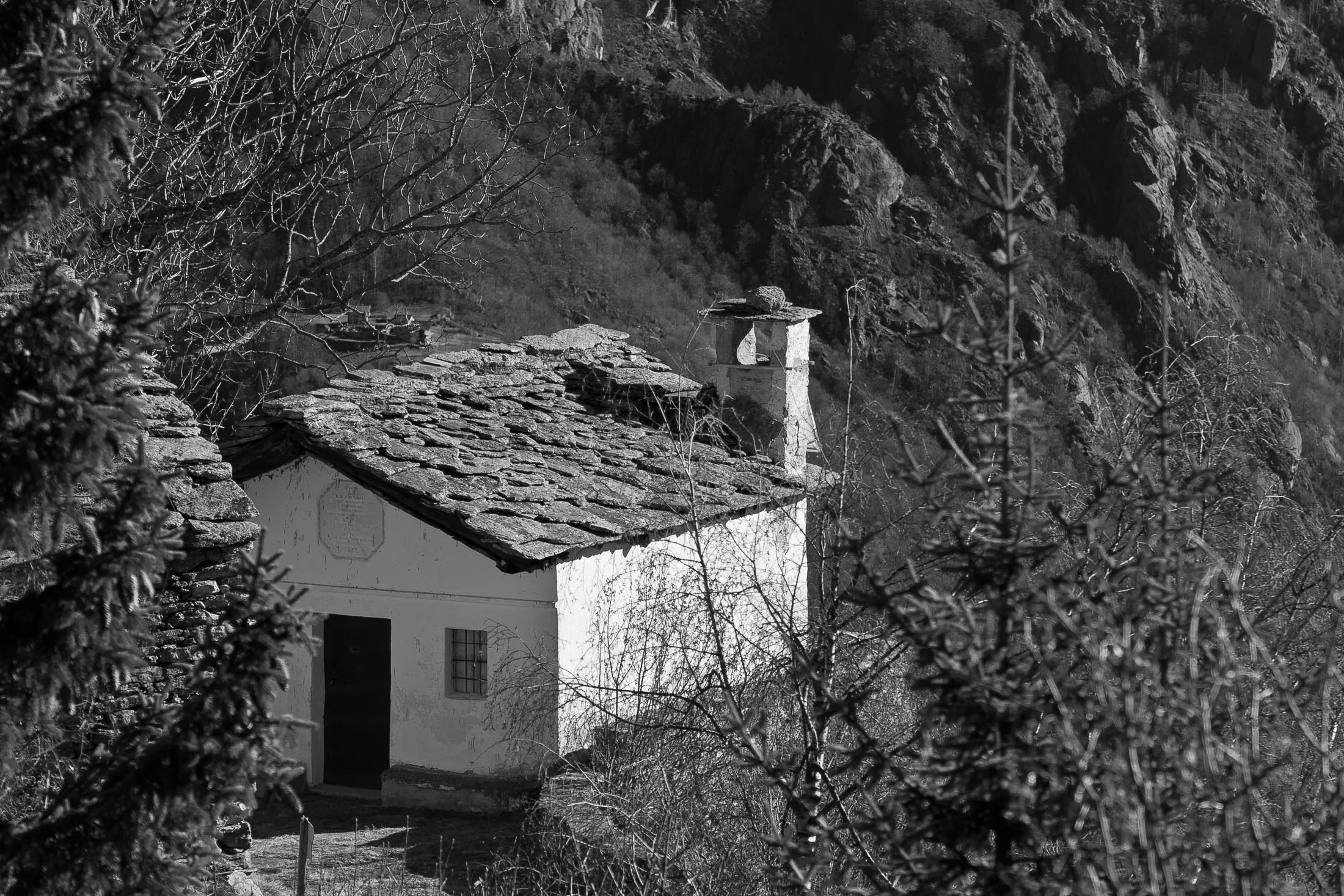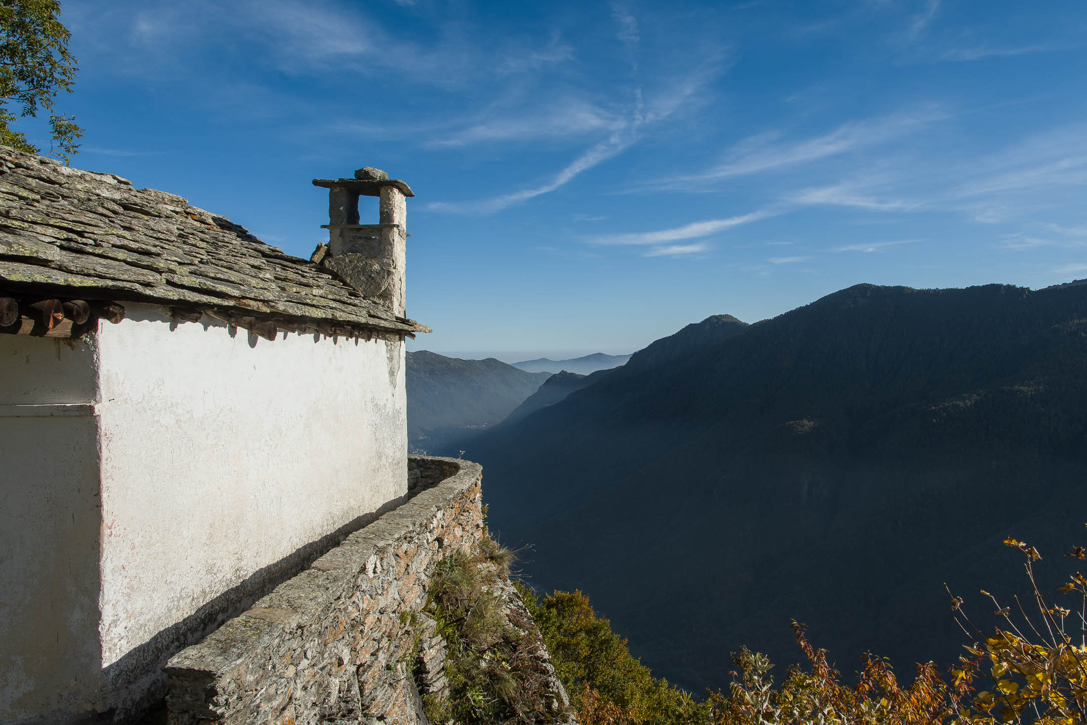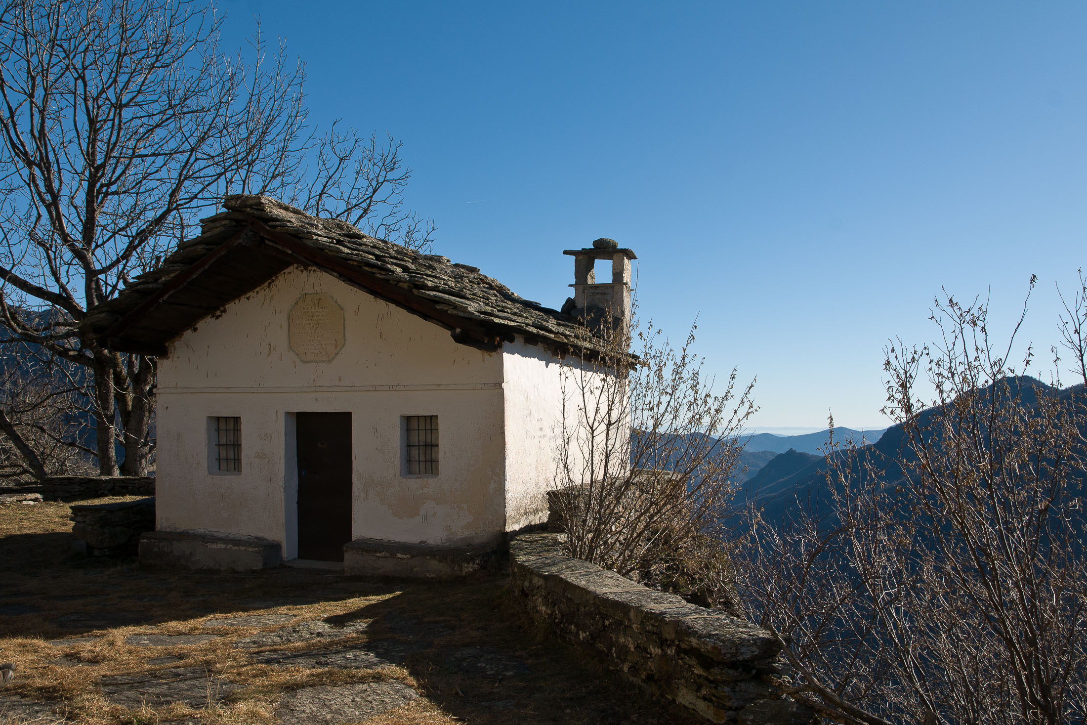 Der Weiterweg verschwindet zunächst wieder im Wald. Nach einer felsigen Geländestufe, die auf einer Treppe überwunden wird, überquert man einen kleinen Seitenbach. In einigem Auf und Ab erreicht man schliesslich den heute verlassenen Ort La Frassa (1601 m) mit seiner kleinen Kirchenkapelle, die auf einem Felsvorsprung unmittelbar am Abgrund steht. Vor hundert Jahren blühte hier das Leben. Auch La Frassa ist eine sogenannte Temporärsiedlung und war bis vom Frühjahr bis zum Herbst von zahlreichen Familien dauerhaft bewohnt, die von der Berglandwirtschaft lebten. Heute steht man in einem Geisterdorf, was von der immer näher rückenden üppigen Vegetation bedrängt wird. Die meisten der Häuser und Ställe sind dem Verfall preisgegeben. Die in der Nähe befindlichen einst mühsam kultivierten Ackerbauterrassen sind völlig verwildert, die umliegenden Viehweiden sind bereits von Gestrüpp und vielen Birken überwuchert und werden eines Tages völlig im Wald verschwunden sein.