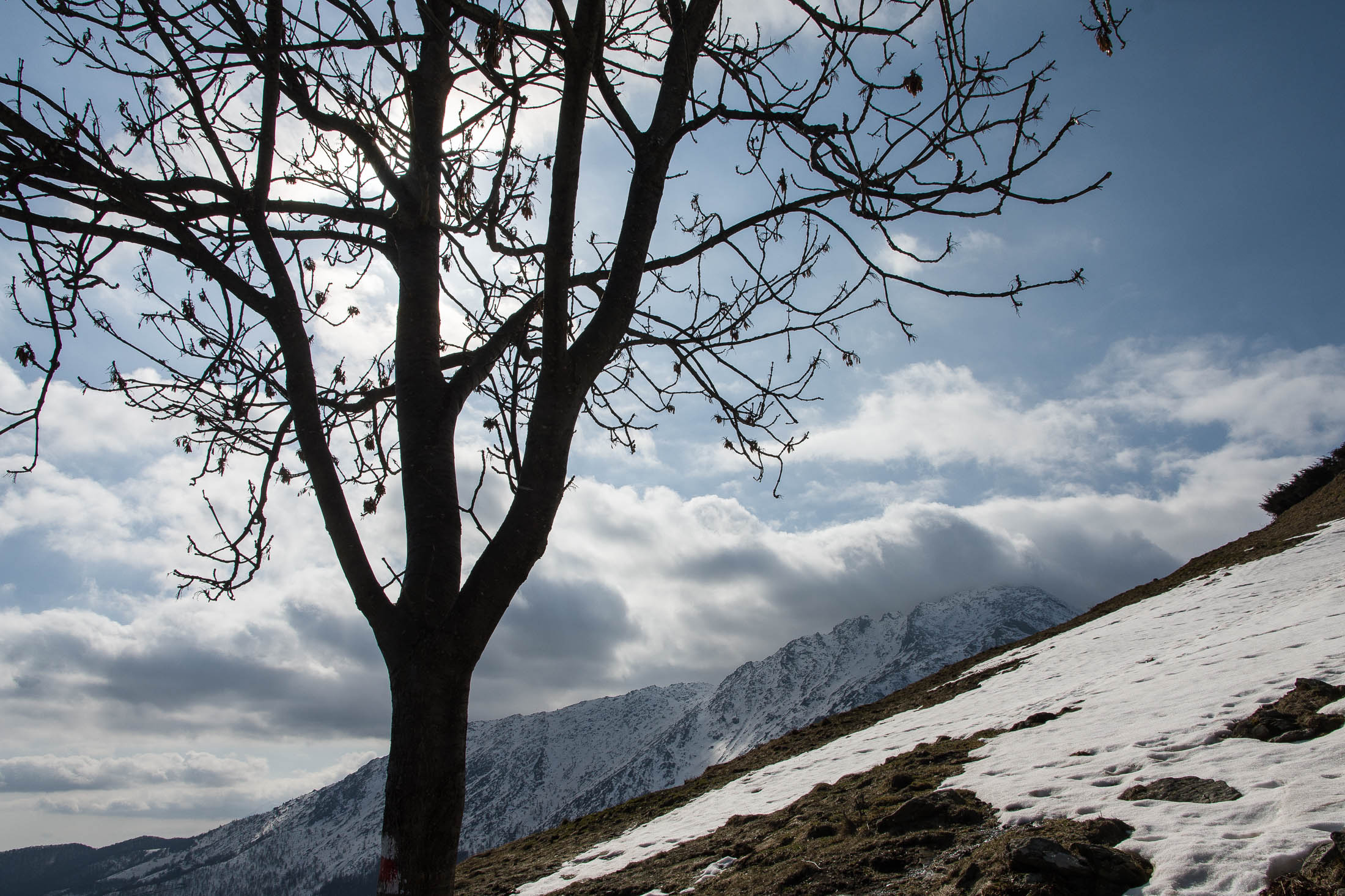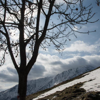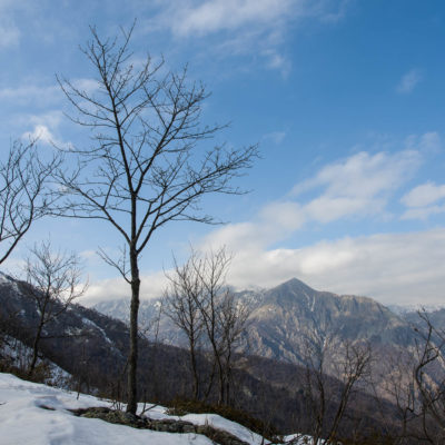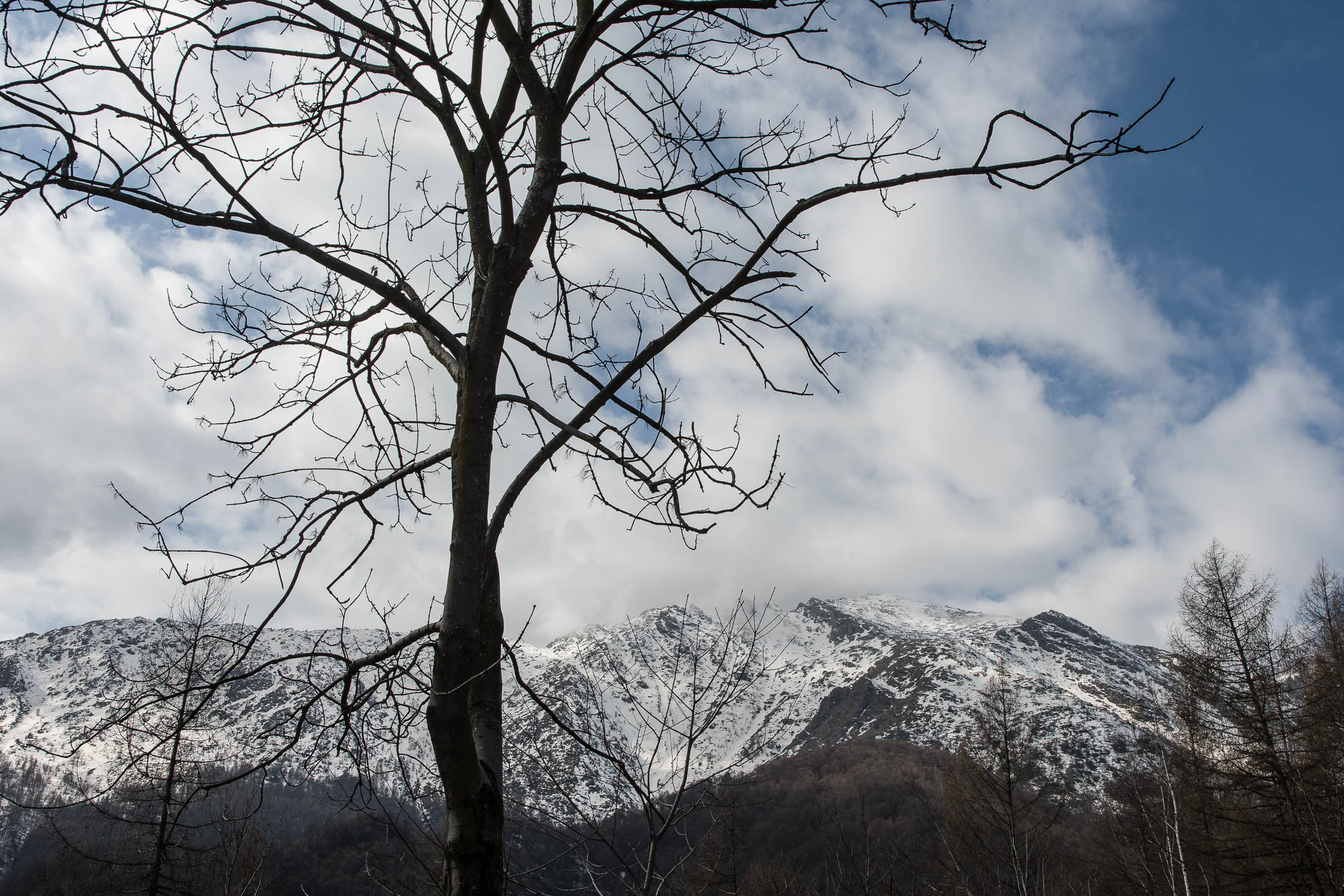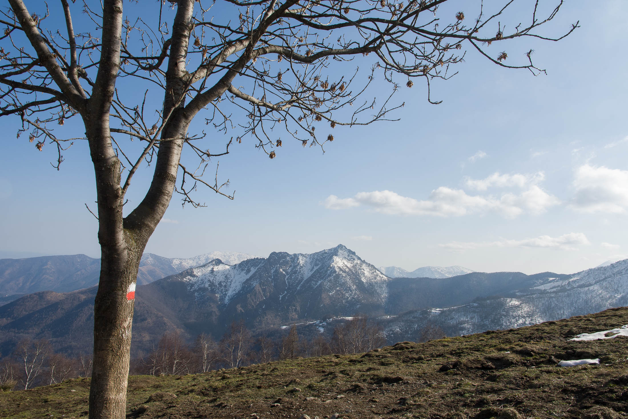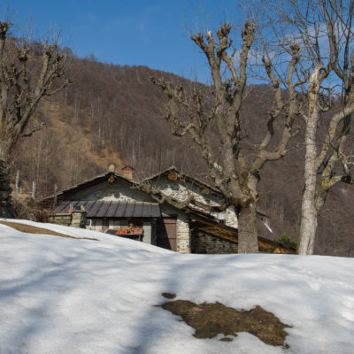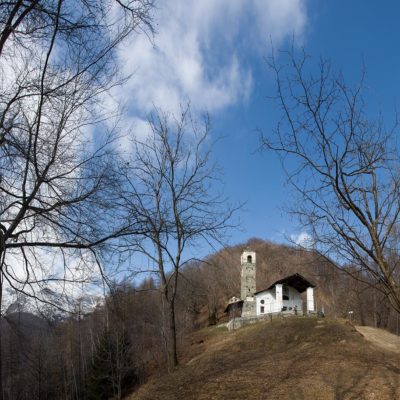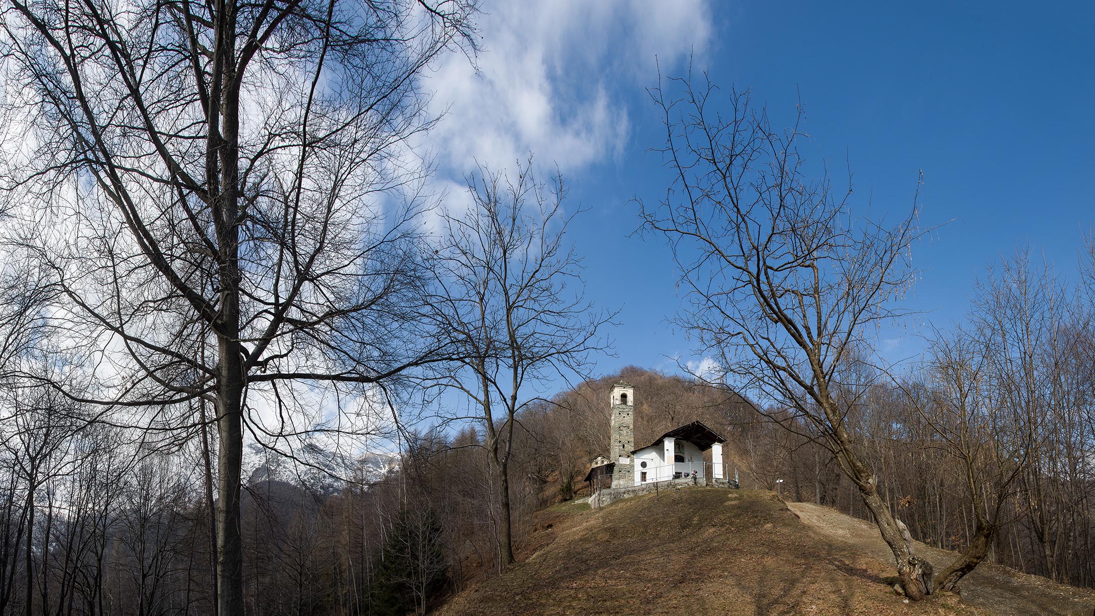 Am Ausgangspunkt kommt man an dem kleinen Weiler Giardino di Mezzenile vorbei. Der Ort war früher dauerhaft bewohnt, die Menschen lebten von der Berglandwirtschaft. Ein grösseres Anwesen wurde vor einigen Jahren renoviert und wird heute noch als Wochenendhaus genutzt, andere Häuser wiederum wurden bereits vor Jahrzehnten ihrem Schicksal überlassen und verfallen oder liegen bereits in Ruinen. Wenige Schritte entfernt auf einer kleiner Lichtung im Wald befindet sich die Cappella del Giardino (1059 m), die sehenswerte Kirche wurde im Jahr 2005 von Einheimischen in ehrenamtlicher Arbeit restauriert. Die Wanderung beginnt gemütlich. Hinter den Häusern von Giardino geht man an der Gabelung vor der Kirche rechts und folgt dem unbefestigten Alpsträsschen bis Sart (1151 m), eine ehemalige Alp, die Hütten werden noch instandgehalten und als Wochenenddomizil genutzt. Dort zweigt ein markierter Weg ab, auf diesem durch lauschigen Buchenwald zu der im Sommer bewohnten Alp von Baudè (1240 m, in manchen Karten auch Baudet genannt), mit schöner Aussicht auf das Bassa Valle und die Tiefebene. Durch Buchen- und Birkenwald geht es weiterhin bergauf, nach einer Weile geht der Pfad in einen grasigen Fahrweg über, den man ein wenig oberhalb bei den Ruinen von L‘Orgeri (1320 m) wieder verlässt. Kurz darauf erreicht man offenes Gelände und steigt über Wiesen und Weiden hinauf zur wunderschön gelegenen Alpe Belvedere (1452 m). Das ehemalige Alpgebäude wurde vor einigen Jahren mit grossem Aufwand restauriert und zu Ferienwohnungen umgebaut. Menschen trifft man hier oben jedoch nur selten. Der klangvolle Name ist schlichtweg Programm, von der aussichtsreichen Sonnenterrasse geniesst man fantastische Weitblicke. Wem das Panorama noch nicht reicht, von hier lohnt ein Abstecher auf den nahen Gipfel der Testa della Cialma (+1,5 Std. hin und zurück, > siehe hier).