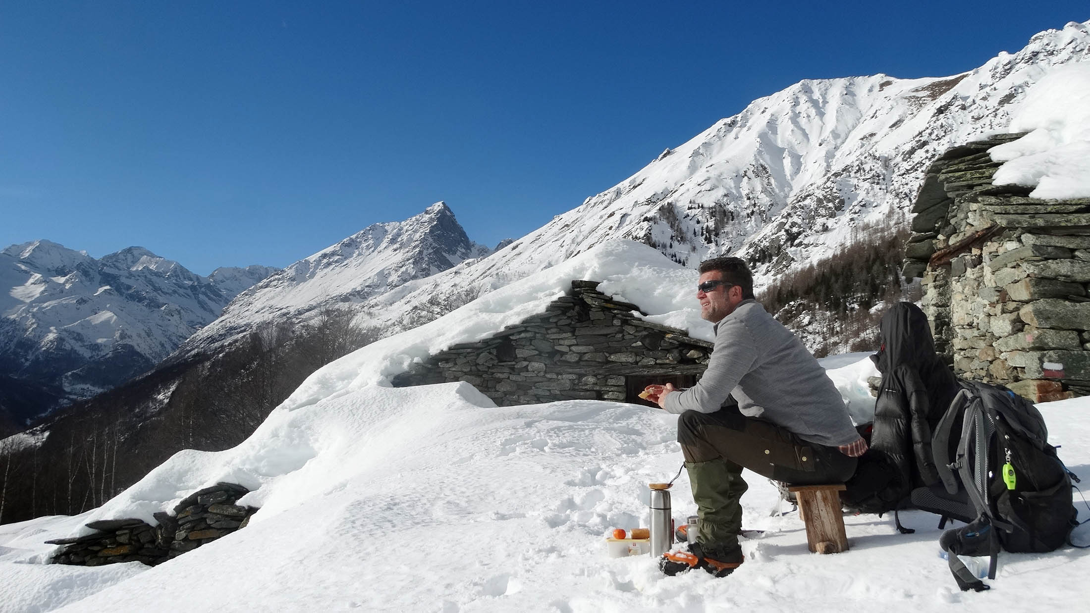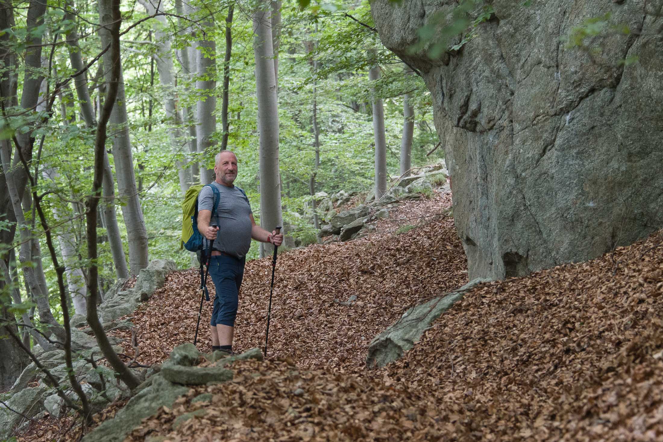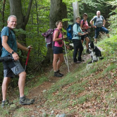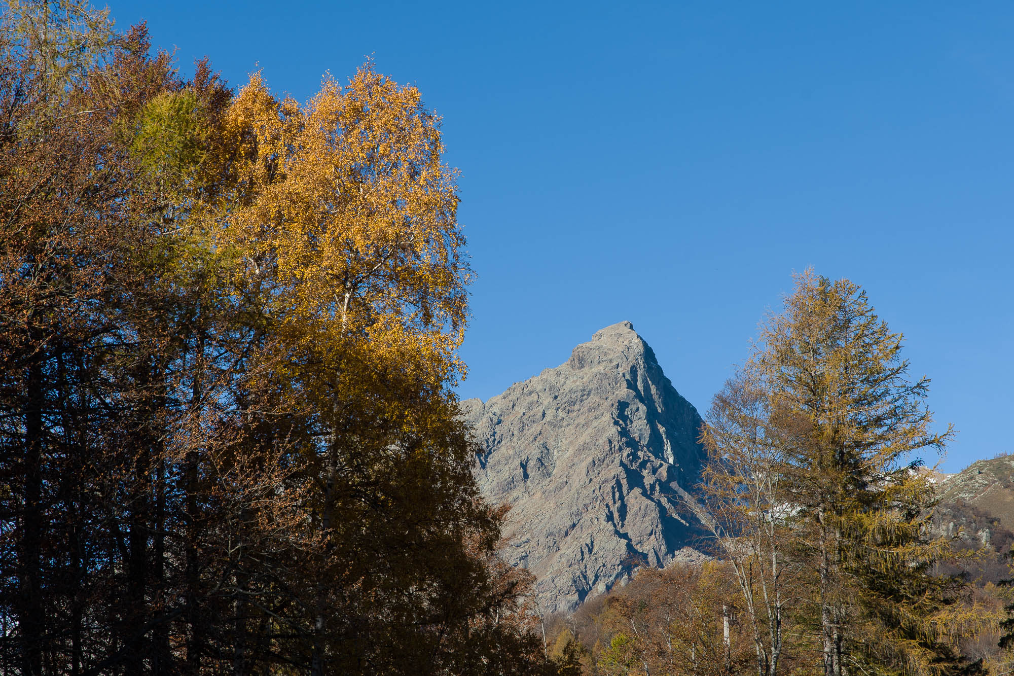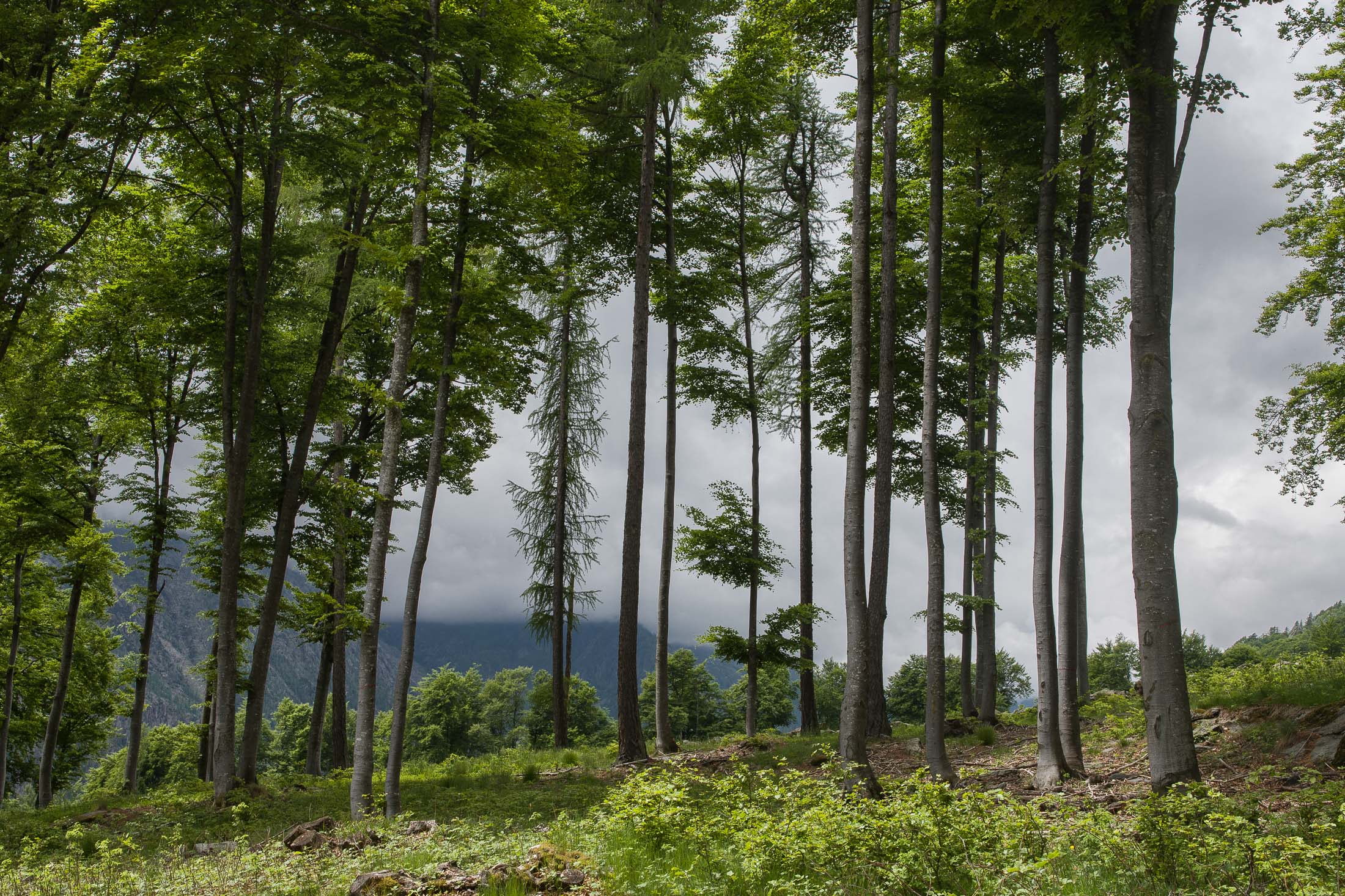 Vom grossen Dorfplatz im Ortskern von Ala di Stura (1075 m) folgt man zunächst etwa 500 m der Strasse talaufwärts bis zu einem restaurierten Bildstock. Dort beginnt ein unmarkierter alter Saumweg, der anfangs über kunstvoll angelegte Treppenstufen durch den Wald in einem Viertelstündchen nach Lombarda (1182 m) führt. Hier scheinen die Uhren stillzustehen, uralte Gemäuer, bröckelnder Putz, meterhohes Unkraut vor den Türen und Fenstern. Die meisten der Bauernhäuser wurden bereits vor Jahrzehnten verlassen, lediglich ein Anwesen ist noch dauerhaft bewohnt. Hinter den oberen Gebäuden mündet der Weg in ein unbefestigten Fahrweg, den man nur wenig später bei einem Wegweiser wieder verlässt. Auf einer wunderschönen alten Mulattiera (= Saumweg oder Maultierweg) geht es entlang von Trockensteinmauern in Kürze hinauf zur grossen Lichtung von Chiottero (1270 m), von den Einheimischen auch Ciautè genannt. Auch hier blickt man auf Ruinen, nur noch das kleine Kirchlein und ein einziges Gebäude werden heute noch instand gehalten. Der Weiterweg führt durch den Wald zum Pian d‘Attia (1382 m), eine ehemalige Temporärsiedlung am Rande einer aussichtsreichen kleine Hochfläche. Einige der Häuser und Ställe wurden bereits vor langer Zeit aufgegeben, andere wiederum sind hübsch renoviert und werden von den Einheimischen noch als Wochenendhäuschen genutzt. Wenige Schritte oberhalb am Waldrand kommt man zu einer unbeschilderten Weggabelung, wo es geradeaus (Richtung Norden) weitergeht, der Abzweig links Richtung Pianfè bleibt unbeachtet. Der Weiterweg führt nun durch dichten Buchenwald einen abschnittsweise steilen Rücken hinauf. Nach einer knappen Stunde liegt der Wald hinter einem und man erreicht die weitläufige Alpe d‘Attia (1740 m). Ein traumhaft schönes Fleckchen, hier kann man stundenlang verweilen und das tolle Panorama auf die Berge des Val d‘Ala geniessen. Die obere der beiden Gebäudegruppen wird auch heute noch in den Sommermonaten von einer sympathischen Familie aus dem Tal bewirtschaftet.