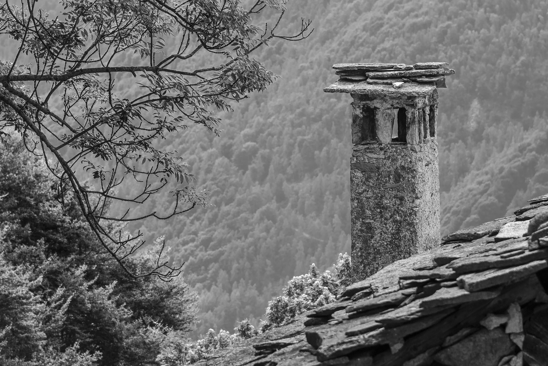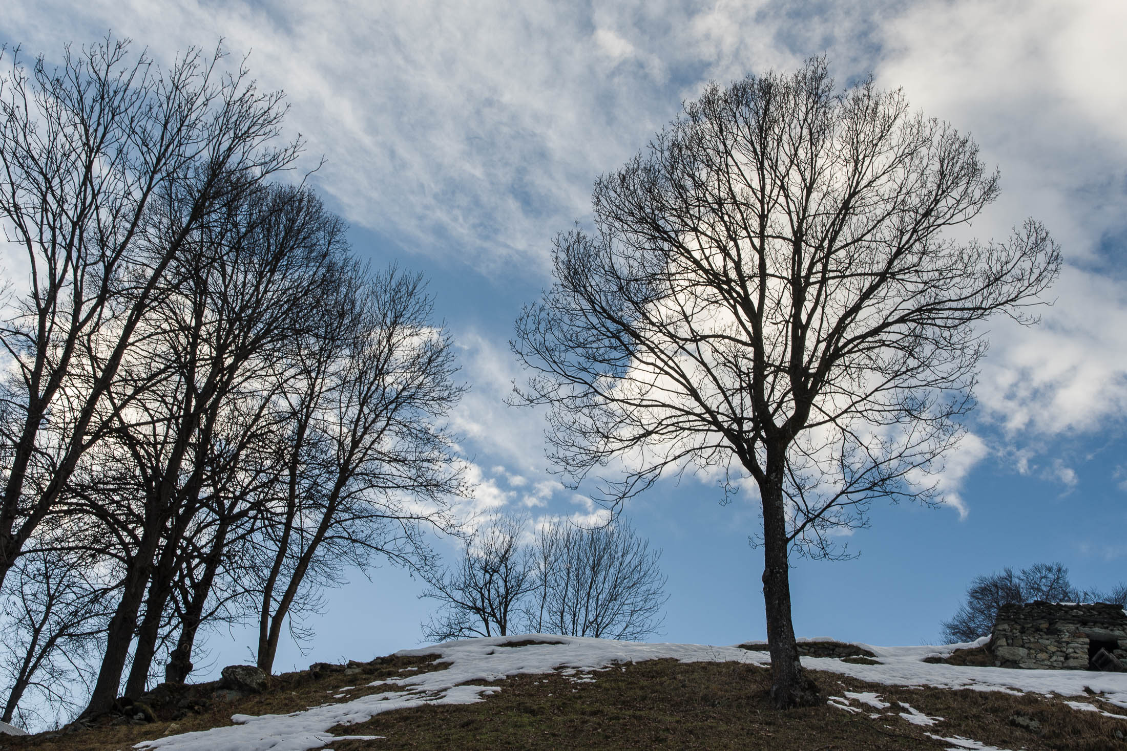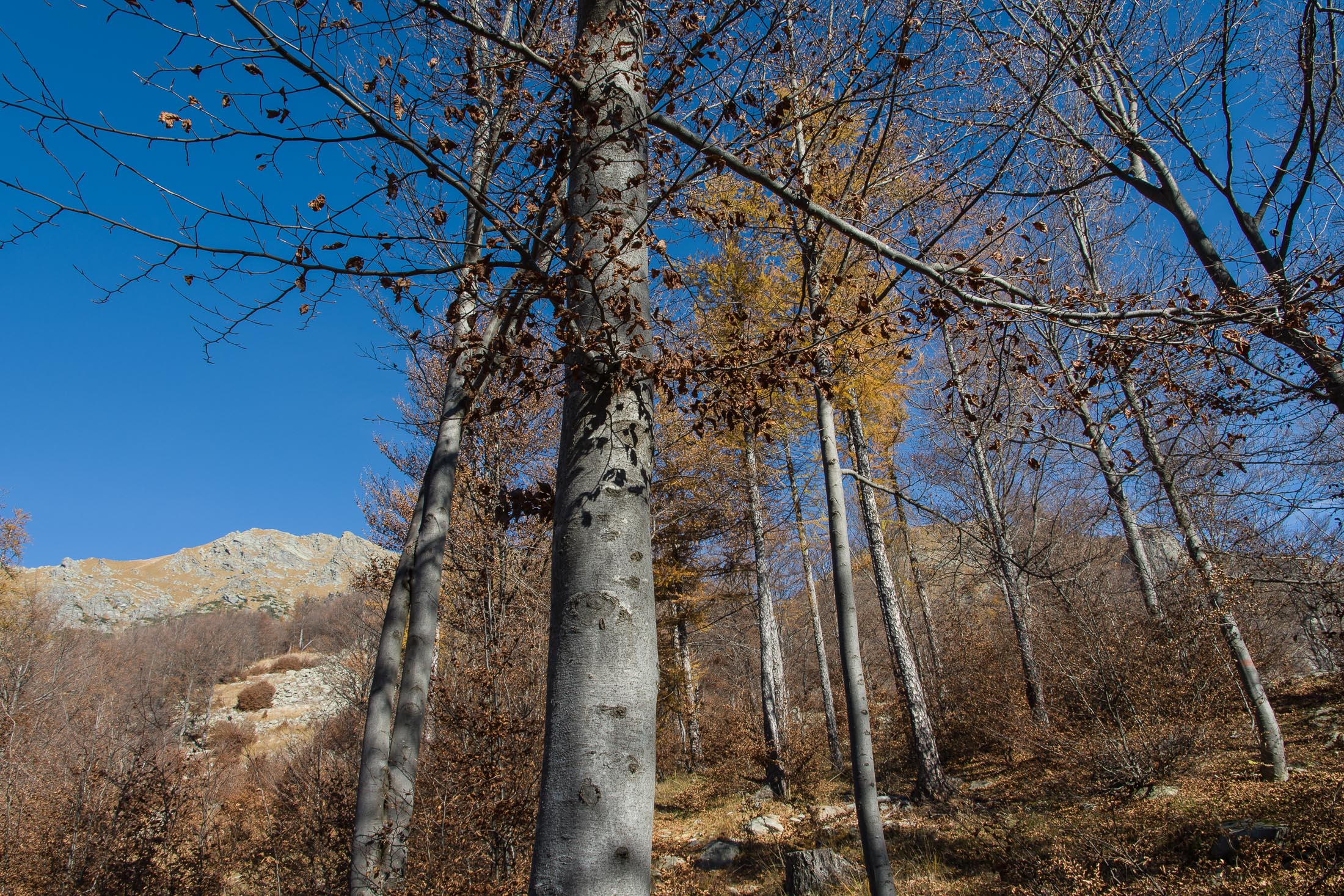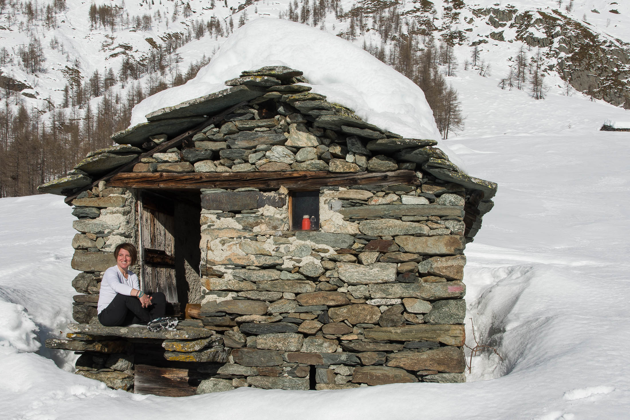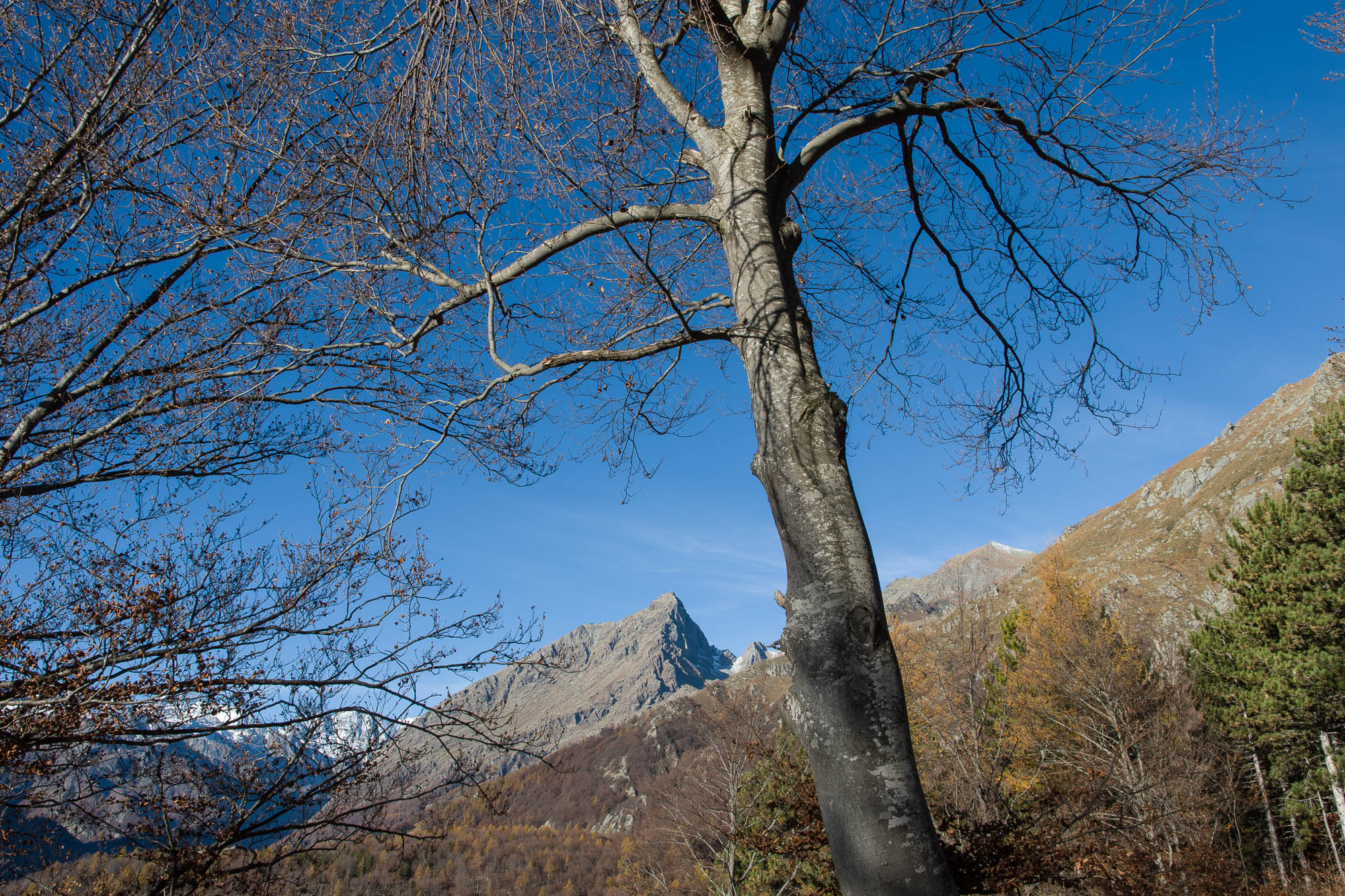 Vom grossen Dorfplatz im Ortskern von Ala di Stura (1075 m) folgt man zunächst etwa 500 m der Strasse talaufwärts bis zu einem restaurierten Bildstock. Dort beginnt ein unmarkierter alter Saumweg, der anfangs über kunstvoll angelegte Treppenstufen durch den Wald in einem Viertelstündchen nach Lombarda (1182 m) führt. Hier scheinen die Uhren stillzustehen, uralte Gemäuer, bröckelnder Putz, meterhohes Unkraut vor den Türen und Fenstern. Die meisten der Bauernhäuser wurden bereits vor Jahrzehnten verlassen, lediglich ein Anwesen ist noch dauerhaft bewohnt. Hinter den oberen Gebäuden mündet der Weg in ein unbefestigten Fahrweg, den man nur wenig später bei einem Wegweiser wieder verlässt. Auf einer wunderschönen alten Mulattiera (= Saumweg oder Maultierweg) geht es entlang von Trockensteinmauern in Kürze hinauf zur grossen Lichtung von Chiottero (1270 m), von den Einheimischen auch Ciautè genannt. Auch hier blickt man auf Ruinen, nur noch das kleine Kirchlein und ein einziges Gebäude werden heute noch instand gehalten. Der Weiterweg führt durch den Wald zum Pian d‘Attia (1382 m), eine ehemalige Temporärsiedlung am Rande einer aussichtsreichen kleine Hochfläche. Einige der Häuser und Ställe wurden bereits vor langer Zeit aufgegeben, andere wiederum sind hübsch renoviert und werden von den Einheimischen noch als Wochenendhäuschen genutzt. Wenige Schritte oberhalb am Waldrand kommt man zu einer unbeschilderten Weggabelung, wo es geradeaus (Richtung Norden) weitergeht, der Abzweig links Richtung Pianfè bleibt unbeachtet. Der Weiterweg führt nun durch dichten Buchenwald einen abschnittsweise steilen Rücken hinauf. Nach einer knappen Stunde liegt der Wald hinter einem und man erreicht die weitläufige Alpe d‘Attia (1740 m). Ein traumhaft schönes Fleckchen, hier kann man stundenlang verweilen und das tolle Panorama auf die Berge des Val d‘Ala geniessen. Die obere der beiden Gebäudegruppen wird auch heute noch in den Sommermonaten von einer sympathischen Familie aus dem Tal bewirtschaftet.