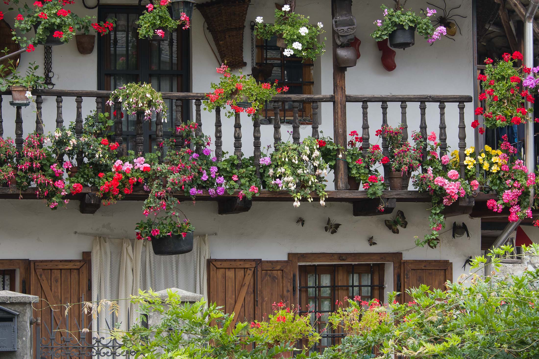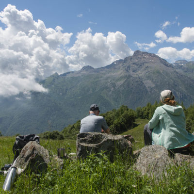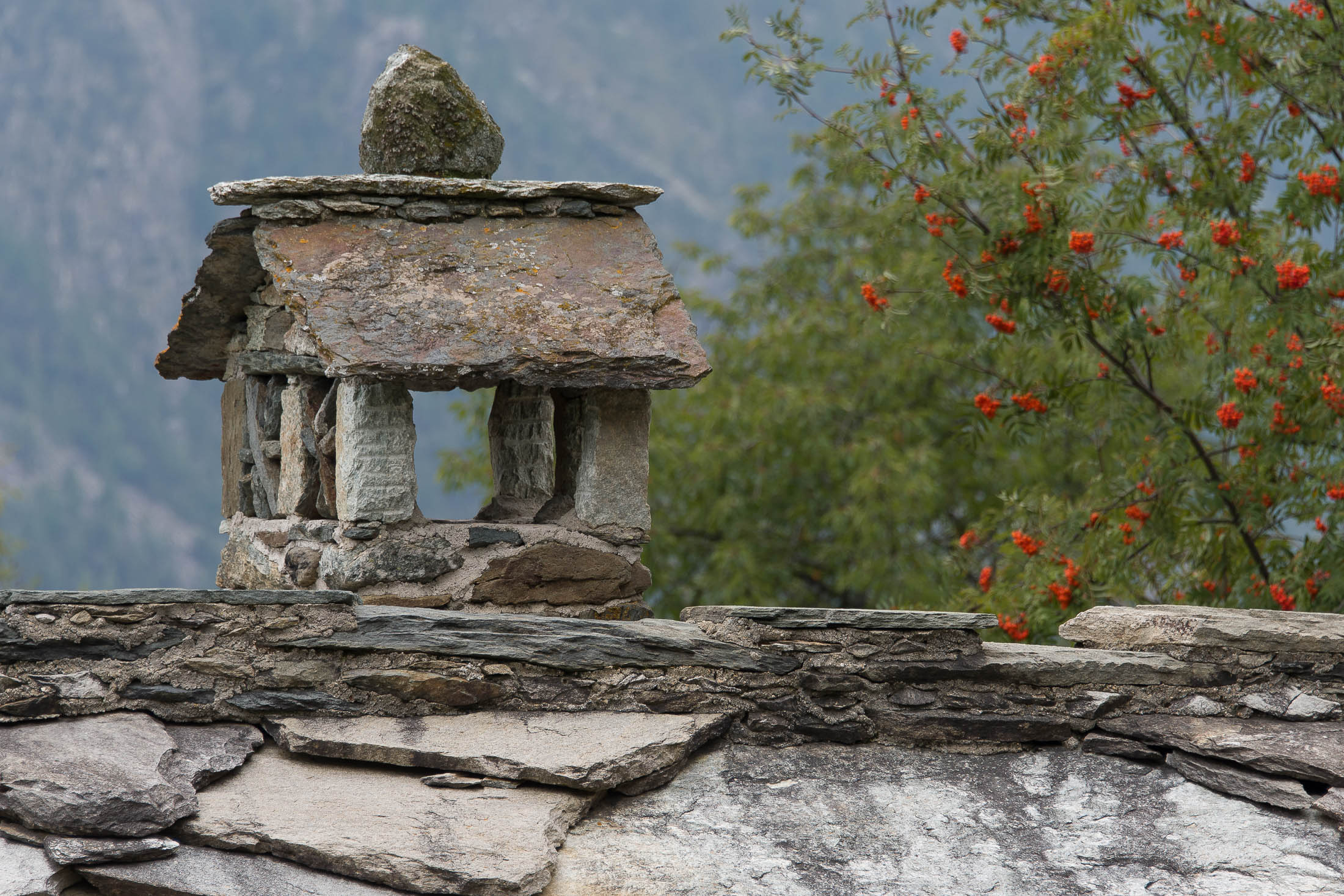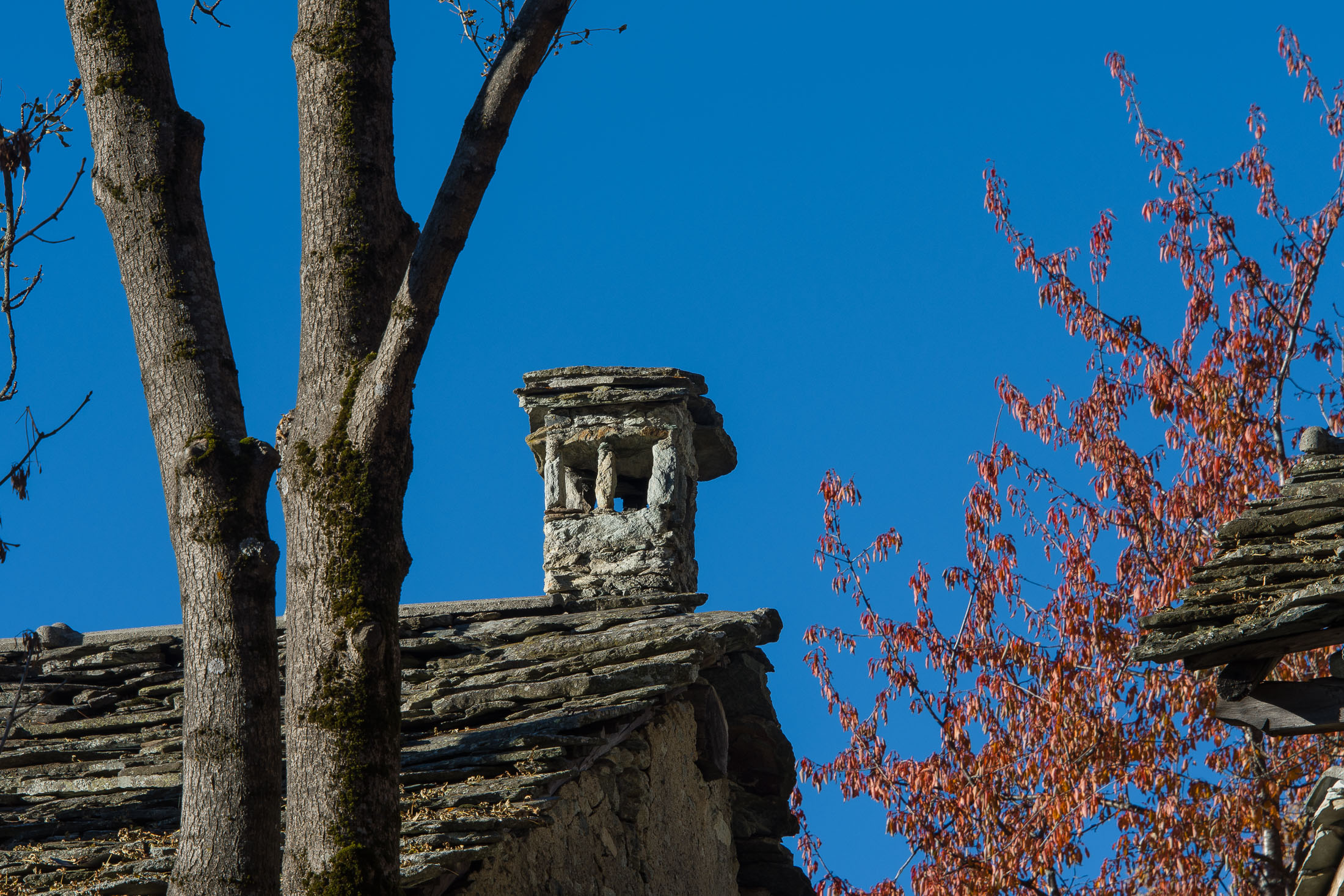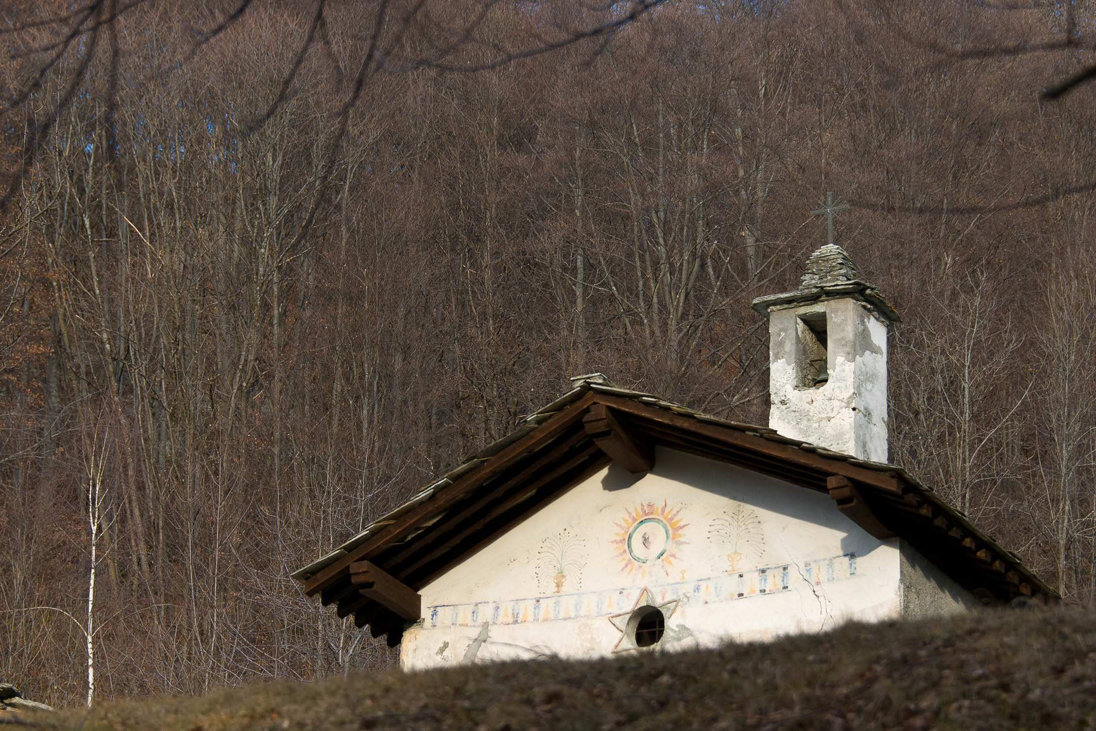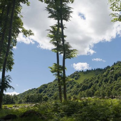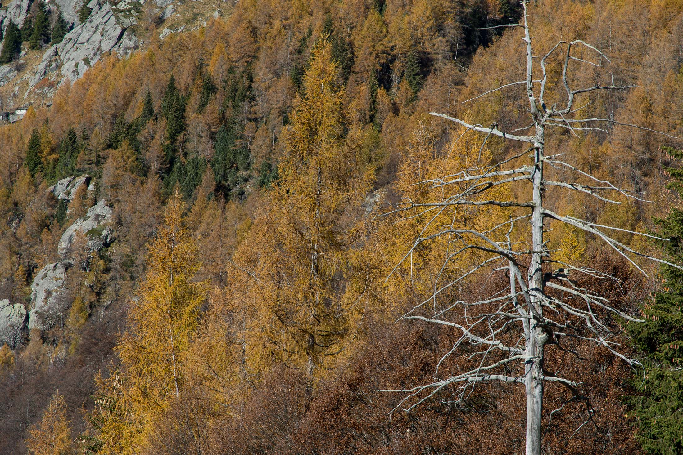 Vom grossen Dorfplatz im Ortskern von Ala di Stura (1075 m) folgt man zunächst etwa 500 m der Strasse talaufwärts bis zu einem restaurierten Bildstock. Dort beginnt ein unmarkierter alter Saumweg, der anfangs über kunstvoll angelegte Treppenstufen durch den Wald in einem Viertelstündchen nach Lombarda (1182 m) führt. Hier scheinen die Uhren stillzustehen, uralte Gemäuer, bröckelnder Putz, meterhohes Unkraut vor den Türen und Fenstern. Die meisten der Bauernhäuser wurden bereits vor Jahrzehnten verlassen, lediglich ein Anwesen ist noch dauerhaft bewohnt. Hinter den oberen Gebäuden mündet der Weg in ein unbefestigten Fahrweg, den man nur wenig später bei einem Wegweiser wieder verlässt. Auf einer wunderschönen alten Mulattiera (= Saumweg oder Maultierweg) geht es entlang von Trockensteinmauern in Kürze hinauf zur grossen Lichtung von Chiottero (1270 m), von den Einheimischen auch Ciautè genannt. Auch hier blickt man auf Ruinen, nur noch das kleine Kirchlein und ein einziges Gebäude werden heute noch instand gehalten. Der Weiterweg führt durch den Wald zum Pian d‘Attia (1382 m), eine ehemalige Temporärsiedlung am Rande einer aussichtsreichen kleine Hochfläche. Einige der Häuser und Ställe wurden bereits vor langer Zeit aufgegeben, andere wiederum sind hübsch renoviert und werden von den Einheimischen noch als Wochenendhäuschen genutzt. Wenige Schritte oberhalb am Waldrand kommt man zu einer unbeschilderten Weggabelung, wo es geradeaus (Richtung Norden) weitergeht, der Abzweig links Richtung Pianfè bleibt unbeachtet. Der Weiterweg führt nun durch dichten Buchenwald einen abschnittsweise steilen Rücken hinauf. Nach einer knappen Stunde liegt der Wald hinter einem und man erreicht die weitläufige Alpe d‘Attia (1740 m). Ein traumhaft schönes Fleckchen, hier kann man stundenlang verweilen und das tolle Panorama auf die Berge des Val d‘Ala geniessen. Die obere der beiden Gebäudegruppen wird auch heute noch in den Sommermonaten von einer sympathischen Familie aus dem Tal bewirtschaftet.