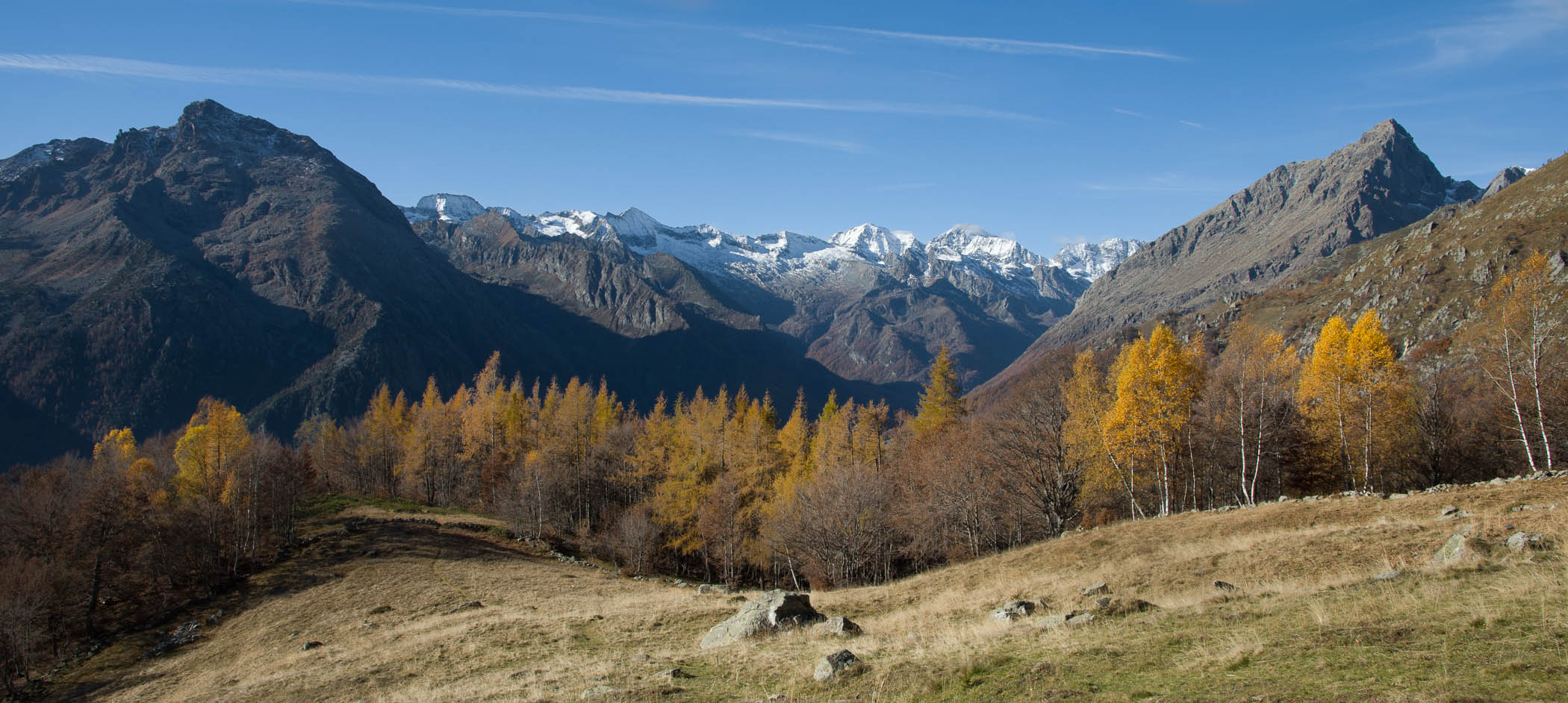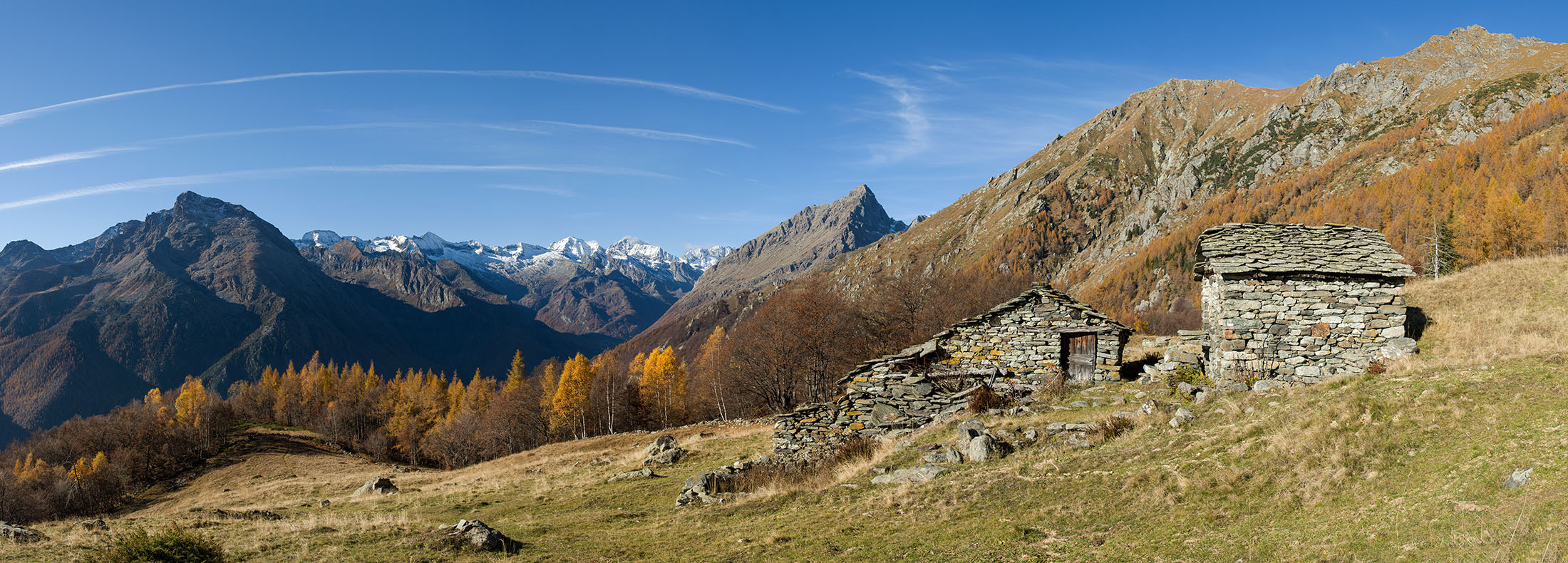 Herrliche Rundwanderung auf meist einfach zu begehenden Wegen über dem mittleren Val d‘Ala.