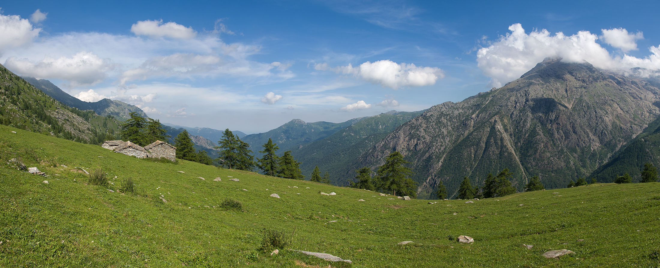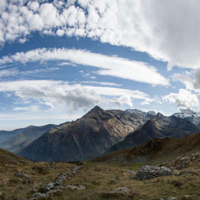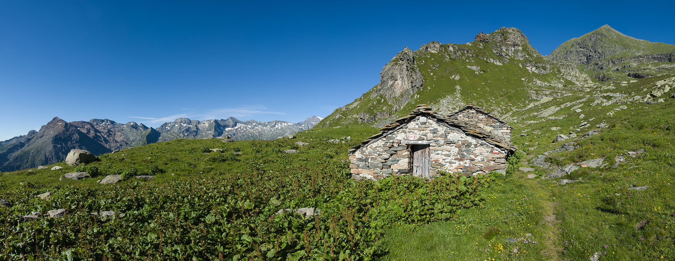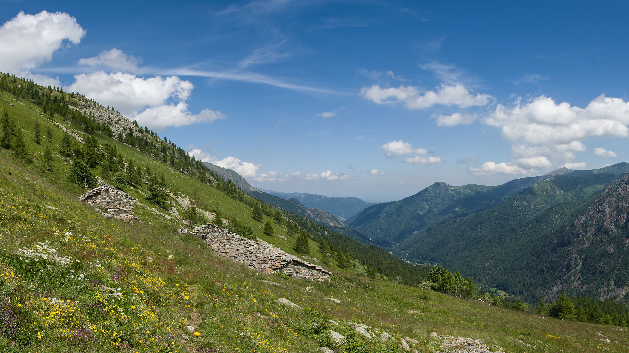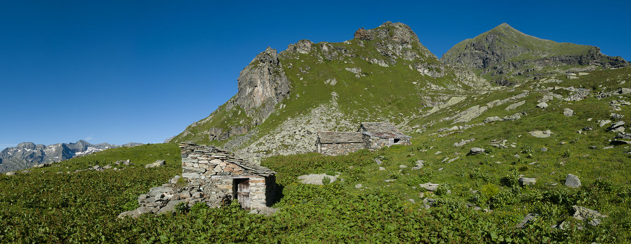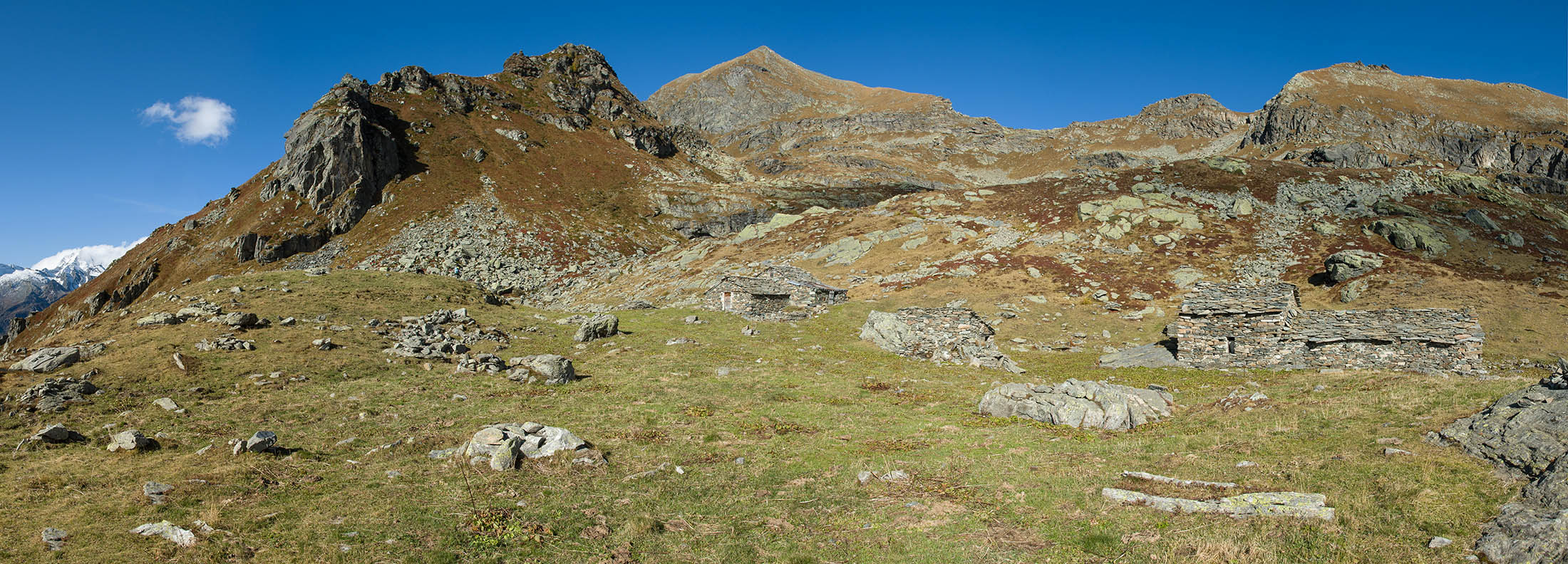 Zweitägige Rundwanderung auf abschnittsweise kaum mehr begangenen Alpwegen auf der Sonnenseite des Val d‘Ala. Das Ziel der ersten Etappe ist identisch wie bei der vorherigen Tour, hier jedoch mit einer modifizierten Auf- und Abstiegsroute in Verbindung mit einem lohnenden Abstecher auf den aussichtsreichen Colle di Trione.