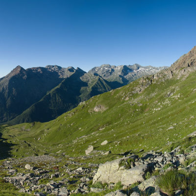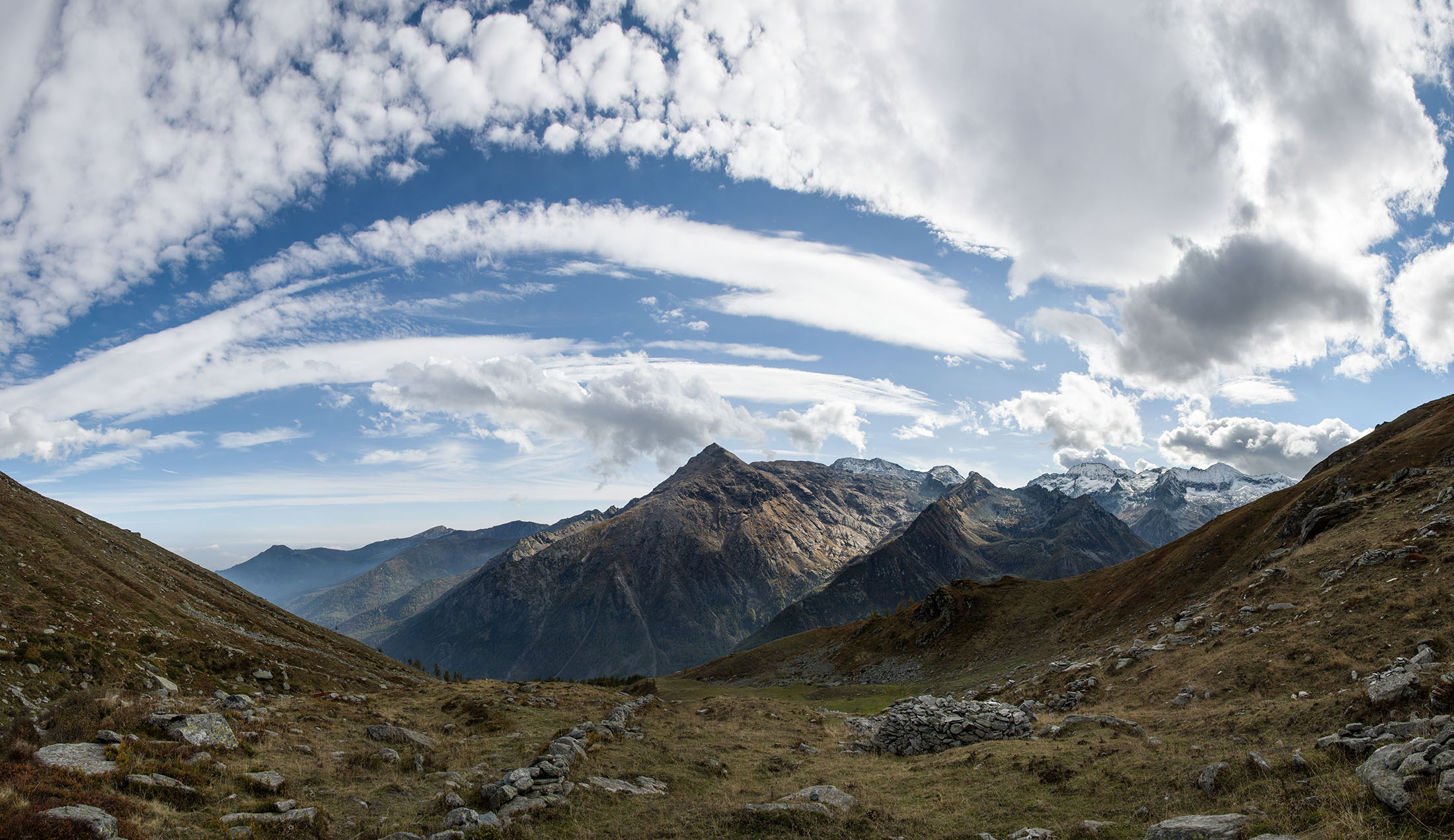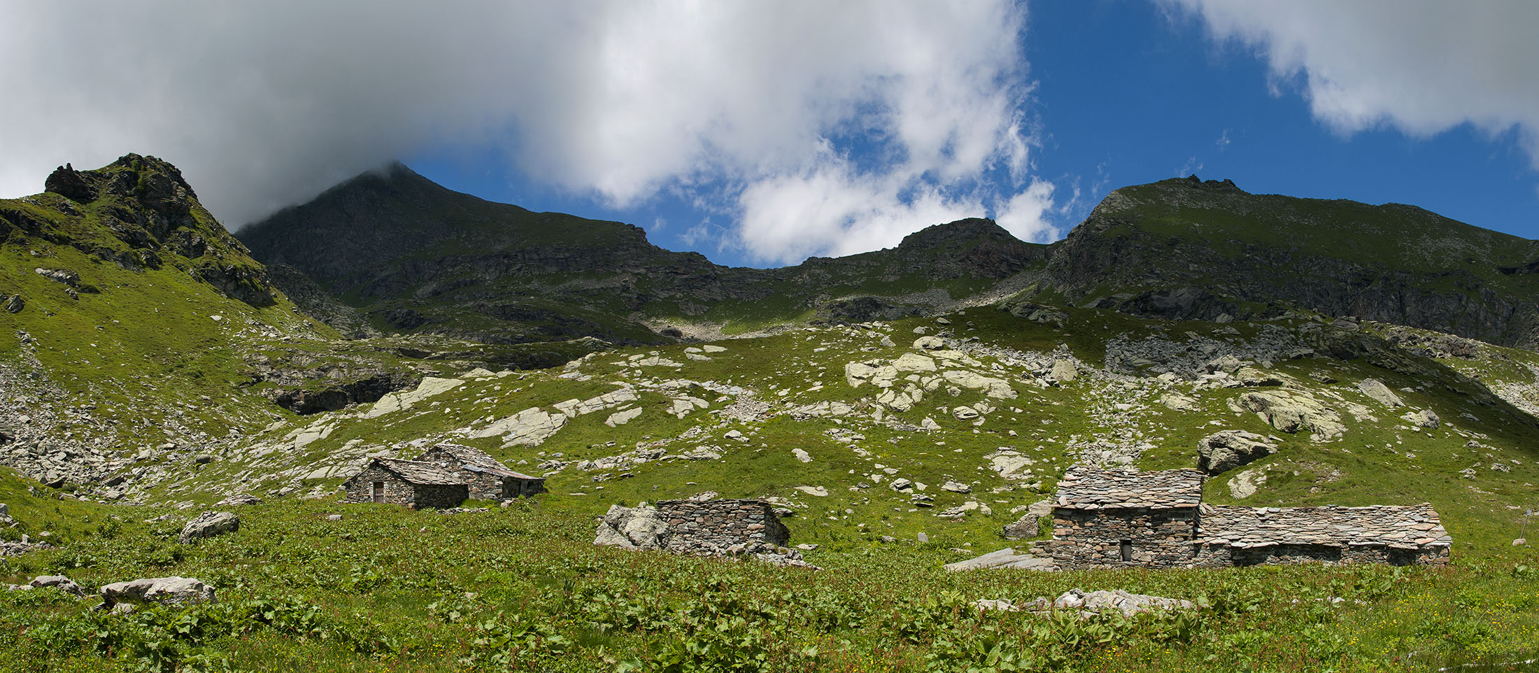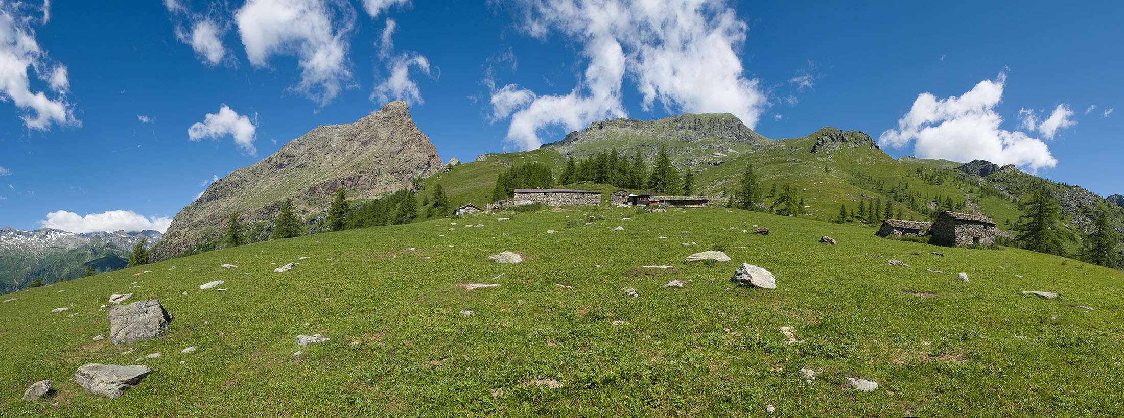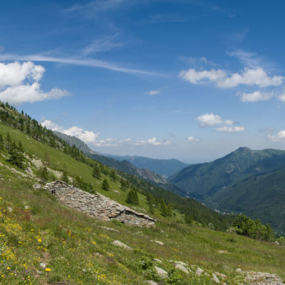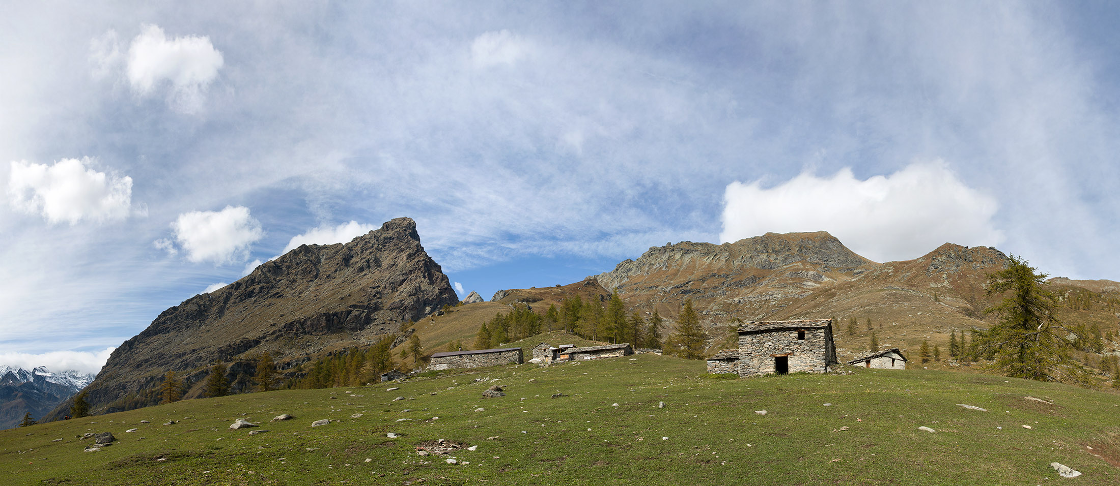Zweitägige Rundwanderung auf abschnittsweise kaum mehr begangenen Alpwegen auf der Sonnenseite des Val d‘Ala. Das Ziel der ersten Etappe ist identisch wie bei der vorherigen Tour, hier jedoch mit einer modifizierten Auf- und Abstiegsroute in Verbindung mit einem lohnenden Abstecher auf den aussichtsreichen Colle di Trione.