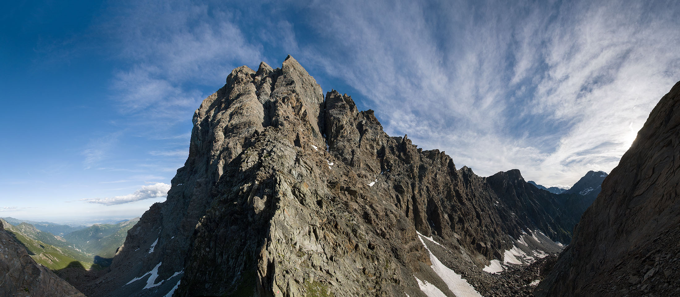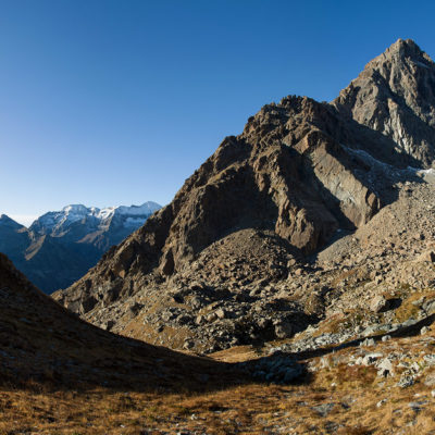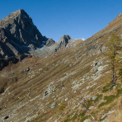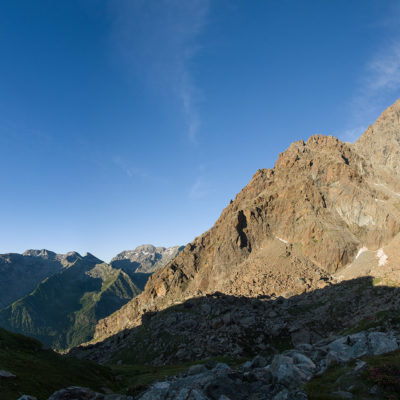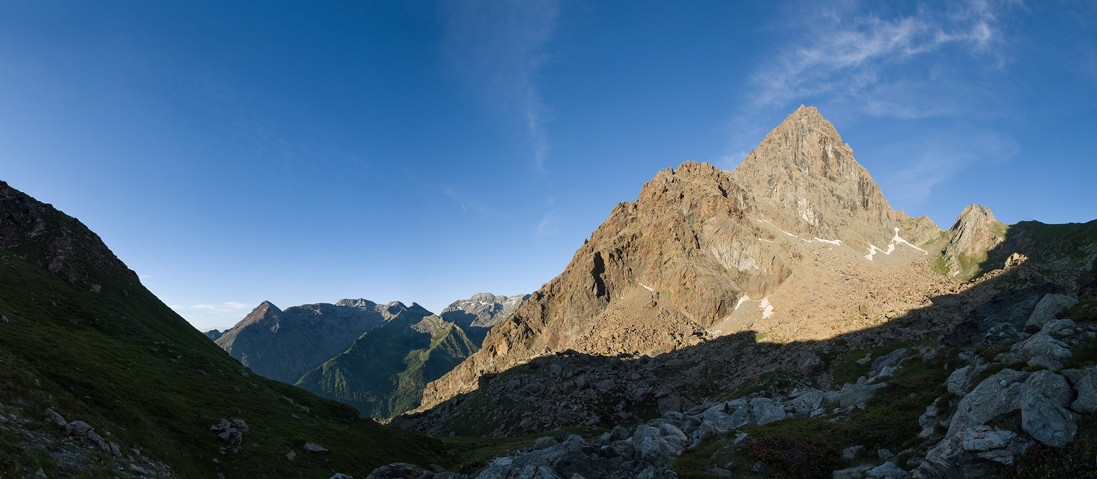 Vom Bivacco Molino lohnt ein interessanter Abstecher auf den nahen Passo dell‘Ometto (2614 m), ein wenig frequentierter Übergang vom Val d‘Ala ins Vallone di Sea (+1,5 Std. hin und zurück).