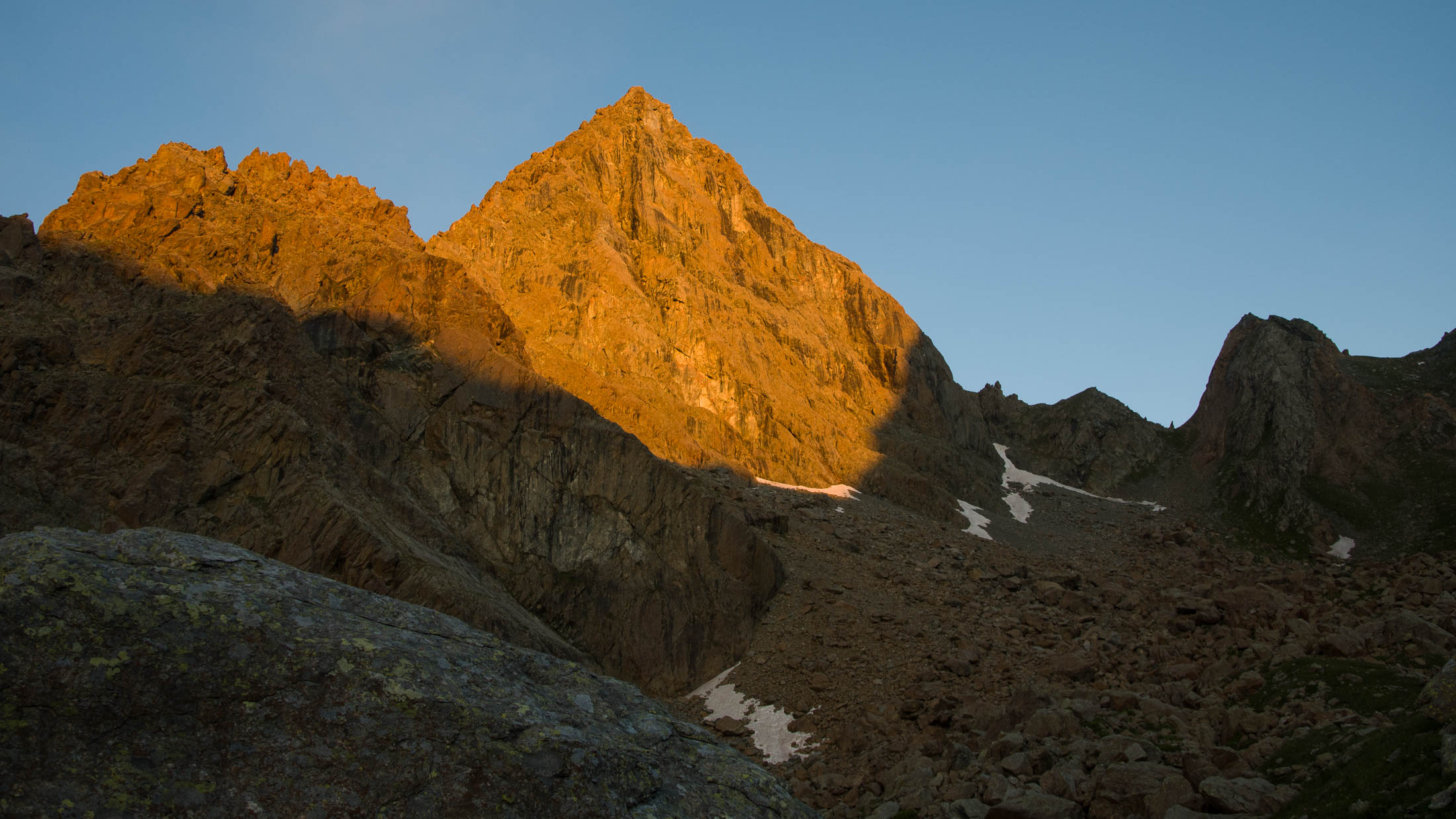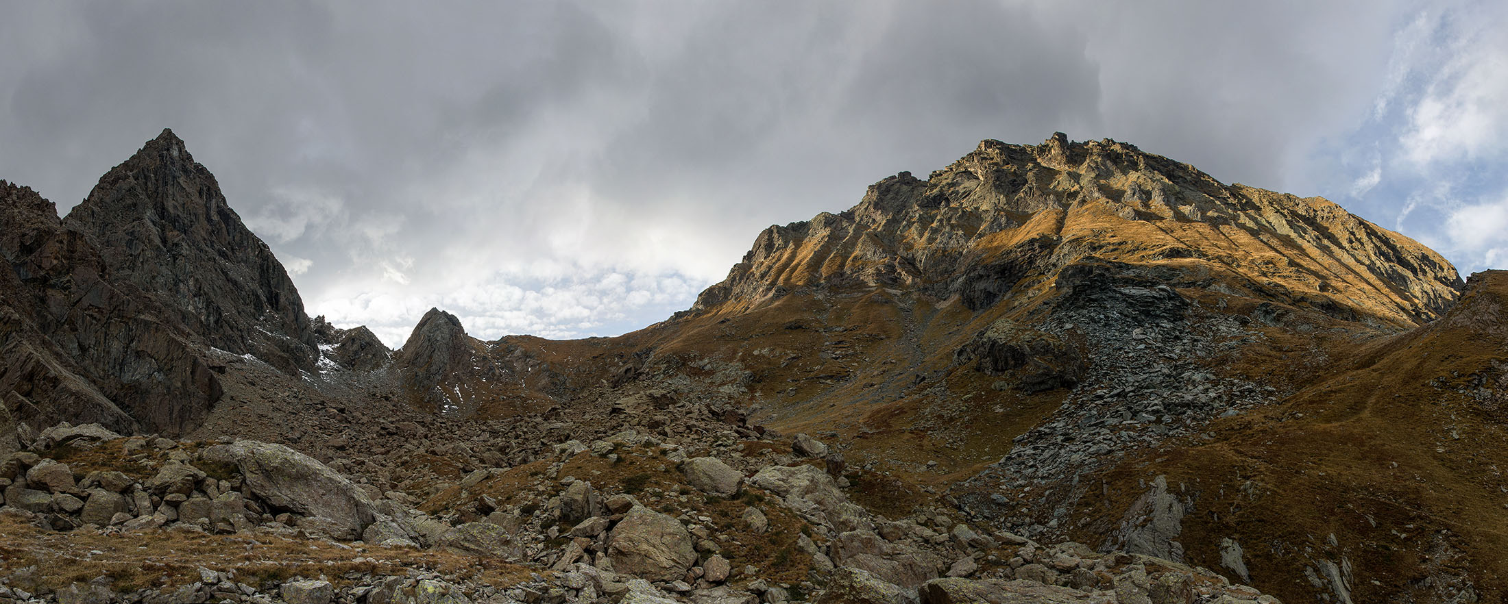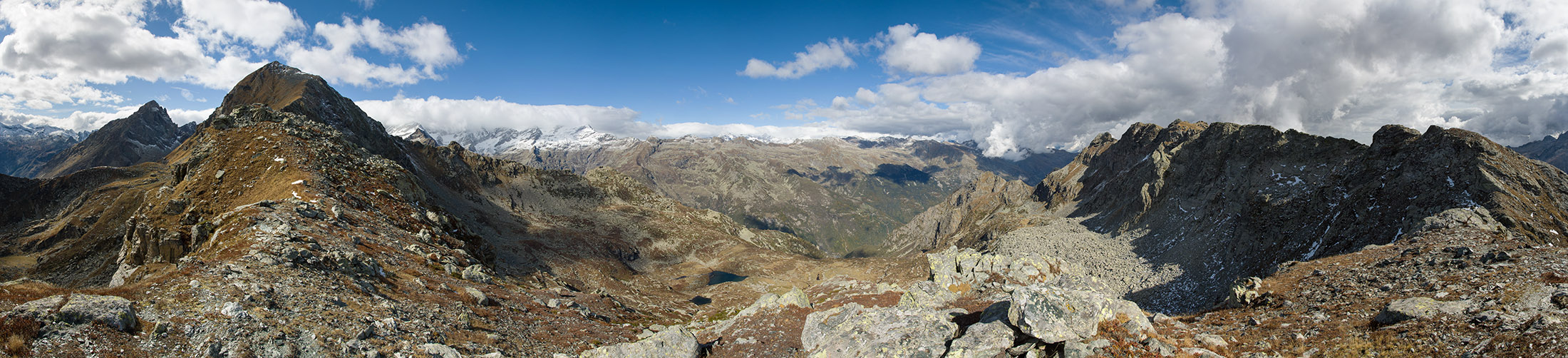 Vom Bivacco Molino lohnt ein interessanter Abstecher auf den nahen Passo dell‘Ometto (2614 m), ein wenig frequentierter Übergang vom Val d‘Ala ins Vallone di Sea (+1,5 Std. hin und zurück).