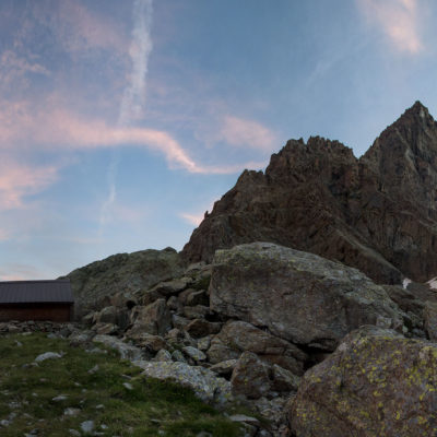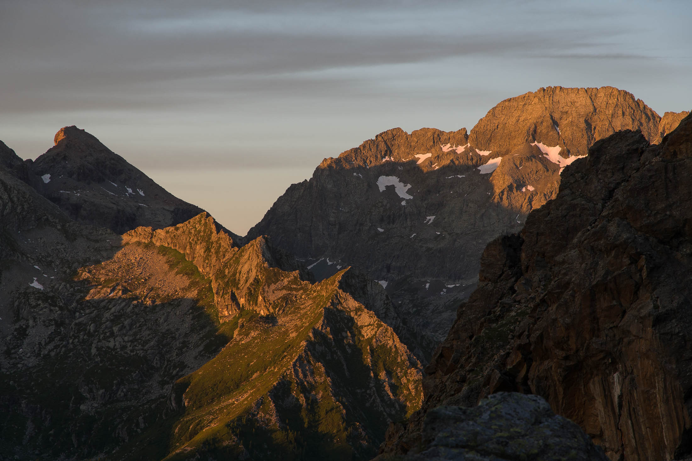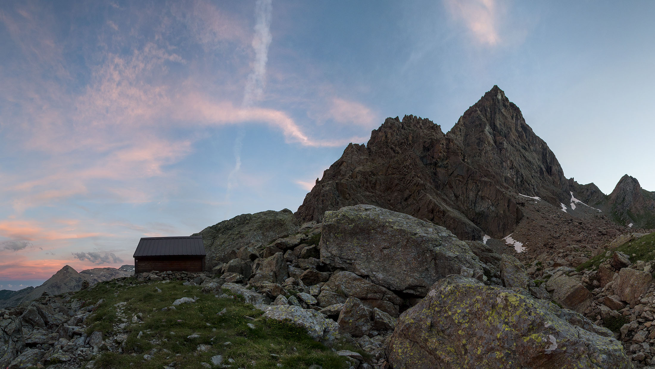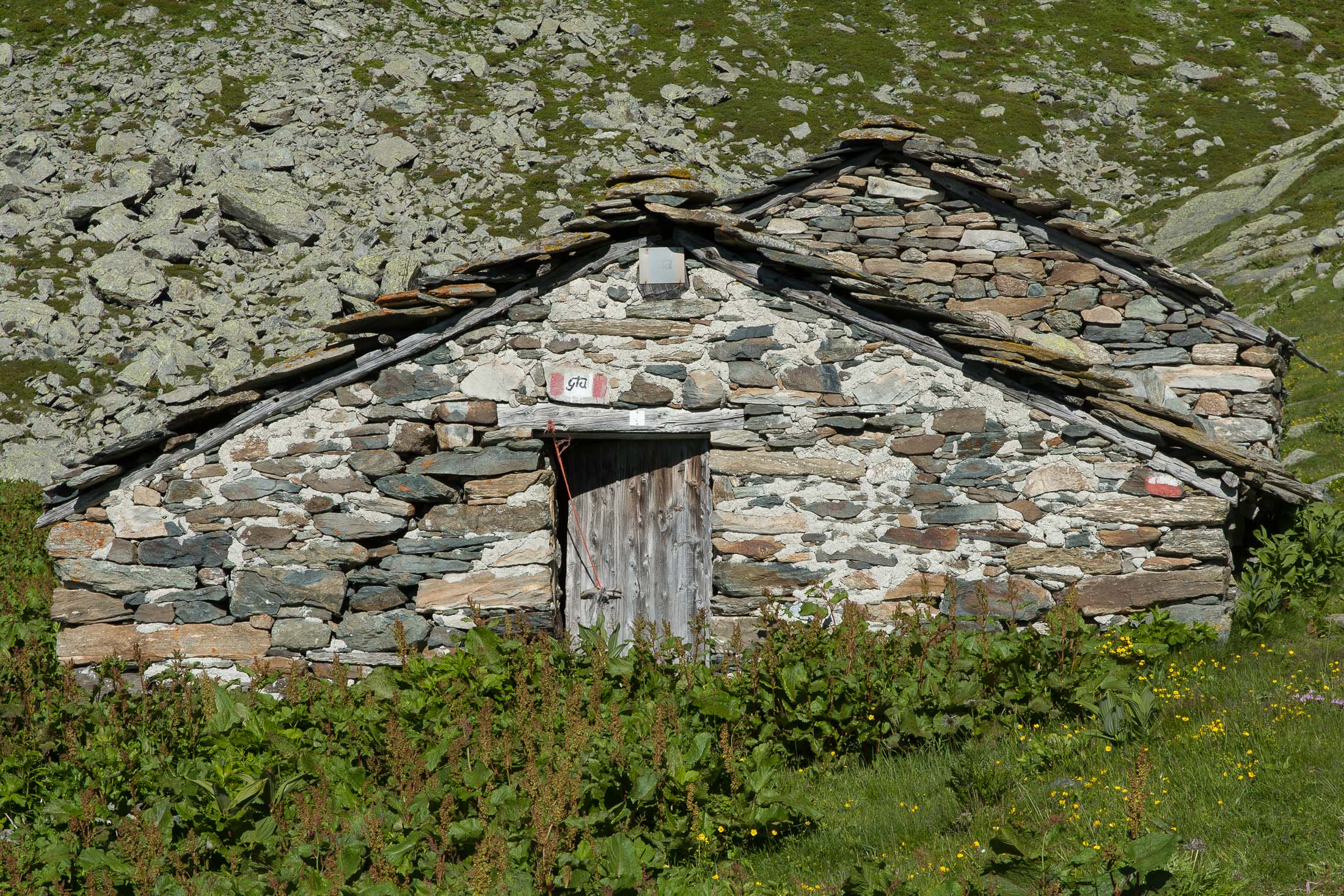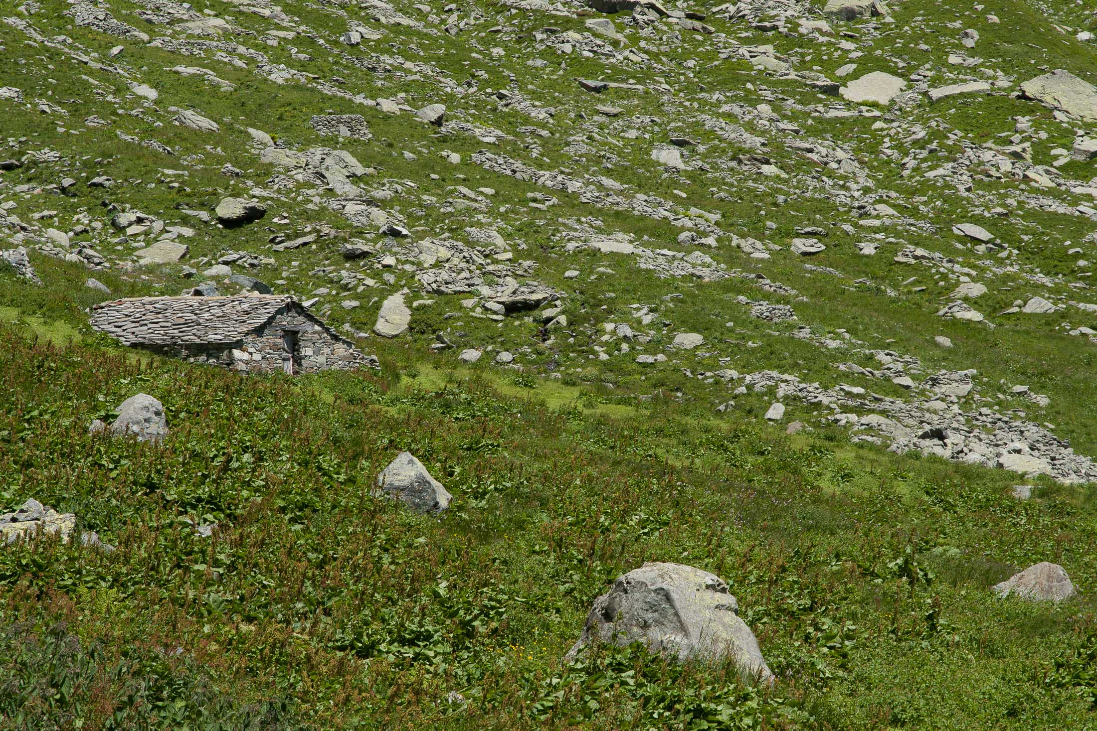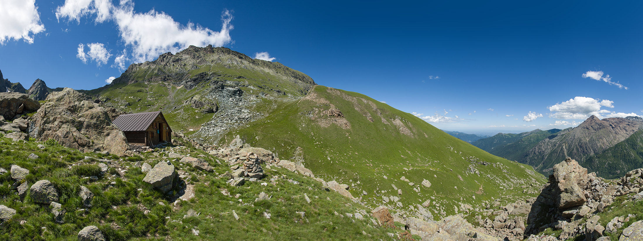 Die erste Etappe beginnt gemütlich, in der ersten Wegstunde wandert man zunächst auf einem unbefestigten und für den öffentlichen Verkehr gesperrten Alpsträsschen, aber das tut der Schönheit der Gegend keinen Abbruch. Nach einem kurzen Waldstück erreicht man offenes Terrain und kommt zu der Alpsiedlung von Caudrè (1461 m), mit tollem Panorama auf die Berge des Val d‘Ala. Bei der Alpe Pian Bosco (1683 m) verlässt man die Alpstrasse und geht auf gutem Weg in 30 Minuten zur Alpe Pian Pra (1771 m), ein malerischer Ort auf einer weiten Alphochfläche mit einigen verstreuten Hütten. In den Sommermonaten ist man hier nicht alleine, das Gebimmel der Kuhglocken ist bereits von weitem zu hören. Jenseits der Alpe Pian Pra geht man an einer Weggabelung links, im weiteren Verlauf wandert man auf spärlichen Wegspuren über Wiesen und Weiden durch ein liebliches Hochtal, der markante Gipfel der Uja di Mondrone begleitet einen auf Schritt und Tritt. Am Wegesrand die Hütten der Alpe I Piani (1950 m), man hat das Gefühl hat, als hätte irgendwer die Zeit angehalten. Die jahrhundertealten, aus mächtigen Steinquadern gebauten Alpgebäude scheinen die Ewigkeit zu überdauern, sie erzählen viele Geschichten aus einer Zeit, als hier in den Sommermonaten noch Tiere gehütet wurden. Ein wahrlich denkwürdiger Ort mitten im Nichts. Die Marschrichtung lautet weiterhin bergwärts, ein wenig oberhalb befindet sich die Alpe Pian delle Mule (2078 m). Endlose Weite, die kargen Alpwiesen sind übersät von Steinen und grossen Felsbrocken, die Umgebung der Hütten ist von Alpenampfer überwuchert. Das gleiche Spiel, die gleichen Gedanken, die gleichen Gefühle, auch hier nur noch Reste und Erinnerungen an eine vergangene Epoche – nur das Panorama wird immer grossartiger. Der Weg dreht Richtung Westen ab, man überquert einen grasigen Rücken und kommt zum Oberlauf des Rio Maian und folgt diesem in den nächsten 20 Minuten, bis man schliesslich das wunderschön gelegenene Bivacco Molino (2280 m) erreicht. Die stets frei zugängliche Selbstversorgerhütte am Fuss der gewaltigen Nordwand der Uja di Mondrone ist sauber und geräumig und hat 12 Schlafplätze. In der Umgebung leben zahlreiche Steinböcke, die man mit etwas Glück und Geduld in aller Ruhe beobachten kann. Im Jahr 2023 wurde die Hütte von Freiwilligen des CAI di Lanzo renoviert und auf Vordermann gebracht, seitdem gibt es dort elektrisches Licht und eine Ladestation für Mobiltelefone. Wasser findet man unterhalb der Hütte am Rio Maian. Sollte der Bach ausgetrocknet sein, geht man bei den Wegweisern wenige Schritte nach rechts den Hang hinauf, dort befindet sich, ein wenig versteckt, eine Quelle, die auch bei längeren sommerlichen Trockenperioden fast immer Wasser führt.