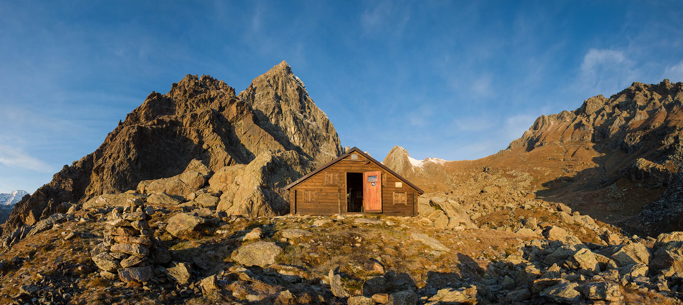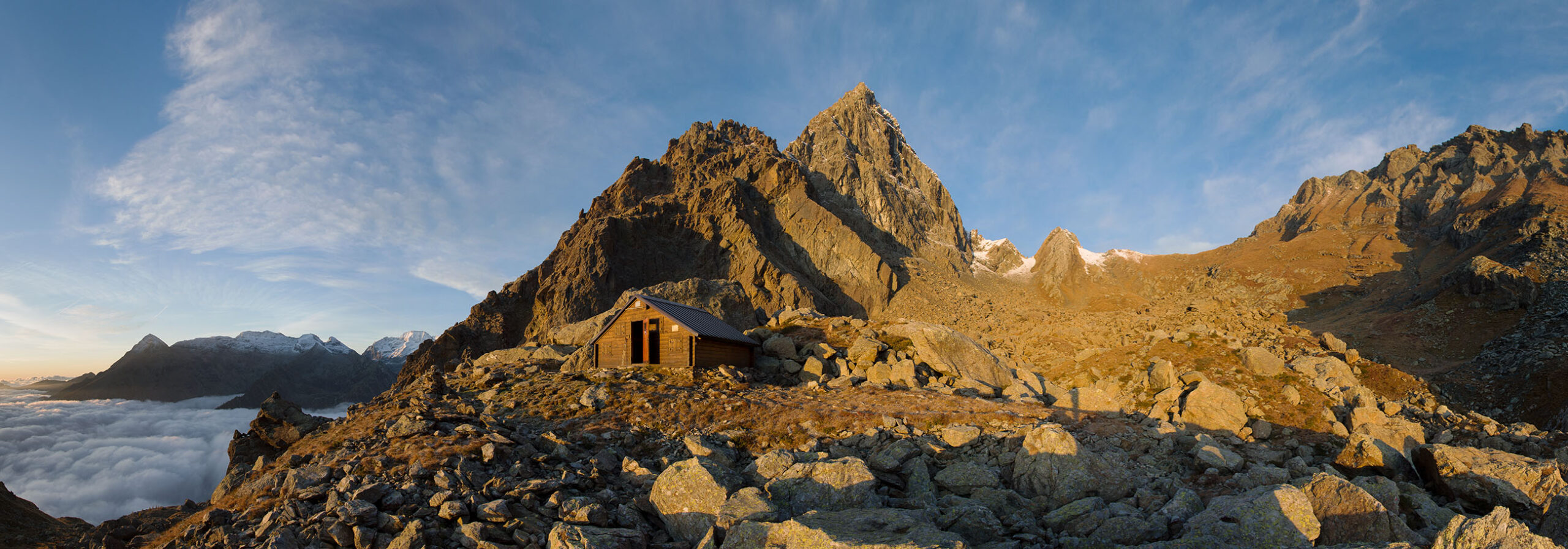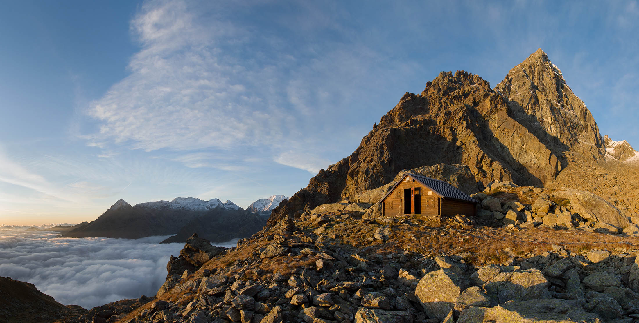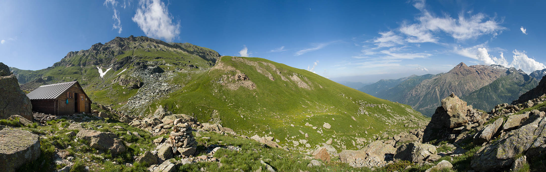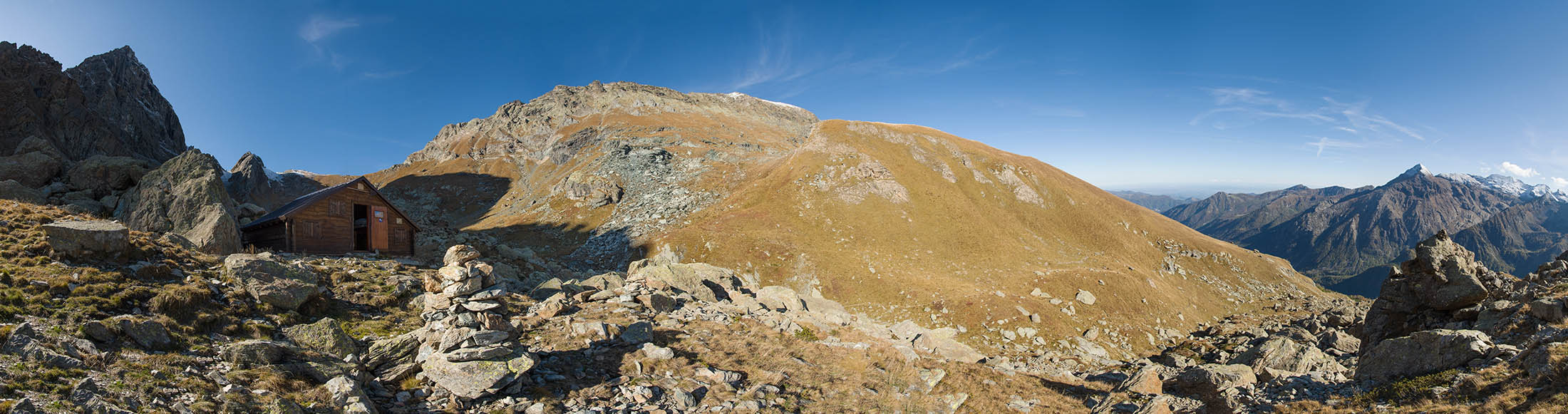 Bivacco Molino (2280 m), immer offene Selbstversorgerhütte, 12 Schlafplätze, keine Koch- und Heizmöglichkeit, Matratzen und Decken sind vorhanden. Einen Kocher für das gemeinsame Abendessen stelle ich zur Verfügung, an Kaffee, Tee oder Keksen sollte es auch nicht mangeln... - Höhenunterschiede und Gehzeiten: