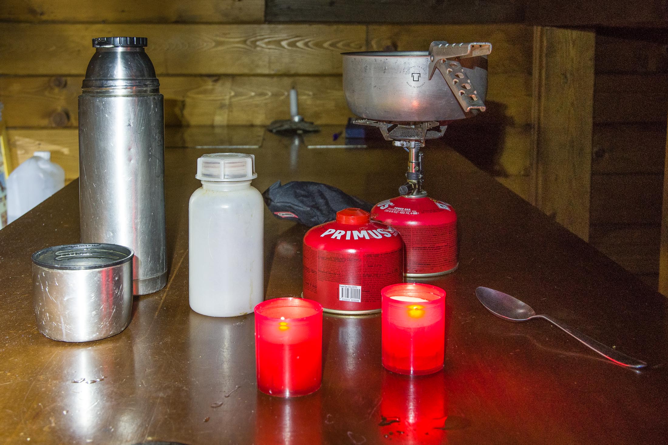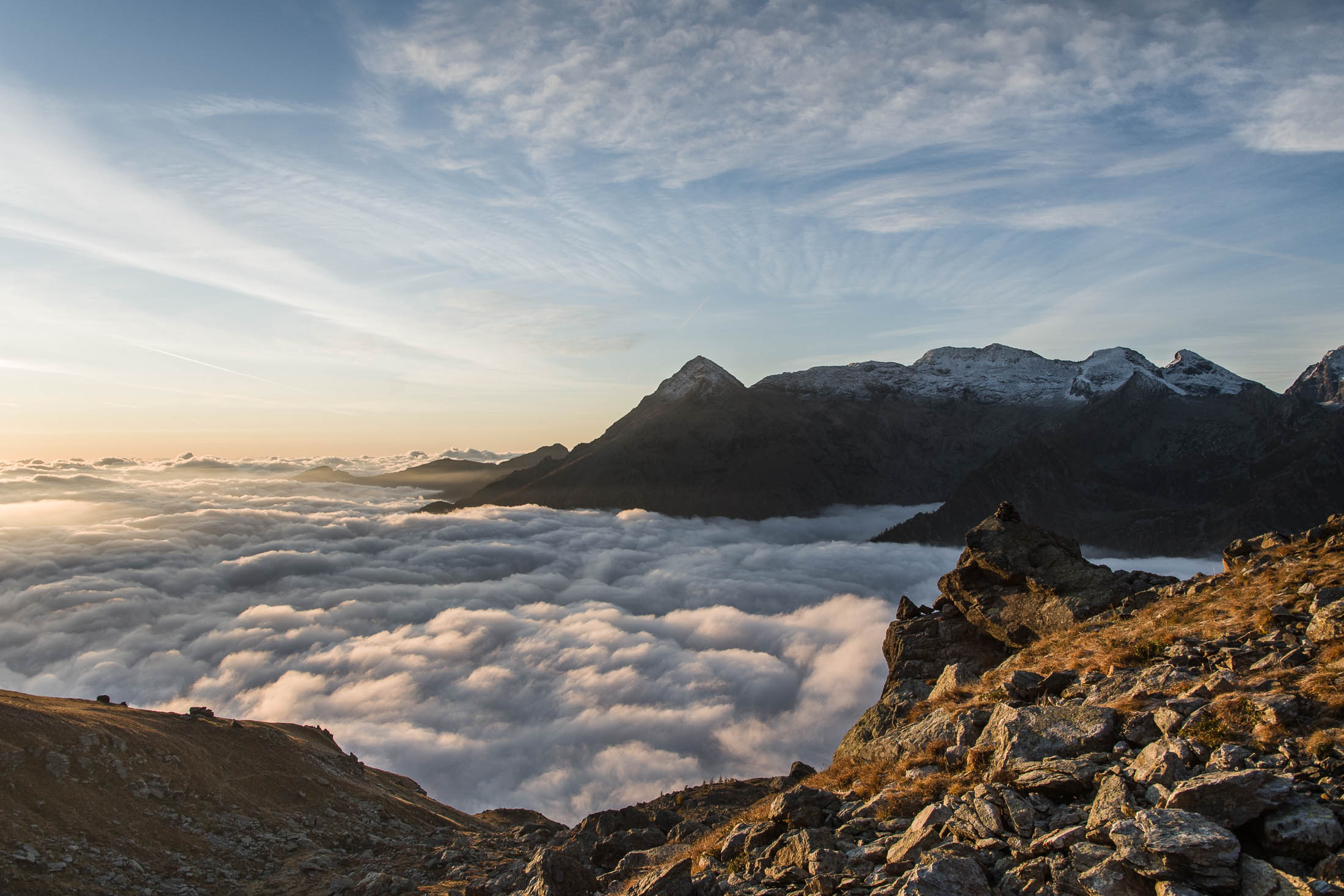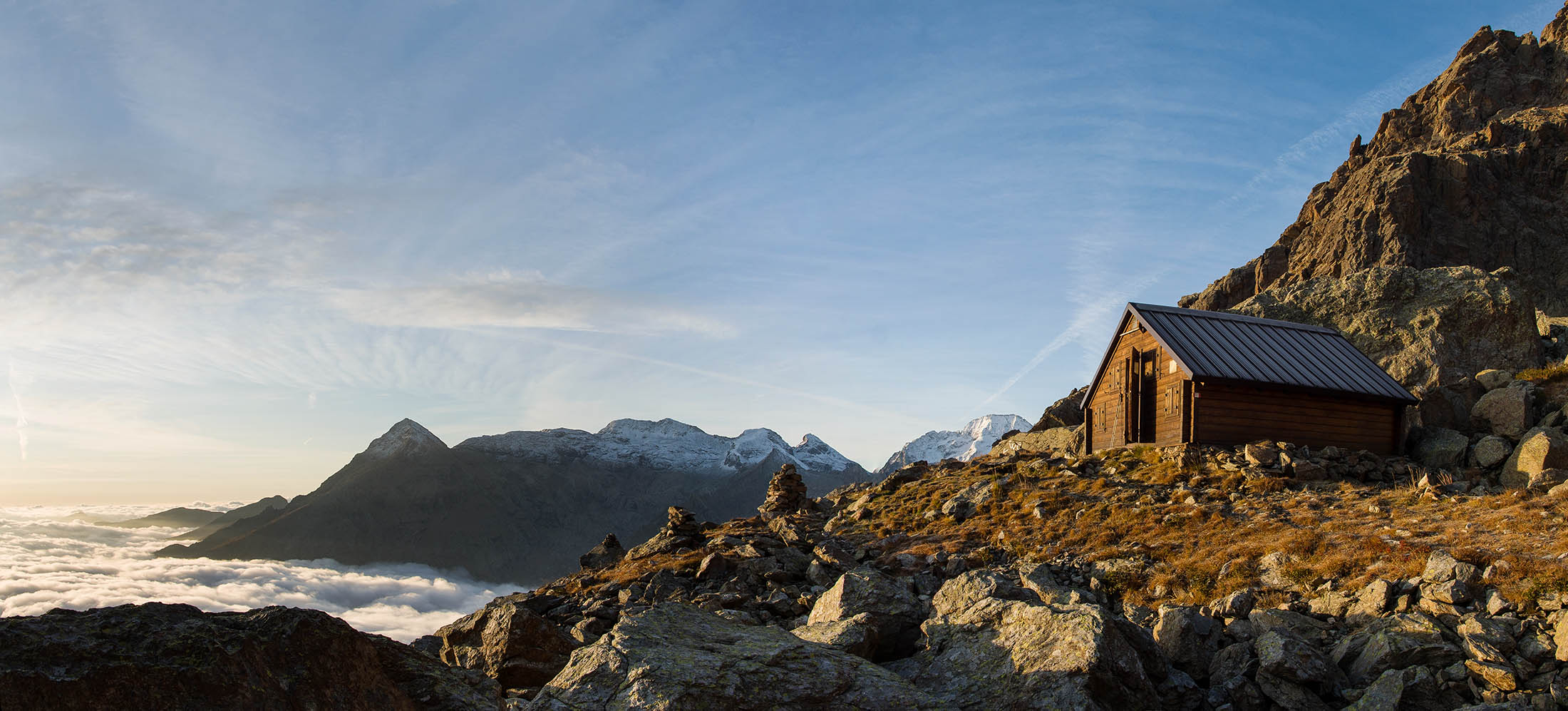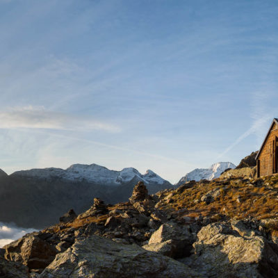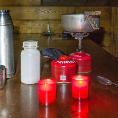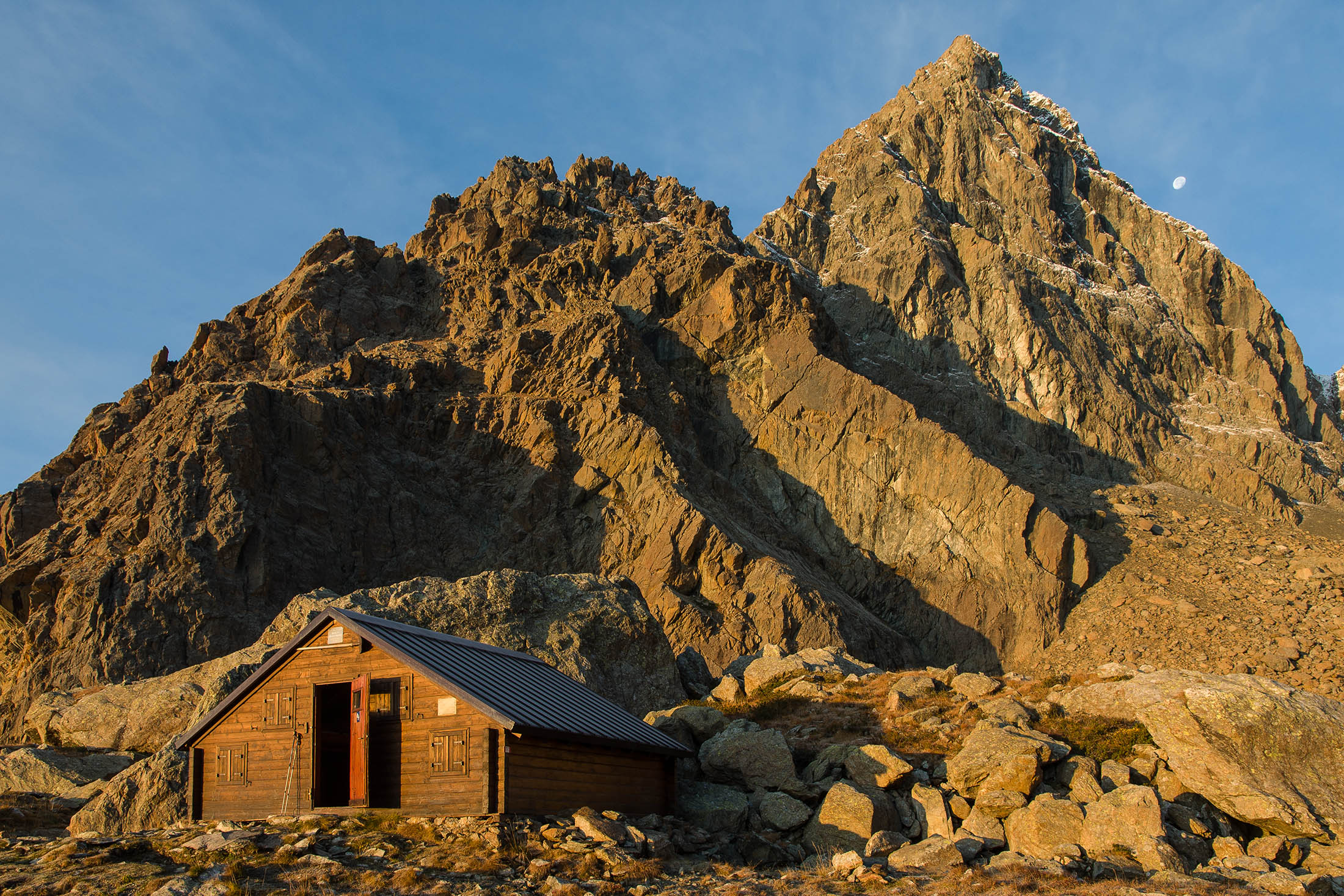 Bivacco Molino (2280 m), immer offene Selbstversorgerhütte, 12 Schlafplätze, keine Koch- und Heizmöglichkeit, Matratzen und Decken sind vorhanden. Einen Kocher für das gemeinsame Abendessen stelle ich zur Verfügung, an Kaffee, Tee oder Keksen sollte es auch nicht mangeln... - Höhenunterschiede und Gehzeiten: