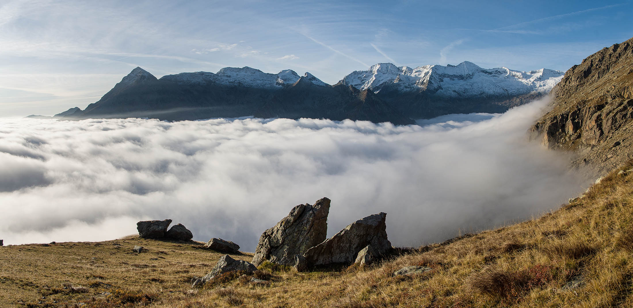 Für noch mehr Aussicht lohnt ein Abstecher zum nahen Passo dell‘Ometto (2614 m), ca. 1,5 Stunden hin und zurück