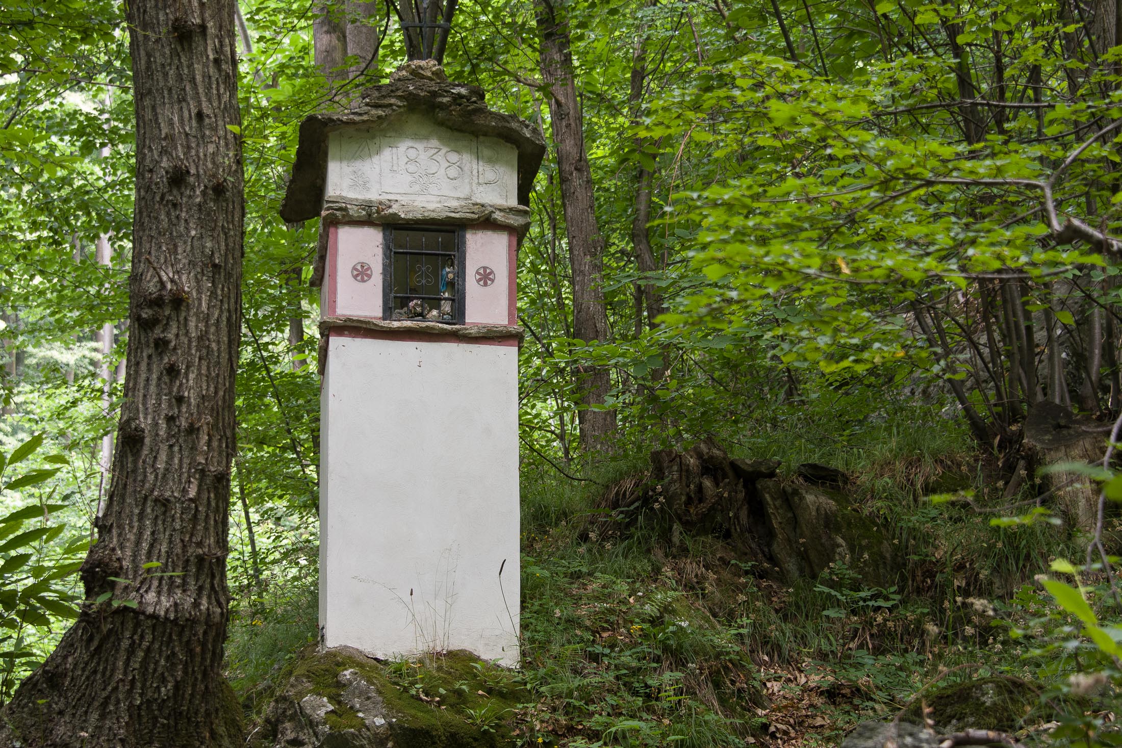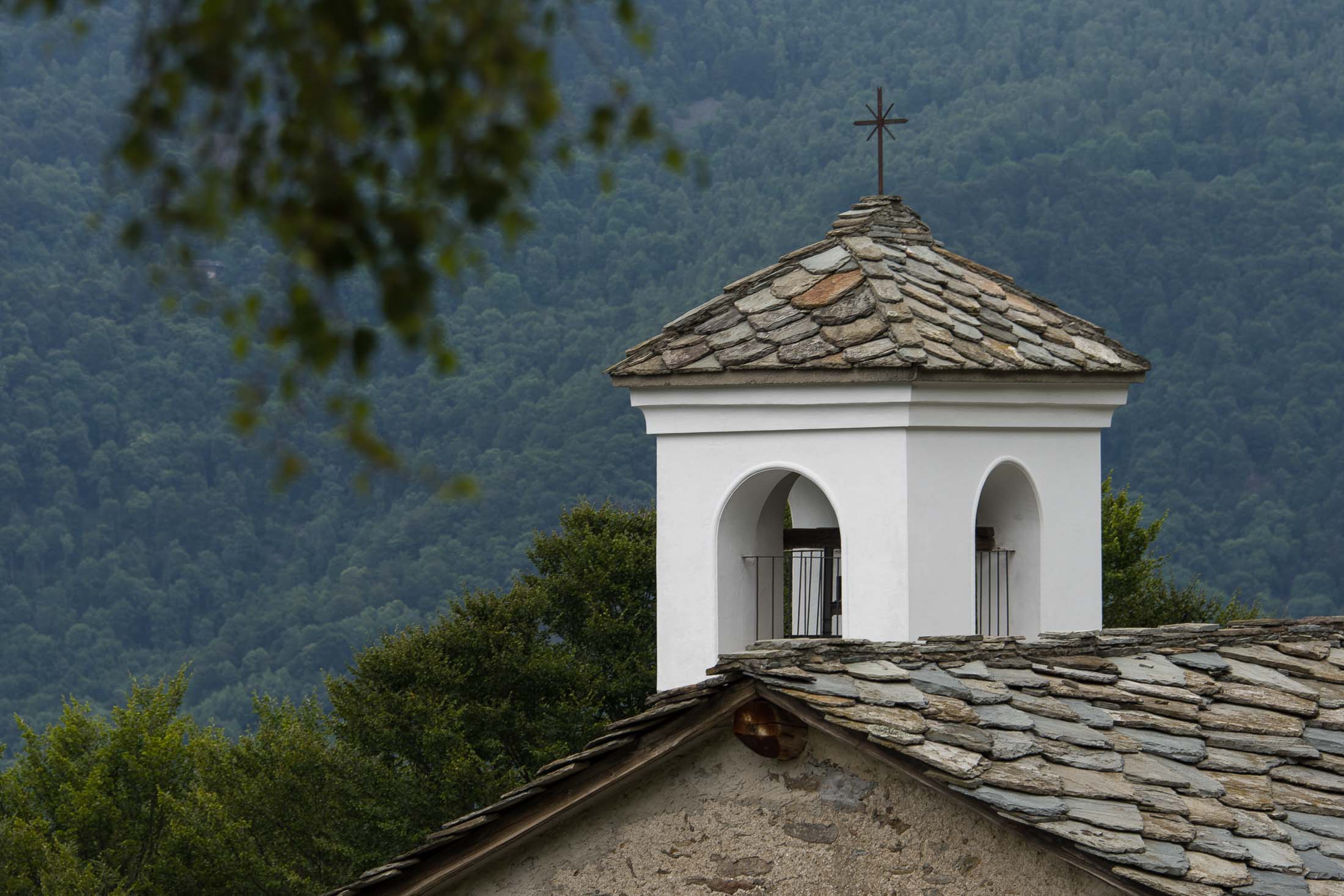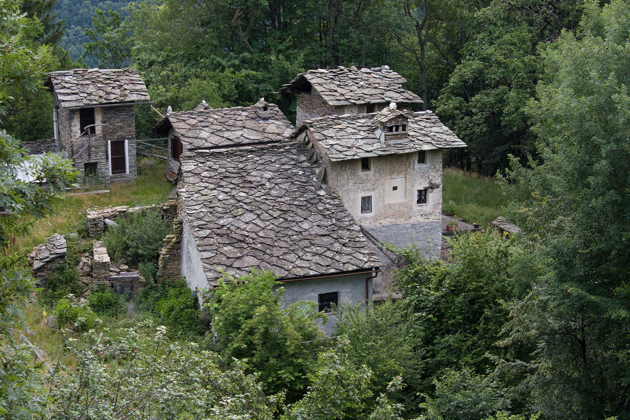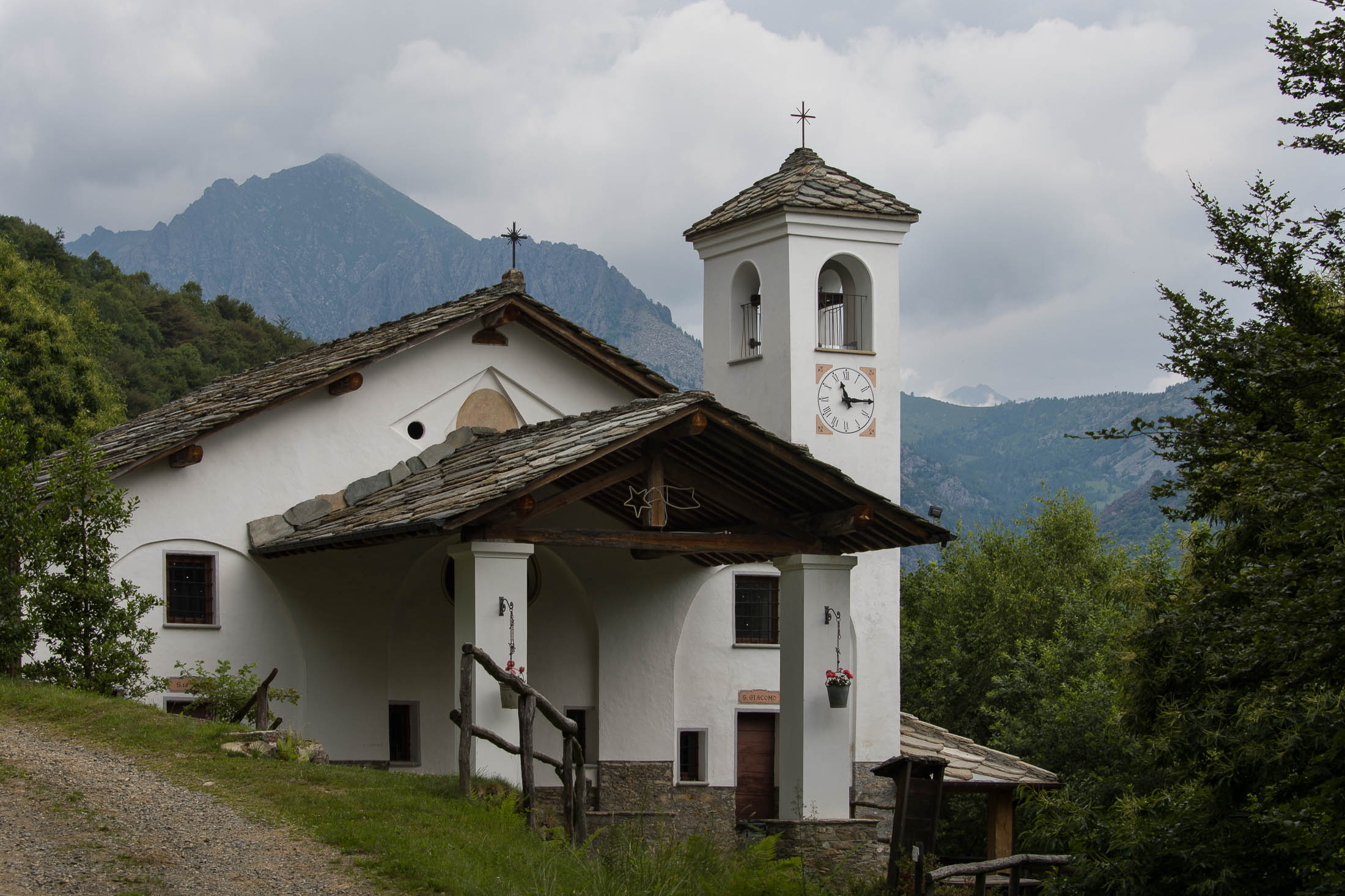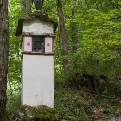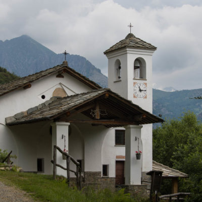 Von Catelli (725 m), einer der vielen verstreuten Ortsteile von Mezzenile, geht es zunächst auf der schmalen Fahrstrasse nach Vernai (ca. 800 m), ein abgelegenes Gehöft am Waldrand. Wenige Meter oberhalb befindet sich ein Wegweiser, hier beginnt eine wunderschöne historische Mulattiera (= Saumweg oder Maultierweg), die sich entlang von Trockensteinmauern den Wald hinaufwindet, vorbei an einigen Bildstöcken, kurz darauf passiert man die Ruinen einer aufgegebenen Alp (ohne Namen in der Karte). Die Mulattiera mündet in einen Fahrweg, dem man ein kurzes Stück folgt. Am Wegesrand die uralten Häuser von Golet Prin (919 m), eine ehemalige Sommersiedlung. Nur wenige Häuser werden noch instandgehalten und als Wochenenddomizil genutzt. Wenig später zweigt rechts die Fortsetzung des alten Saumwegs ab. Im weiteren Verlauf überquert man erneut das Fahrsträsschen und steigt zum Schluss auf steilem Pfad hinauf zu einer kleinen Lichtung, wo sich die Cappella della Consolata (1074 m) befindet. Die sehenswerte Kirche wurde im 16. Jahrhundert von den Einwohnern von Mezzenile als Dank dafür errichtet, dass sie der Pest von 1520 entkommen waren. Das historische Gebäude wurde in späteren Jahren vergrössert und mehrfach umgebaut, auch heute wird noch einmal im Jahr im Rahmen eines Festes eine Messe abgehalten.