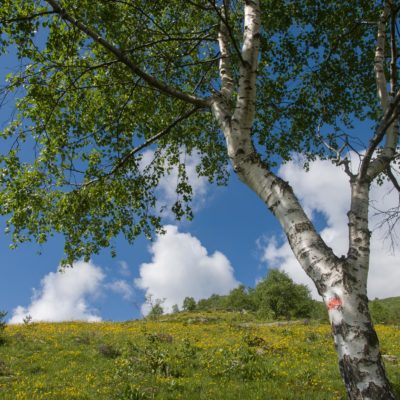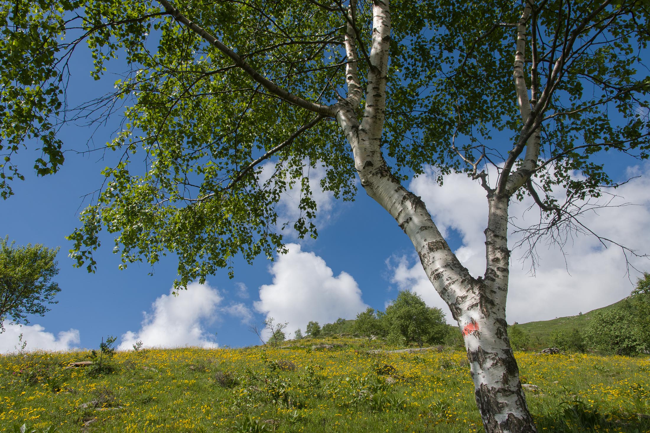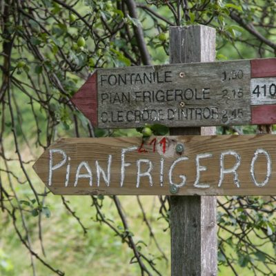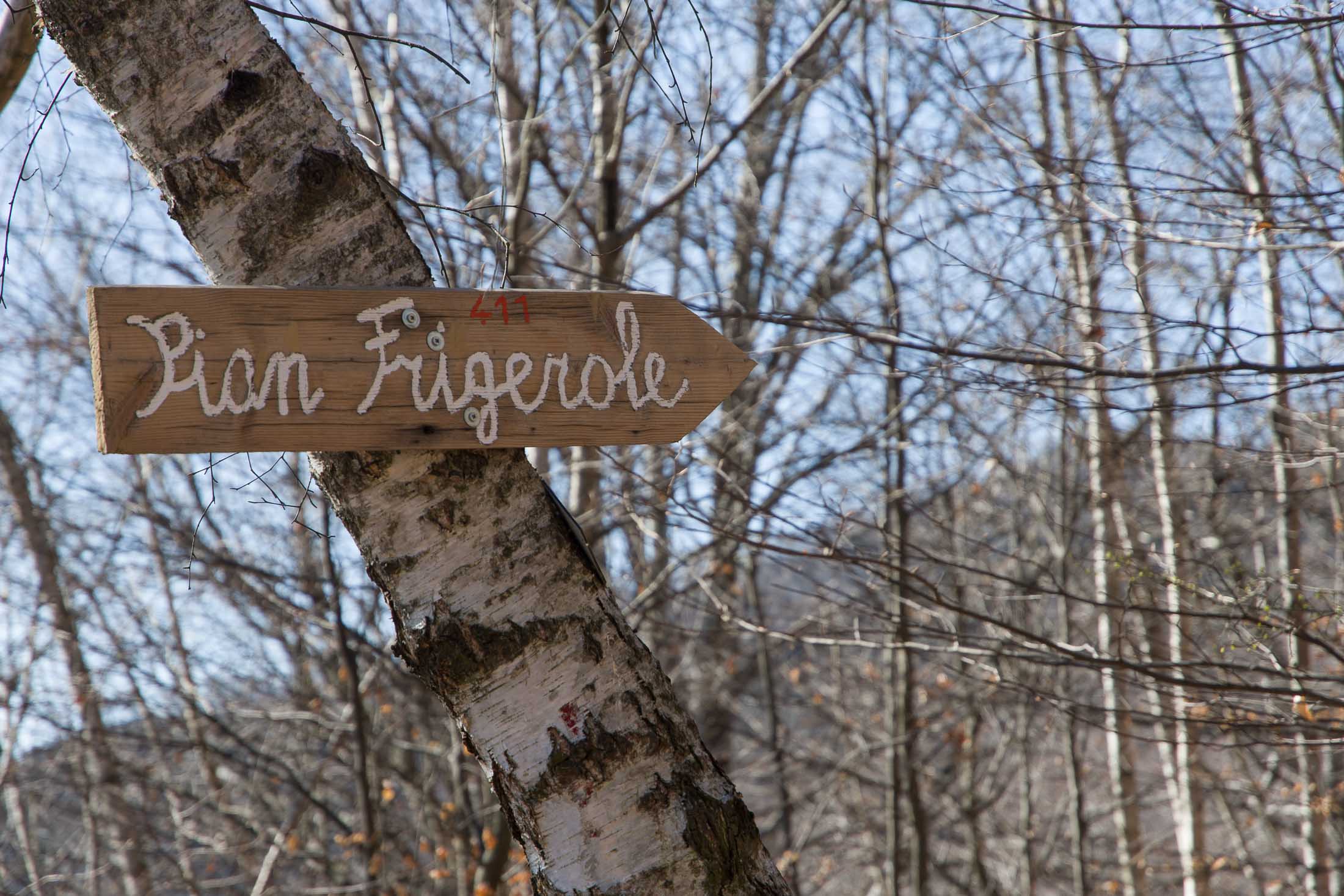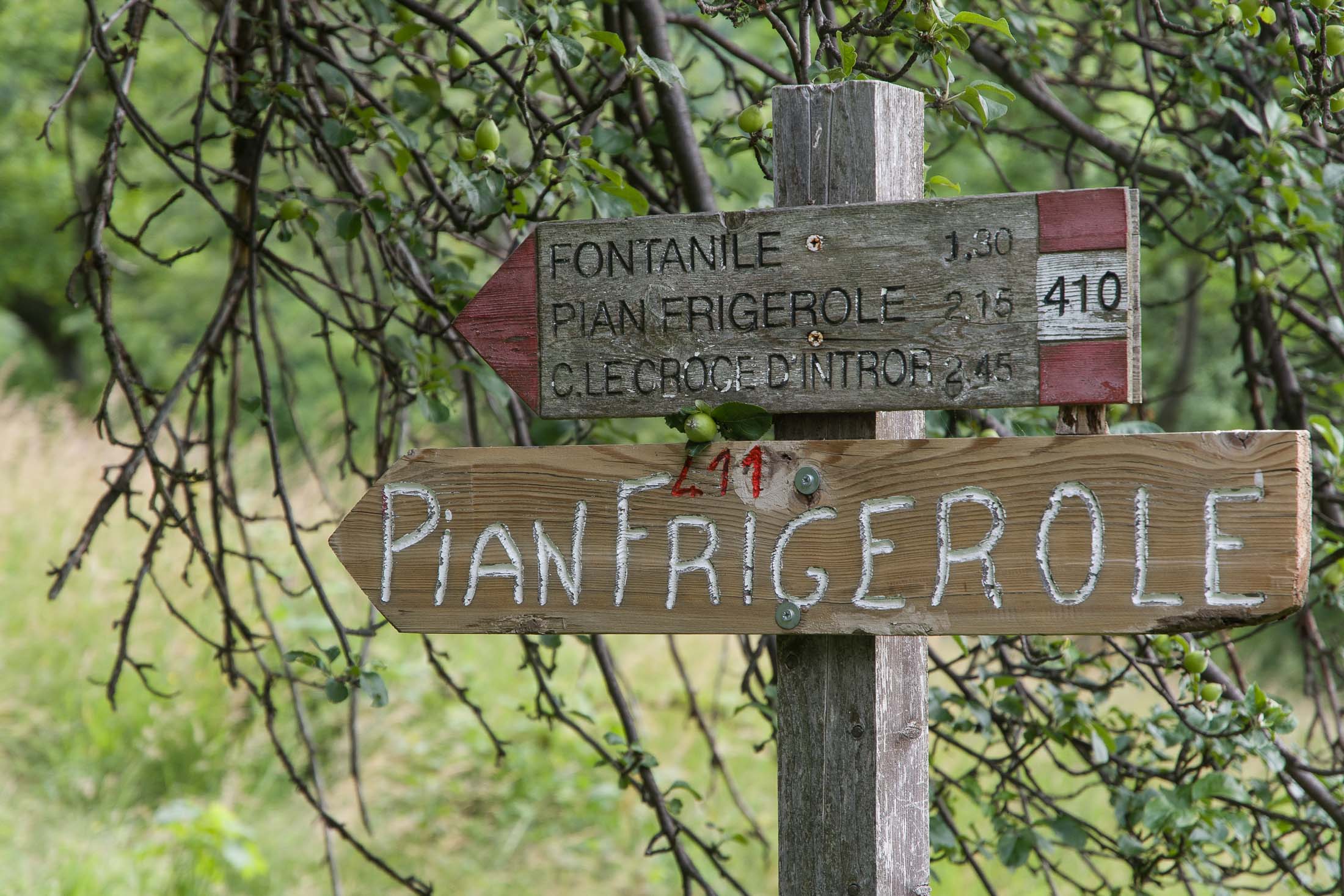 Hinter den obersten Häusern von Case Brancot beginnt bei einem Wegweiser eine historische Mulattiera (= Saumweg oder Maultierweg), auf der seit Jahrhunderten das Vieh auf die höhergelegenen Weiden getrieben wird. Der Weg führt zunächst einen Buchenwald hinauf, weiter oben dominieren die Birken. Nach einer Weile kommt man zu einer grösseren Lichtung mit den verstreuten Hütten von I Piani (1180 m), die unterste Gebäudegruppe liegt mittlerweile in Ruinen. Jenseits der Alp verschwindet der Weg zunächst wieder im Wald, nur wenig später erreicht man wieder offenes und aussichtsreiches Terrain. Im weiteren Verlauf wandert man durch ein weitläufiges Weidegebiet, was heute jedoch immer mehr verbuscht und von Farnen, Alpenrosen und vielen verstreuten Birken überwachsen ist. Im Frühling und im Frühsommer spaziert man hier durch ein riesiges Blumenmeer, am Wegesrand spriessen Alpen-Paradieslilien, Teufelkrallen, Schlangen-Knöterich, Wald-Habichtskraut und Ferkelkraut, um nur einige wenige zu nennen, auch die Alpenrosen blühen in ihrer ganzen Pracht. Der Weg knickt nach Westen ab, kurz darauf kommt man zur Alpe Fontanile (1528 m), wo in den Sommermonaten einige Rinder auf den Weiden stehen. Jenseits der Hütten wird der nach wie vor gut markierte Weg steiler und schraubt sich in einigen Kehren hinauf zum Kreuz auf dem Pian Frigerole, das Ziel dieser Wanderung. Der Pian Frigerole (1775 m) und die nur fünf Gehminuten entfernte Alpe Frigerole (1791 m) befinden sich auf dem grasigen Kamm zwischen dem Val Malone und dem westlich gelegenen Valle Tessuolo. Von hier geniesst man eine phantastische Aussicht auf die Berge der Valli di Lanzo und auf die nahe Tiefebene mit der Millionenmetropole von Turin. Bei klarem Wetter reicht die Sicht bis in die Seealpen.