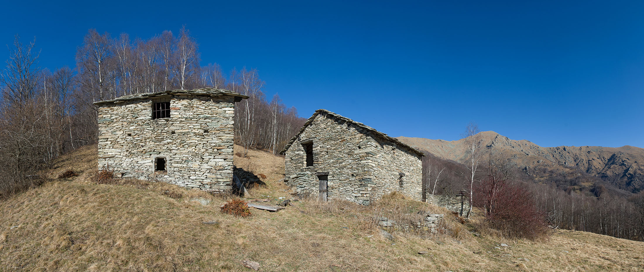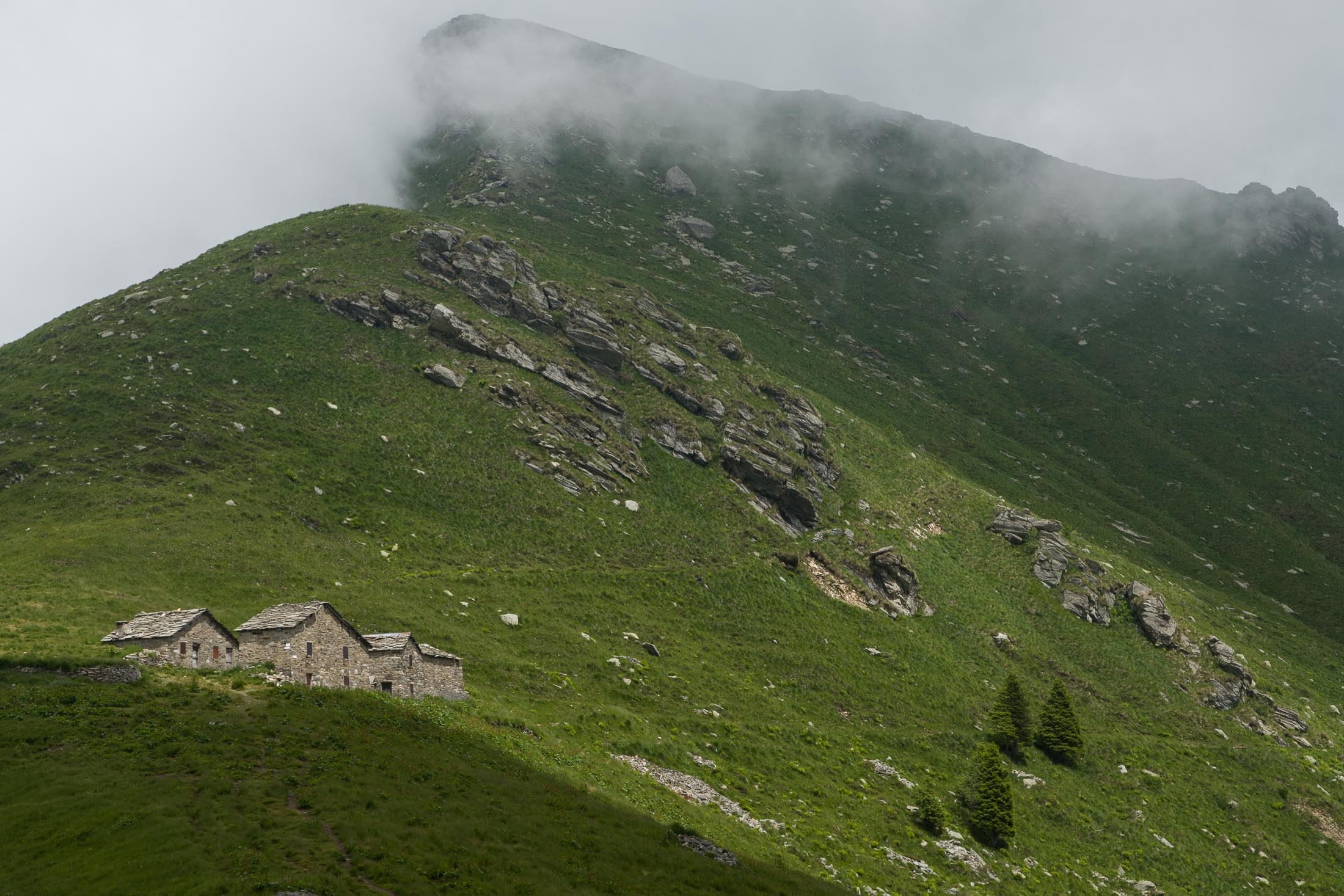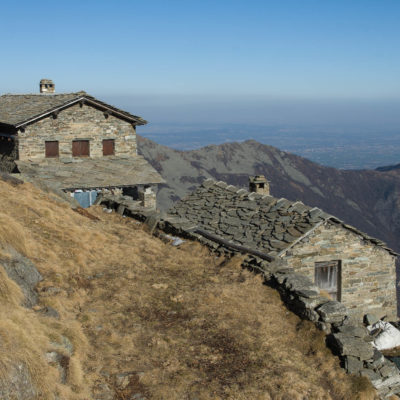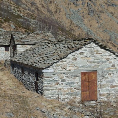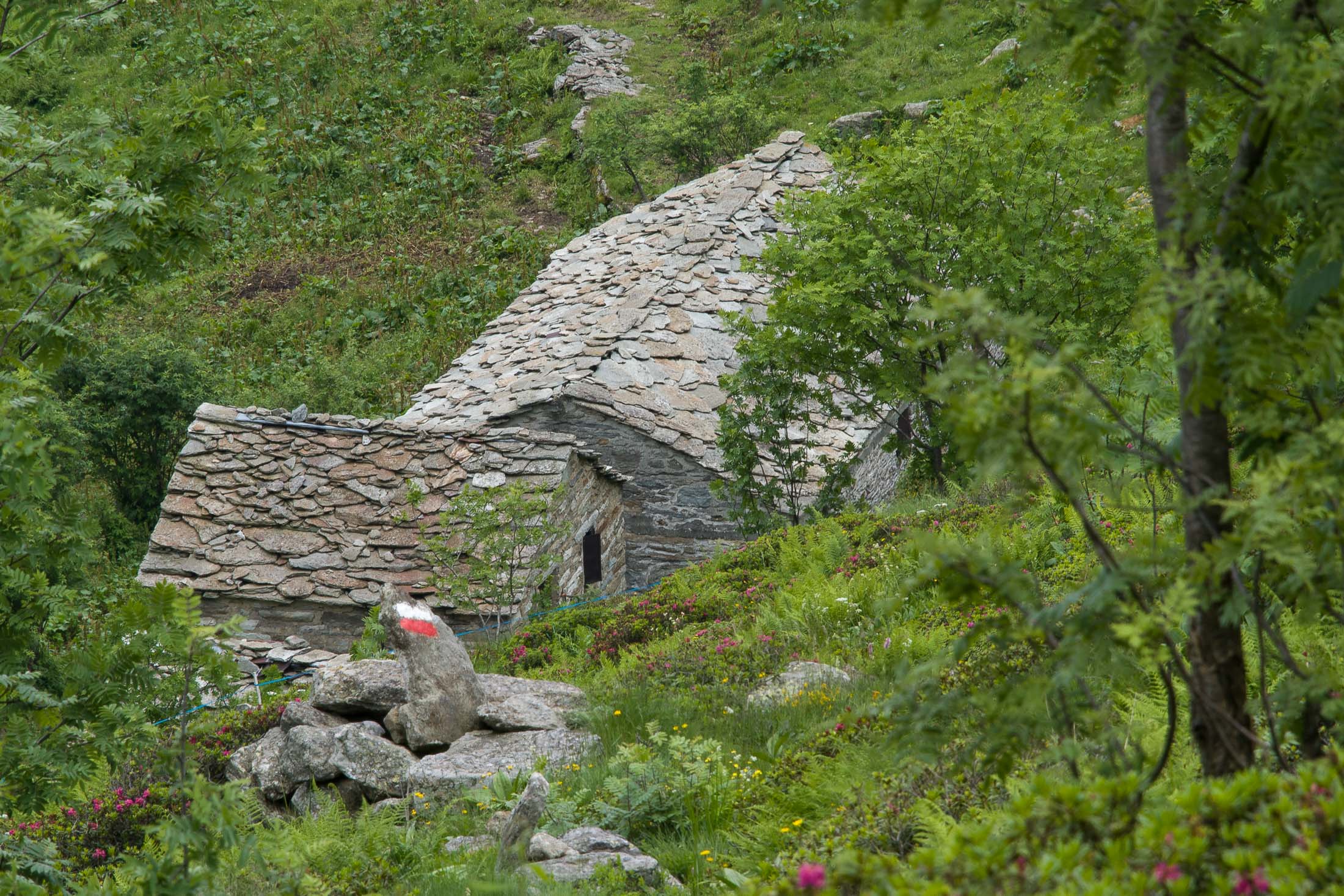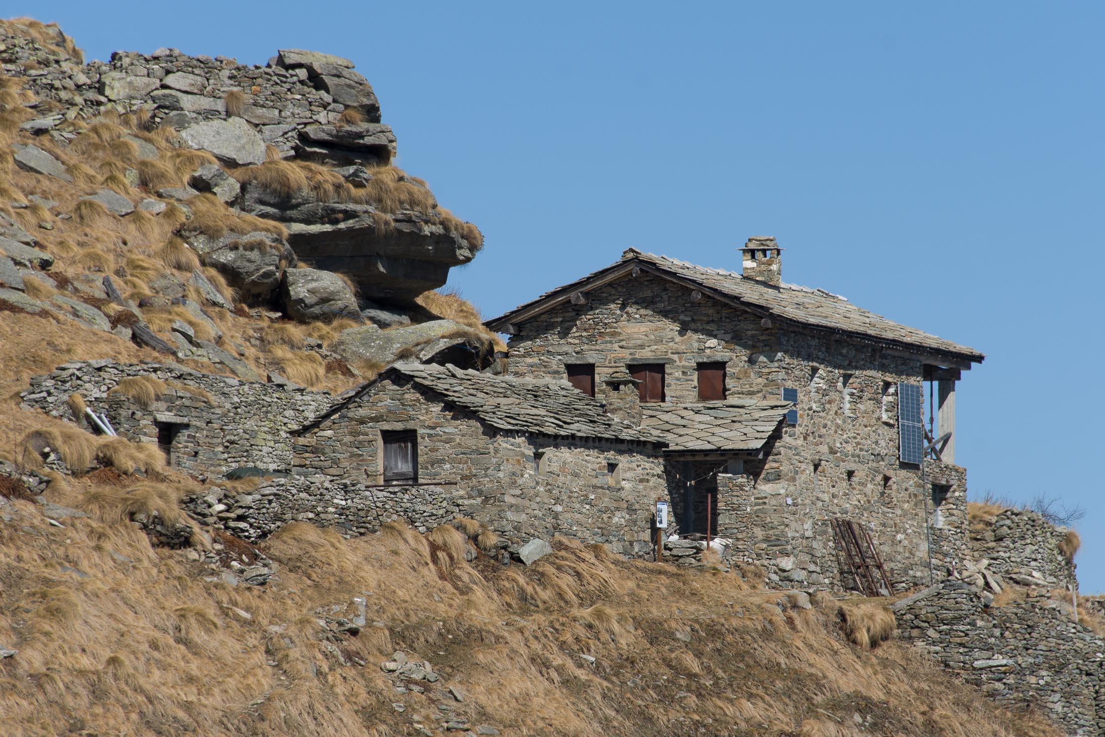 Vom Ausgangspunkt bei der Häusergruppe von Case Picat (961 m) folgt man zunächst der schmalen Asphaltstrasse, vorbei an den verstreuten Wochenendhäusern von Case Begin. Case (= Häuser) ist eine in dieser Gegend häufig vorkommende Bezeichnung für einen Weiler, eine kleine Siedlung oder ein Gehöft, was aus mehreren Wohn- und Wirtschaftsgebäuden besteht. Die Fahrstrasse endet nach etwa einem Kilometer bei dem Weiler Case Brancot. Der abgelegene Ort war früher dauerhaft bewohnt, die Menschen lebten über Generationen von der Berglandwirtschaft. In den piemontesischen Alpentälern begann nach dem zweiten Weltkrieg eine flächenhafte Entsiedelung, von dieser Entwicklung wurde auch das Val Malone nicht verschont. Viele Bergbewohner verliessen ihre Heimatdörfer und fanden in den seinerzeit expandierenden Industriebetrieben in den Städten der nahen Po-Ebene einen neuen Broterwerb. Diejenigen, die geblieben sind, sind mittlerweile gestorben. Nur wenige der alten Häuser von Case Brancot werden noch instandgehalten, sie sind jedoch nur noch am Wochenende oder den Sommerferien bewohnt, andere wiederum wurden bereits vor langer Zeit aufgegeben und für immer verlassen. Man blickt auf bröckelnden Putz und verwilderte Gärten, vor manchen Fenstern und Türen wuchert meterhoch das Unkraut.