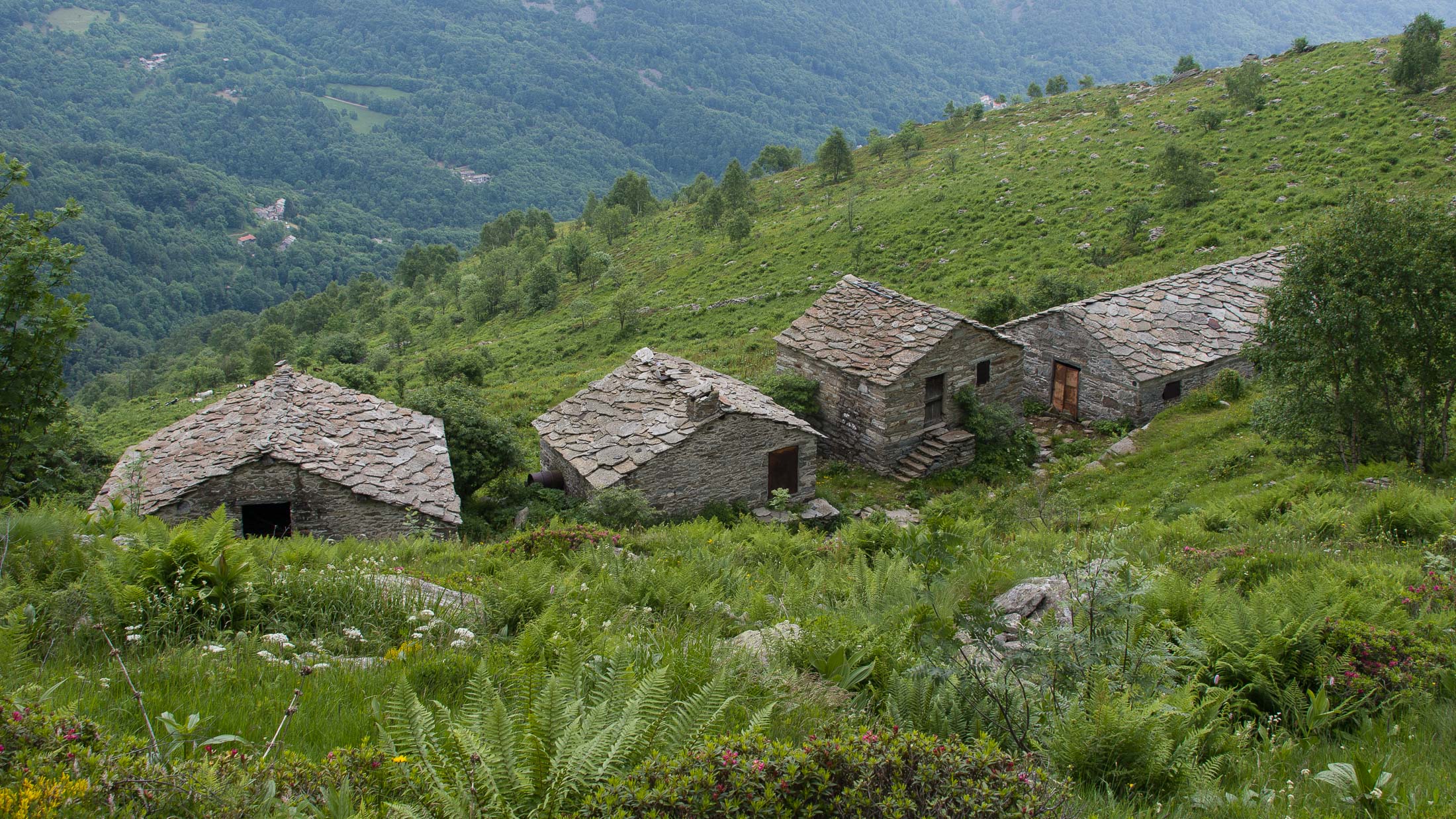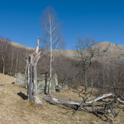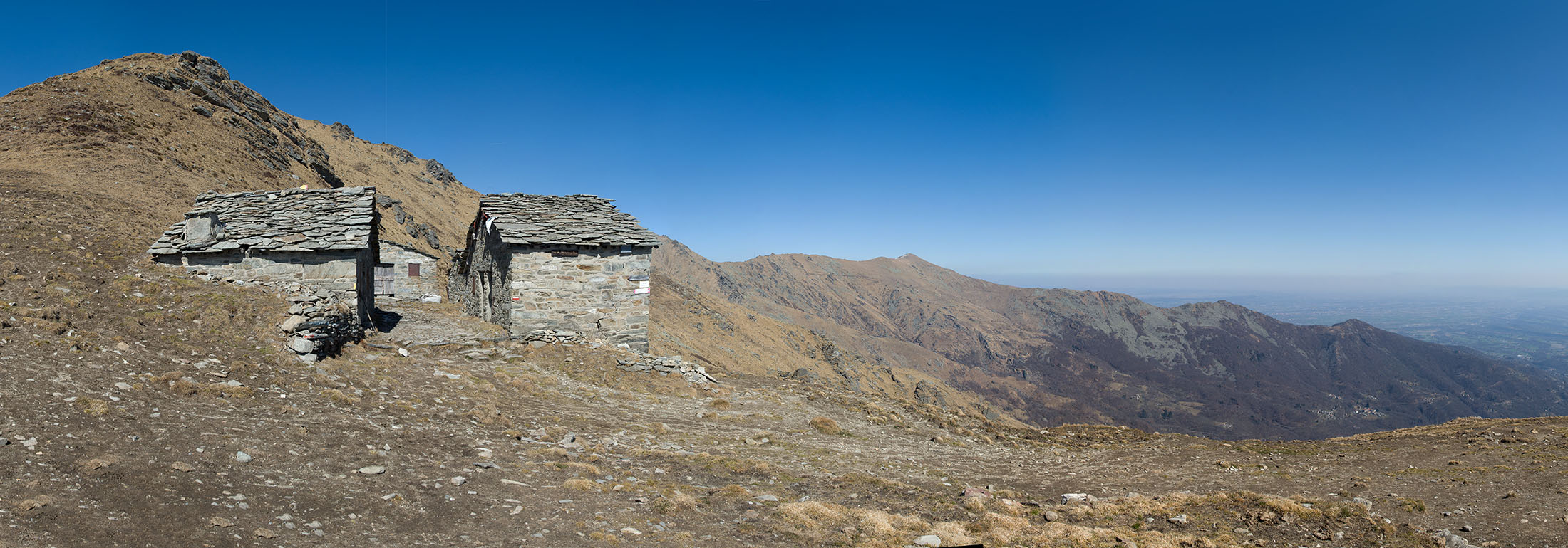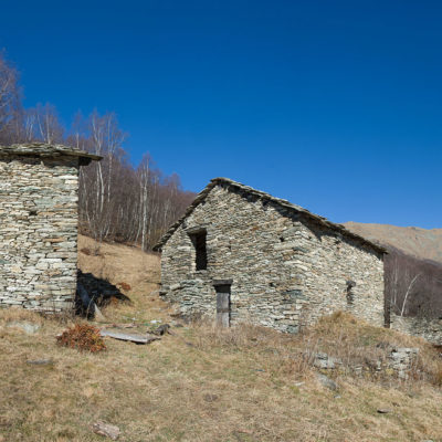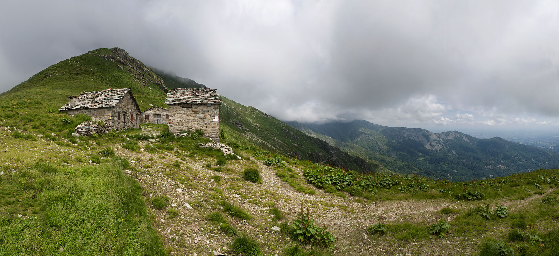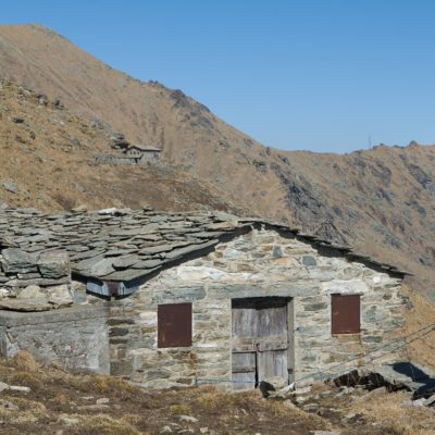 Vom Ausgangspunkt bei der Häusergruppe von Case Picat (961 m) folgt man zunächst der schmalen Asphaltstrasse, vorbei an den verstreuten Wochenendhäusern von Case Begin. Case (= Häuser) ist eine in dieser Gegend häufig vorkommende Bezeichnung für einen Weiler, eine kleine Siedlung oder ein Gehöft, was aus mehreren Wohn- und Wirtschaftsgebäuden besteht. Die Fahrstrasse endet nach etwa einem Kilometer bei dem Weiler Case Brancot. Der abgelegene Ort war früher dauerhaft bewohnt, die Menschen lebten über Generationen von der Berglandwirtschaft. In den piemontesischen Alpentälern begann nach dem zweiten Weltkrieg eine flächenhafte Entsiedelung, von dieser Entwicklung wurde auch das Val Malone nicht verschont. Viele Bergbewohner verliessen ihre Heimatdörfer und fanden in den seinerzeit expandierenden Industriebetrieben in den Städten der nahen Po-Ebene einen neuen Broterwerb. Diejenigen, die geblieben sind, sind mittlerweile gestorben. Nur wenige der alten Häuser von Case Brancot werden noch instandgehalten, sie sind jedoch nur noch am Wochenende oder den Sommerferien bewohnt, andere wiederum wurden bereits vor langer Zeit aufgegeben und für immer verlassen. Man blickt auf bröckelnden Putz und verwilderte Gärten, vor manchen Fenstern und Türen wuchert meterhoch das Unkraut.
