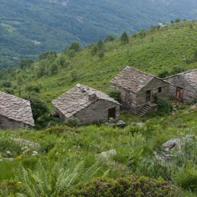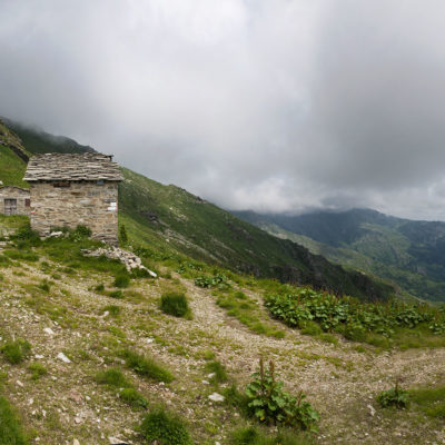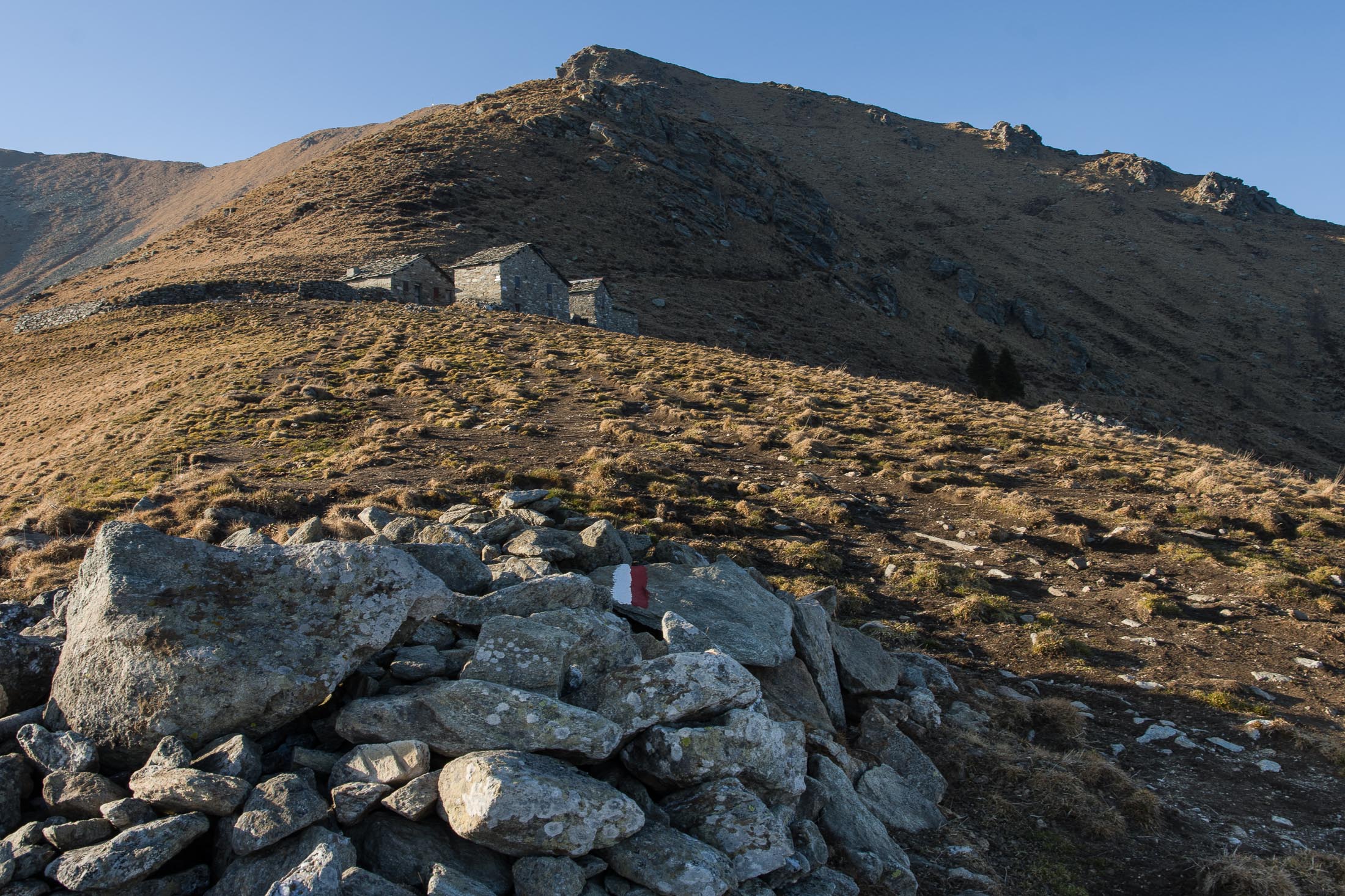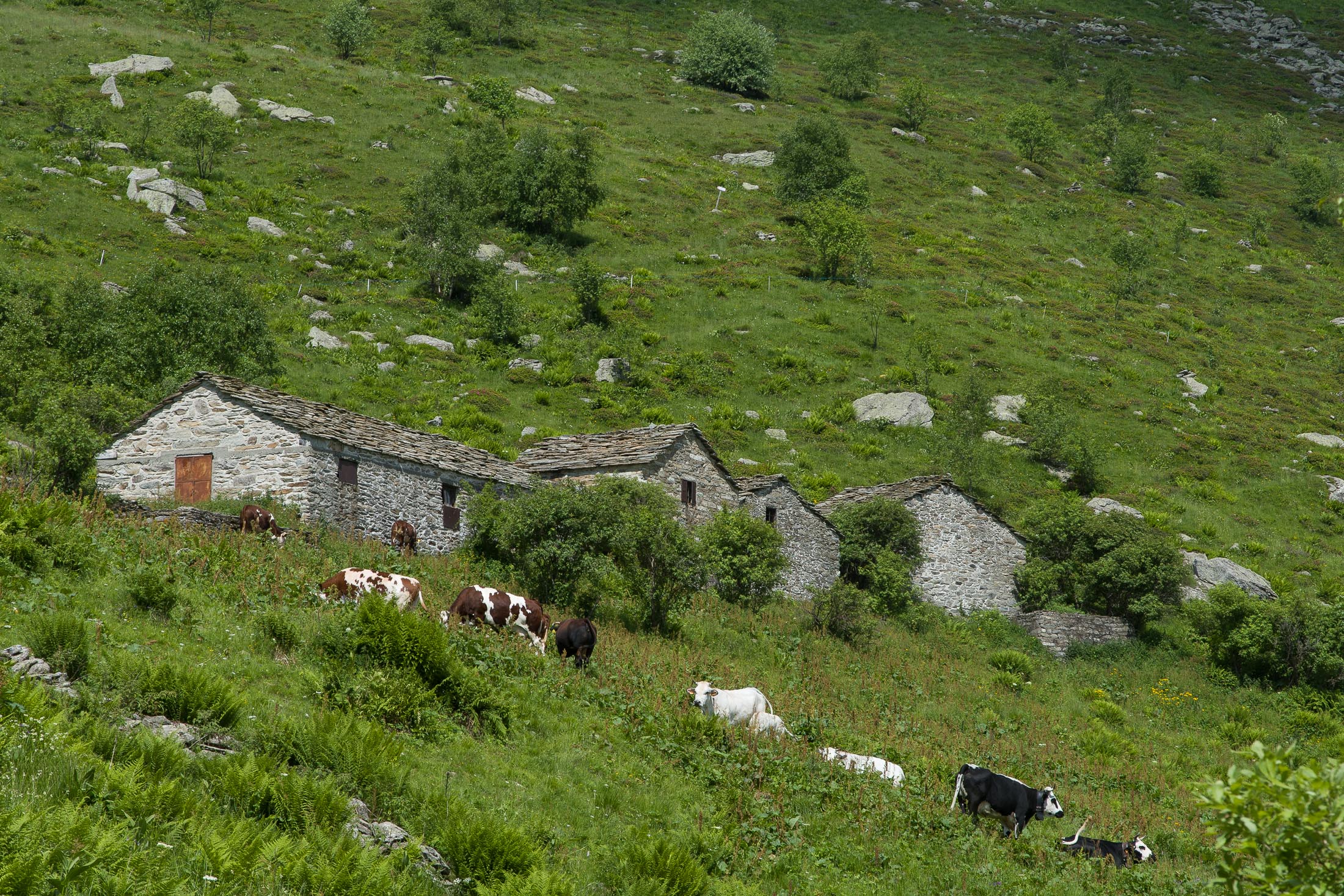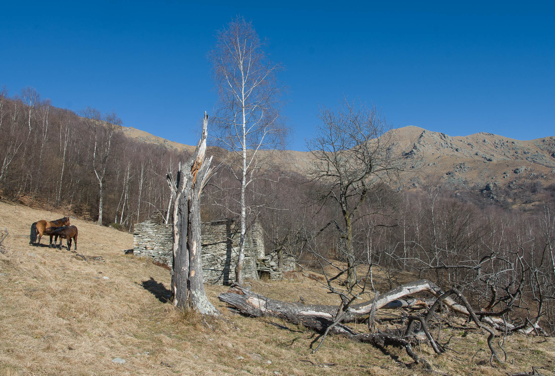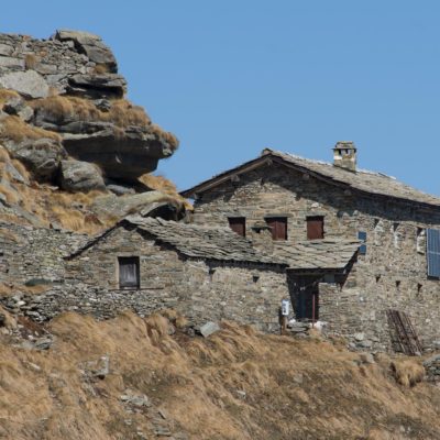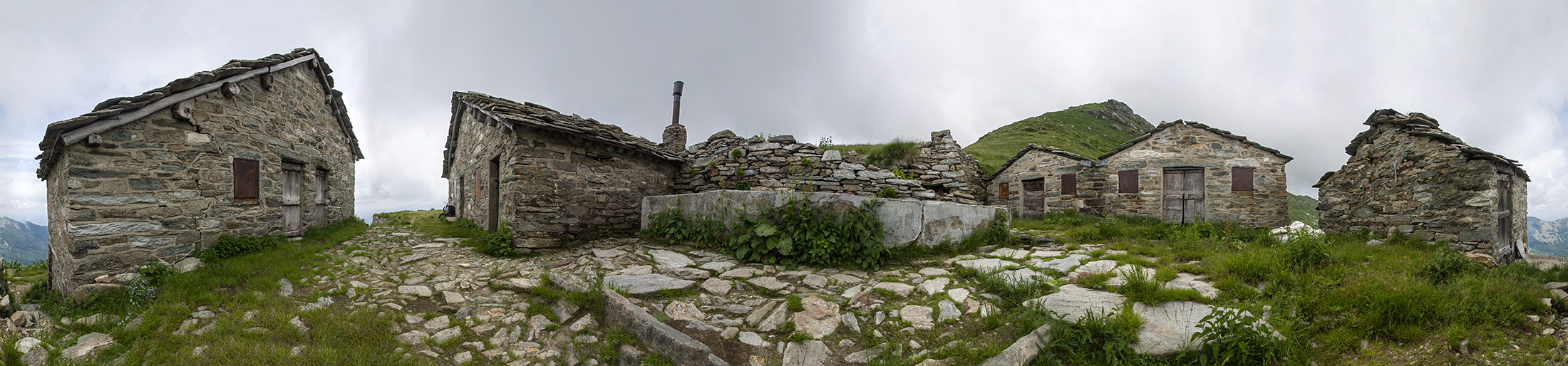 Vom Ausgangspunkt bei der Häusergruppe von Case Picat (961 m) folgt man zunächst der schmalen Asphaltstrasse, vorbei an den verstreuten Wochenendhäusern von Case Begin. Case (= Häuser) ist eine in dieser Gegend häufig vorkommende Bezeichnung für einen Weiler, eine kleine Siedlung oder ein Gehöft, was aus mehreren Wohn- und Wirtschaftsgebäuden besteht. Die Fahrstrasse endet nach etwa einem Kilometer bei dem Weiler Case Brancot. Der abgelegene Ort war früher dauerhaft bewohnt, die Menschen lebten über Generationen von der Berglandwirtschaft. In den piemontesischen Alpentälern begann nach dem zweiten Weltkrieg eine flächenhafte Entsiedelung, von dieser Entwicklung wurde auch das Val Malone nicht verschont. Viele Bergbewohner verliessen ihre Heimatdörfer und fanden in den seinerzeit expandierenden Industriebetrieben in den Städten der nahen Po-Ebene einen neuen Broterwerb. Diejenigen, die geblieben sind, sind mittlerweile gestorben. Nur wenige der alten Häuser von Case Brancot werden noch instandgehalten, sie sind jedoch nur noch am Wochenende oder den Sommerferien bewohnt, andere wiederum wurden bereits vor langer Zeit aufgegeben und für immer verlassen. Man blickt auf bröckelnden Putz und verwilderte Gärten, vor manchen Fenstern und Türen wuchert meterhoch das Unkraut.