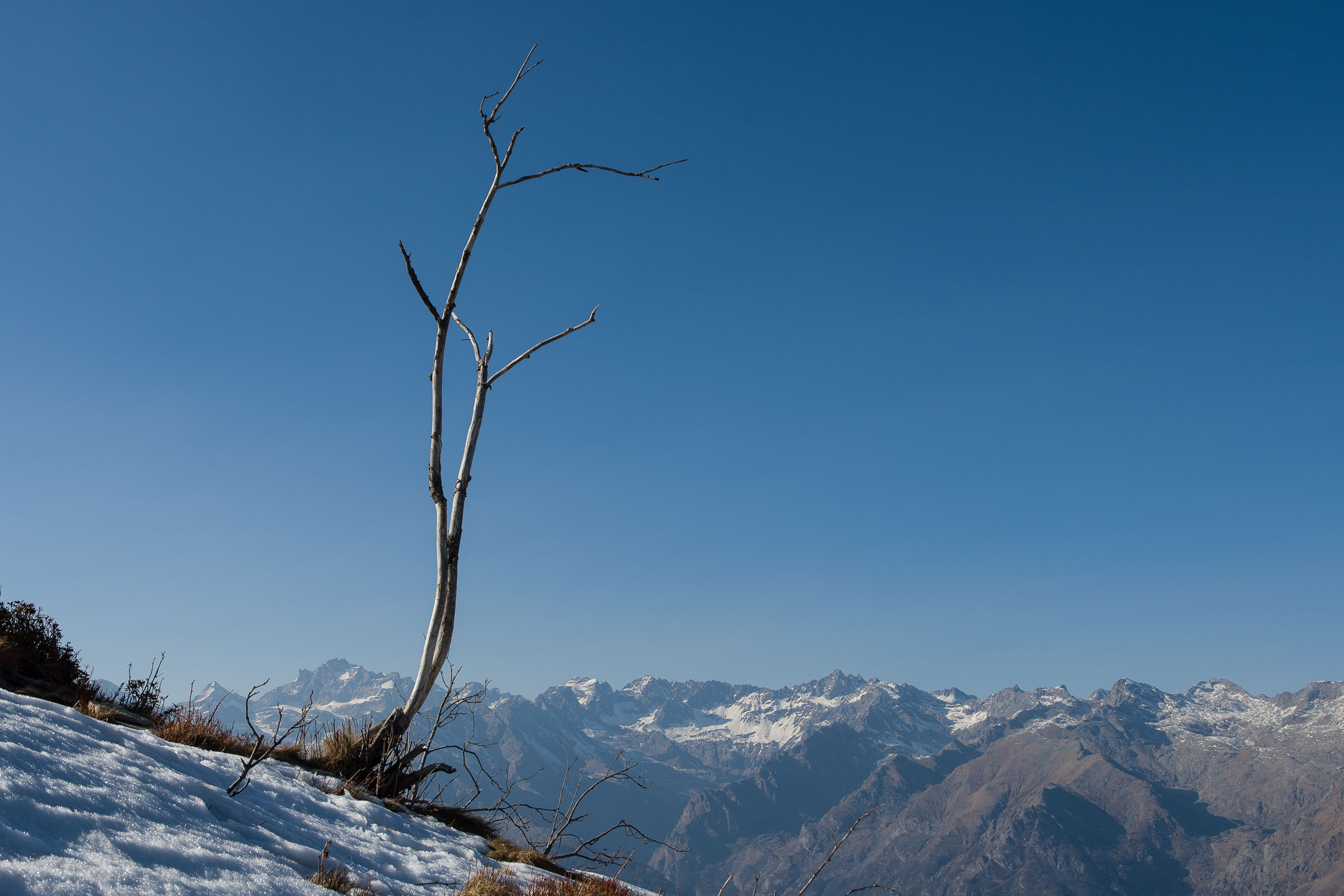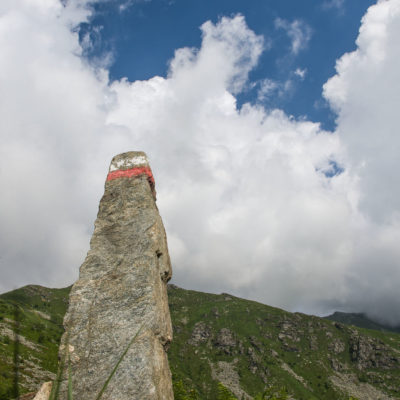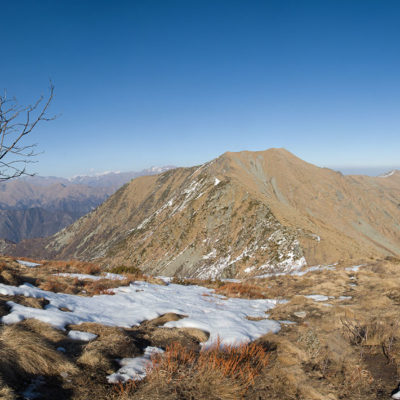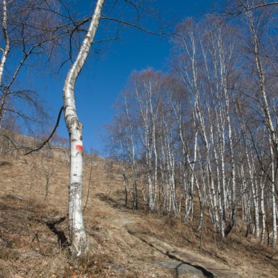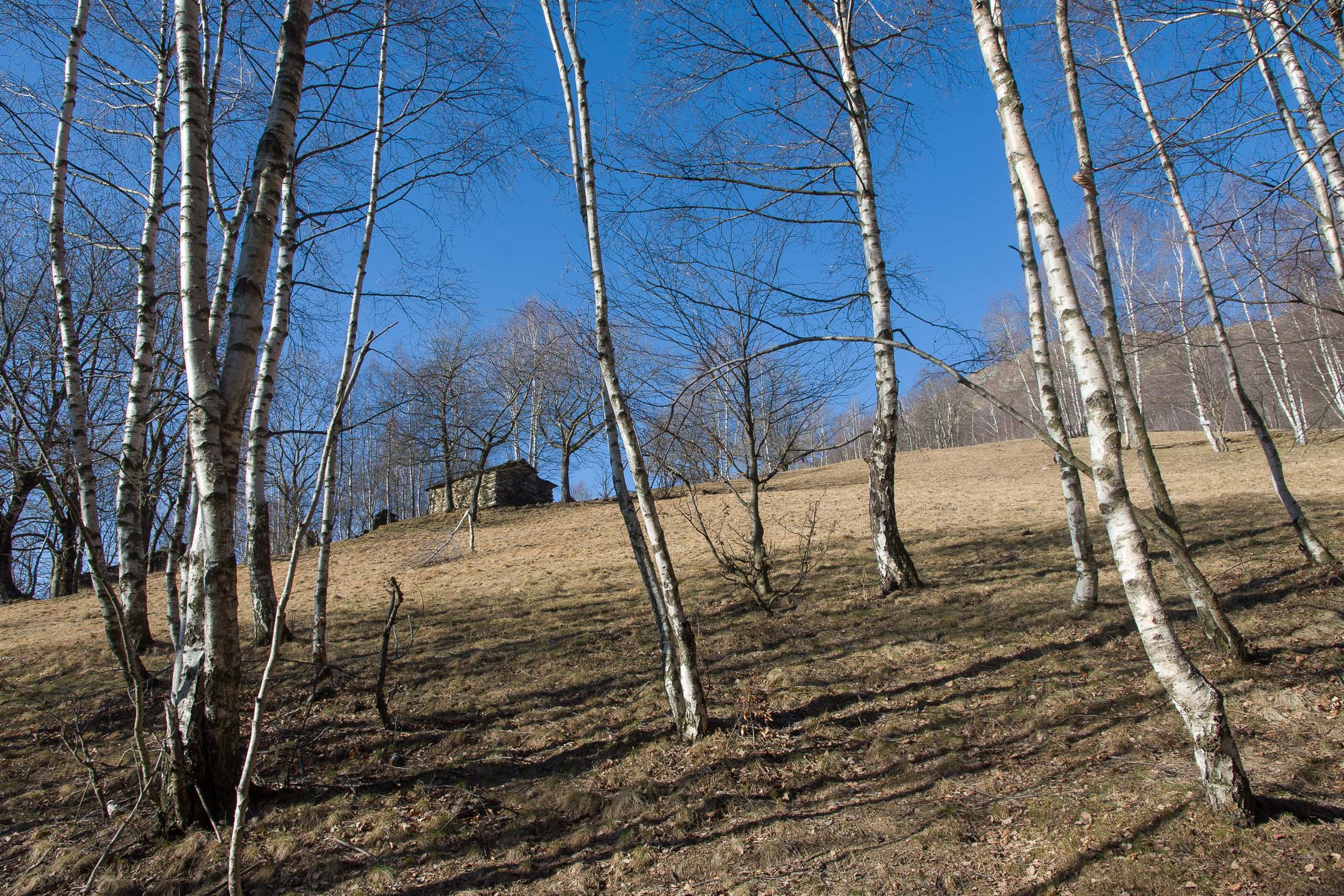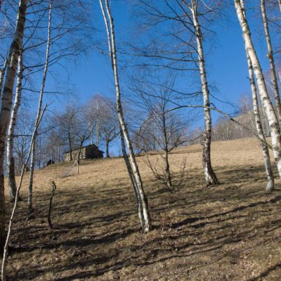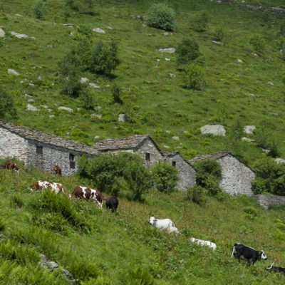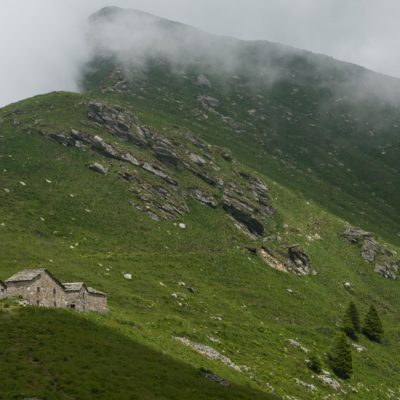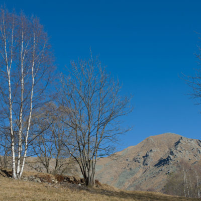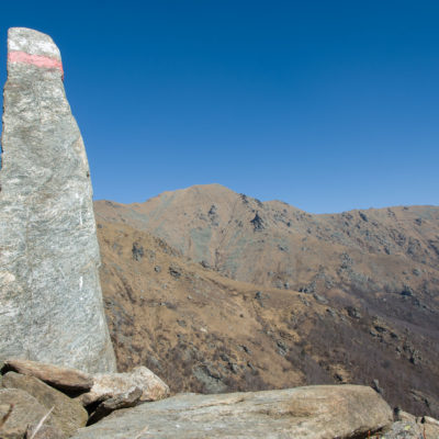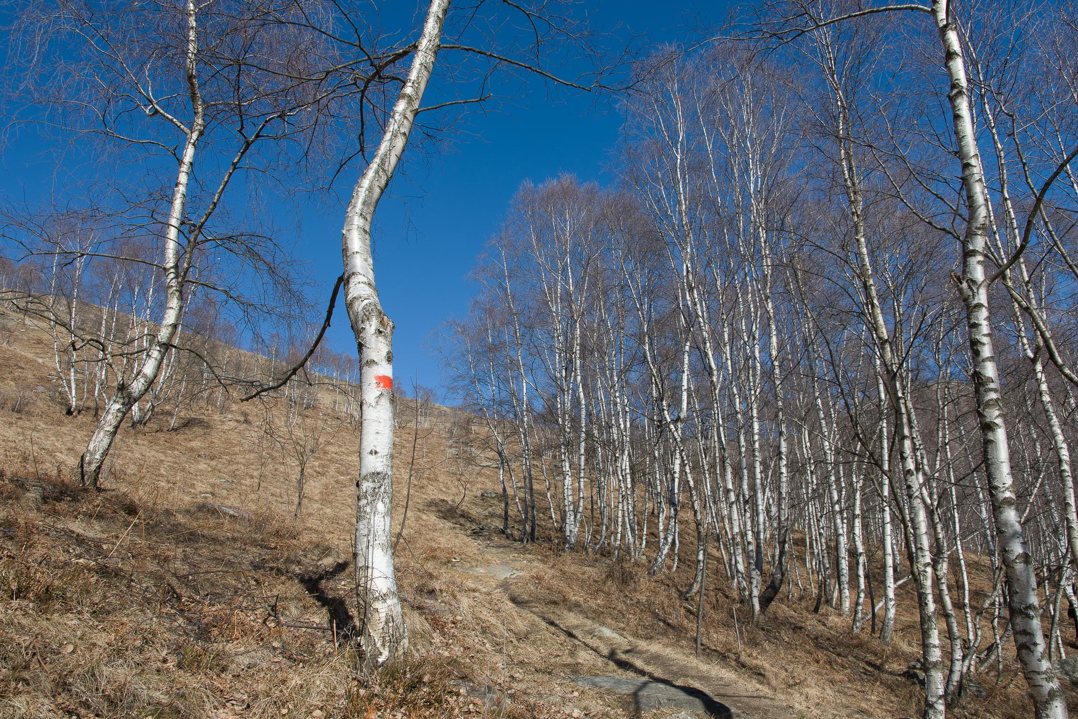 Vom Ausgangspunkt bei der Häusergruppe von Case Picat (961 m) folgt man zunächst der schmalen Asphaltstrasse, vorbei an den verstreuten Wochenendhäusern von Case Begin. Case (= Häuser) ist eine in dieser Gegend häufig vorkommende Bezeichnung für einen Weiler, eine kleine Siedlung oder ein Gehöft, was aus mehreren Wohn- und Wirtschaftsgebäuden besteht. Die Fahrstrasse endet nach etwa einem Kilometer bei dem Weiler Case Brancot. Der abgelegene Ort war früher dauerhaft bewohnt, die Menschen lebten über Generationen von der Berglandwirtschaft. In den piemontesischen Alpentälern begann nach dem zweiten Weltkrieg eine flächenhafte Entsiedelung, von dieser Entwicklung wurde auch das Val Malone nicht verschont. Viele Bergbewohner verliessen ihre Heimatdörfer und fanden in den seinerzeit expandierenden Industriebetrieben in den Städten der nahen Po-Ebene einen neuen Broterwerb. Diejenigen, die geblieben sind, sind mittlerweile gestorben. Nur wenige der alten Häuser von Case Brancot werden noch instandgehalten, sie sind jedoch nur noch am Wochenende oder den Sommerferien bewohnt, andere wiederum wurden bereits vor langer Zeit aufgegeben und für immer verlassen. Man blickt auf bröckelnden Putz und verwilderte Gärten, vor manchen Fenstern und Türen wuchert meterhoch das Unkraut.