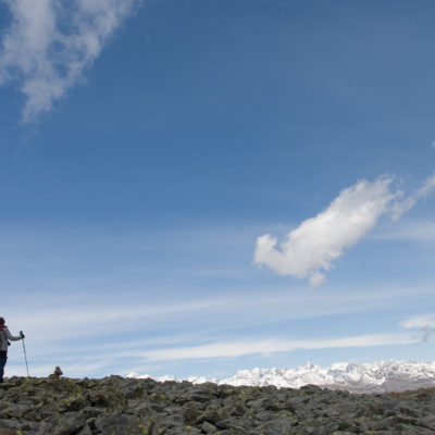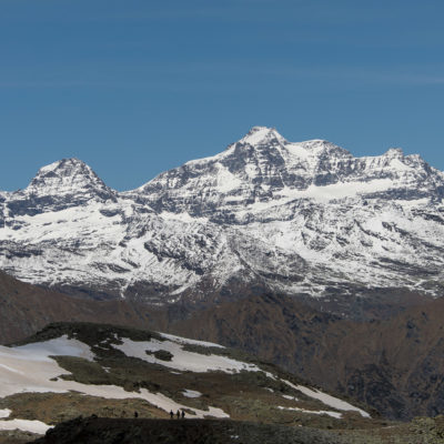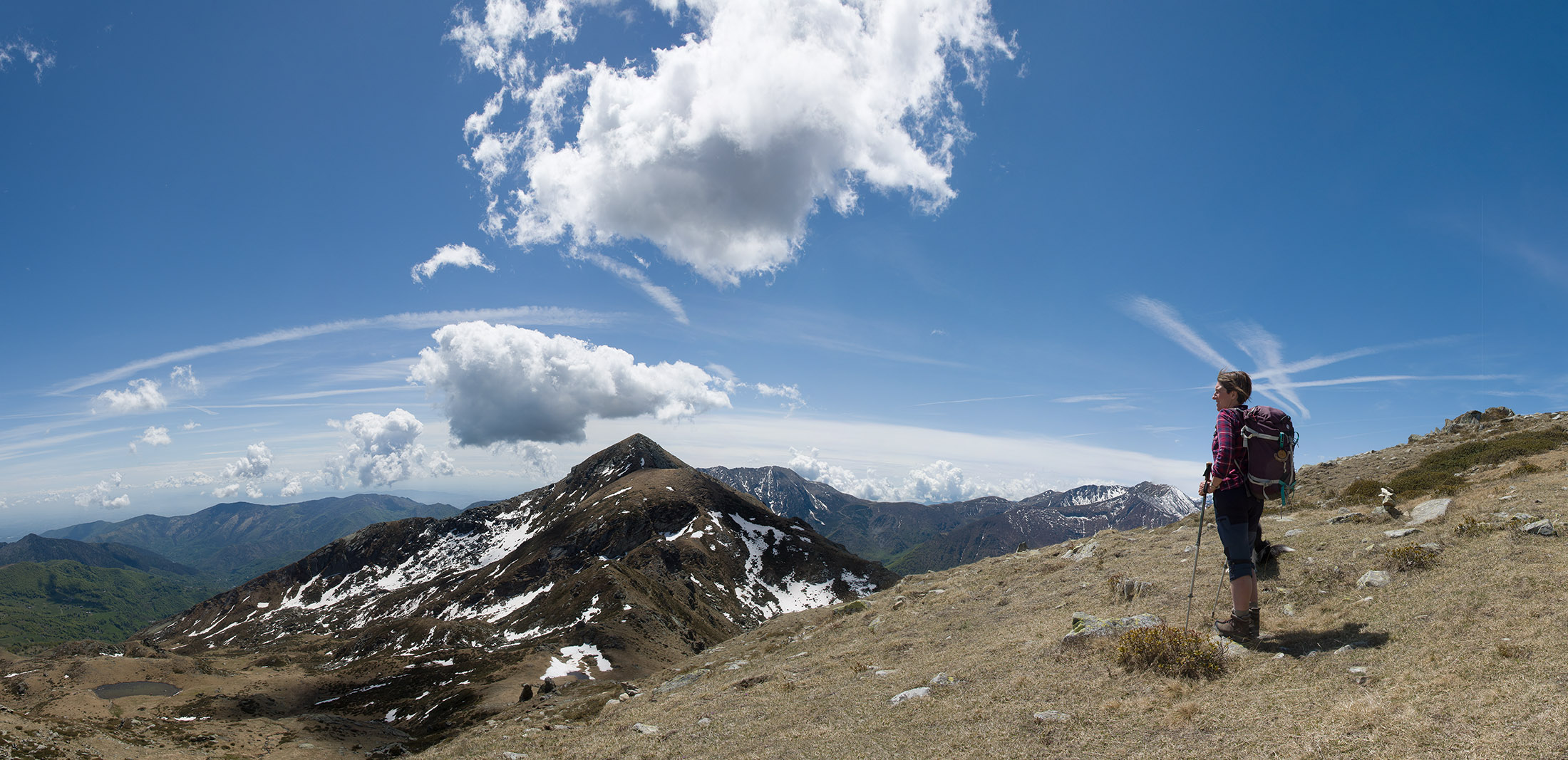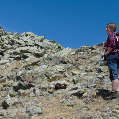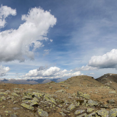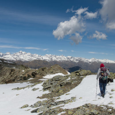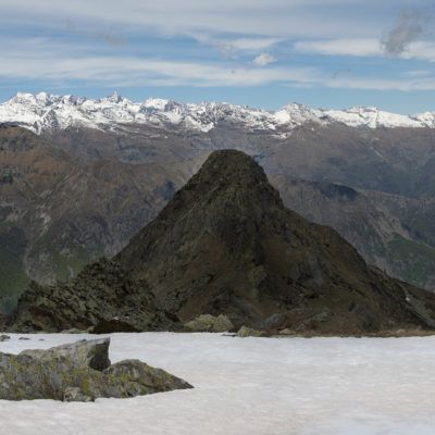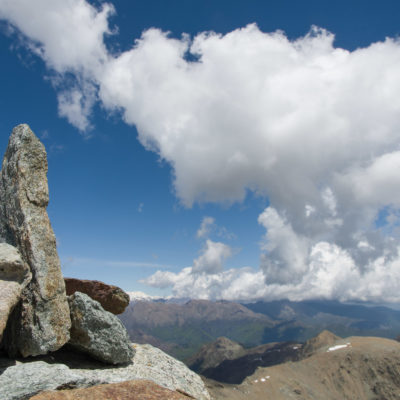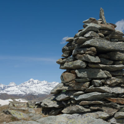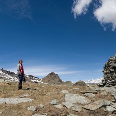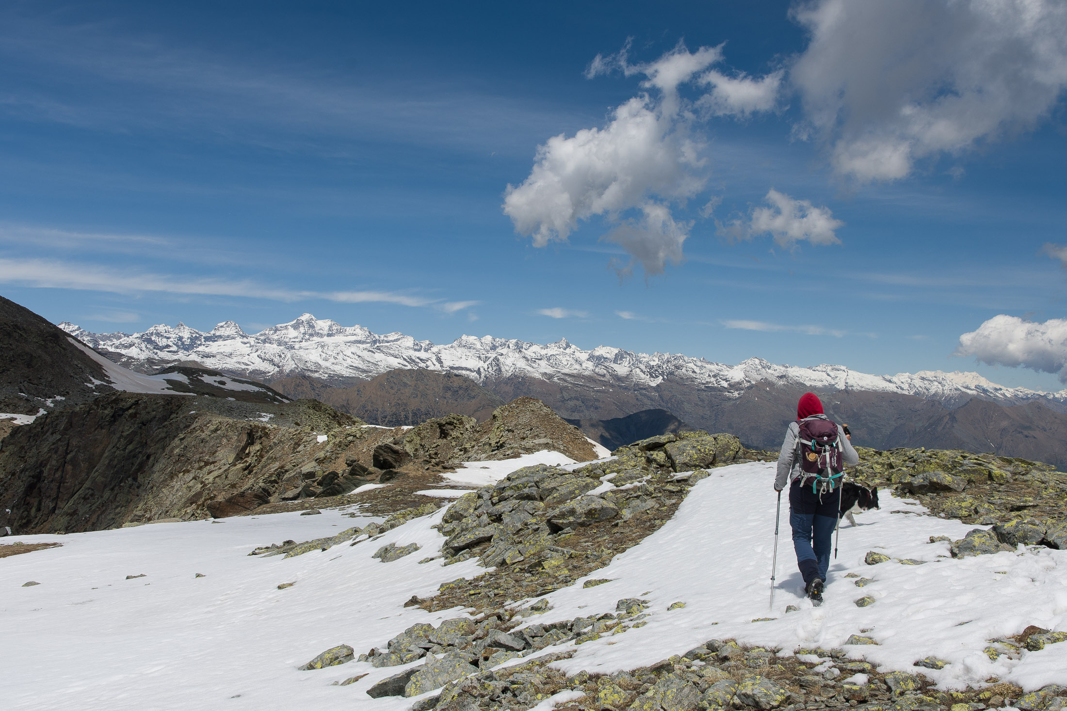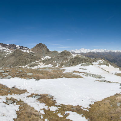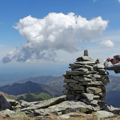 Die Wanderung beginnt zunächst gemütlich. Unterhalb der Hütten der Alpe Bianca (1420 m) folgt man den rot-weissen Markierungen und wandert zunächst über Wiesen und Weiden, nach wenigen Minuten mündet der Weg in eine unbefestigte und für den öffentlichen Verkehr gesperrte Alpstrasse, der man nun in der nächsten Stunde folgt. Nach einer Weile verlässt man den breiten Fahrweg und geht Richtung Westen auf einem deutlichen Pfad ein baumloses Hochtälchen hinauf, am Wegesrand ein kleiner namenloser See. Nach einer weiteren Stunde kommt man zum herrlich gelegenen Lago Vailet (2065 m), der zu einer gemütlichen Rast einlädt. Vom See steigt man in Kürze zum nahen Passo Vailet (2113 m), ein kaum begangener Übergang zwischen dem Vallone dei Tornetti und dem westlich gelegenen Vallone d‘Ovarda. Vom Passo Vailet geht es nun in weiteren 45 Minuten über den Südgrat des bereits weithin sichtbaren Gipfels auf steiler werdendem Pfad stramm bergauf. Auf den letzten Metern führt der Weg durch ein Geröllfeld, schliesslich erreicht man den grossen Steinmann auf dem weitläufigen Gipfelplateau des Ciarm del Prete (2389 m). Das Panorama ist umfassend und spektakulär, im Süden grüsst der Monviso (3841 m), im Westen die Berge des Valle di Viù, die dominierendsten sind die charakteristische Pyramide des Rocciamelone (3538 m), der Monte Lera (3358 m) und die markante Felsgestalt des Torre d‘Ovarda (3069 m). Im Norden zeigt sich bei klarer Sicht das Gran Paradiso-Massiv (4061 m) mit all seinen Trabanten, im Nordosten die Monte Rosa-Gruppe (4634 m), Richtung Osten blickt man bis in die piemontesische Tiefebene.