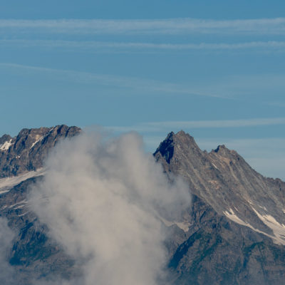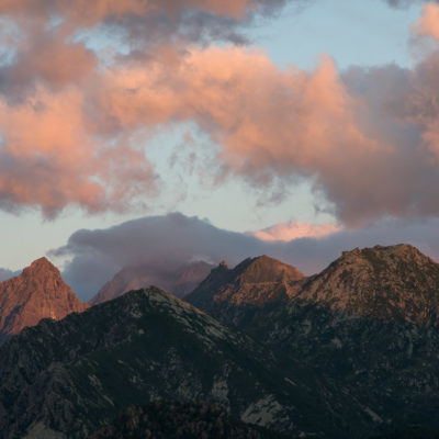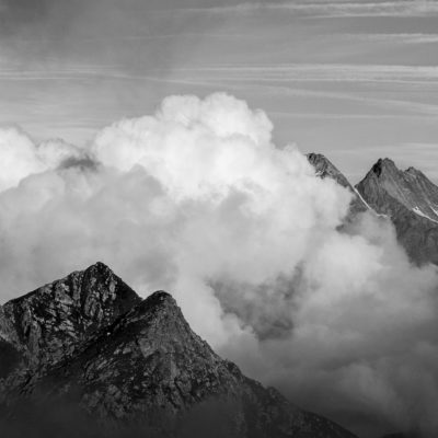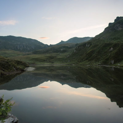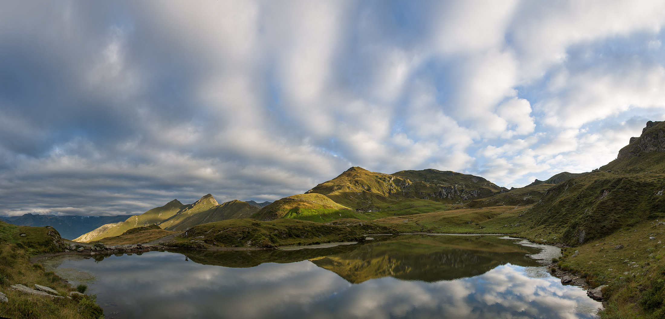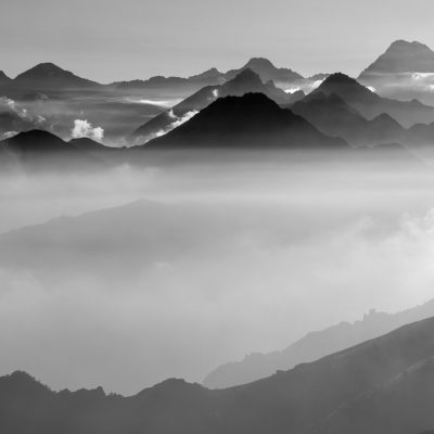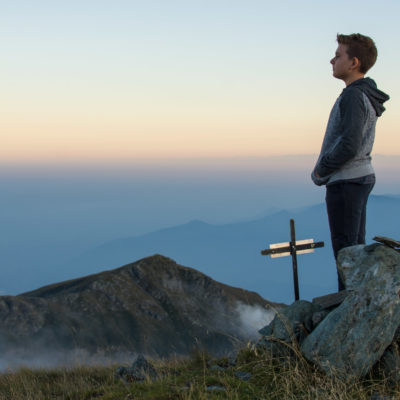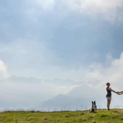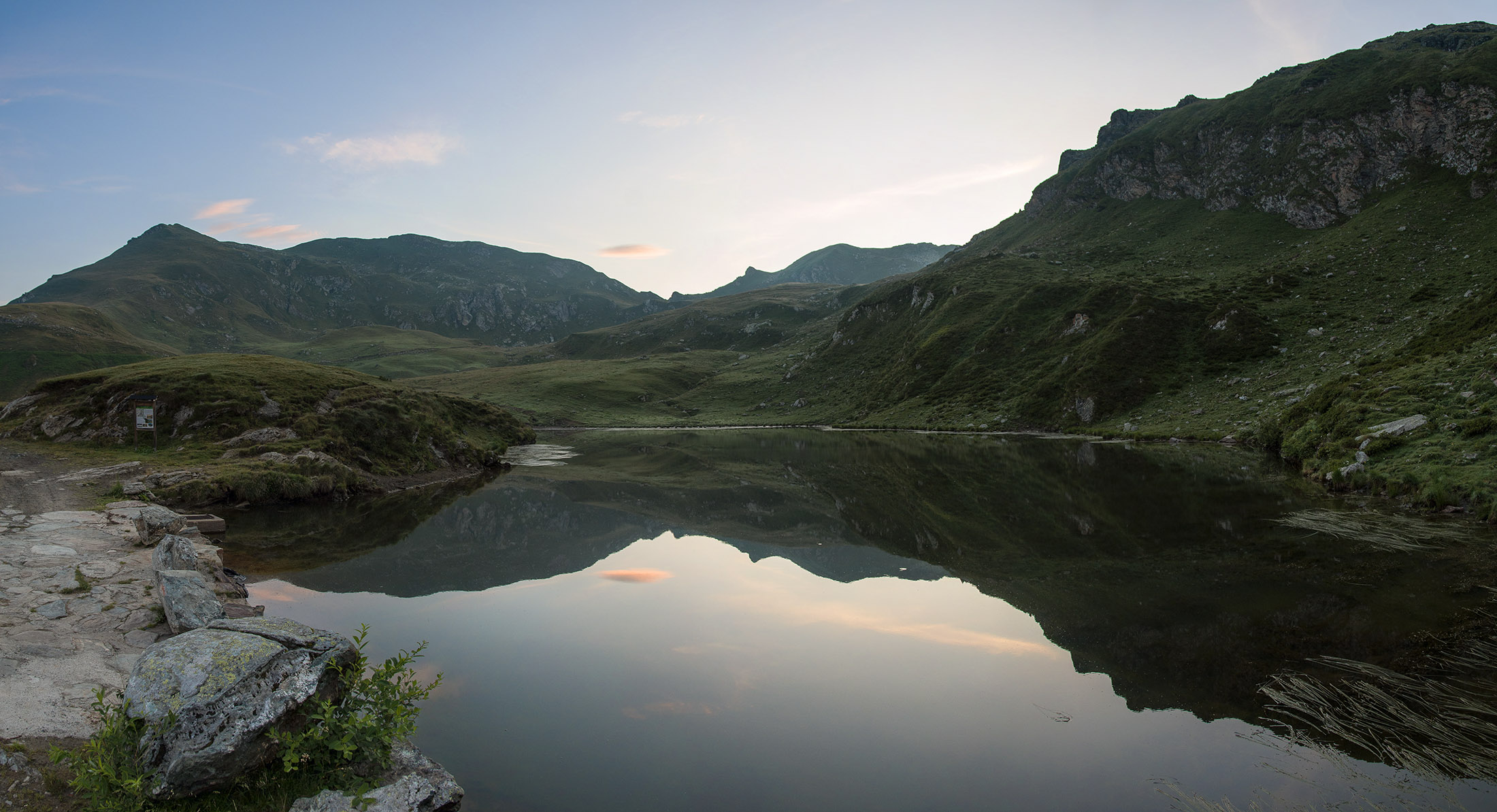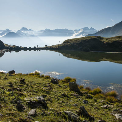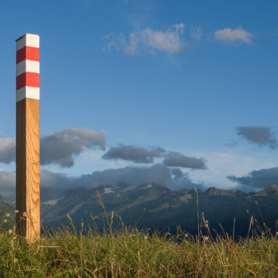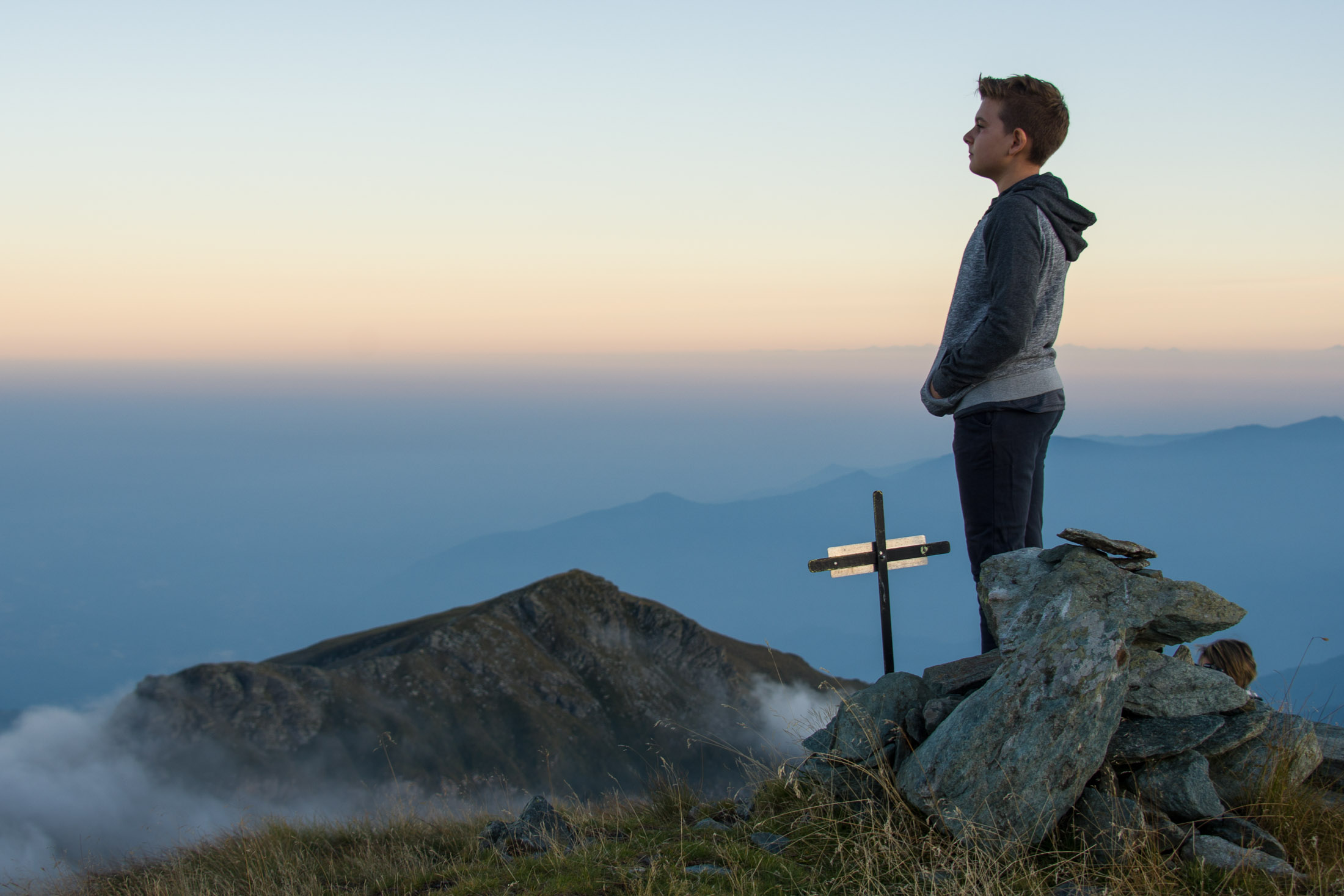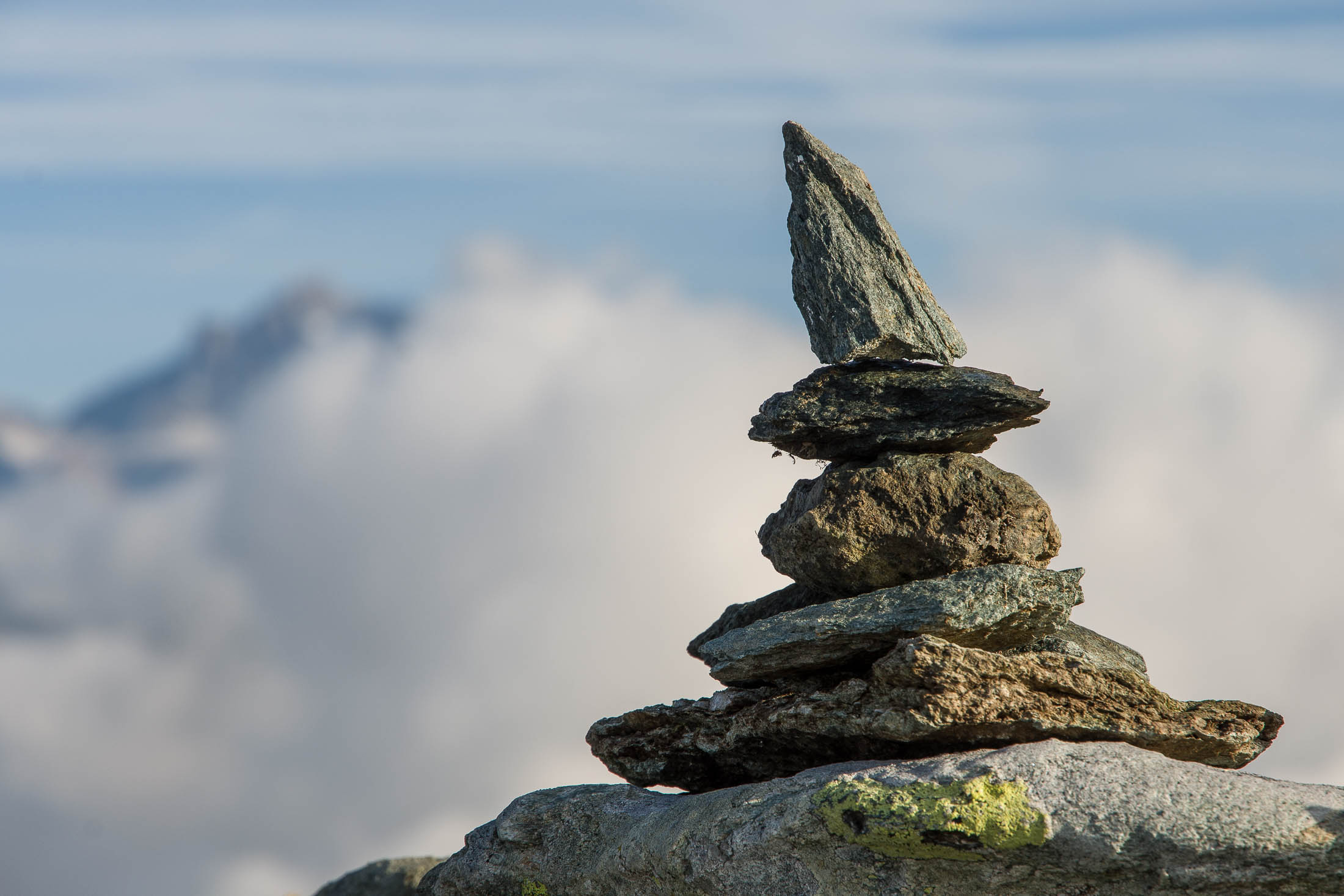 Vom Lago di Monastero sind es nur wenige Schritte bis zur im Sommer bewirtschafteten Alpe di Coassolo (2026 m). Der verbleibende Aufstieg zur Cima La Rossa ist nicht markiert und mehr oder weniger weglos, aber völlig unschwierig, hier und da helfen vereinzelte Steinmännchen bei der Orientierung. Bei dem hier im Sommer oft vorkommenden Nebel sollte man allerdings aufpassen, dass man den Weg nicht verliert. Bei der Alpe di Coassolo verlässt man die Alpstrasse und steigt einfach über die Weiden auf einen nordwestlich gelegenen grasigen Geländerücken, dort trifft man auf einen Viehsteig, der irgendwann ostwärts abknickt. Die spärliche Pfadspur führt zu einer kleinen Verebnungsfläche mit einem riesigen Steinmann, von dort weglos und schwitzend durch hohes Gras weiter bis zu einem von weitem erkennbaren Holzpflock am Ostgrat des Berges, von dort in wenigen Schritten hinauf zum Gipfelkreuz der Cima La Rossa (2319 m). Hier liegt einem die Welt zu Füssen, Johann Wolfgang von Goethe dichtete einst: „Berge sind stille Meister und machen schweigsame Schüler“. Poetisch ist auch das Panorama von hier oben. Im Norden zeigt sich der Gran Paradiso (4061 m) mit all seinen Trabanten, östlich davon der Monte Rosa (4634 m), das zweithöchste Bergmassiv der Alpen, im Westen die Gruppe der Levanne (3619 m) und viele andere namhafte Erhebungen der Valli di Lanzo. Im Osten verliert sich Po-Ebene im immerwährenden Dunst, im Süden grüsst der Monviso (3841 m), bei klarer Sicht blickt man bis in die Seealpen. Auf dem kleinen Gipfelkreuz steht geschrieben: „Quando diventa buio, puoi vedere le stelle – wenn es dunkel wird, kannst du die Sterne sehen“. Dem gibt es nichts hinzuzufügen.