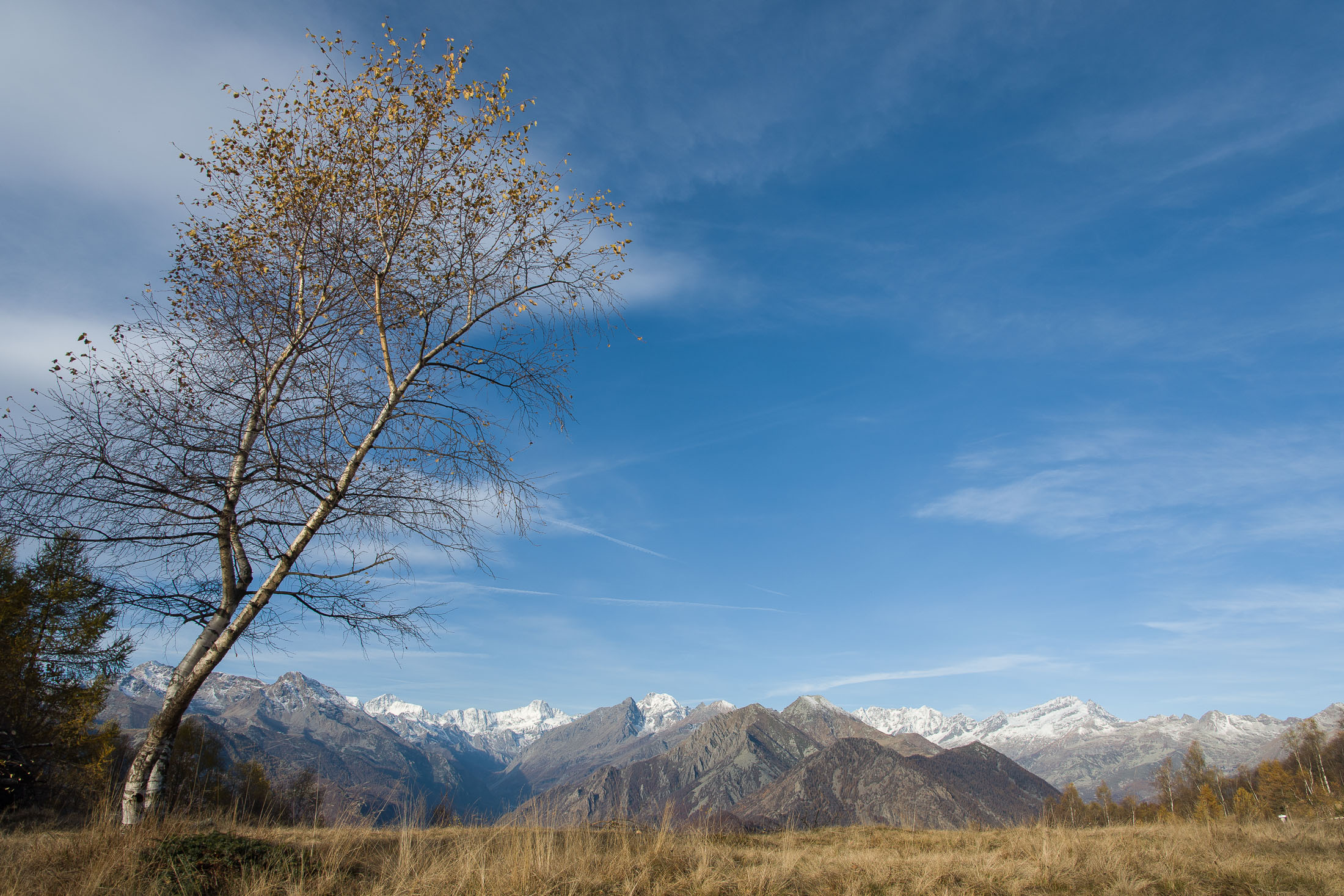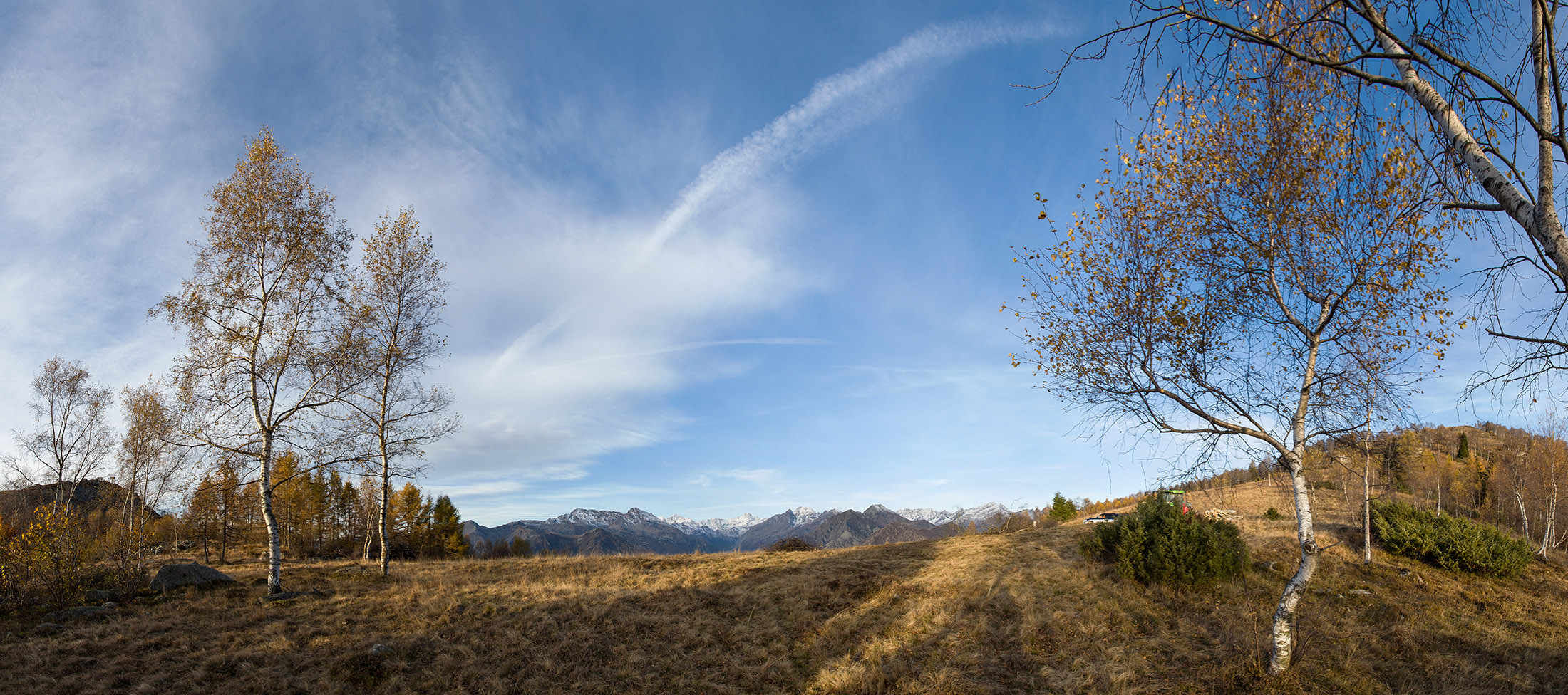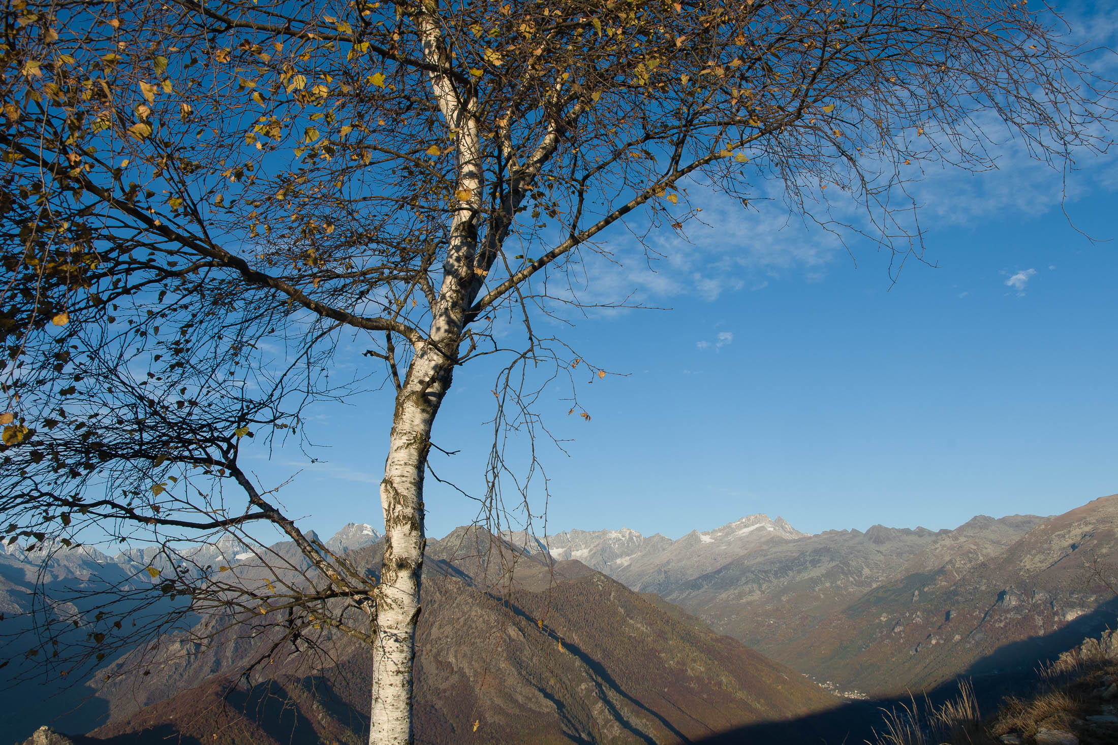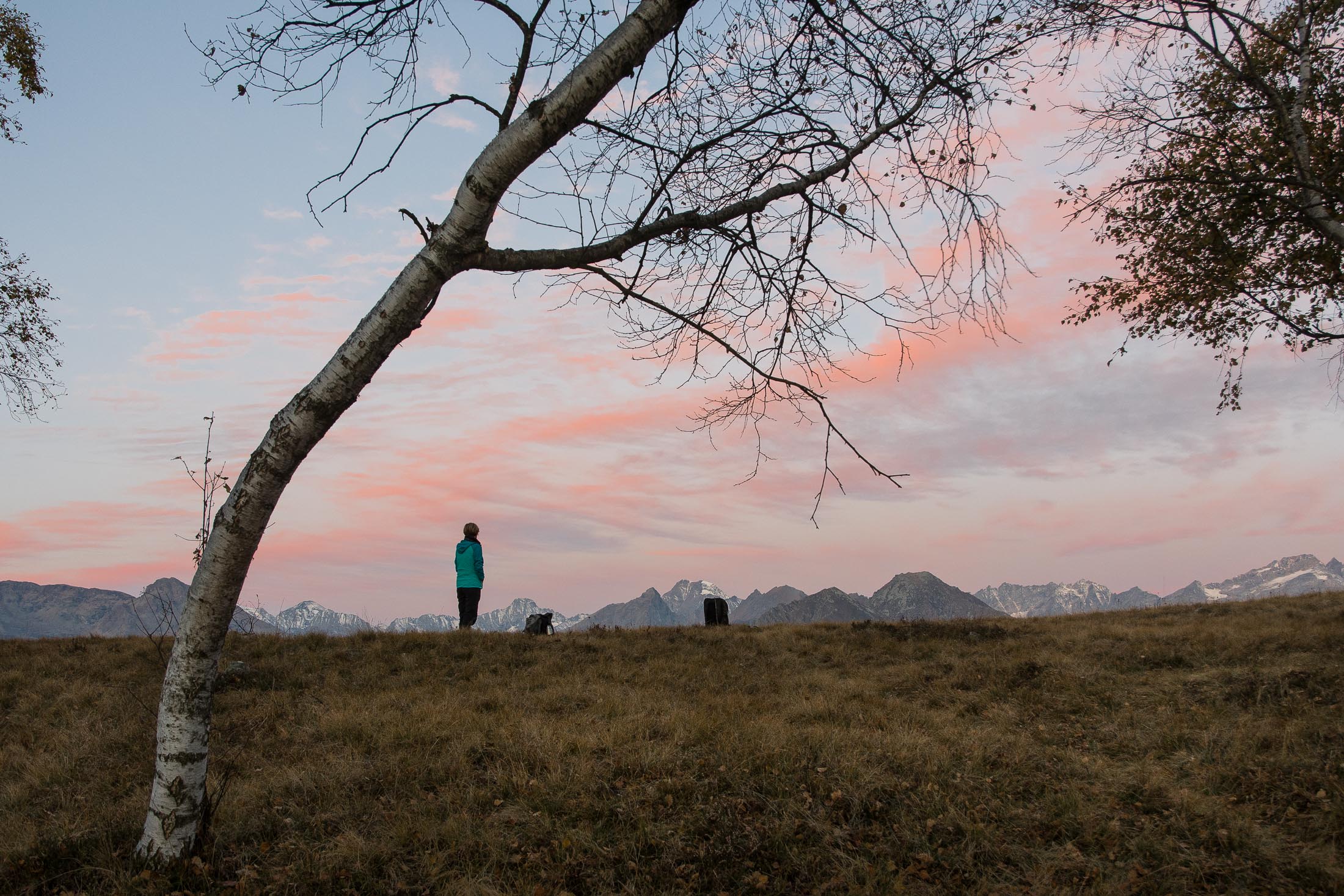 Abmarsch, der Puls ist hoffentlich auf Betriebstemperatur. Das Ziel ist anvisiert, vor einem knapp 1000 Höhenmetern, keine grosse Hürde, aber sie wollen gelaufen werden. Vorfreude ist die beste Motivation. Die ersten Aufstiegsmeter bis zum Colle San Giacomo (1460 m) schlängeln sich durch lichten Birkenwald und sind schnell überwunden, zur Belohnung gibt es ganz viel Aussicht, ein kleiner Vorgeschmack auf all das, was noch kommen mag. Man steht auf einer grasigen Anhöhe zwischen dem Valle Tesso und dem Val Grande di Lanzo, um einen herum weites Land, in der Ferne leuchten die Berge der Valli di Lanzo im Licht der warmen Morgensonne, alle schön in Reih und Glied. Wer früh aufsteht, hat mehr vom Leben. Dieses Motto gilt ganz besonders für diese Tour, vor allem in den Sommermonaten bildet sich bereits ab den Vormittagsstunden in umliegenden Kammlagen häufig Nebel, bedingt durch die feuchtwarmen Luftmassen, die aus der nahen und im Sommer meist brütend heissen Tiefebene aufsteigen. Also, wer was sehen will, macht sich besser zeitig auf den Weg. Ein wenig unterhalb des Passes befindet sich die sehenswerte Cappella di San Giacomo (1414 m), das weiss gekalkte Gotteshaus wird von Einheimischen in ehrenamtlicher Arbeit gepflegt und instandgehalten.