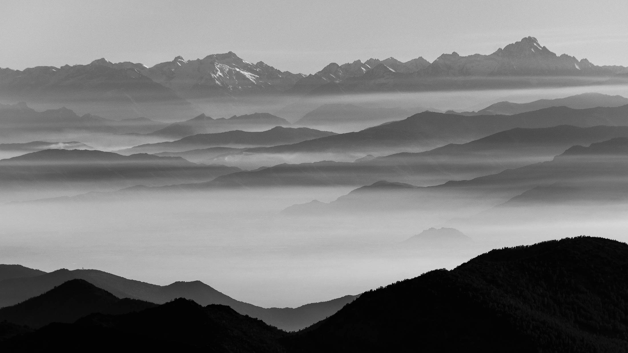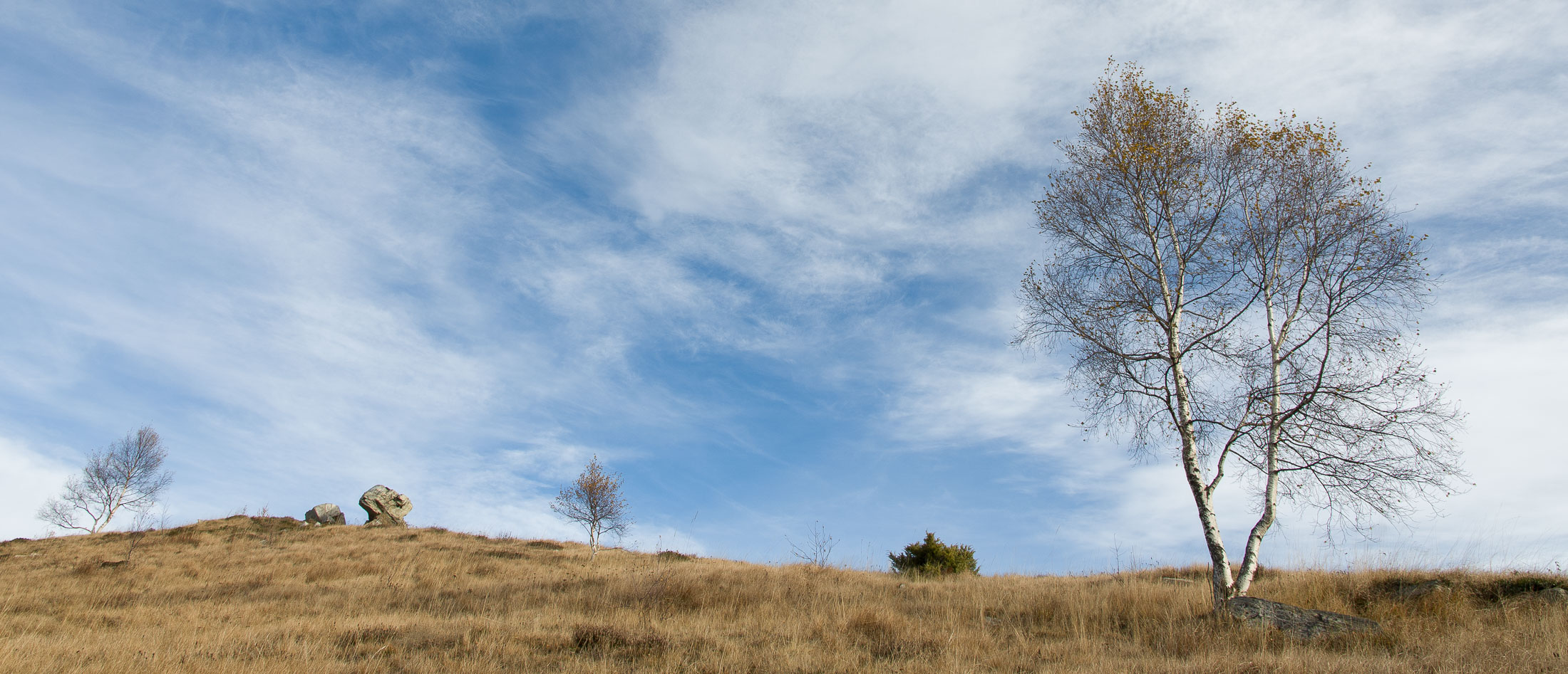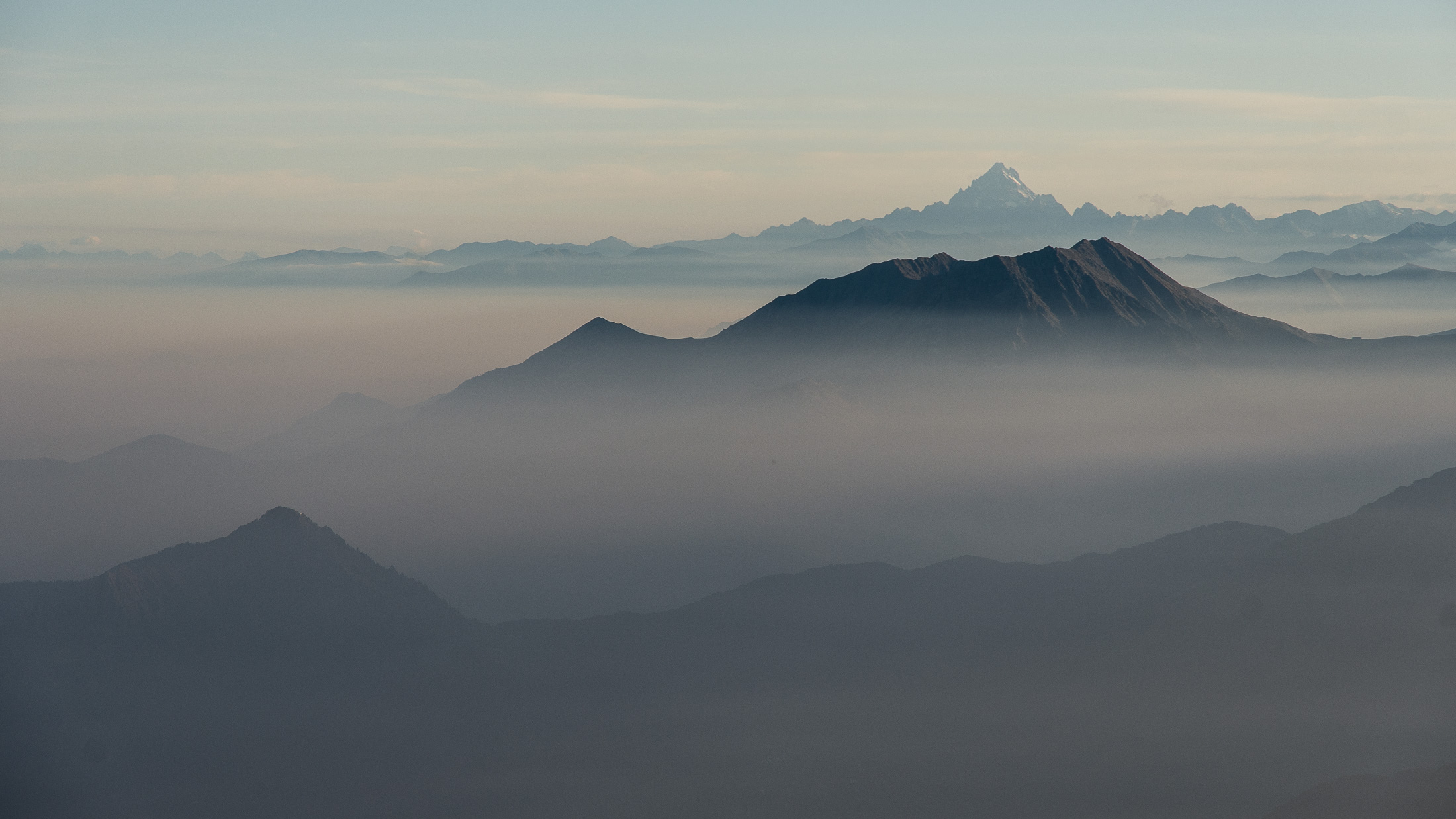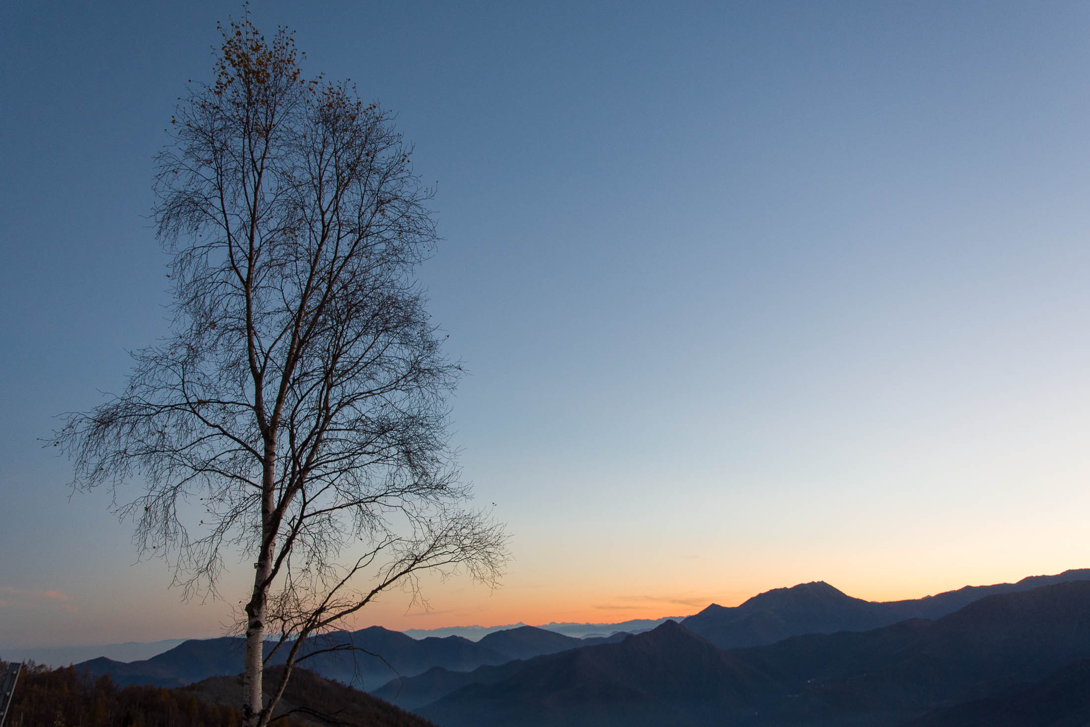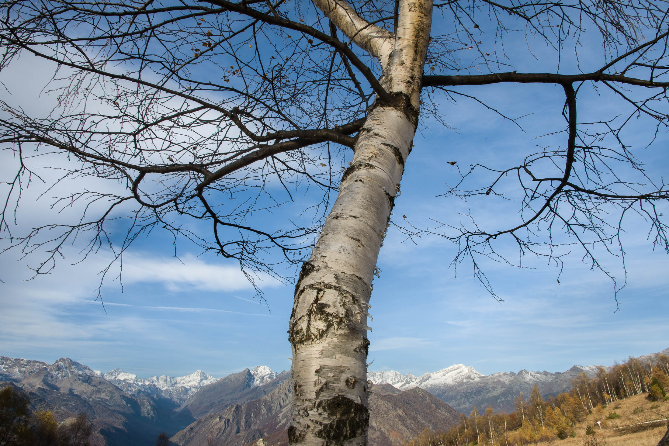 Abmarsch, der Puls ist hoffentlich auf Betriebstemperatur. Das Ziel ist anvisiert, vor einem knapp 1000 Höhenmetern, keine grosse Hürde, aber sie wollen gelaufen werden. Vorfreude ist die beste Motivation. Die ersten Aufstiegsmeter bis zum Colle San Giacomo (1460 m) schlängeln sich durch lichten Birkenwald und sind schnell überwunden, zur Belohnung gibt es ganz viel Aussicht, ein kleiner Vorgeschmack auf all das, was noch kommen mag. Man steht auf einer grasigen Anhöhe zwischen dem Valle Tesso und dem Val Grande di Lanzo, um einen herum weites Land, in der Ferne leuchten die Berge der Valli di Lanzo im Licht der warmen Morgensonne, alle schön in Reih und Glied. Wer früh aufsteht, hat mehr vom Leben. Dieses Motto gilt ganz besonders für diese Tour, vor allem in den Sommermonaten bildet sich bereits ab den Vormittagsstunden in umliegenden Kammlagen häufig Nebel, bedingt durch die feuchtwarmen Luftmassen, die aus der nahen und im Sommer meist brütend heissen Tiefebene aufsteigen. Also, wer was sehen will, macht sich besser zeitig auf den Weg. Ein wenig unterhalb des Passes befindet sich die sehenswerte Cappella di San Giacomo (1414 m), das weiss gekalkte Gotteshaus wird von Einheimischen in ehrenamtlicher Arbeit gepflegt und instandgehalten.