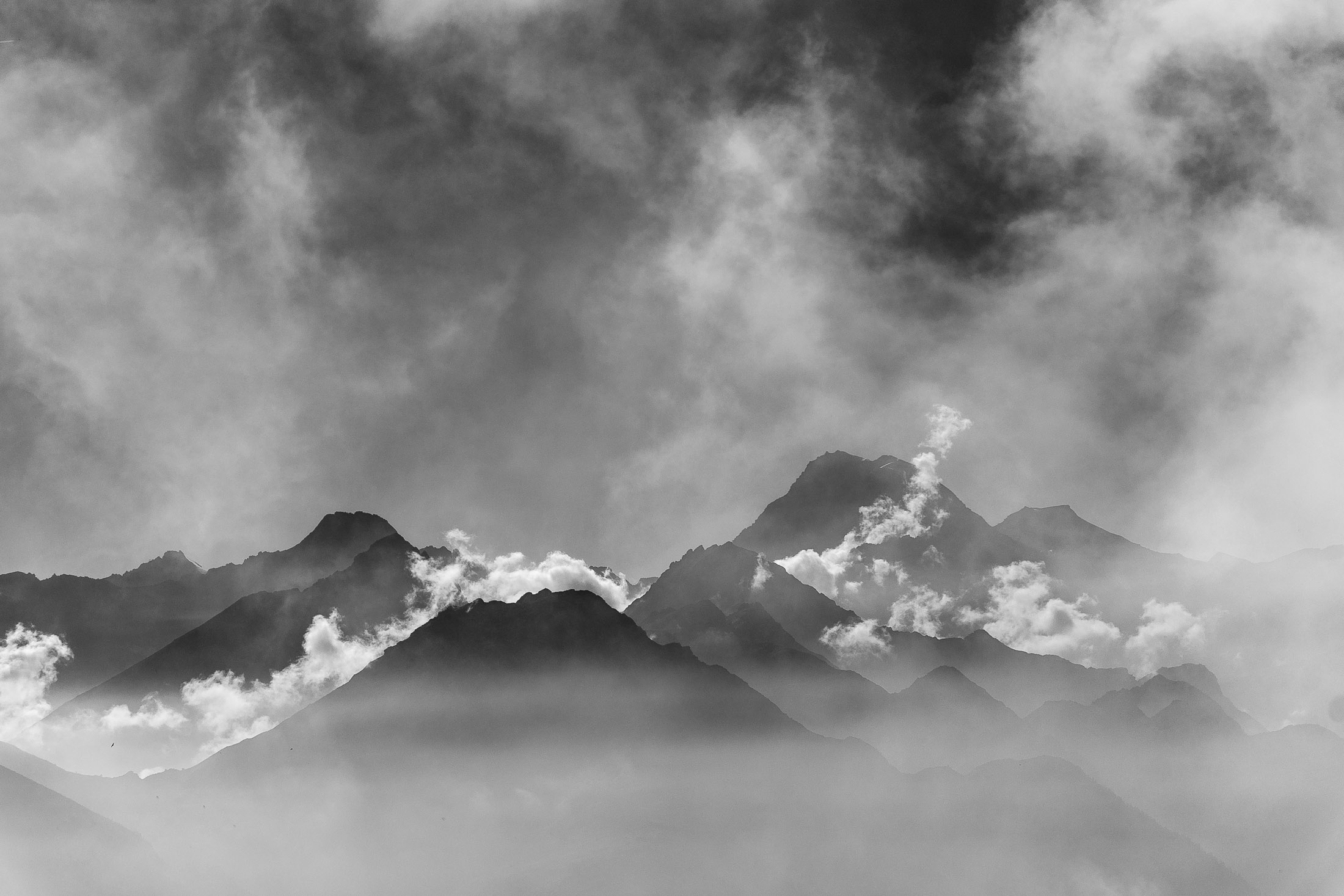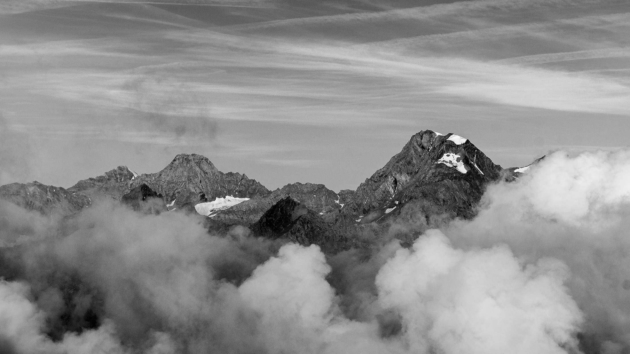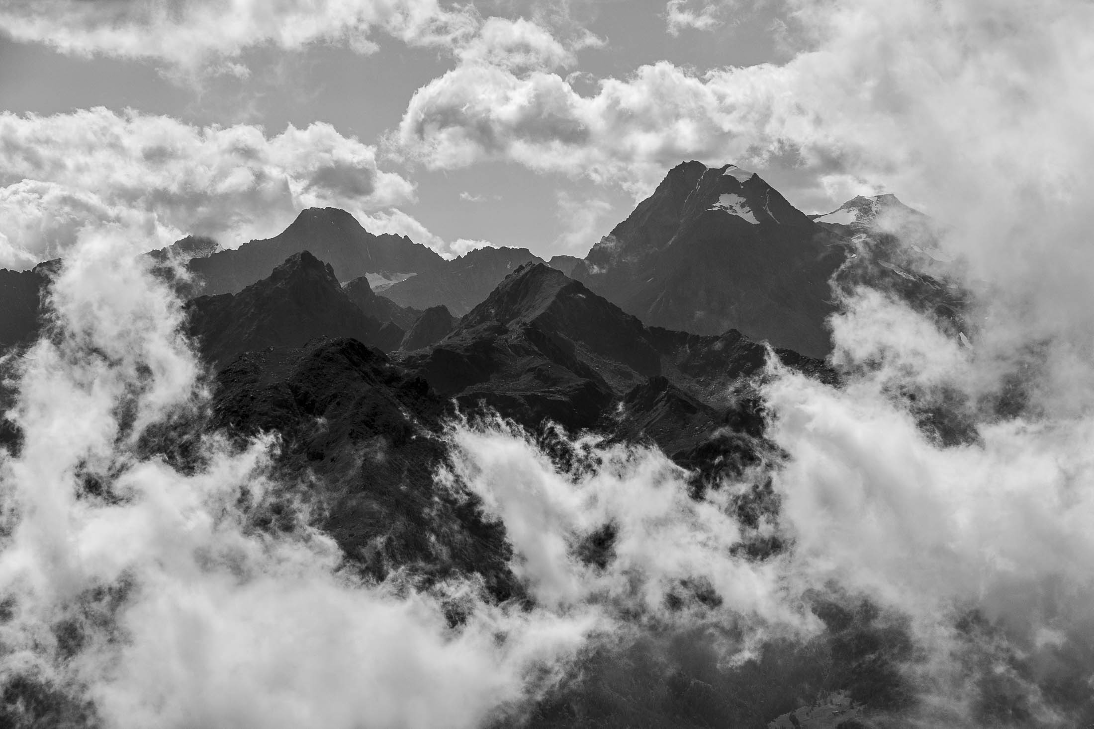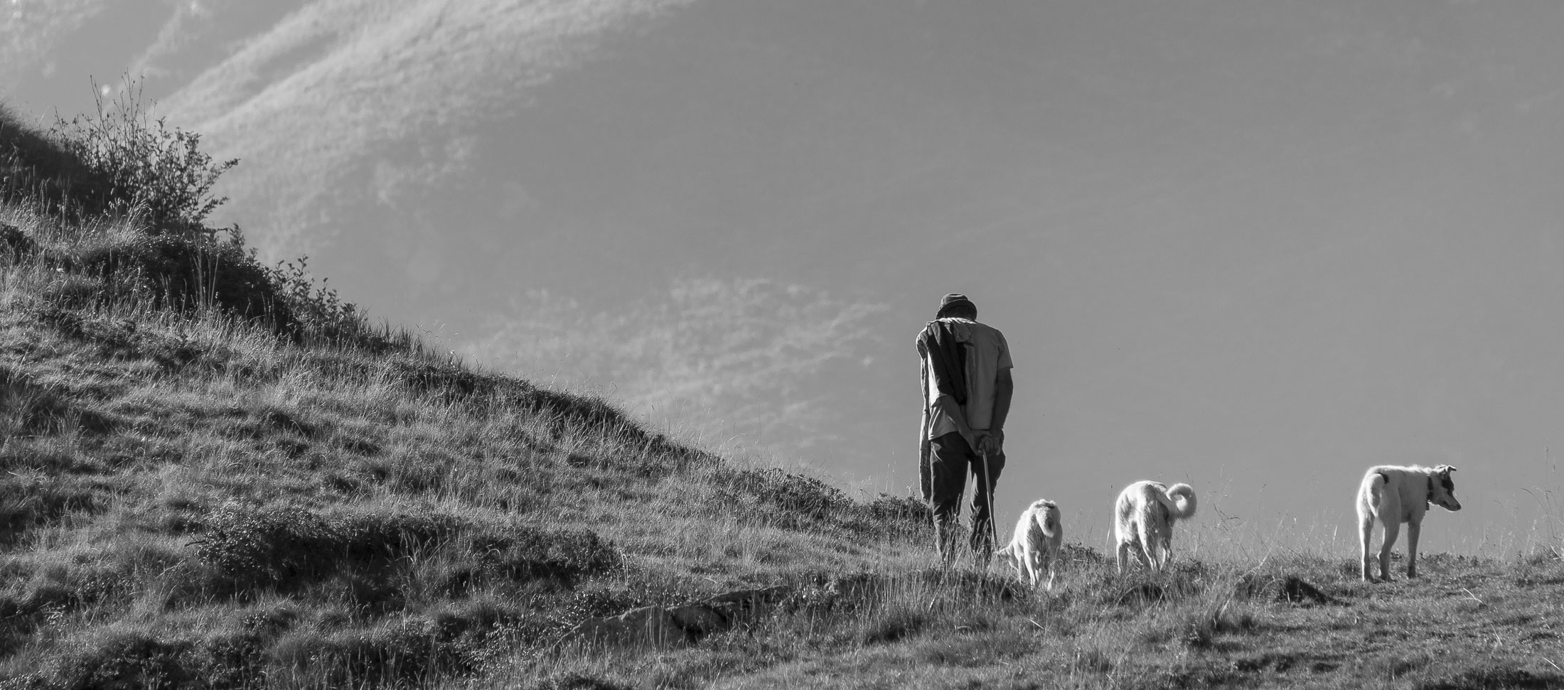 Vom Colle San Giacomo (1460 m) folgt man dem breiten Weg über die Weiden bis zur nahen Alpe Santa Barbara (1504 m). Die Welt ist im Wandel, früher wurde hier das Vieh gemolken, Käse gemacht und Heu gewendet, heute blickt man auf hübsch renovierte Wochenhäuschen. Der Weiterweg führt durch einen lauschigen Birkenwald. Dieser Wald ist noch jung, die Umgebung der Alpe Santa Barbara war einst gerodet, hier weideten über Generationen Kühe, Schafe und Ziegen. Seit der weitgehenden Einstellung der traditionellen Alpwirtschaft hat sich das Landschaftsbild stark verändert, immer mehr Weideflächen veröden und werden von Birken beschlagnahmt. Am Colle della Forchetta (1589 m) mündet der Weg in die geschotterte Zufahrtsstrasse zur Alpe di Monastero. Ein grosser Gedenkstein erinnert an die Gefallenen des Krieges. Weiter oben in einer Kehre zweigt links eine anfangs undeutliche Pfadspur ab, auf dieser erreicht man in Kürze freies Gelände und den grasigen Gratrücken zwischen dem Valle Tesso und dem westlich gelegenen Val Grande di Lanzo. Vorhang auf! Die Aussicht ist bereits von hier atemberaubend. Mitten auf dem einsamen Kamm trohnt der Decollo di Menulla, eine hölzerne Statue zwischen Himmel und Erde, originelle Handwerkskunst mitten im Nirgendwo. Der Weg folgt nun eine Weile dem Gratverlauf, jeder Schritt ist hier ein Genuss. Wenig später kommt man zu einer Gruppe von Alpgebäuden, gleich daneben der Roc del Gal (1693 m), wie dieser pittoresk anmutende Felsklotz hier hingekommen ist, wissen vermutlich nur die Götter. Wenige Minuten später mündet der Weg bei den Hütten der Prati della Fontana (1701 m) erneut in die parallel verlaufende Alpstrasse. Auf dieser kann man nun in der nächsten Stunde gemütlich von sich hintraben. Auf der Alpe di Monastero (1971 m) herrscht rege Betriebsamkeit, zumindest wenn Giovanni da ist, ein sympathischer Mittsiebziger mit sonnengegerbtem faltigem Gesicht und markantem Schnauzer. Sommer für Sommer verbringt er gemeinsam mit seinem Sohn Domenico und seinen Tieren hier oben auf der Alp, bereits sein ganzes Leben. Im August ziehen Giovanni und Domenico mit den Kühen vorübergehend auf die höhengelegenen Weiden der Alpe Costapiana, bevor sie Anfang September wieder zur Alpe di Monastero zurückkehren. Den Rest des Jahres lebt er mit seiner Familie auf seinem Hof, irgendwo weit draussen in der Po-Ebene. Nur einen Steinwurf entfernt ruht der Lago di Monastero (1992 m) friedlich vor sich hin, ein idyllischer Bergsee am Fuss der steilen Westflanke der Punta Gias Vej (2180 m). Anderswo würden sich an einem solch schönen Ort vermutlich Horden von Menschen tümmeln, am Ufer ständen womöglich Bars, Restaurants und Souvenirbuden. Aber wir sind im Piemont, und die Wege führen hier fast immer ins touristische Abseits. Hier könnte man leicht der restlichen Tag in der Sonne verlümmeln, die Verlockung ist gross. Aber der Berg ruft, und er ist bereits in Sichtweite, noch eine Stunde und gut 300 Höhenmeter bis zum Ziel.