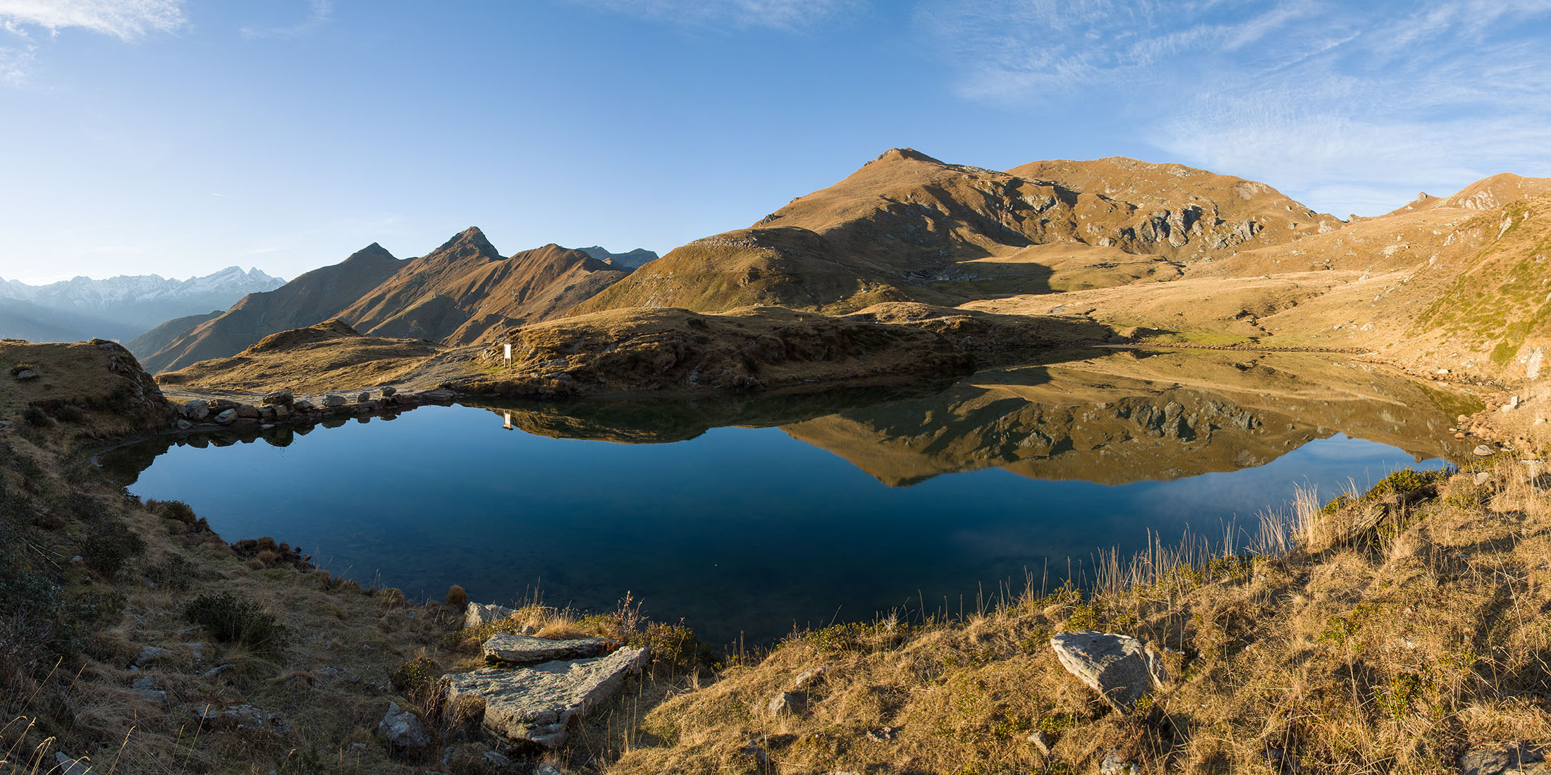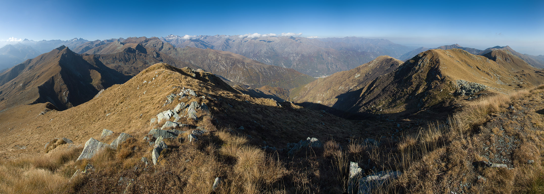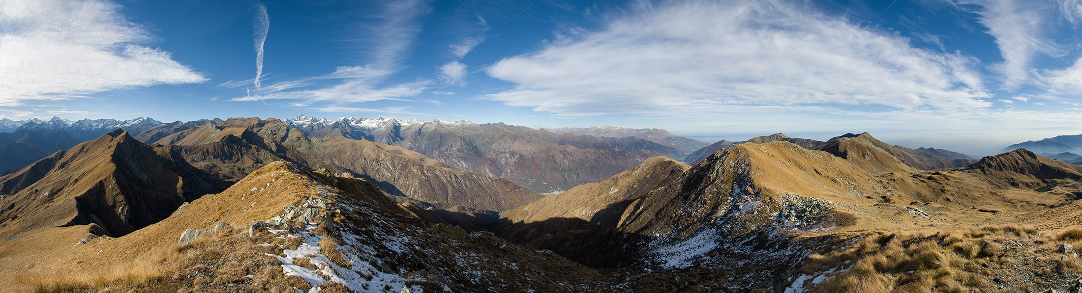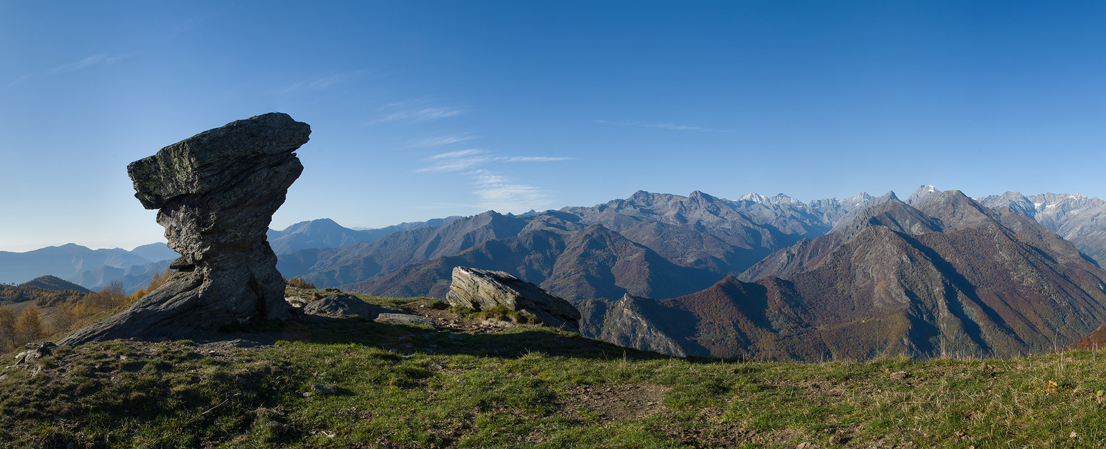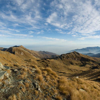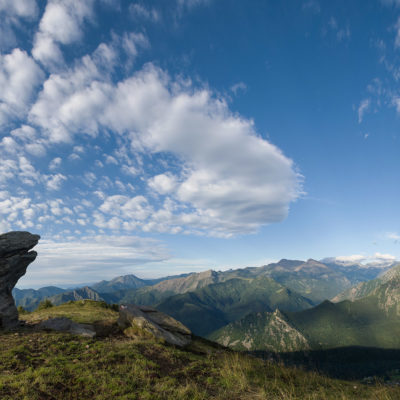 Wenig begangenes, aber ausserordentlich lohnendes Gipfelziel am Schnittpunkt dreier Täler, im Norden das Valle Orco, im Süden das Valle Tesso und das Val Grande. Etwa zwei Drittel des Aufstiegs sind identisch mit der Tour zum Lago di Monastero.