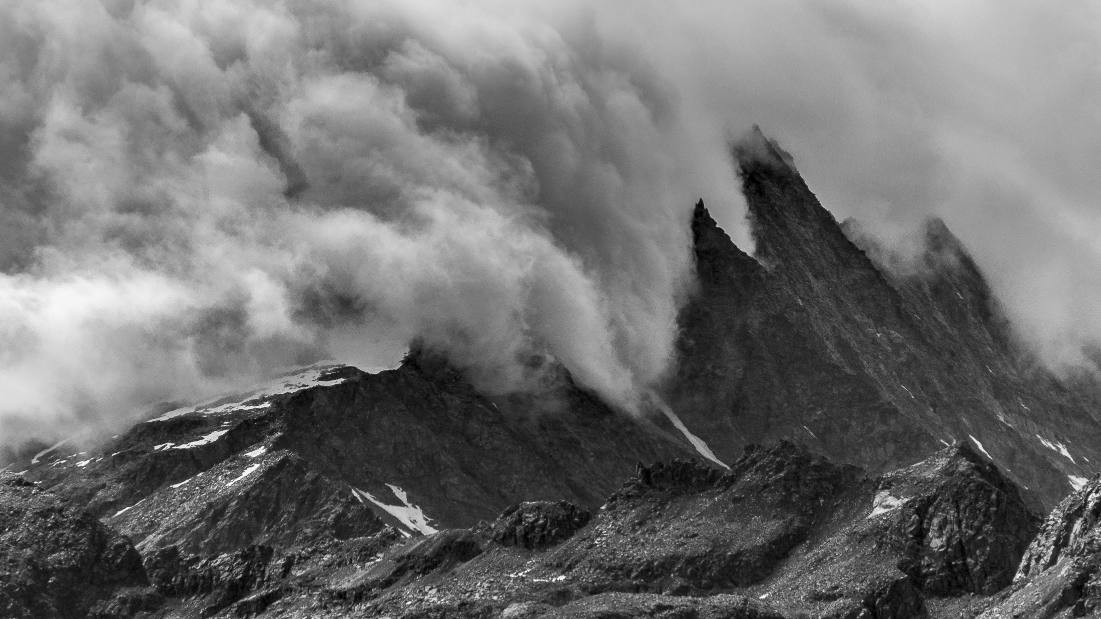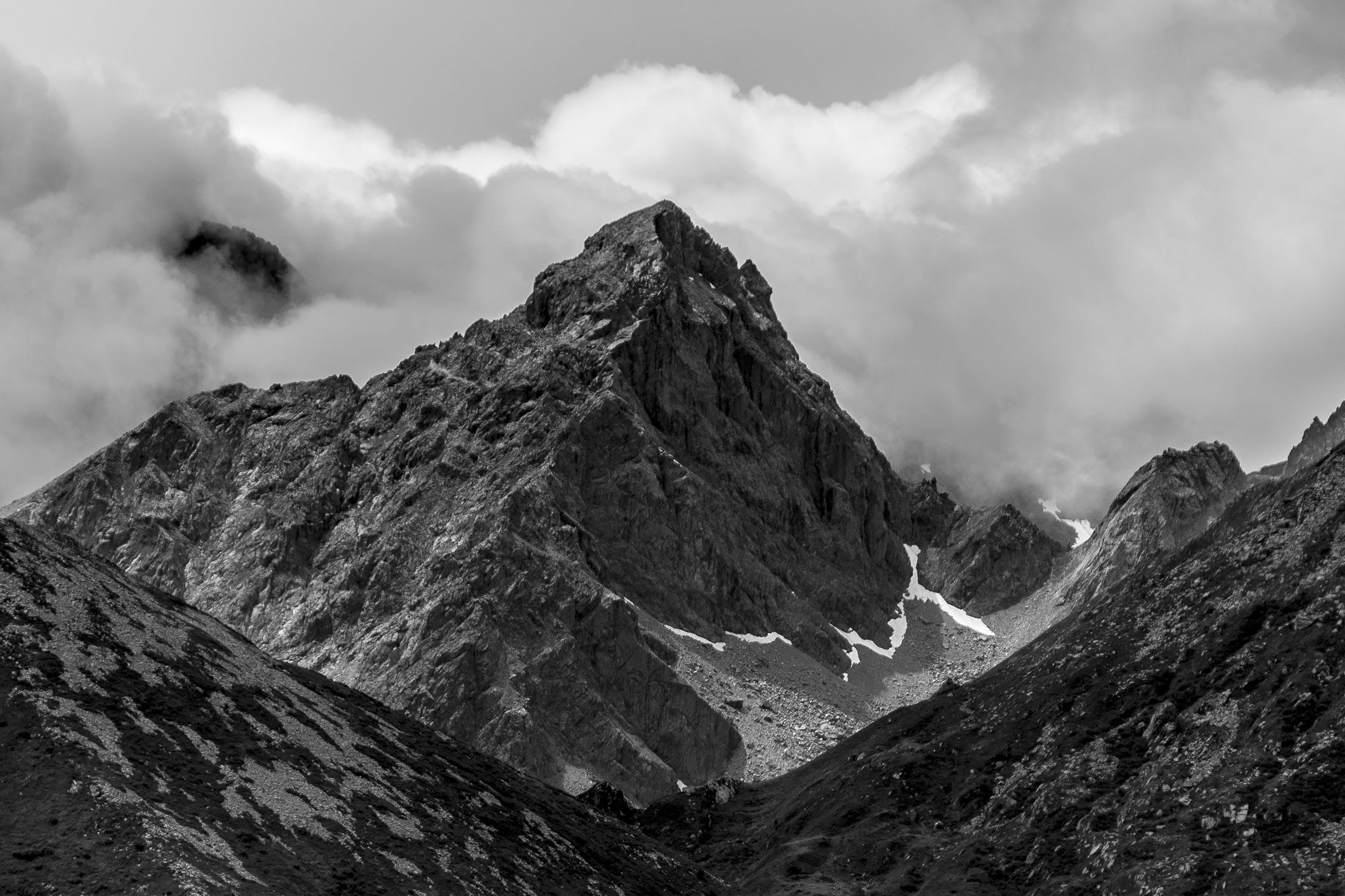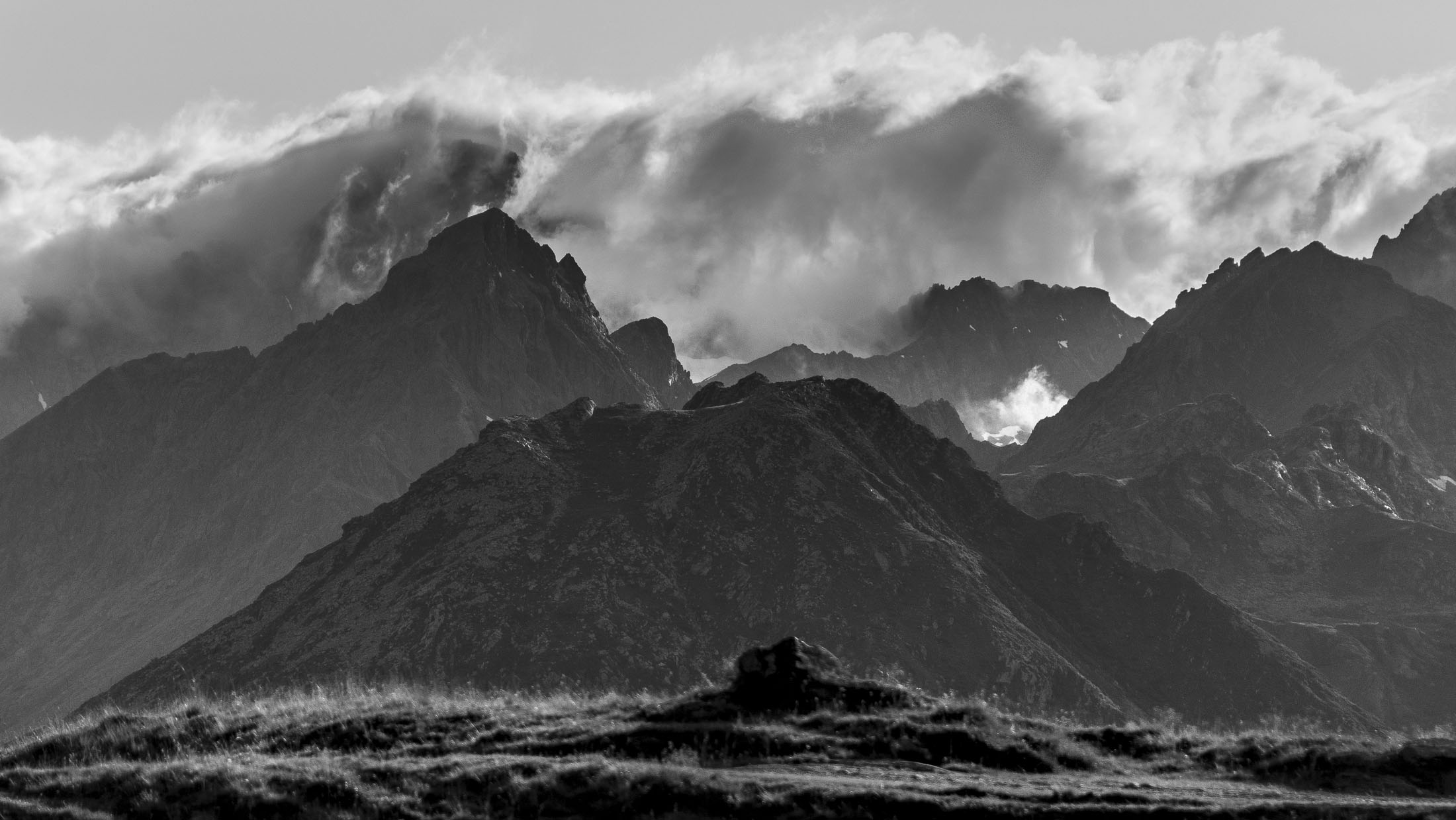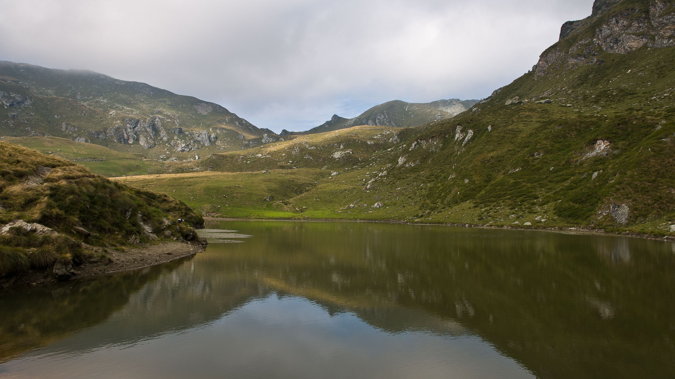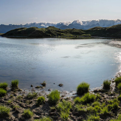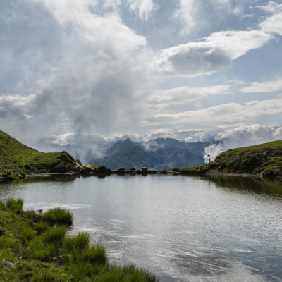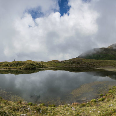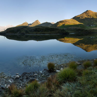 Weiter gehts. Das Ziel des Tages ist nur noch einen Steinwurf entfernt, auf dem Weg dorthin hat man für einen ganz kurzen Moment freie Sicht auf den Gran Paradiso (4061 m), der hinter einem Geländerücken hervorschaut. Wenige Minuten später steht man am Ufer des Lago di Monastero (1992 m), ein malerischer Bergsee wie aus dem Bilderbuch, der Anblick von Wasser hat irgendwie immer etwas Beruhigendes. Rucksack absetzen, Schuhe ausziehen und die Füsse im kühlen Nass baumeln lassen. Hier kann man stundenlang verweilen und das tolle Panorama geniessen, am liebsten bis die Sonne hinter dem Horizont verschwindet. Und auf einmal ist es stockdunkel, für den Abstieg braucht es nur eine Stirnlampe...