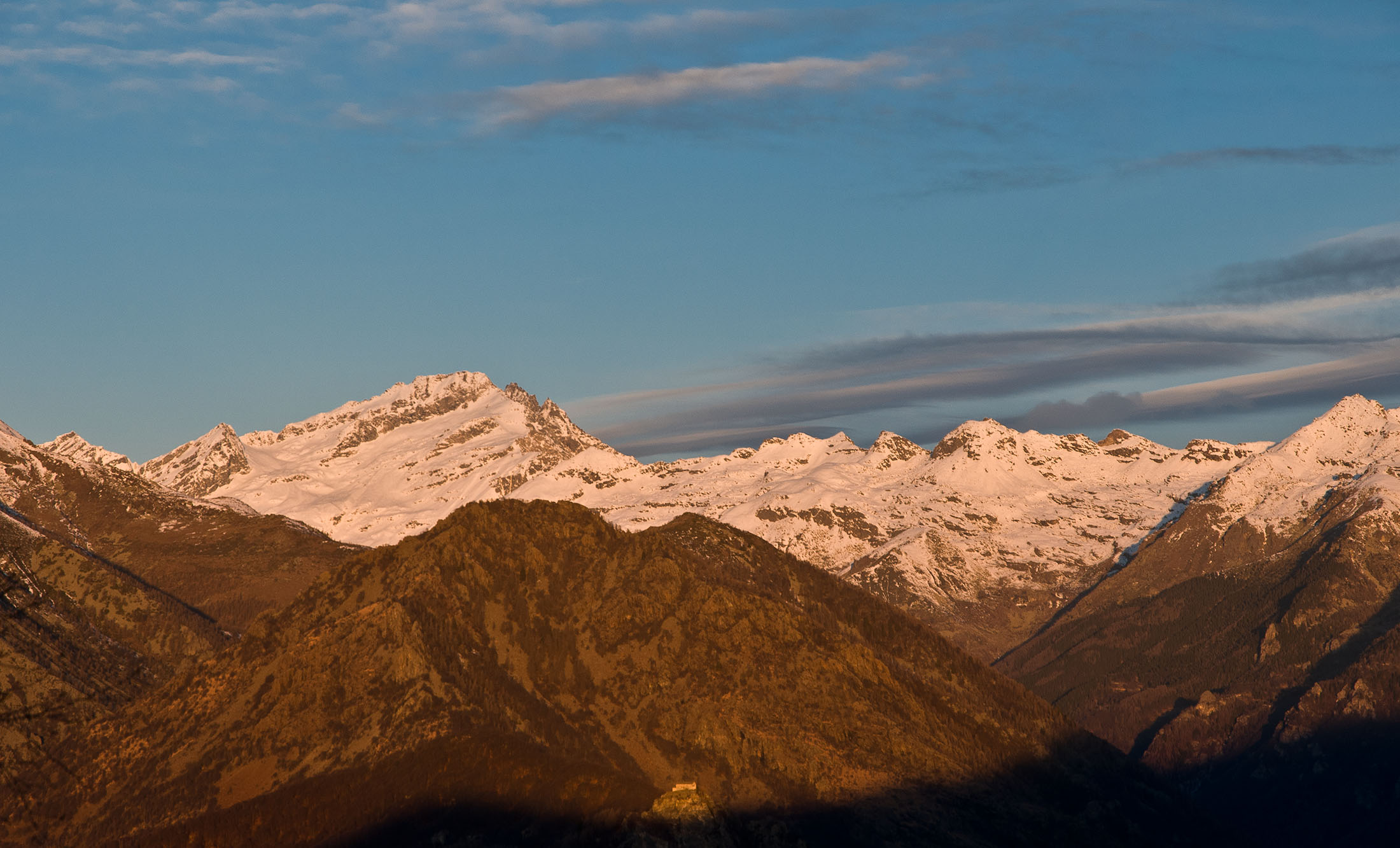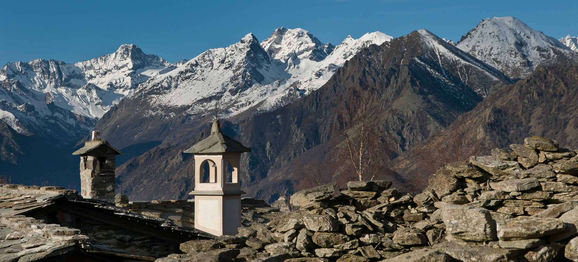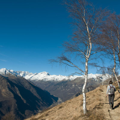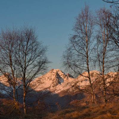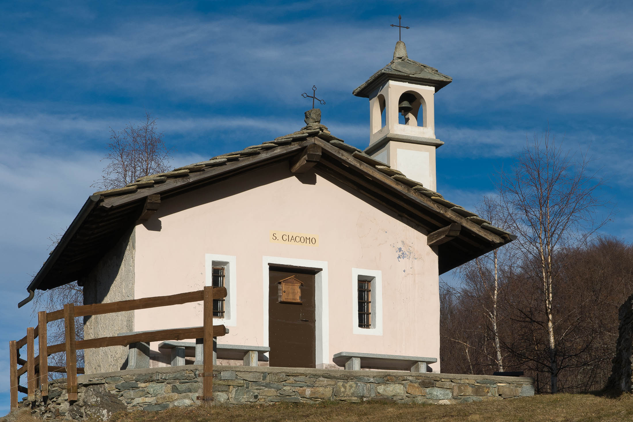 Am Ausgangspunkt folgt man den Wegweisern und wandert durch lichten Birkenwald in Kürze zum Colle San Giacomo (1460 m). Kaum ist man oben angekommen, ändert sich die Landschaft schlagartig. Der aussichtsreiche Übergang befindet sich auf einer kleinen Hochfläche, das grossartige Panorama begleitet einen in den nächsten Stunden. Bei schönem Wetter lohnt es sich ungemein, früh aufzubrechen, um bereits bei Sonnenaufgang hier oben zu sein. Ebenso lohnend ist ein kurzer Abstecher zur Cappella di San Giacomo (1414 m), die sehenswerte kleine Kirchenkapelle befindet sich westlich des Passes, nur wenige Schritte entfernt. Sie wird von Einheimischen in ehrenamtlicher Arbeit gepflegt und instandgehalten. Hier kann man in aller Ruhe die Seele baumeln lassen, das beschauliche Gotteshaus ist die perfekte Kulisse zum Entschleunigen.