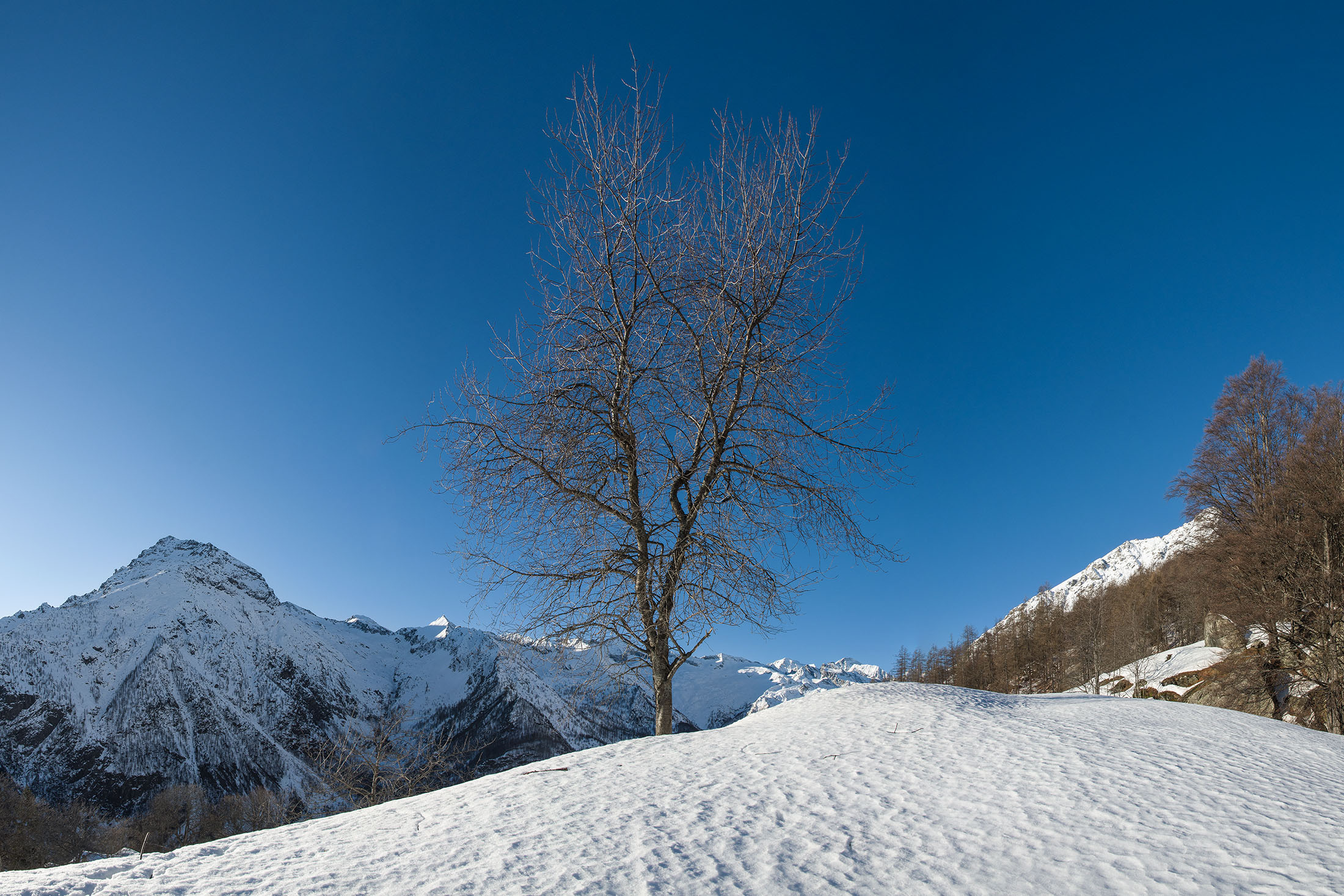 Von der weitläufigen Hochfläche geniesst man eine tolle Aussicht auf die Bergkulisse des Val d‘Ala, ein stimmungsvoller Ort mit einer ganz besonderen Atmosphäre.
