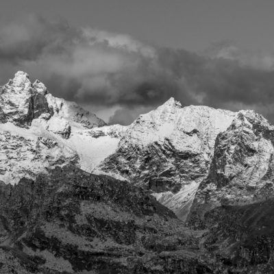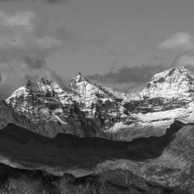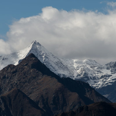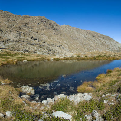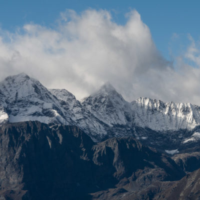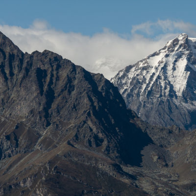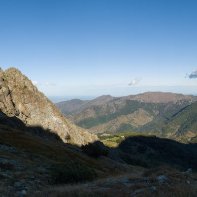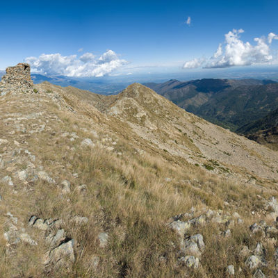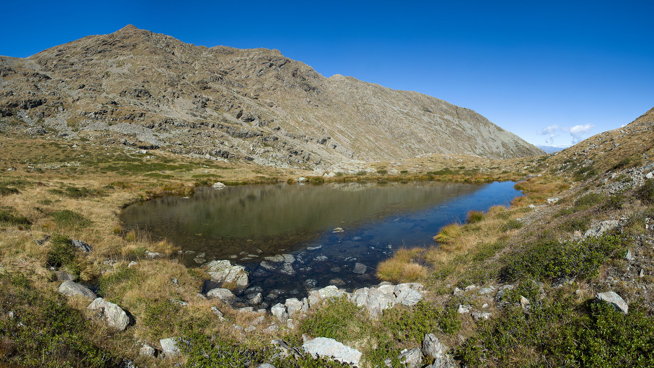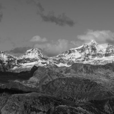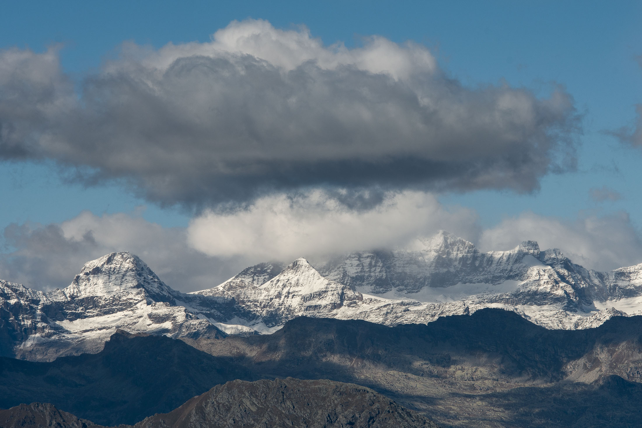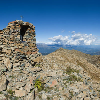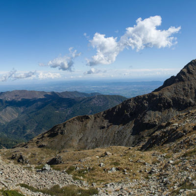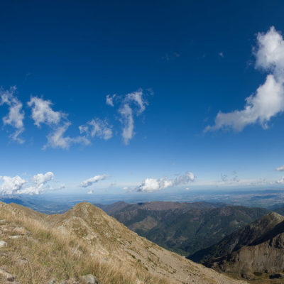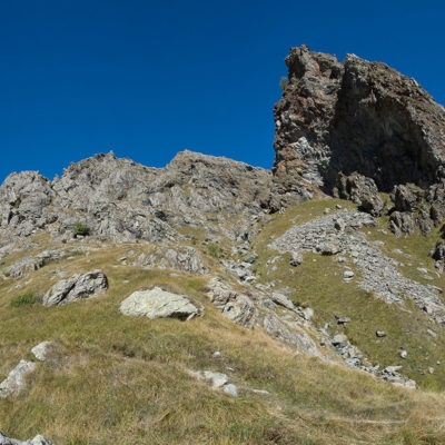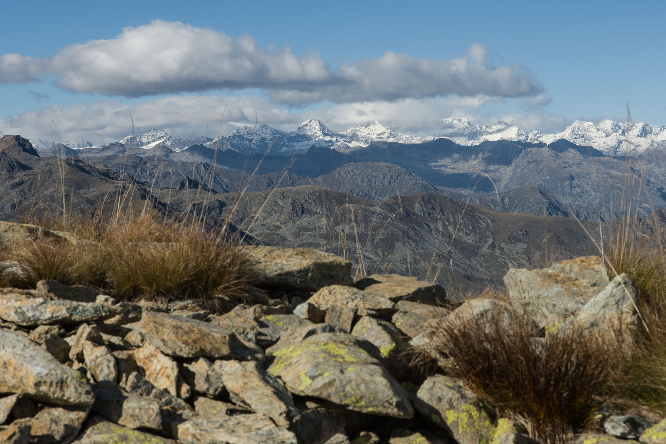 Jenseits des Dorfes verschwindet der Weg alsbald im Wald, durch verwildertes Kulturland geht es zunächst gemächlich bergauf. Bei den Ruinen der Muande Costassa (1295 m) erreicht man eine kleine Hochebene, vor einem liegt das menschenleere Vallone del Civrari, durch das der weitere Aufstiegsweg führt. Zunächst macht der Weg jedoch einen Schlenker Richtung Süden, zwischen verstreuten Birken wandert man durch Weideland hinauf zur Alpe Frestè (1431 m), die sich auf einer aussichtsreichen Alphochfläche befindet. Das Gebimmel der Kuhglocken begrüsst einen schon von weitem. Die bellenden Hütehunde erledigen prompt die „Anmeldung“ bei der hier in den Sommermonaten lebenden Familie. Eine wunderbare Begegnung mit freundlichen und aufgeschlossenen Menschen. Nach einer gemütlichen Rast lässt man die Zivilisation hinter sich, die Marschrichtung der nächsten Stunden lautet bergwärts. Der Weg windet sich durch zunächst lichten Birkenwald nach oben, das Ziel bereits vor Augen, der lange flache Gipfelgrat des Monte Civrari. Aber bis dahin ist noch gutes Stück des Weges. Jenseits der Baumgrenze wird der Weg steiler und steiniger, an einigen Stellen führt er über schräge Felsplatten, die bei Nässe rutschig sind. Nach etwa zwei Stunden erreicht man eine weite Hochfläche mit dem idyllischen Laghetto del Civrari (1956 m). Der Weg knickt Richtung Westen ab und schraubt sich in unzähligen Kehren durch viel Geröll in einer weiteren Stunde hinauf zur Punta Imperatoria, dem Westgipfel des Monte Civrari (2302 m). Von hier oben sieht man die Welt, wie bereits eingangs erwähnt. Im Norden der Gran Paradiso (4061 m), im Westen der Alpenhauptkamm vom Rocciamelone (3538 m) bis zur Bessanese (3604 m), im Nordosten zeigt sich das Monte Rosa-Massiv (4634 m). Im Osten erstreckt sich die piemontesische Tiefebene, mit etwas Glück sieht man die Millionenmetropole von Turin. Im Süden grüsst der Monviso (3841 m), bei klarem Wetter reicht der Blick bis in die Seealpen.