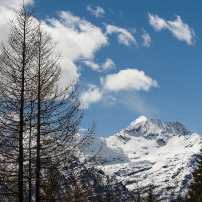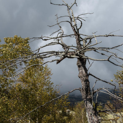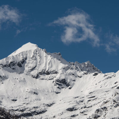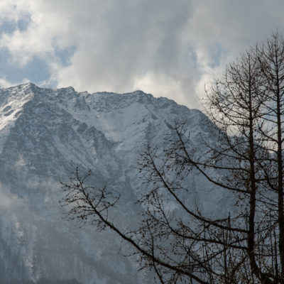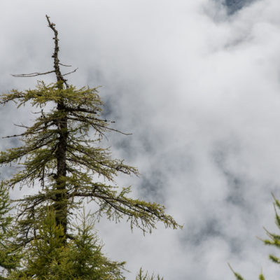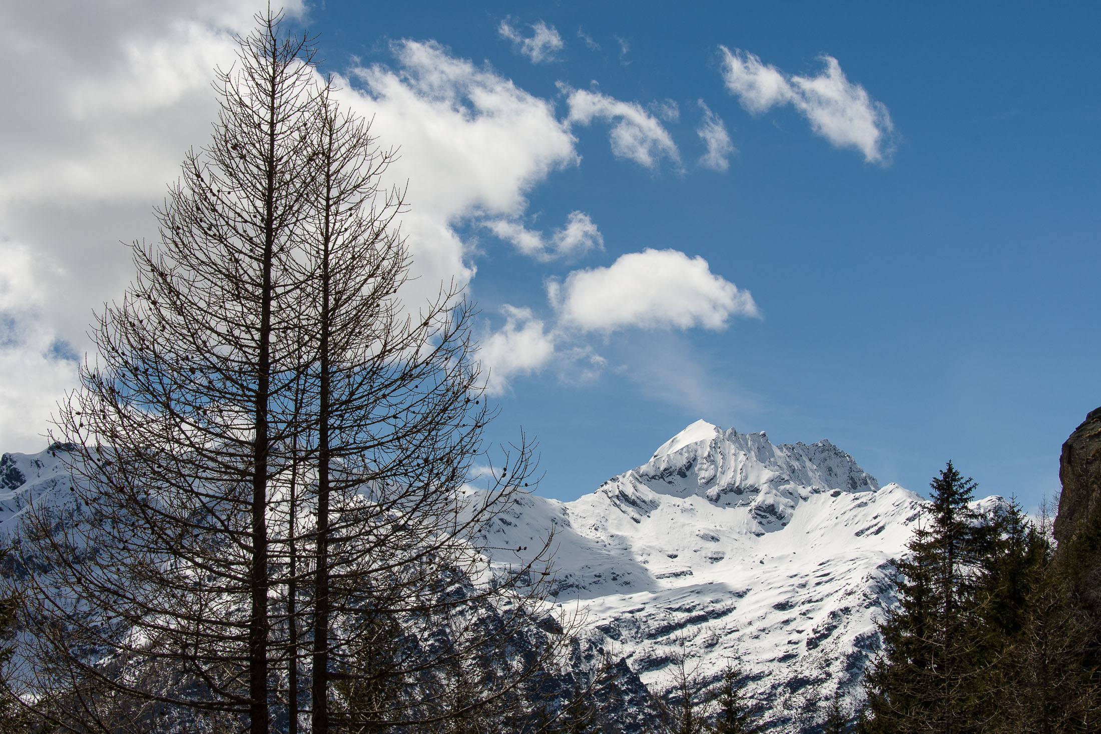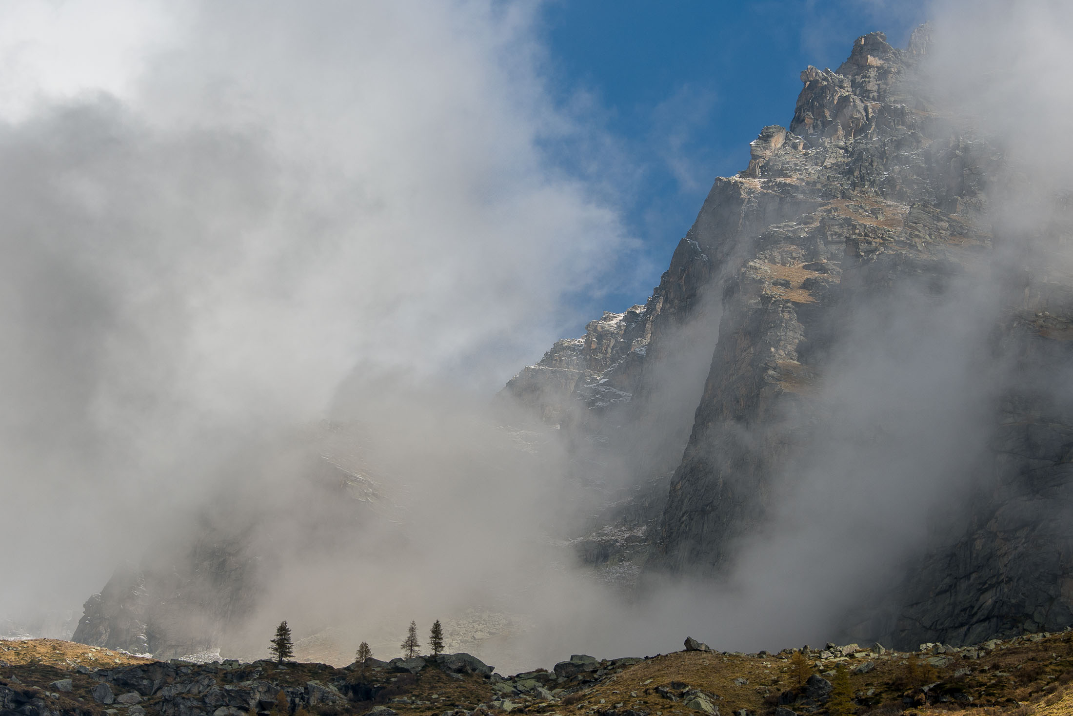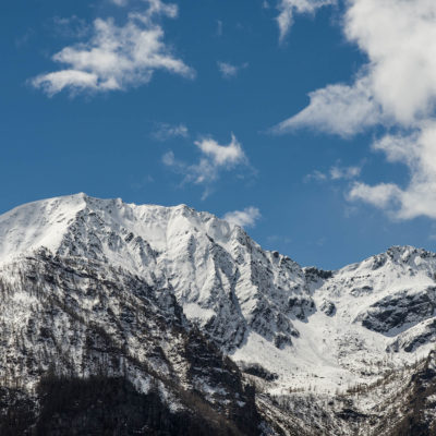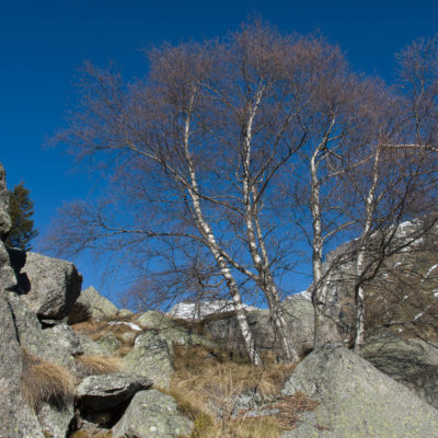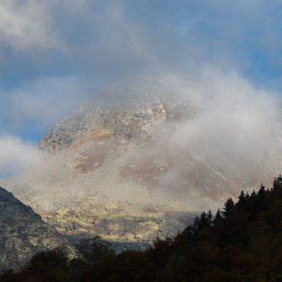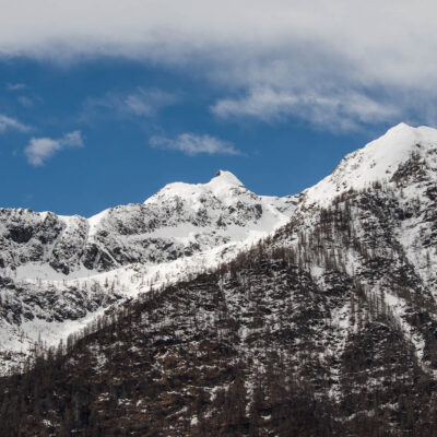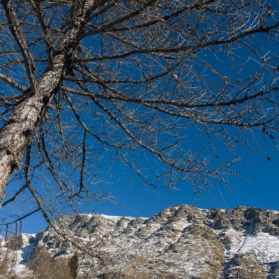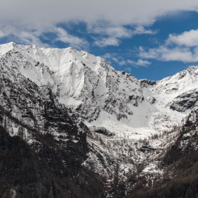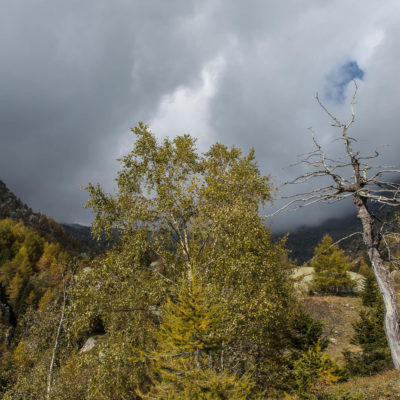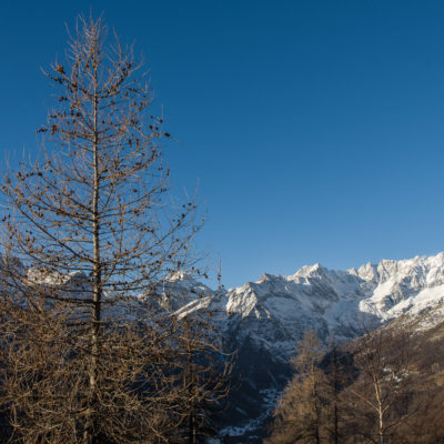 Nach all den vielen schönen Eindrücken steigt man zunächst auf dem Aufstiegsweg nach Vaccheria (1630 m) ab. Von dort in 20 Minuten auf dem unbefestigten Alpsträsschen durch den Wald hinab nach Mea (1526 m), ein zusammengewürfelter steinerner Häuserhaufen auf einem aussichtsreichen Geländerücken über dem Val Grande di Lanzo, unmittelbar am Fuss des markanten Felsgipfels Bec di Mea (1546 m). Gelegentlich beobachtet man hier Kletterfreaks, wie sie über den schwindelerregenden Abgründen in ihren Seilen hängen. Was für eine verträumte Kulisse, malerisch schön, im Westen erhebt sich der gewaltige Steilabfall des Alpenhauptkamms über dem Tal, von der Uja di Ciamarella (3676 m) bis zur Levanna Orientale (3555 m). Auffällig sind die vielen verwilderten Ackerbauterrassen, die sich bis weit in die angrenzenden Berghänge hinaufziehen und einst mühsam angelegt und bewirtschaftet wurden. Die Umgebung von Mea war früher waldfrei, die gerodeten Flächen wurden als Weiden genutzt, nach der weitgehenden Einstellung der Land- und Alpwirtschaft schreitet die Verbuschung und die darauffolgende Wiederbewaldung der Landschaft seit vielen Jahrzehnten unaufhaltsam voran.