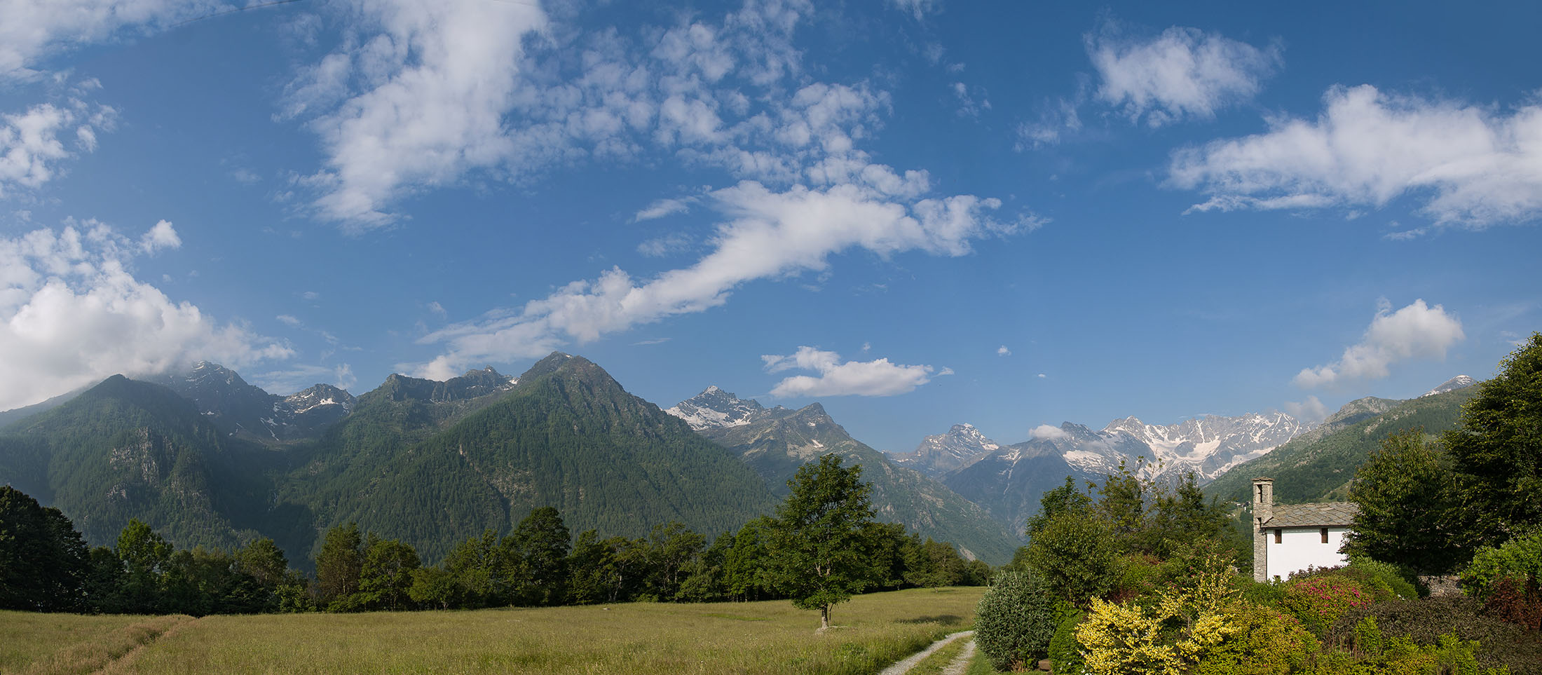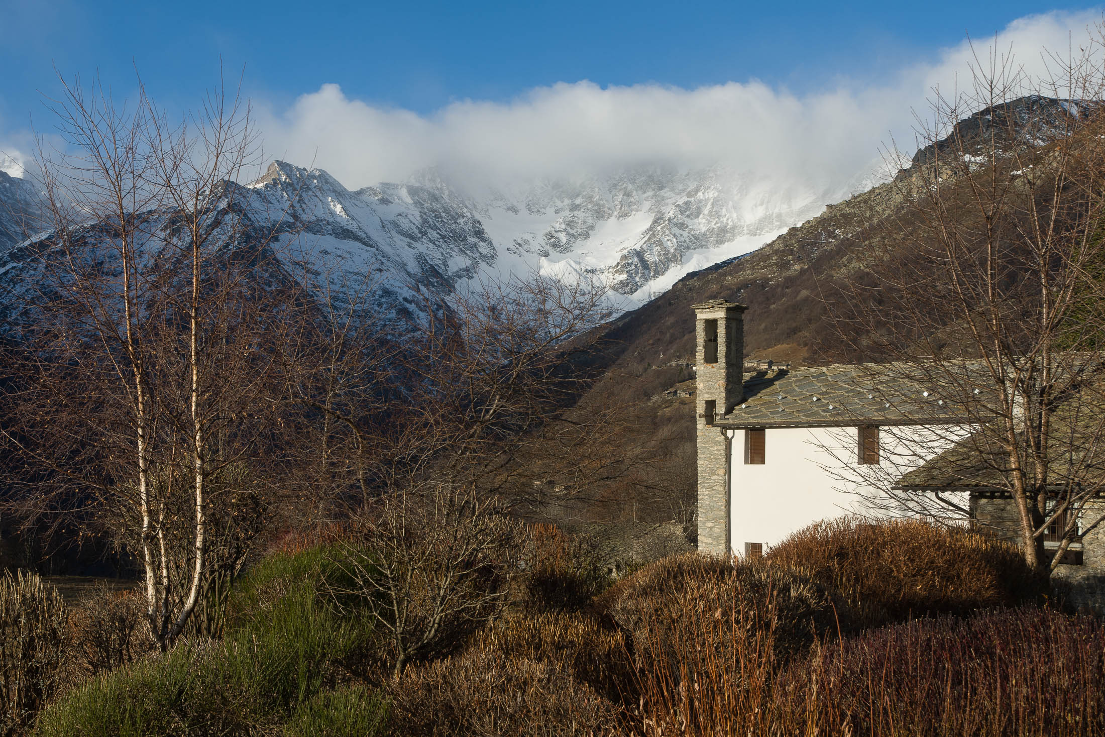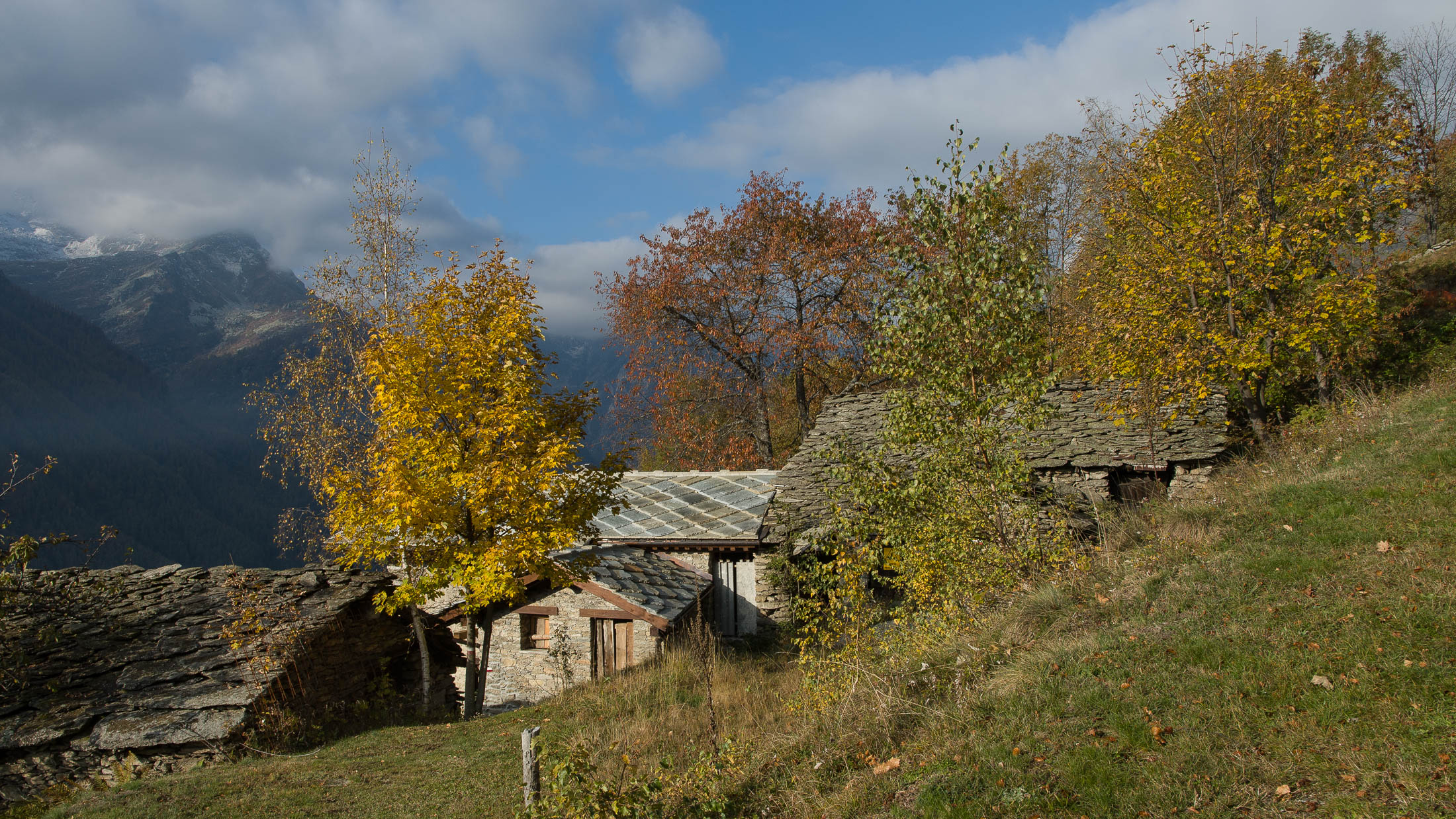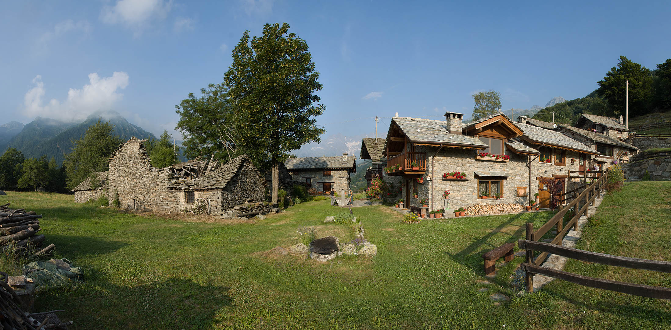 Schon der Ausgangspunkt ist bereits eine Reise wert. Alboni ist eine aus mehreren Häusergruppen bestehende Siedlung auf einer aussichtsreichen Hochfläche über dem Val Grande di Lanzo. Jeder Winkel ist hier aufgeräumt und gepflegt. Man blickt auf aufwendig und geschmackvoll renovierte Anwesen, manchenorts wurde viel Geld in die Hand genommen und keine Mühe gescheut. Und trotzdem ist kaum jemand zuhause, ausser am Samstag und Sonntag und in den italienischen Ferien. Alles nur Zweitwohnsitze. Schicksal oder Glück? Vielleicht beides. Alboni ist kein Einzelfall in den piemontesischen Alpen. Die schmale und serpentinenreiche Zufahrtsstrasse ist nicht wintersicher. Die nächste Stadt? 30 km auf kurvenreichen Strassen. Schnelles Internet? Gibts hier nicht. All das ist schon nicht mehr kompatibel mit dem heutigen modernen Alltagsleben, wo scheinbar alles auf Schnelligkeit und spontane Erreichbarkeit ausgerichtet ist. Das war nicht immer so. Alboni war bis in die 1950er Jahre ganzjährig bewohnt, in jedem Haus lebten zwei oder drei Generationen unter einem Dach, sonntags ging man gemeinsam zum Gottesdienst in die weissgekalkte Cappella di San Grato. Die Hänge in der näheren Umgebung waren gerodet und wurden in mühseliger Arbeit kultiviert. 50 bis 70 Jahre später sind diese Flächen vom Wald beschlagnahmt. Die Einstellung der traditionellen Berglandwirtschaft und die damit verbundene Abwanderung haben den Ort geleert, bis er eines Tages nahe zu verlassen war. Viele Häuser verfielen im Laufe der Zeit. In den 1990er Jahren begann eine Trendwende, Alboni wurde wiederentdeckt – und wiederaufgebaut. Heute blickt man auf ein Schmuckstück, ein liebenswerter Ort inmitten der Stille.