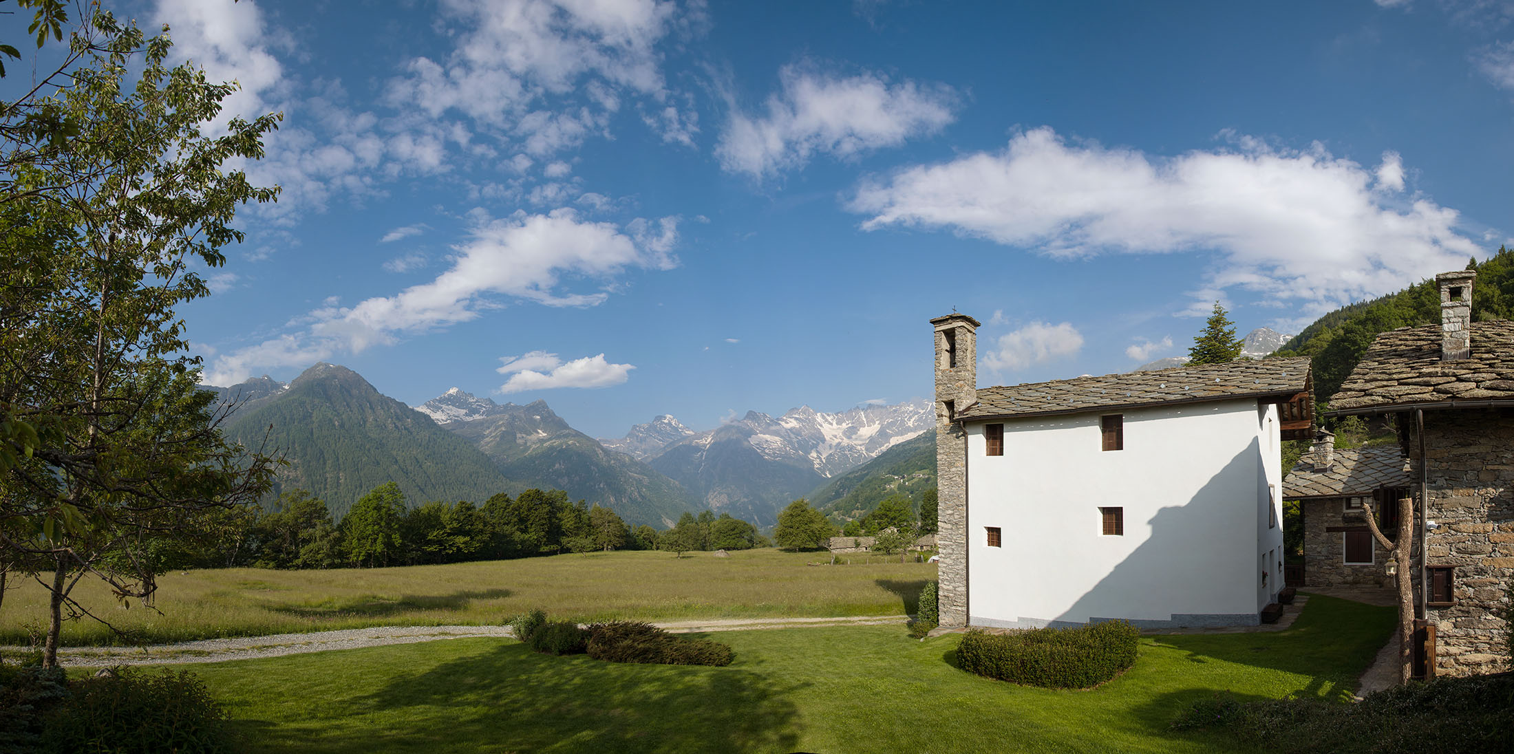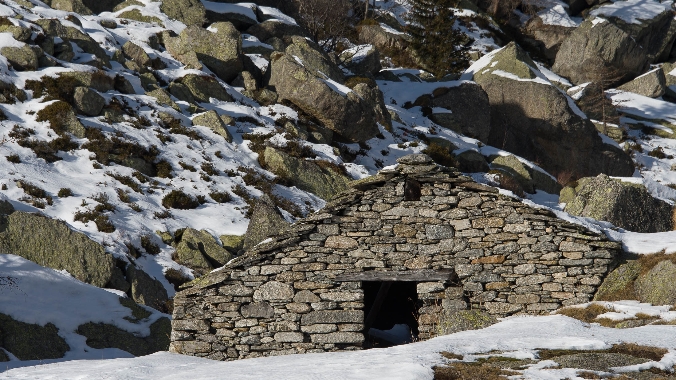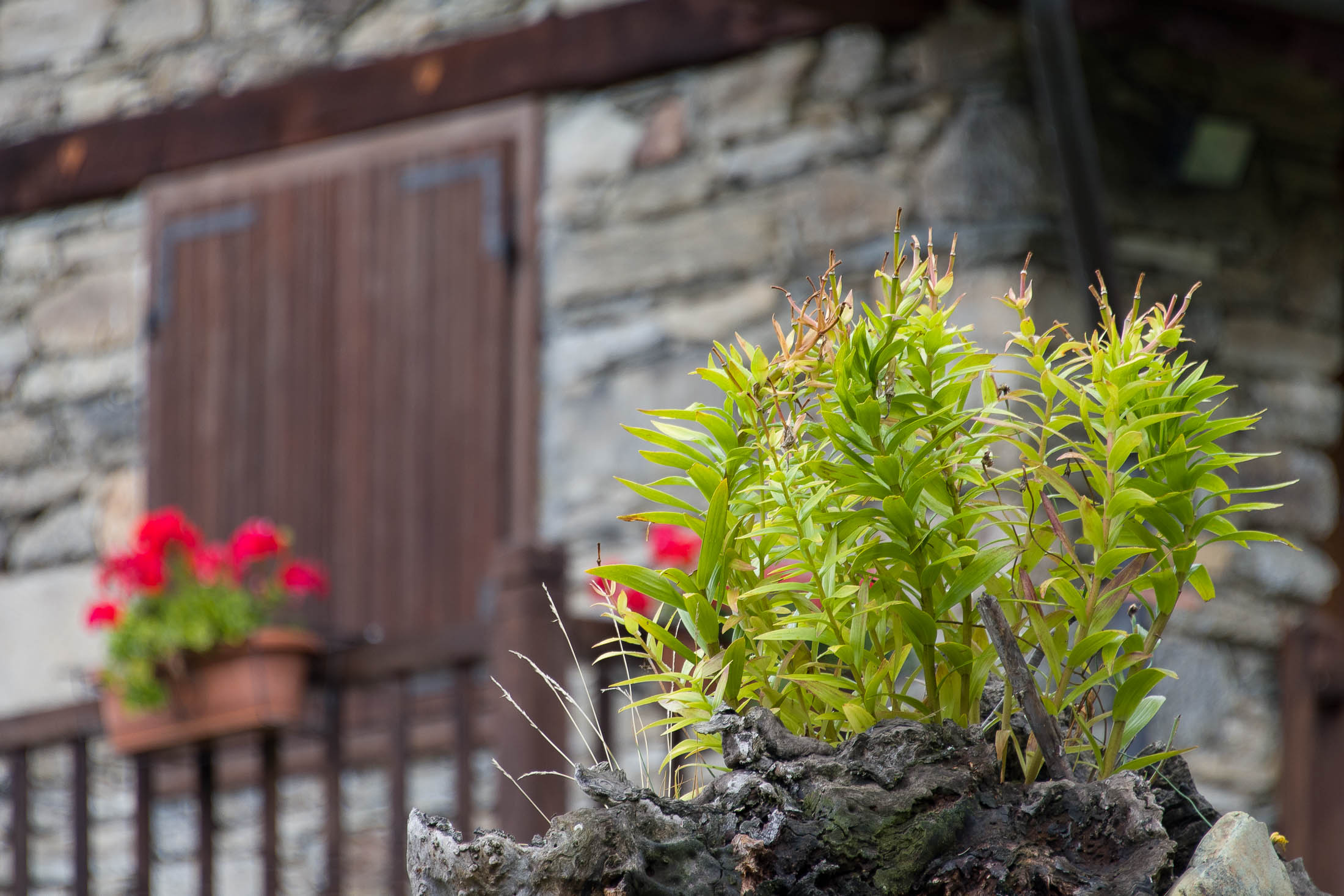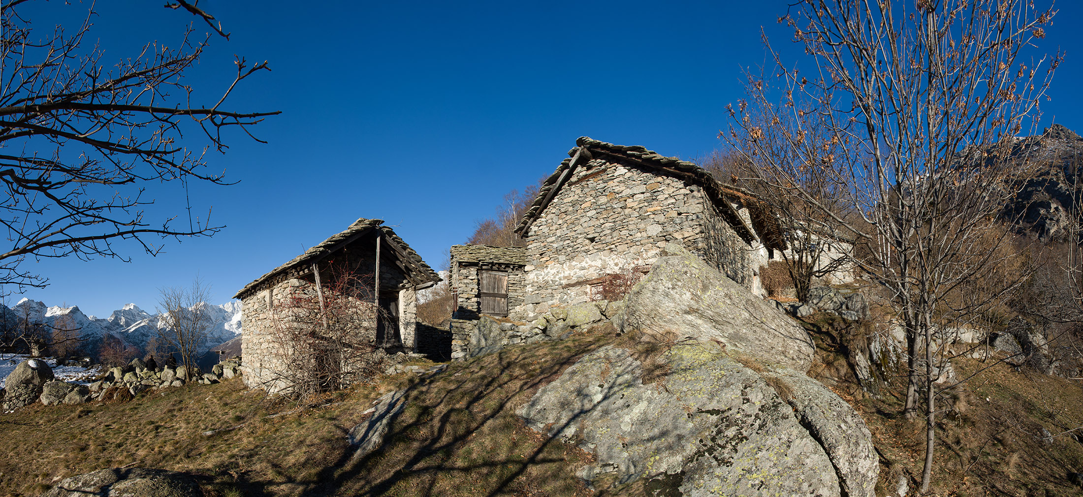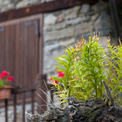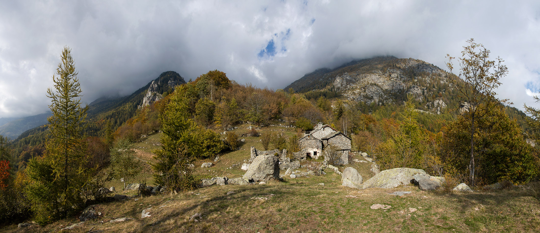 Schon der Ausgangspunkt ist bereits eine Reise wert. Alboni ist eine aus mehreren Häusergruppen bestehende Siedlung auf einer aussichtsreichen Hochfläche über dem Val Grande di Lanzo. Jeder Winkel ist hier aufgeräumt und gepflegt. Man blickt auf aufwendig und geschmackvoll renovierte Anwesen, manchenorts wurde viel Geld in die Hand genommen und keine Mühe gescheut. Und trotzdem ist kaum jemand zuhause, ausser am Samstag und Sonntag und in den italienischen Ferien. Alles nur Zweitwohnsitze. Schicksal oder Glück? Vielleicht beides. Alboni ist kein Einzelfall in den piemontesischen Alpen. Die schmale und serpentinenreiche Zufahrtsstrasse ist nicht wintersicher. Die nächste Stadt? 30 km auf kurvenreichen Strassen. Schnelles Internet? Gibts hier nicht. All das ist schon nicht mehr kompatibel mit dem heutigen modernen Alltagsleben, wo scheinbar alles auf Schnelligkeit und spontane Erreichbarkeit ausgerichtet ist. Das war nicht immer so. Alboni war bis in die 1950er Jahre ganzjährig bewohnt, in jedem Haus lebten zwei oder drei Generationen unter einem Dach, sonntags ging man gemeinsam zum Gottesdienst in die weissgekalkte Cappella di San Grato. Die Hänge in der näheren Umgebung waren gerodet und wurden in mühseliger Arbeit kultiviert. 50 bis 70 Jahre später sind diese Flächen vom Wald beschlagnahmt. Die Einstellung der traditionellen Berglandwirtschaft und die damit verbundene Abwanderung haben den Ort geleert, bis er eines Tages nahe zu verlassen war. Viele Häuser verfielen im Laufe der Zeit. In den 1990er Jahren begann eine Trendwende, Alboni wurde wiederentdeckt – und wiederaufgebaut. Heute blickt man auf ein Schmuckstück, ein liebenswerter Ort inmitten der Stille.