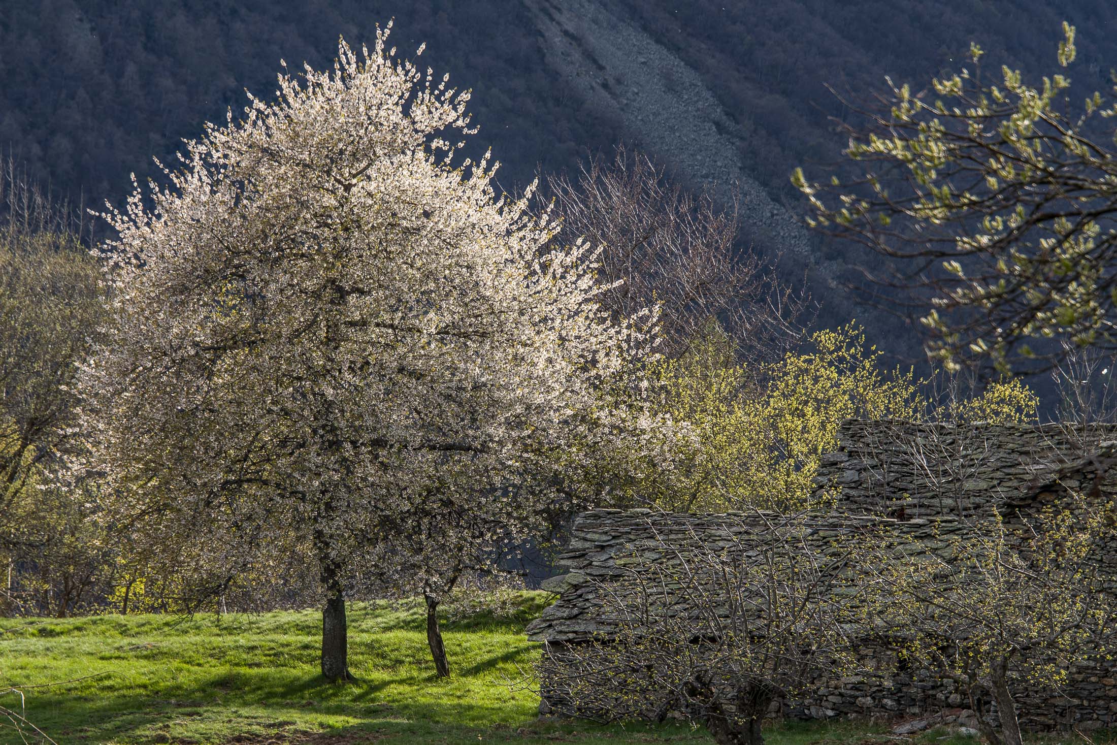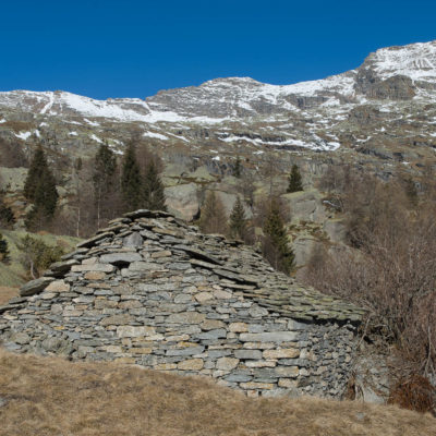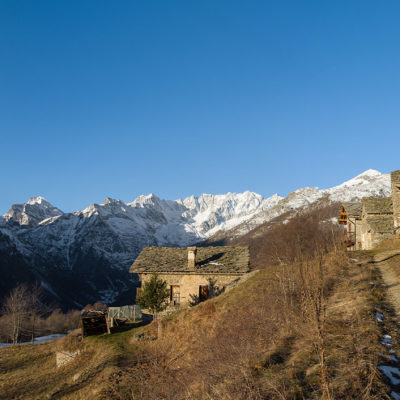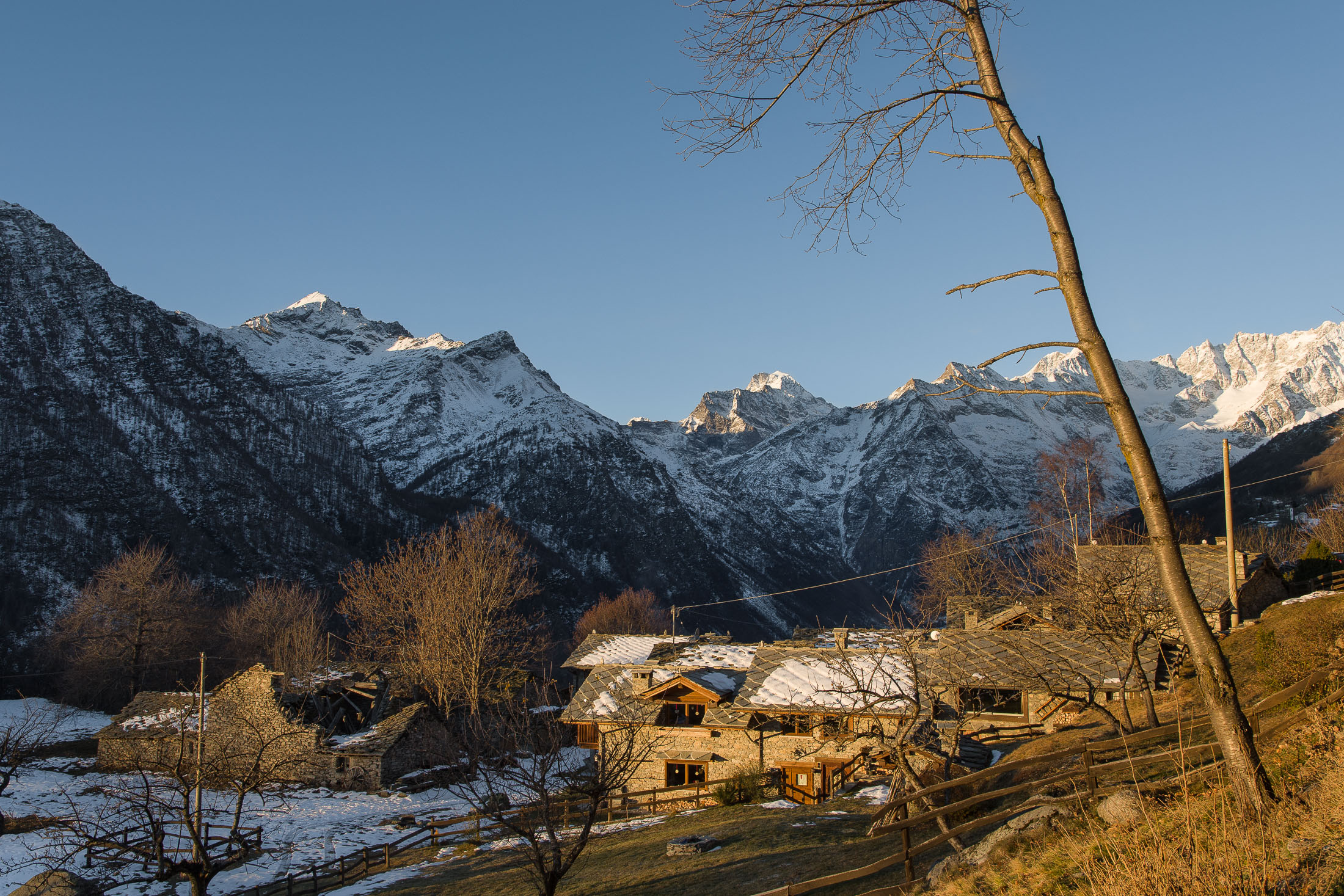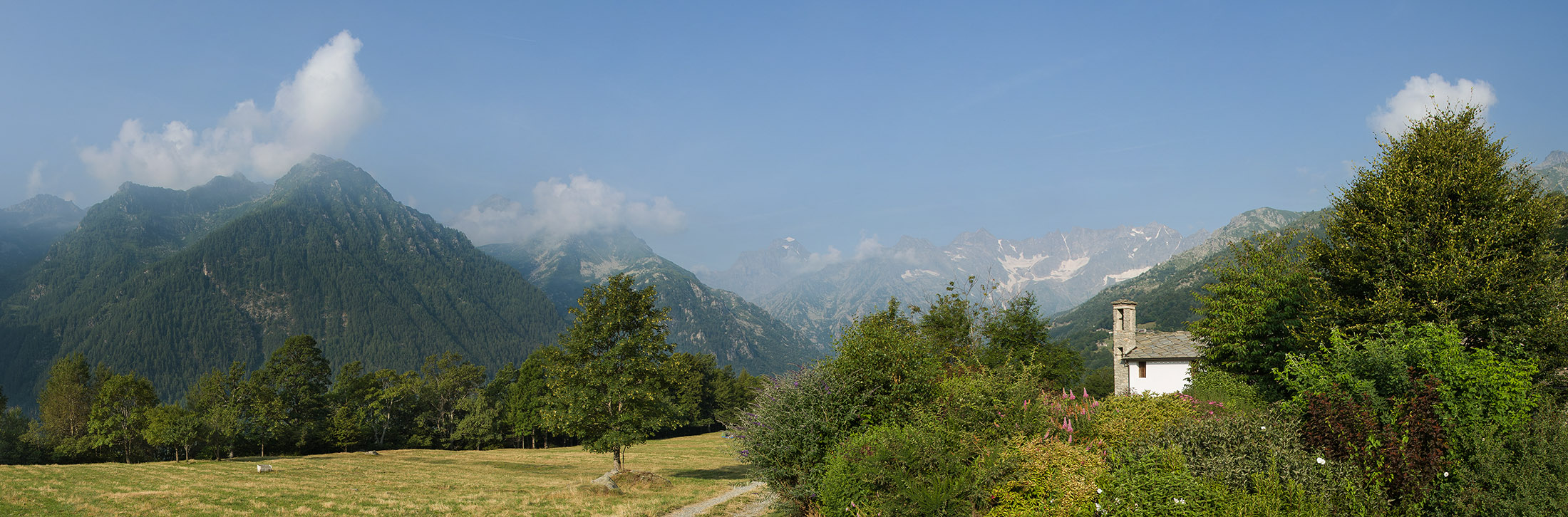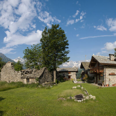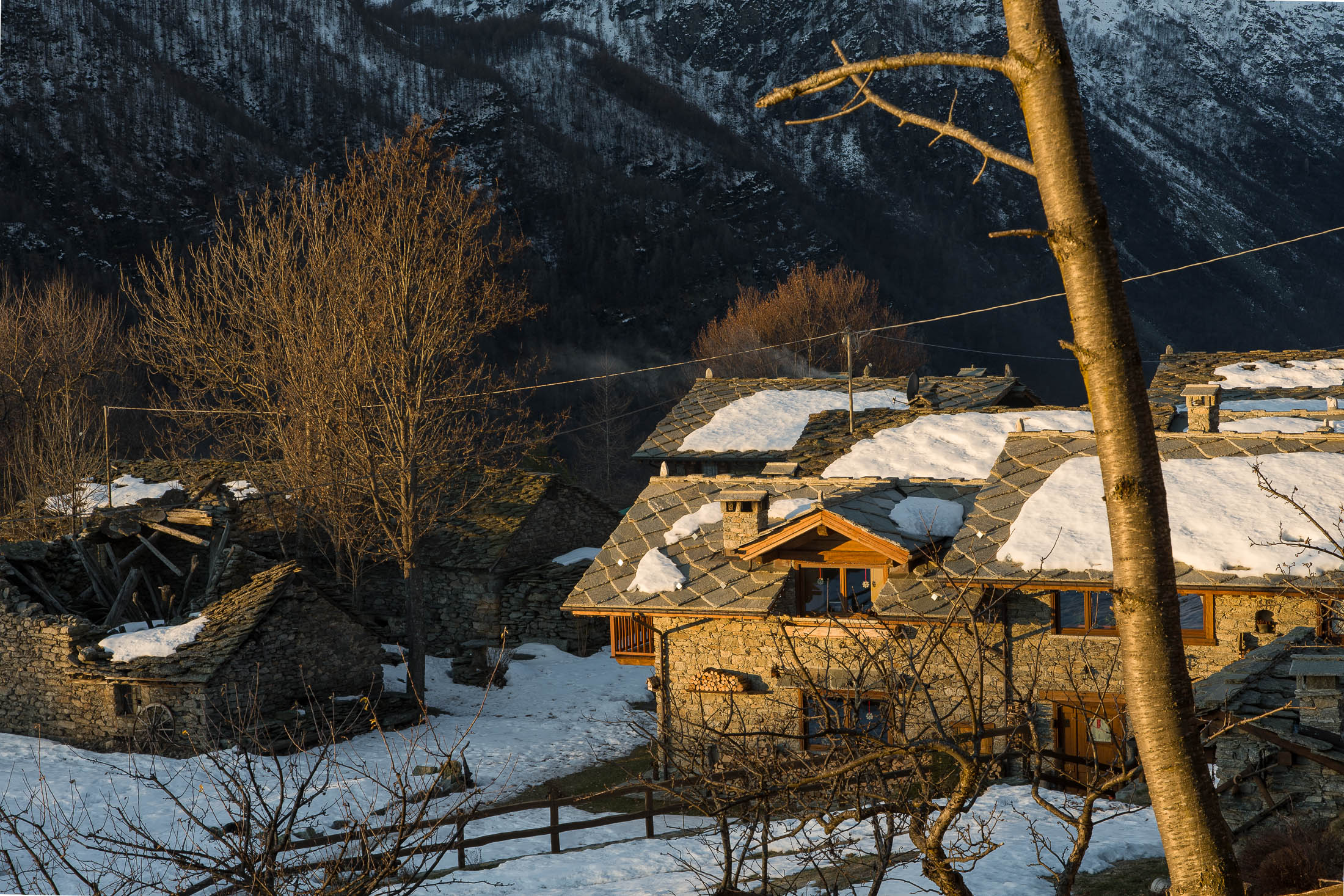Schon der Ausgangspunkt ist bereits eine Reise wert. Alboni ist eine aus mehreren Häusergruppen bestehende Siedlung auf einer aussichtsreichen Hochfläche über dem Val Grande di Lanzo. Jeder Winkel ist hier aufgeräumt und gepflegt. Man blickt auf aufwendig und geschmackvoll renovierte Anwesen, manchenorts wurde viel Geld in die Hand genommen und keine Mühe gescheut. Und trotzdem ist kaum jemand zuhause, ausser am Samstag und Sonntag und in den italienischen Ferien. Alles nur Zweitwohnsitze. Schicksal oder Glück? Vielleicht beides. Alboni ist kein Einzelfall in den piemontesischen Alpen. Die schmale und serpentinenreiche Zufahrtsstrasse ist nicht wintersicher. Die nächste Stadt? 30 km auf kurvenreichen Strassen. Schnelles Internet? Gibts hier nicht. All das ist schon nicht mehr kompatibel mit dem heutigen modernen Alltagsleben, wo scheinbar alles auf Schnelligkeit und spontane Erreichbarkeit ausgerichtet ist. Das war nicht immer so. Alboni war bis in die 1950er Jahre ganzjährig bewohnt, in jedem Haus lebten zwei oder drei Generationen unter einem Dach, sonntags ging man gemeinsam zum Gottesdienst in die weissgekalkte Cappella di San Grato. Die Hänge in der näheren Umgebung waren gerodet und wurden in mühseliger Arbeit kultiviert. 50 bis 70 Jahre später sind diese Flächen vom Wald beschlagnahmt. Die Einstellung der traditionellen Berglandwirtschaft und die damit verbundene Abwanderung haben den Ort geleert, bis er eines Tages nahe zu verlassen war. Viele Häuser verfielen im Laufe der Zeit. In den 1990er Jahren begann eine Trendwende, Alboni wurde wiederentdeckt – und wiederaufgebaut. Heute blickt man auf ein Schmuckstück, ein liebenswerter Ort inmitten der Stille.
