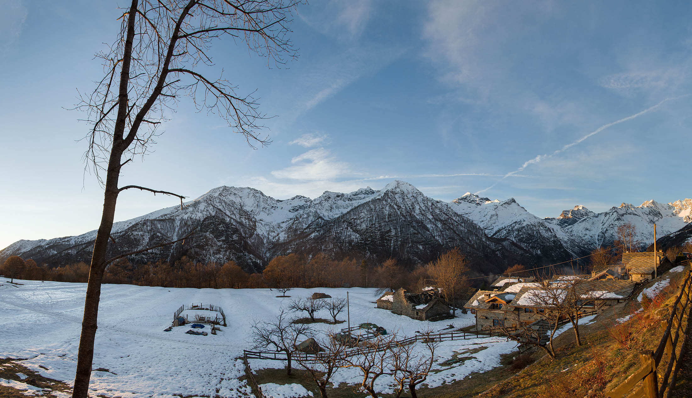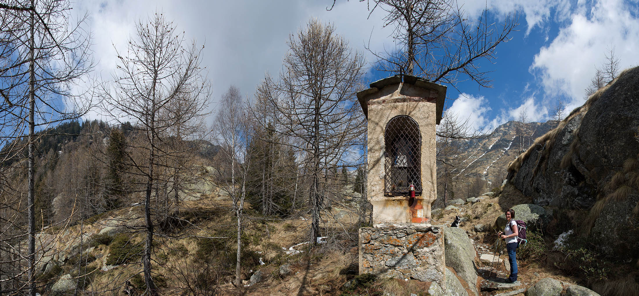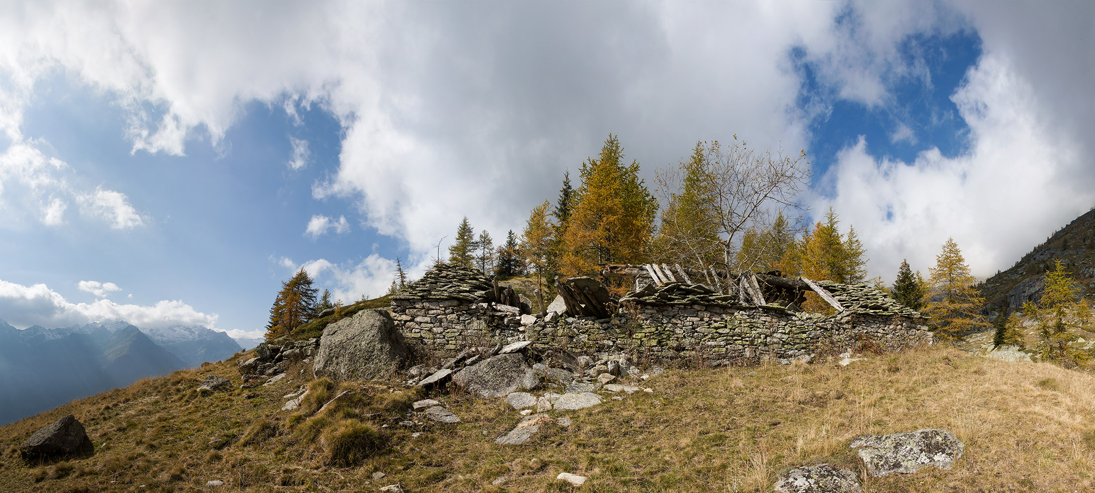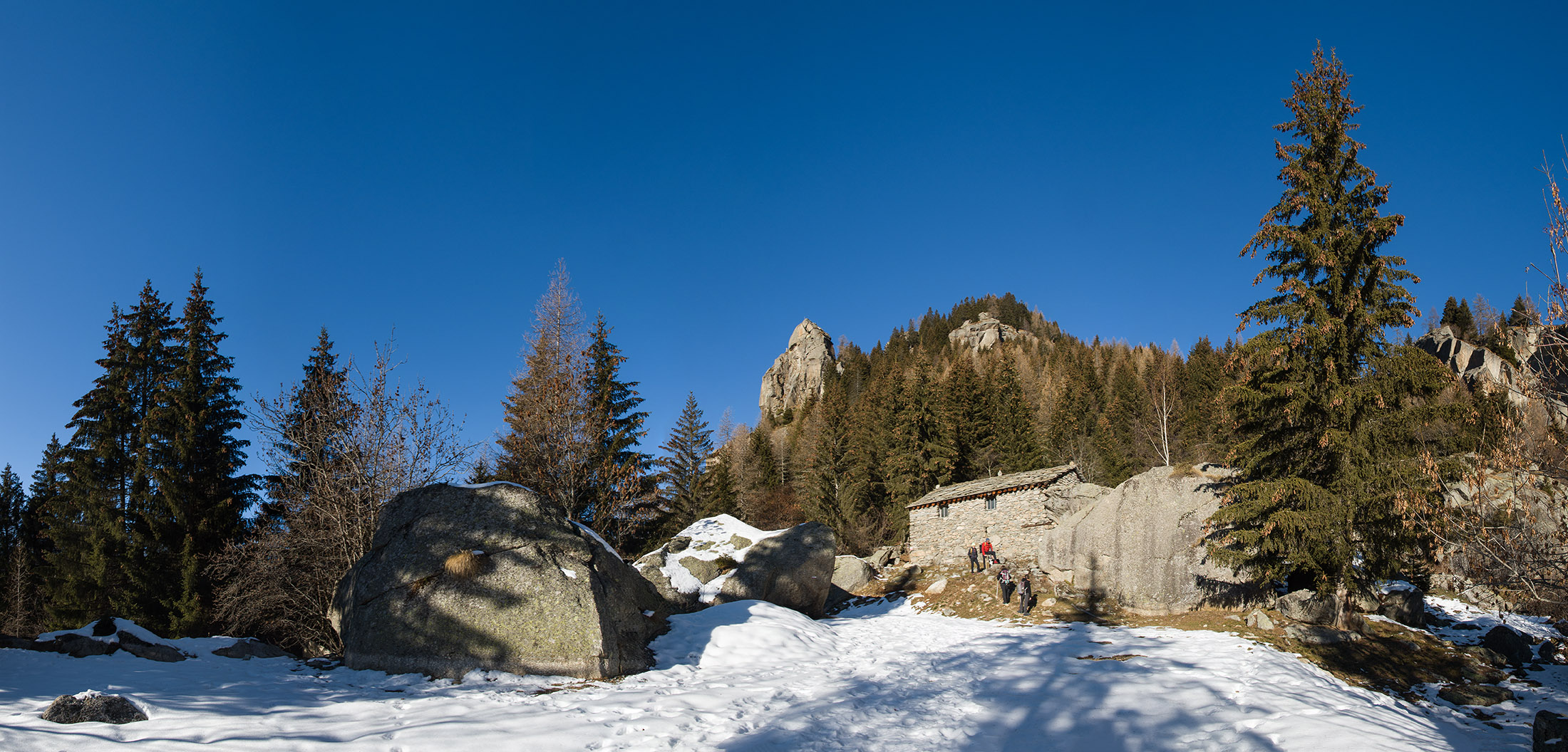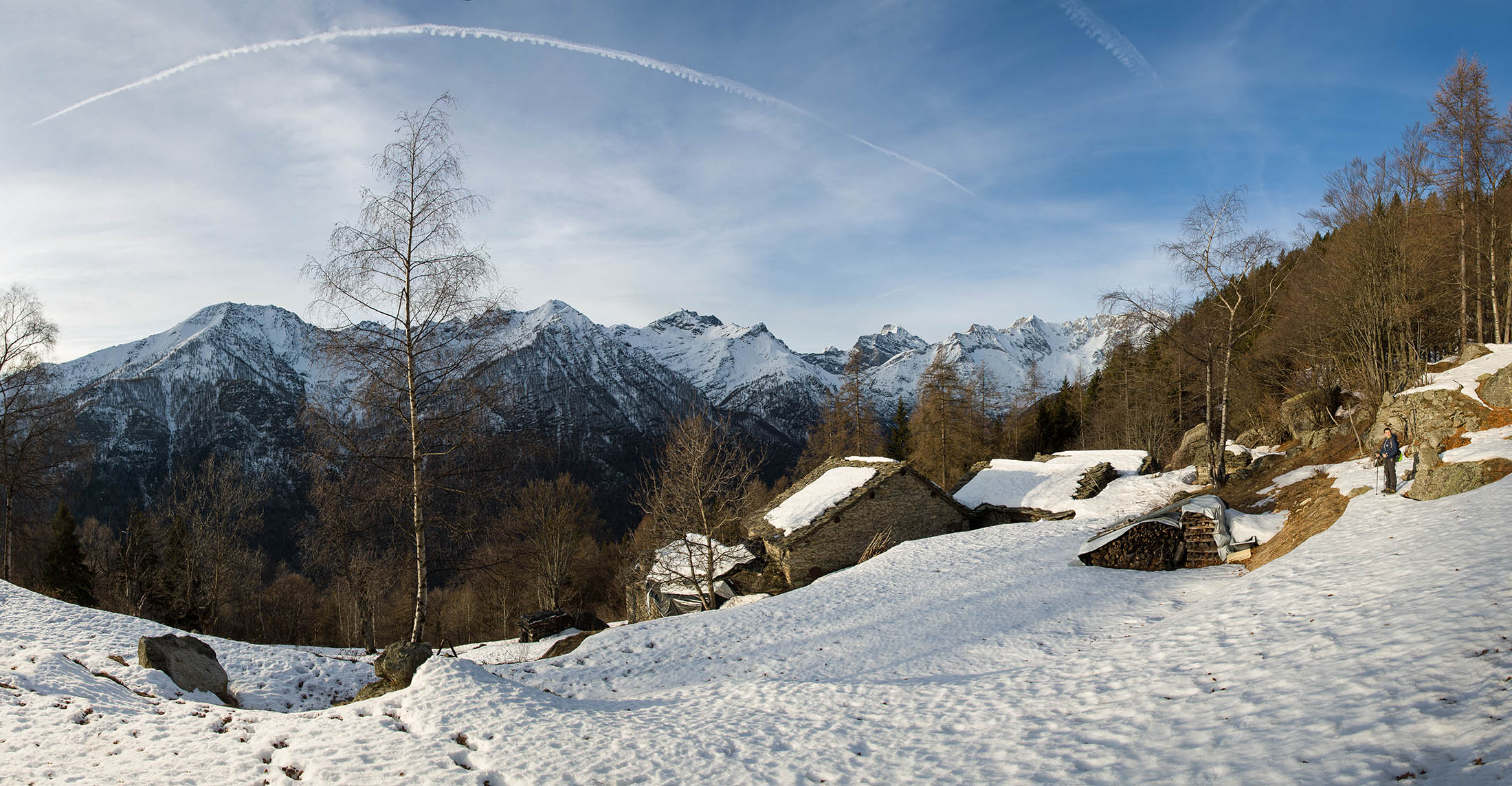 Schon der Ausgangspunkt ist bereits eine Reise wert. Alboni ist eine aus mehreren Häusergruppen bestehende Siedlung auf einer aussichtsreichen Hochfläche über dem Val Grande di Lanzo. Jeder Winkel ist hier aufgeräumt und gepflegt. Man blickt auf aufwendig und geschmackvoll renovierte Anwesen, manchenorts wurde viel Geld in die Hand genommen und keine Mühe gescheut. Und trotzdem ist kaum jemand zuhause, ausser am Samstag und Sonntag und in den italienischen Ferien. Alles nur Zweitwohnsitze. Schicksal oder Glück? Vielleicht beides. Alboni ist kein Einzelfall in den piemontesischen Alpen. Die schmale und serpentinenreiche Zufahrtsstrasse ist nicht wintersicher. Die nächste Stadt? 30 km auf kurvenreichen Strassen. Schnelles Internet? Gibts hier nicht. All das ist schon nicht mehr kompatibel mit dem heutigen modernen Alltagsleben, wo scheinbar alles auf Schnelligkeit und spontane Erreichbarkeit ausgerichtet ist. Das war nicht immer so. Alboni war bis in die 1950er Jahre ganzjährig bewohnt, in jedem Haus lebten zwei oder drei Generationen unter einem Dach, sonntags ging man gemeinsam zum Gottesdienst in die weissgekalkte Cappella di San Grato. Die Hänge in der näheren Umgebung waren gerodet und wurden in mühseliger Arbeit kultiviert. 50 bis 70 Jahre später sind diese Flächen vom Wald beschlagnahmt. Die Einstellung der traditionellen Berglandwirtschaft und die damit verbundene Abwanderung haben den Ort geleert, bis er eines Tages nahe zu verlassen war. Viele Häuser verfielen im Laufe der Zeit. In den 1990er Jahren begann eine Trendwende, Alboni wurde wiederentdeckt – und wiederaufgebaut. Heute blickt man auf ein Schmuckstück, ein liebenswerter Ort inmitten der Stille.
