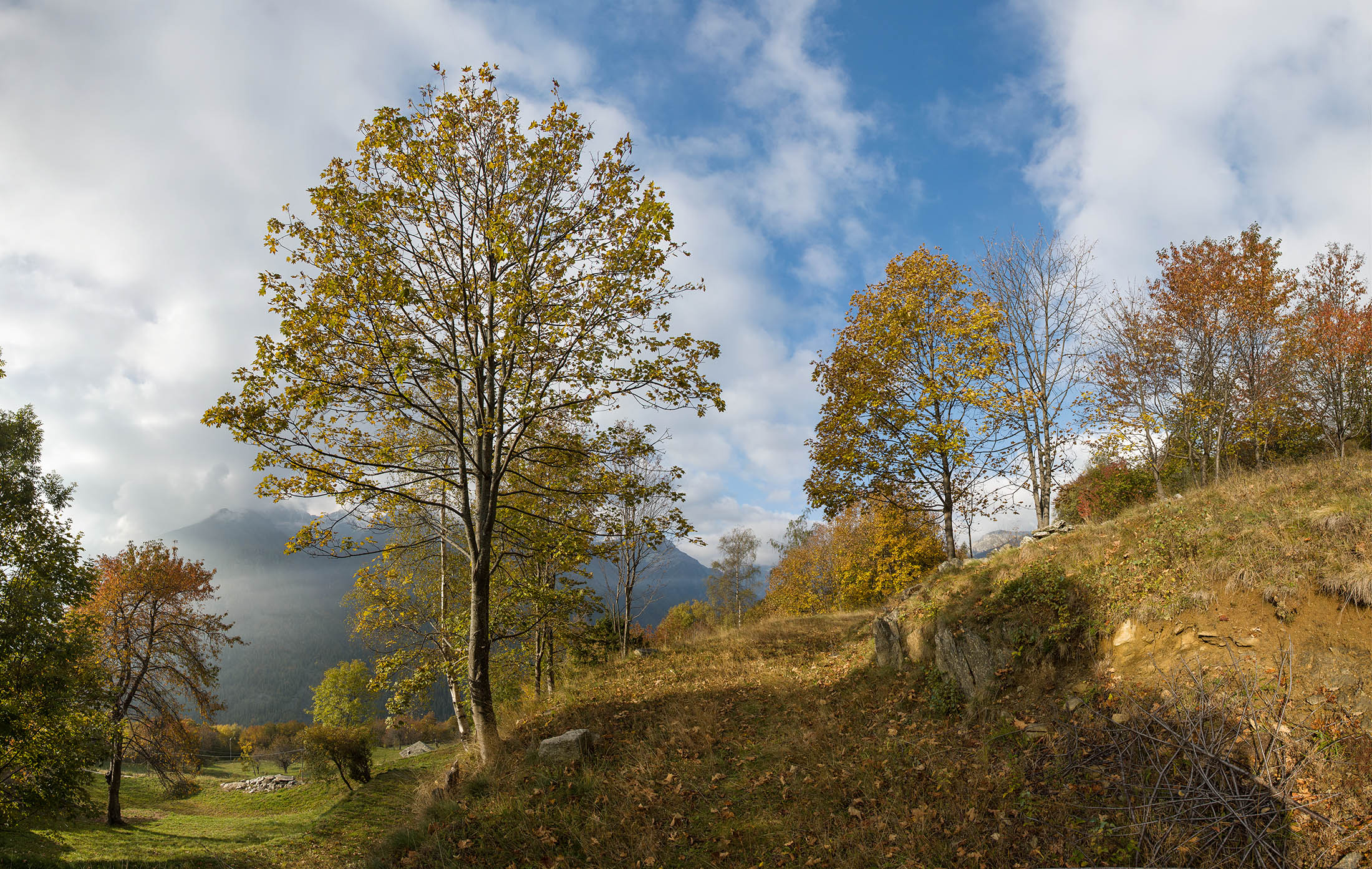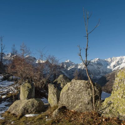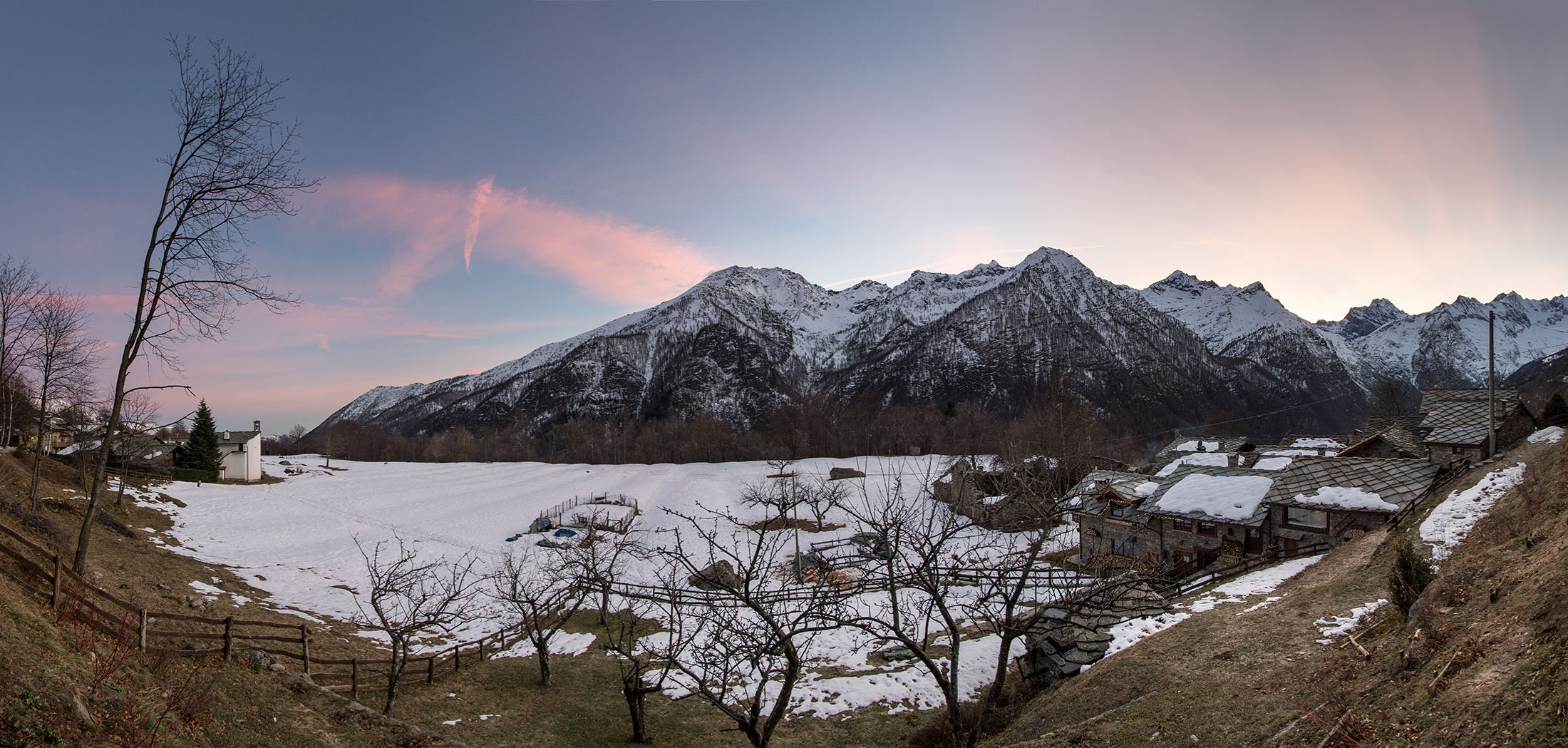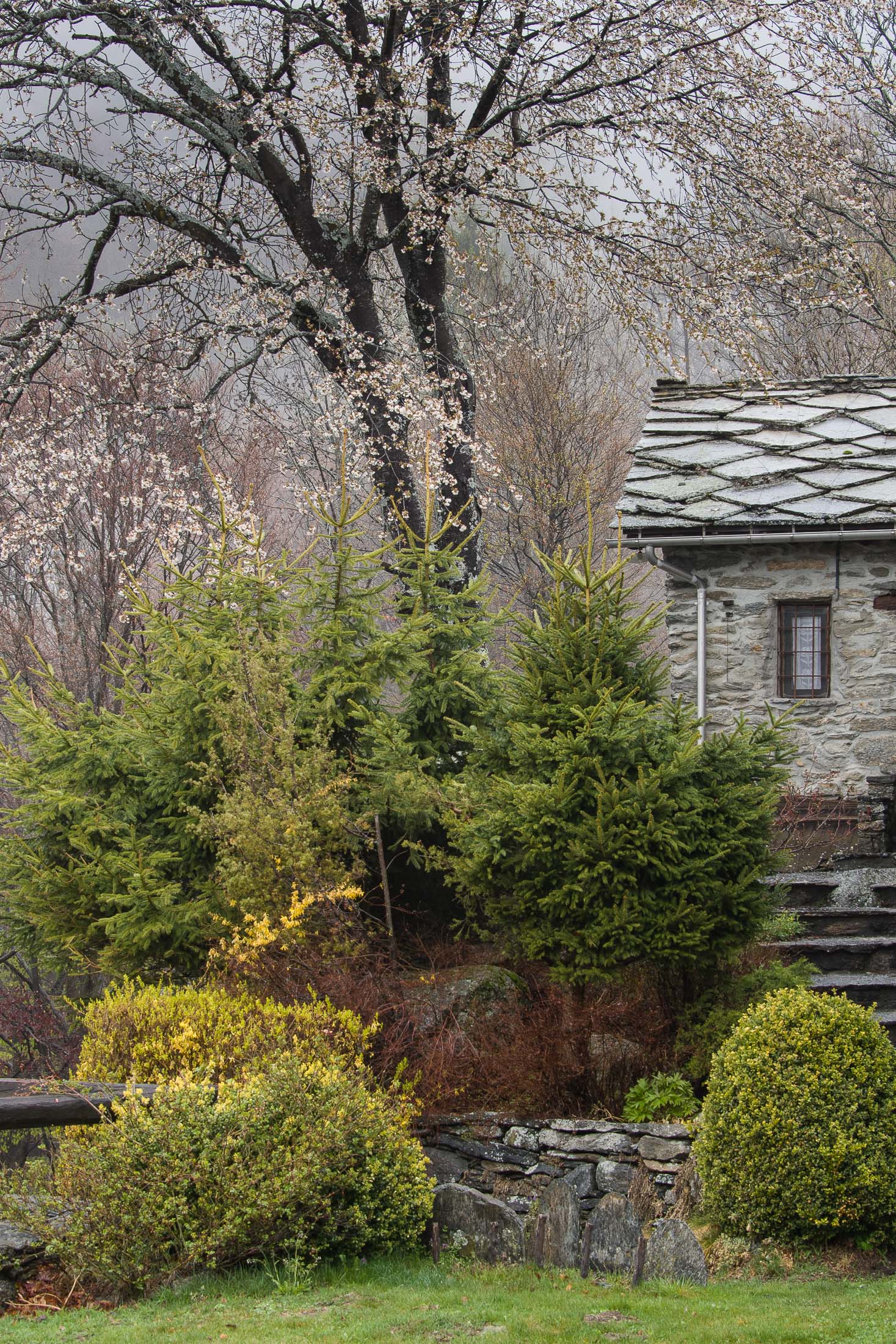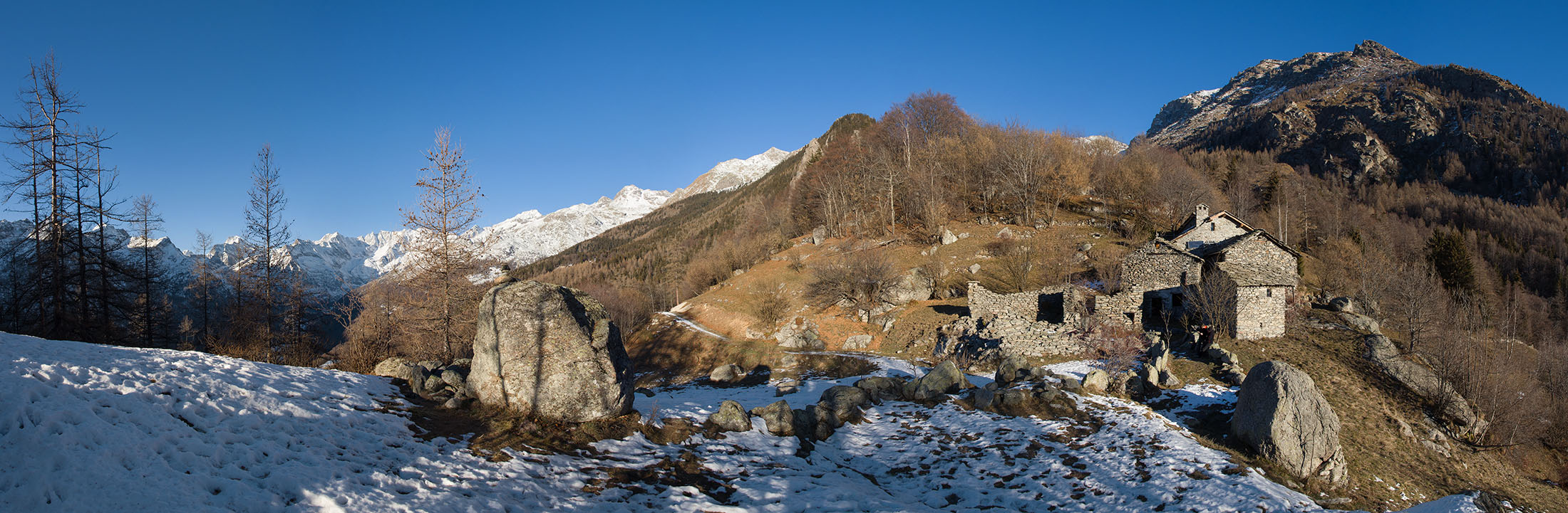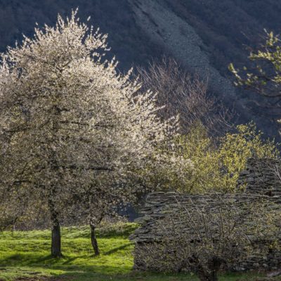 Schon der Ausgangspunkt ist bereits eine Reise wert. Alboni ist eine aus mehreren Häusergruppen bestehende Siedlung auf einer aussichtsreichen Hochfläche über dem Val Grande di Lanzo. Jeder Winkel ist hier aufgeräumt und gepflegt. Man blickt auf aufwendig und geschmackvoll renovierte Anwesen, manchenorts wurde viel Geld in die Hand genommen und keine Mühe gescheut. Und trotzdem ist kaum jemand zuhause, ausser am Samstag und Sonntag und in den italienischen Ferien. Alles nur Zweitwohnsitze. Schicksal oder Glück? Vielleicht beides. Alboni ist kein Einzelfall in den piemontesischen Alpen. Die schmale und serpentinenreiche Zufahrtsstrasse ist nicht wintersicher. Die nächste Stadt? 30 km auf kurvenreichen Strassen. Schnelles Internet? Gibts hier nicht. All das ist schon nicht mehr kompatibel mit dem heutigen modernen Alltagsleben, wo scheinbar alles auf Schnelligkeit und spontane Erreichbarkeit ausgerichtet ist. Das war nicht immer so. Alboni war bis in die 1950er Jahre ganzjährig bewohnt, in jedem Haus lebten zwei oder drei Generationen unter einem Dach, sonntags ging man gemeinsam zum Gottesdienst in die weissgekalkte Cappella di San Grato. Die Hänge in der näheren Umgebung waren gerodet und wurden in mühseliger Arbeit kultiviert. 50 bis 70 Jahre später sind diese Flächen vom Wald beschlagnahmt. Die Einstellung der traditionellen Berglandwirtschaft und die damit verbundene Abwanderung haben den Ort geleert, bis er eines Tages nahe zu verlassen war. Viele Häuser verfielen im Laufe der Zeit. In den 1990er Jahren begann eine Trendwende, Alboni wurde wiederentdeckt – und wiederaufgebaut. Heute blickt man auf ein Schmuckstück, ein liebenswerter Ort inmitten der Stille.