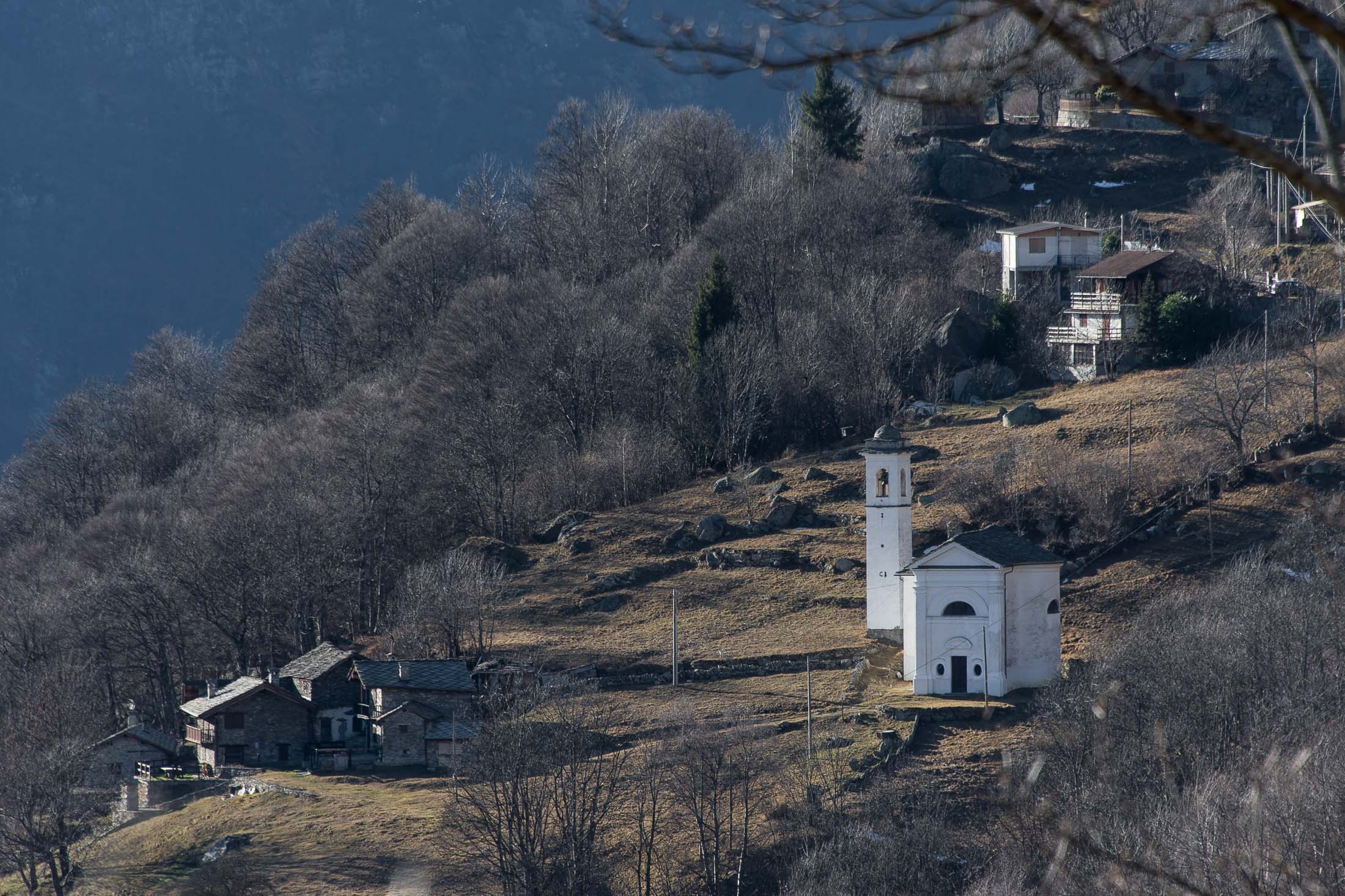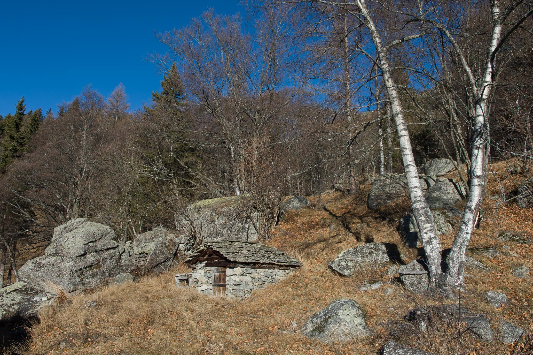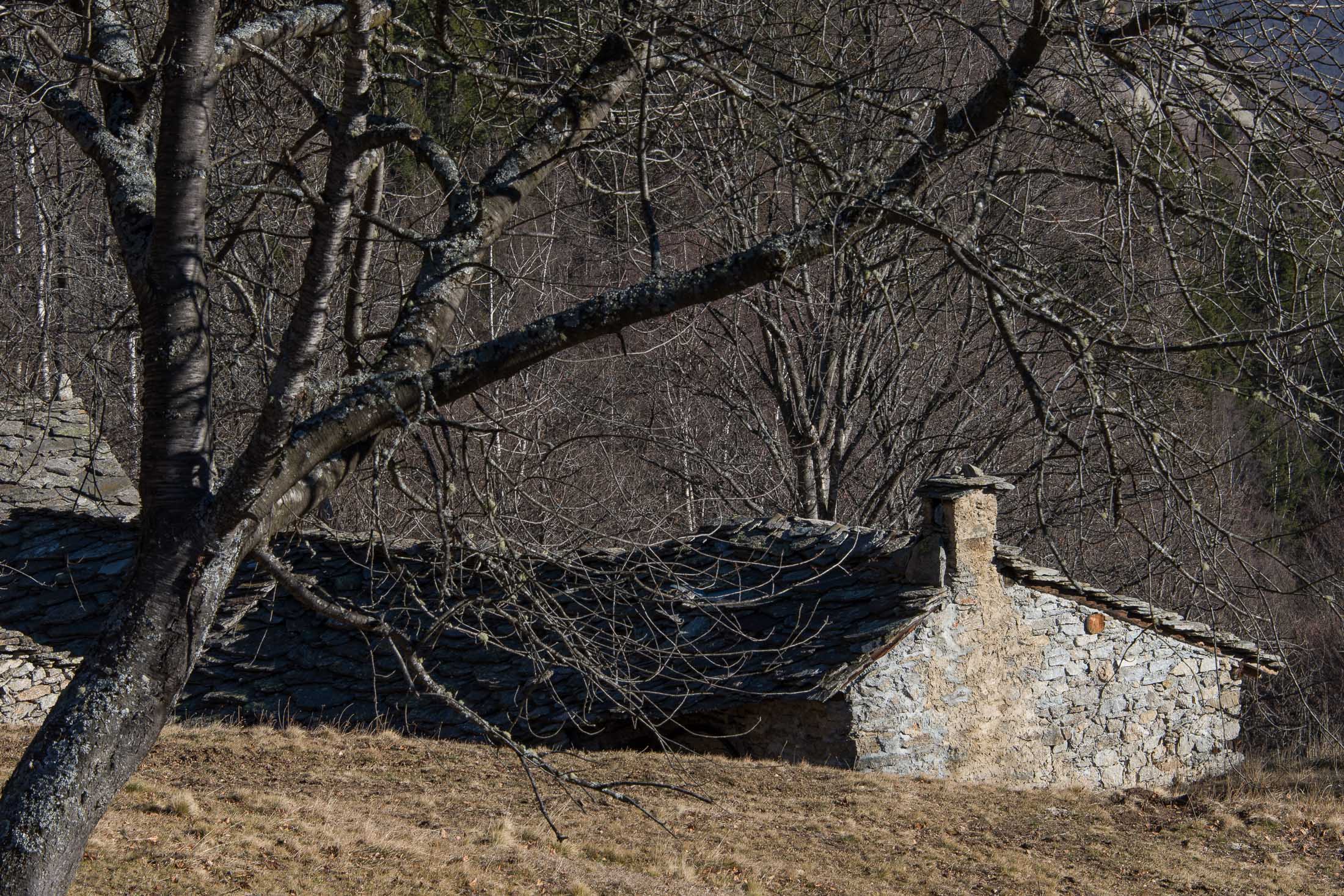 Von Mea spaziert man in einer Viertelstunde hinab nach Benne (frankprovenzalisch: Benes), ein hübsch renoviertes Anwesen auf einer sonnigen Lichtung. Hier man verlässt man den breiten Forstweg, weiter auf dem alten Saumweg durch schönen Buchenwald bis Campo della Losa di sopra, die oberste Häusergruppe von Alboni. Keine Menschenseele ist zu sehen, verschlossene Fenster und Türen, allenfalls am Wochenende oder in den Ferien ist mal jemand hier oben. Weite Blicke schweifen über das Tal, hier könnte man mühelos den Rest des Tages in der Sonne verbummeln. Wenige Schritte unterhalb die Häuser von Campo della Losa di mezzo (1440 m), auch hier lebt heute niemand mehr dauerhaft. Nach einem kurzen Abstieg erreicht man schliesslich die Hochebene von Alboni mit der Cappella di San Grato (1390 m). Willkommen im Paradies.