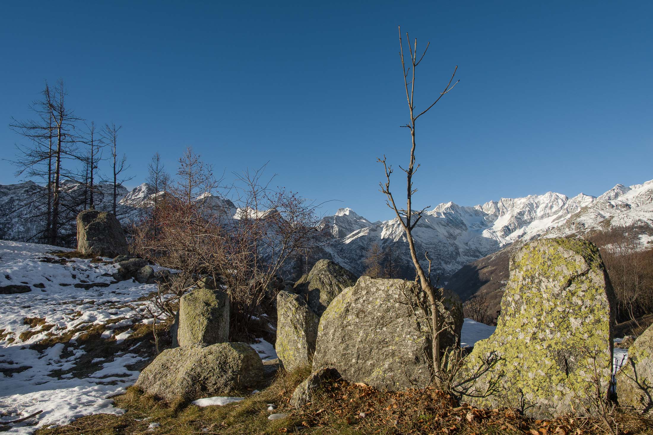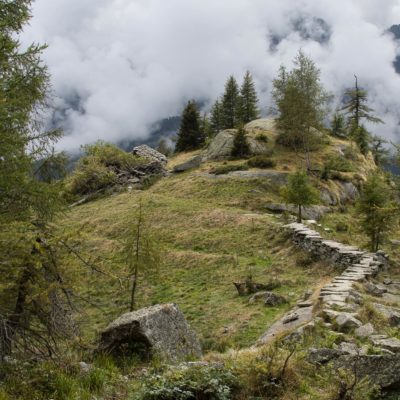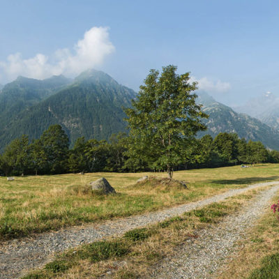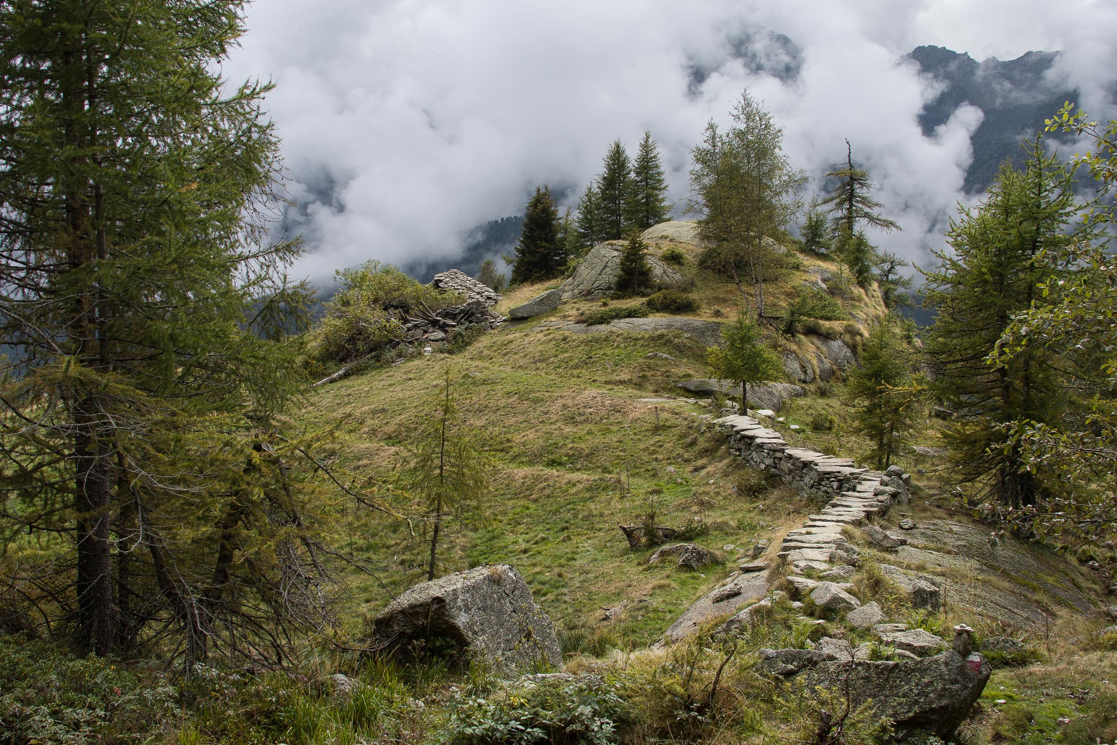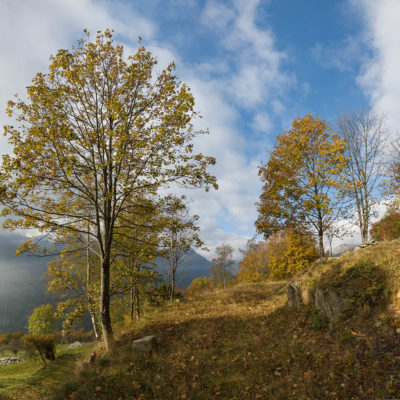 Von Mea spaziert man in einer Viertelstunde hinab nach Benne (frankprovenzalisch: Benes), ein hübsch renoviertes Anwesen auf einer sonnigen Lichtung. Hier man verlässt man den breiten Forstweg, weiter auf dem alten Saumweg durch schönen Buchenwald bis Campo della Losa di sopra, die oberste Häusergruppe von Alboni. Keine Menschenseele ist zu sehen, verschlossene Fenster und Türen, allenfalls am Wochenende oder in den Ferien ist mal jemand hier oben. Weite Blicke schweifen über das Tal, hier könnte man mühelos den Rest des Tages in der Sonne verbummeln. Wenige Schritte unterhalb die Häuser von Campo della Losa di mezzo (1440 m), auch hier lebt heute niemand mehr dauerhaft. Nach einem kurzen Abstieg erreicht man schliesslich die Hochebene von Alboni mit der Cappella di San Grato (1390 m). Willkommen im Paradies.