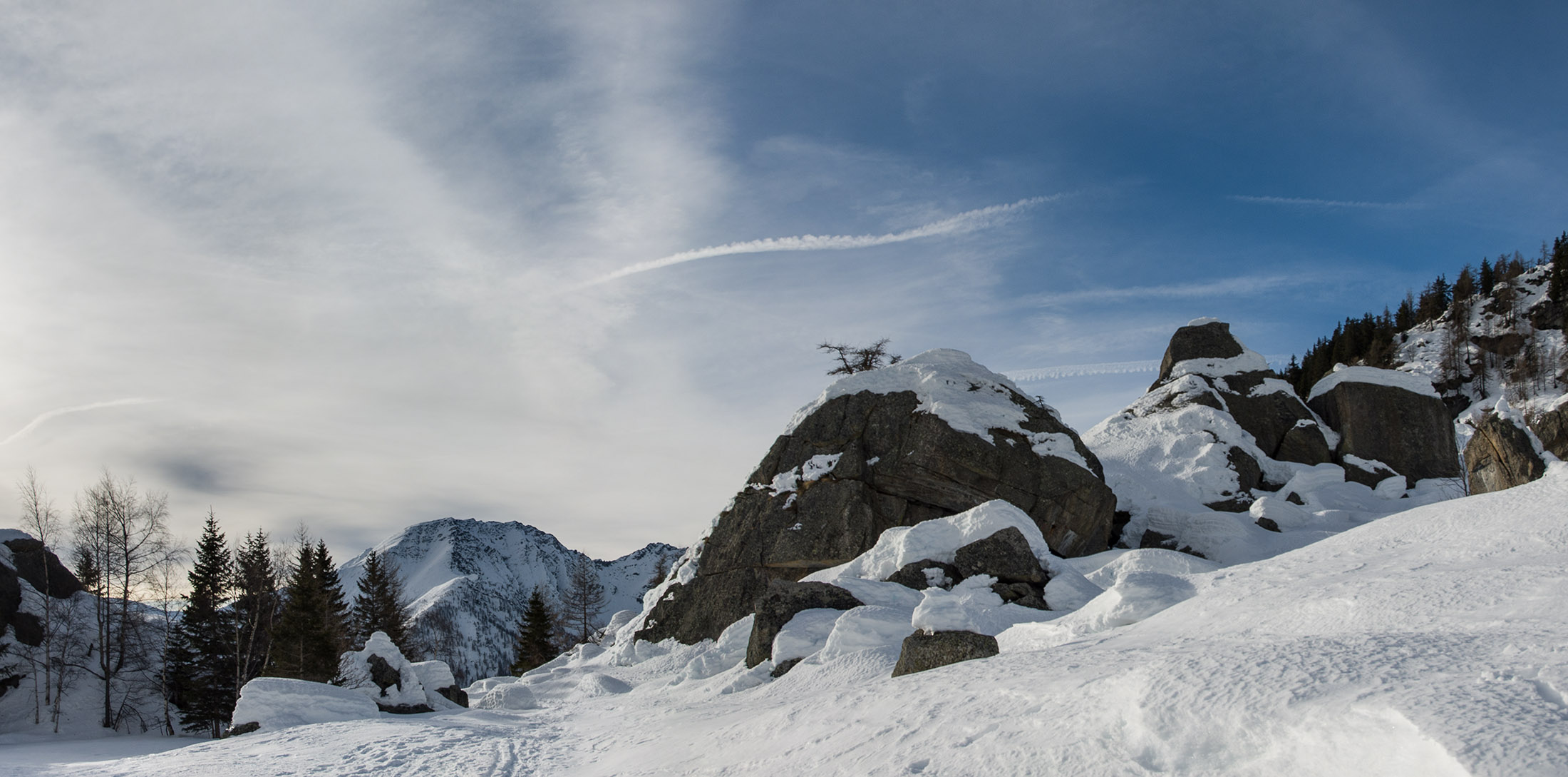 Landschaftlich abwechslungsreiche Halbtageswanderung auf alten Alpwegen auf der Sonnenseite des Val Grande di Lanzo. Der Pian delle Riane ist eine weitläufige Hochebene in einem beeindruckenden Talkessel im Seitental des Rio Unghiasse.