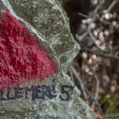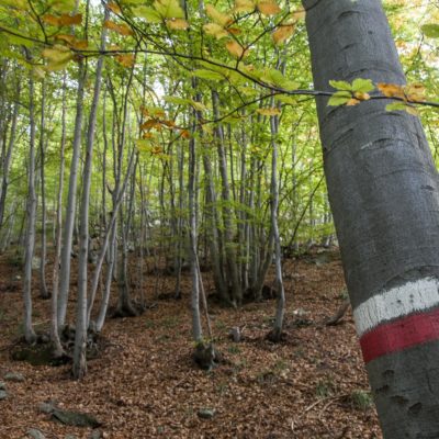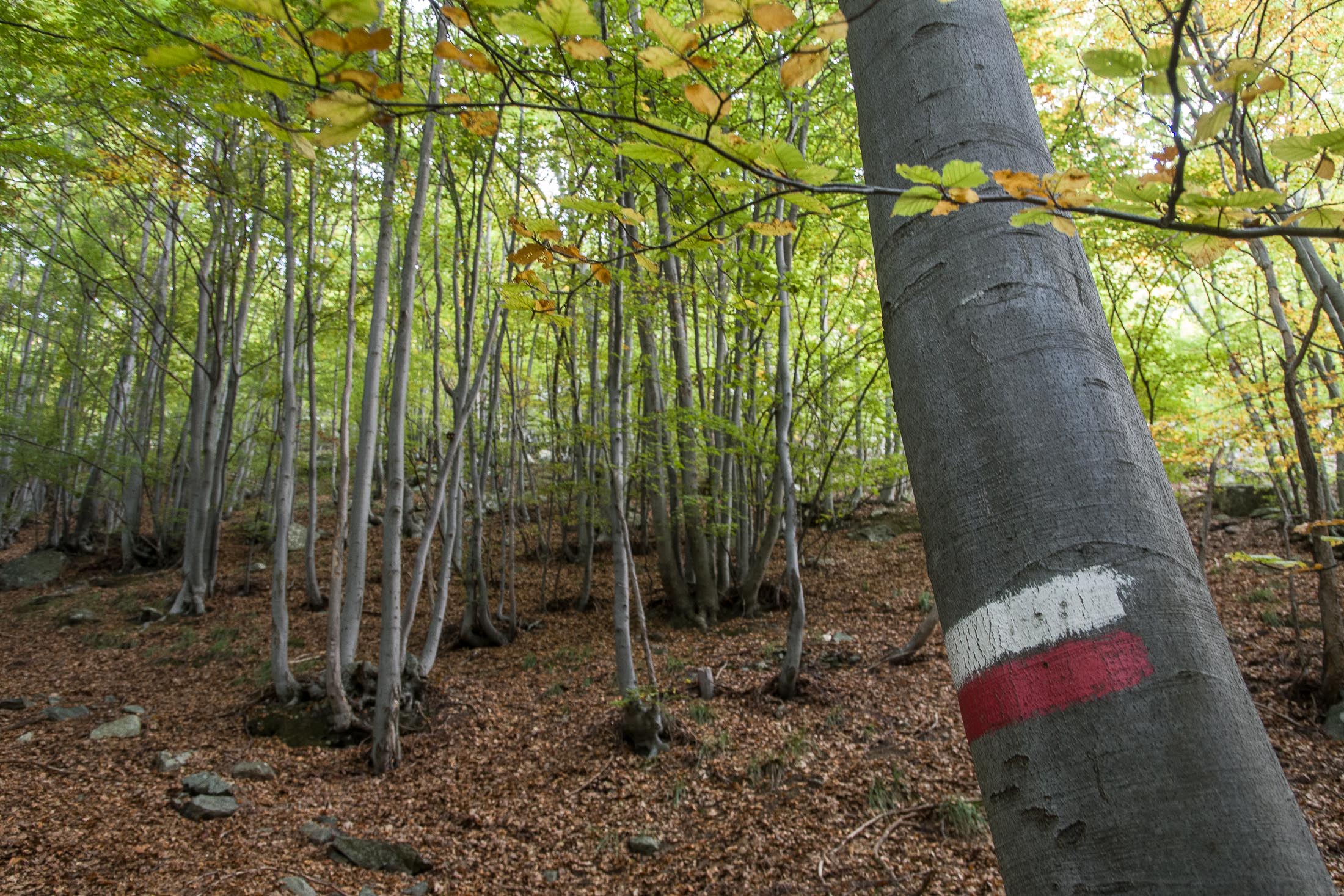 Der Abstieg verläuft zunächst auf dem Aufstiegsweg. An einer Weggabelung folgt man den Markierungen zum Colle Merli (1542 m), den man nach einem kurzen Gegenanstieg erreicht. Von dort geht es nun steil im Wald bergab, unterhalb des Pian Scuro mündet der Pfad in den Weg, auf dem man zuvor aufgestiegen ist. Von dort wandert man in einer Viertelstunde zurück nach Pian del Tetto.