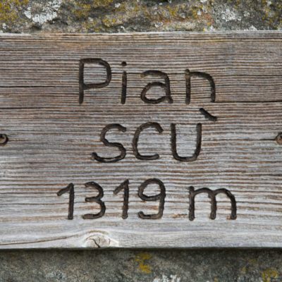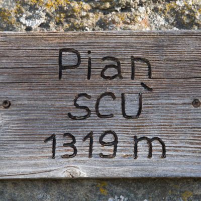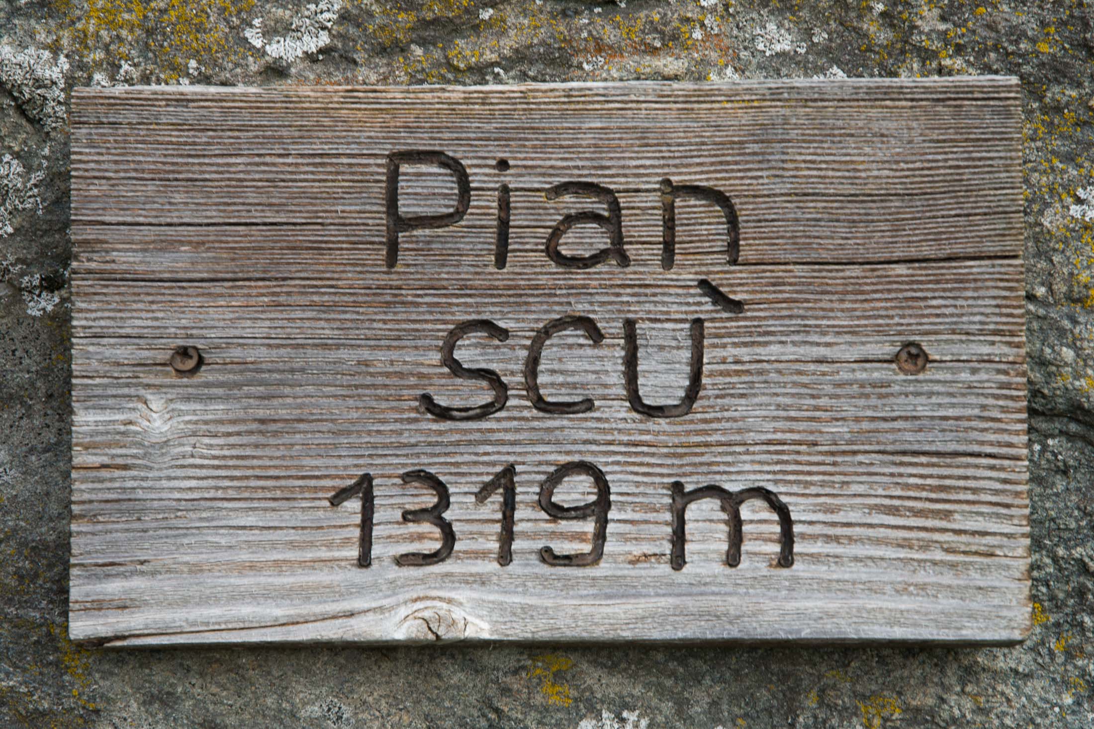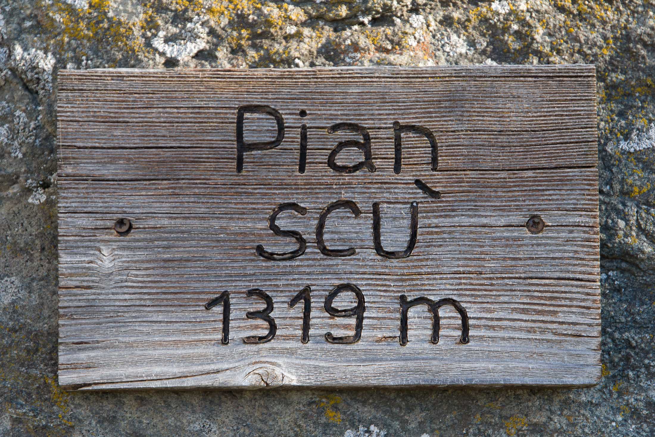 Von Credarian geht man etwa zehn Minuten auf gleichem Weg zurück, genau bis zu einem einzelstehenden verfallenen Stall, der sich rechts des Weges unmittelbar am Waldrand befindet. Hier einfach weglos den Hang hinaufgehen, vorbei an der Ruine, nach wenigen Schritten kommt man zu einer Lichtung. Über Wiesen und Weiden geht es weglos und sanft ansteigend hinauf zu den Alpgebäuden auf dem Pian Scuro (1321 m). Der Abschnitt ist nicht markiert, gelegentlich ist eine schwach ausgeprägte Pfadspur im hohen Gras zu sehen, einfach der Nase nach, mit etwas Spürsinn kann man sich hier nicht verlaufen. Alternativ kann man auch zurück zur Wegverzweigung oberhalb von Pian del Tetto gehen und von dort zum Pian del Scuro aufsteigen. Von dort wie oben beschrieben weiter nach Il Tourn.