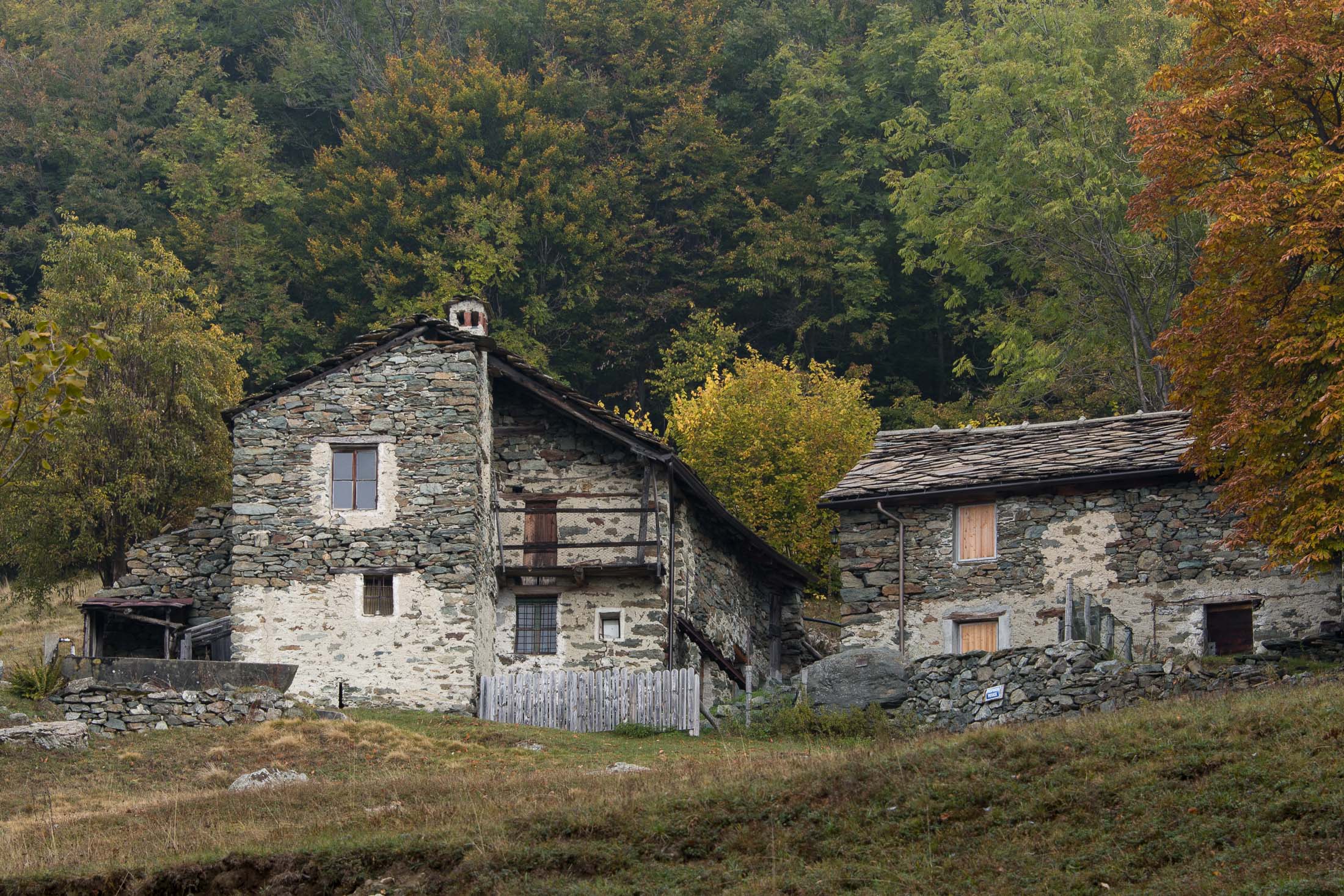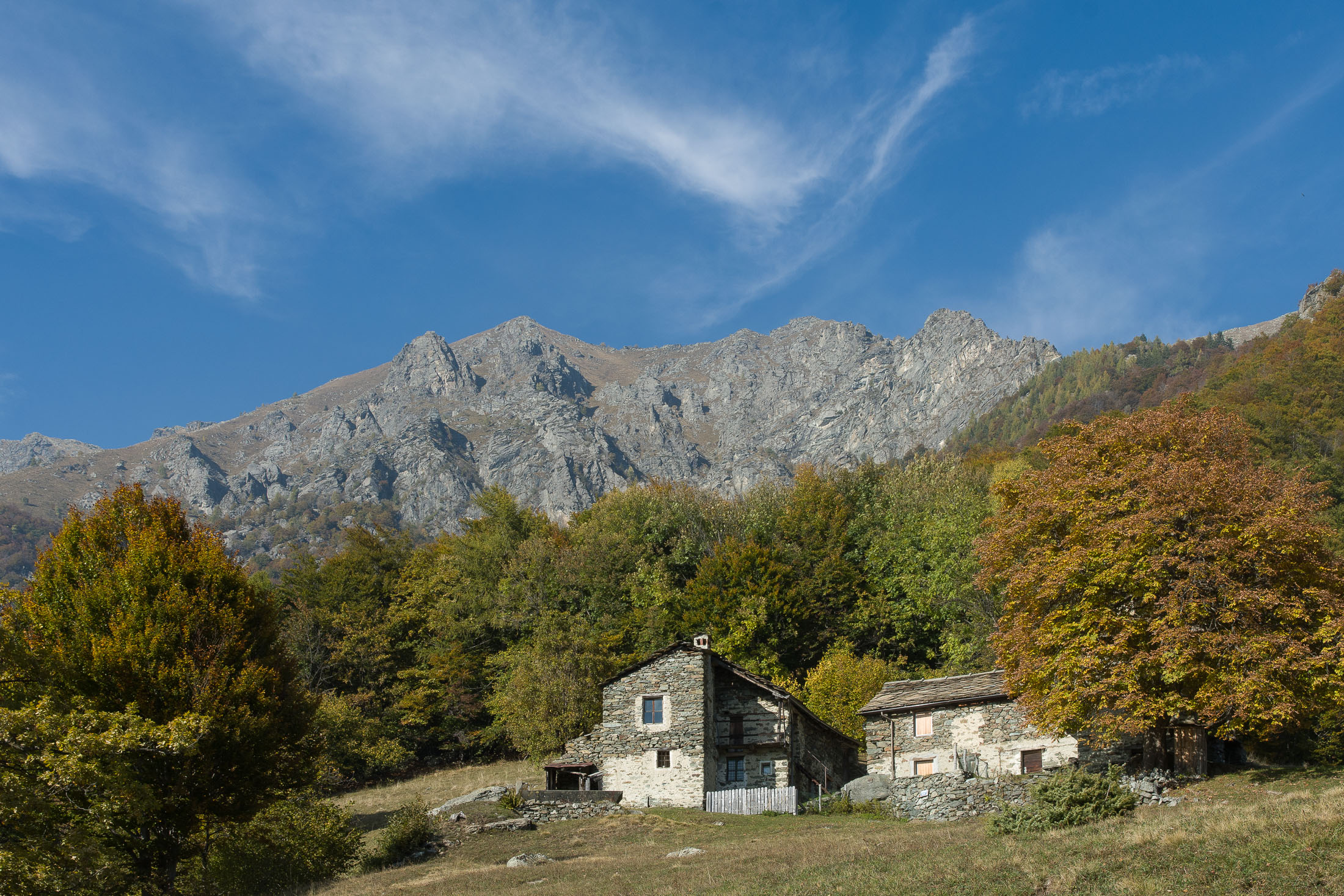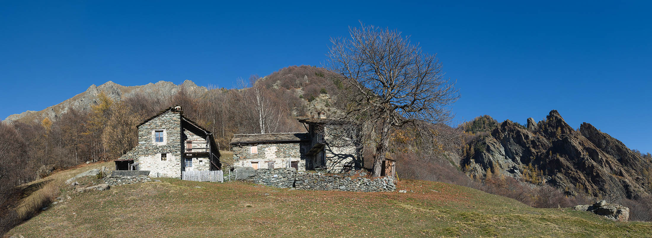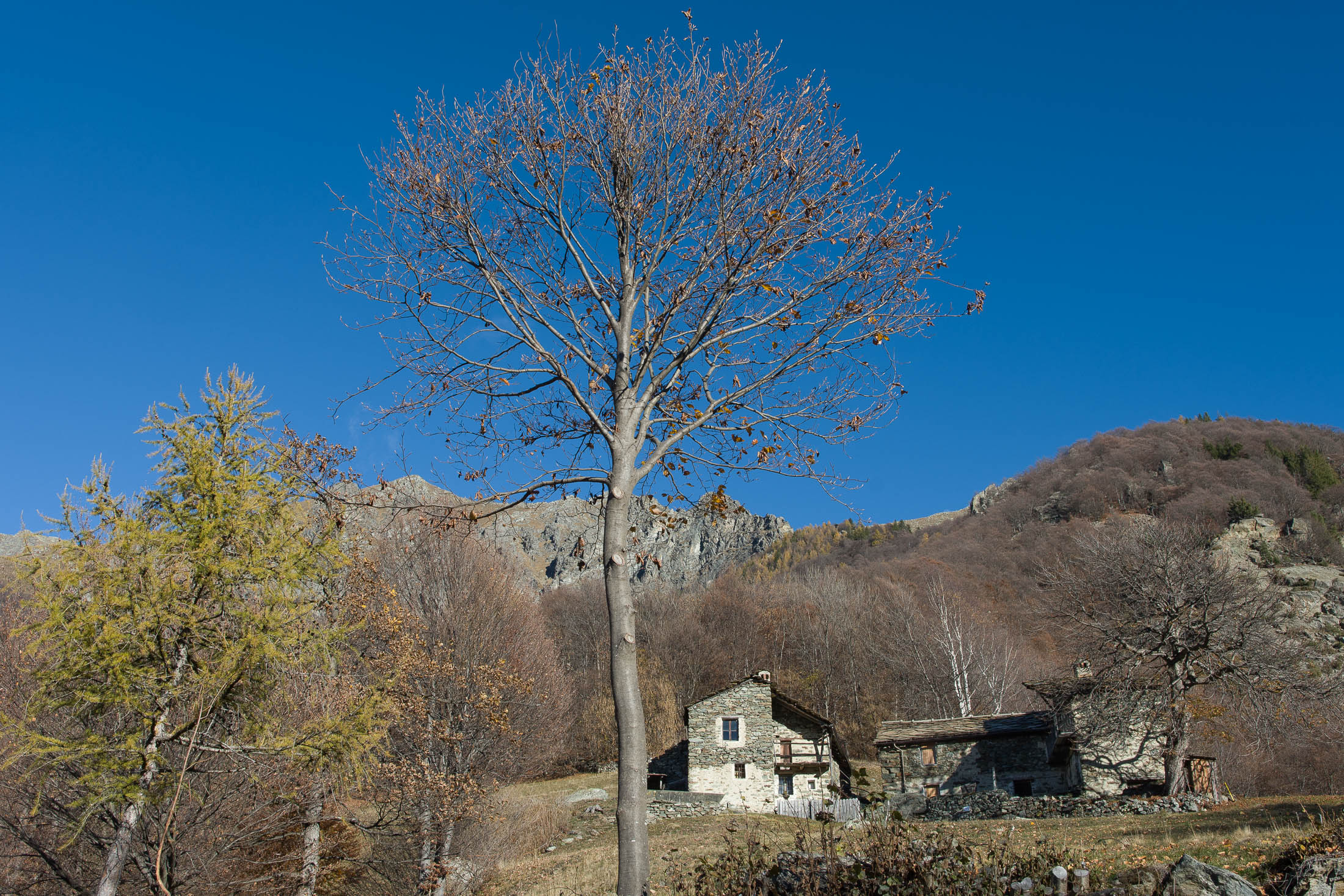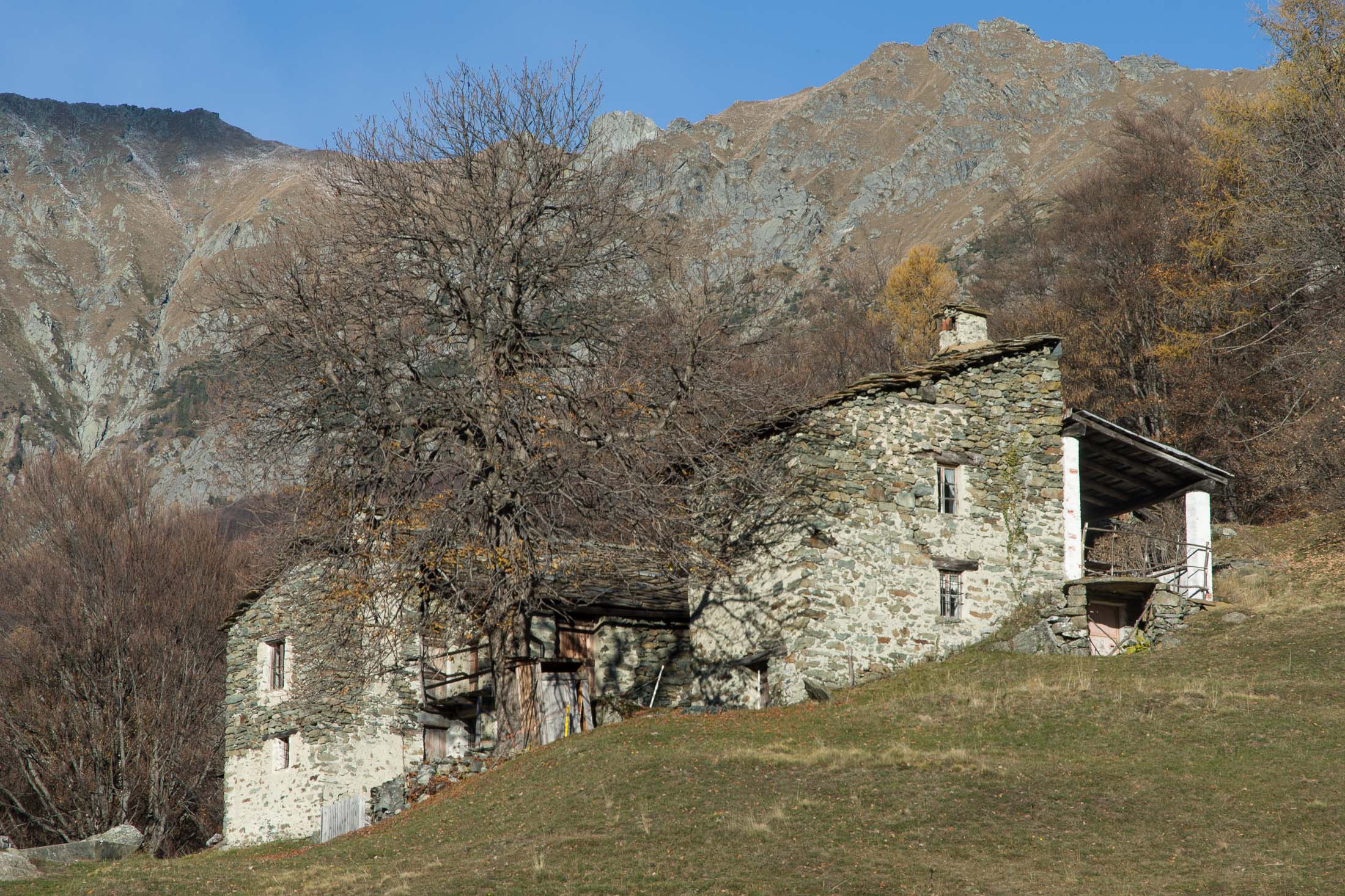 Vom Dorfplatz in Ala di Stura (1075 m) wandert man zunächst auf der Fahrstrasse, wenig später auf schöner Mulattiera zum oberhalb gelegenen Ortsteil Pian del Tetto (1148 m). Trotz der guten Erreichbarkeit und der Nähe zum Talboden wirkt der Ort ein wenig verschlafen. Frühmorgens herrscht hier eine friedvolle Stille, in den verwinkelten Gassen begegnet man keiner Menschenseele, viele der hübsch renovierten Häuser sind heute nur noch am Wochenende oder in Ferien bewohnt. Lediglich die wenigen Neubausünden entlang der Strasse stören ein wenig das ästhetische Wohlbefinden.